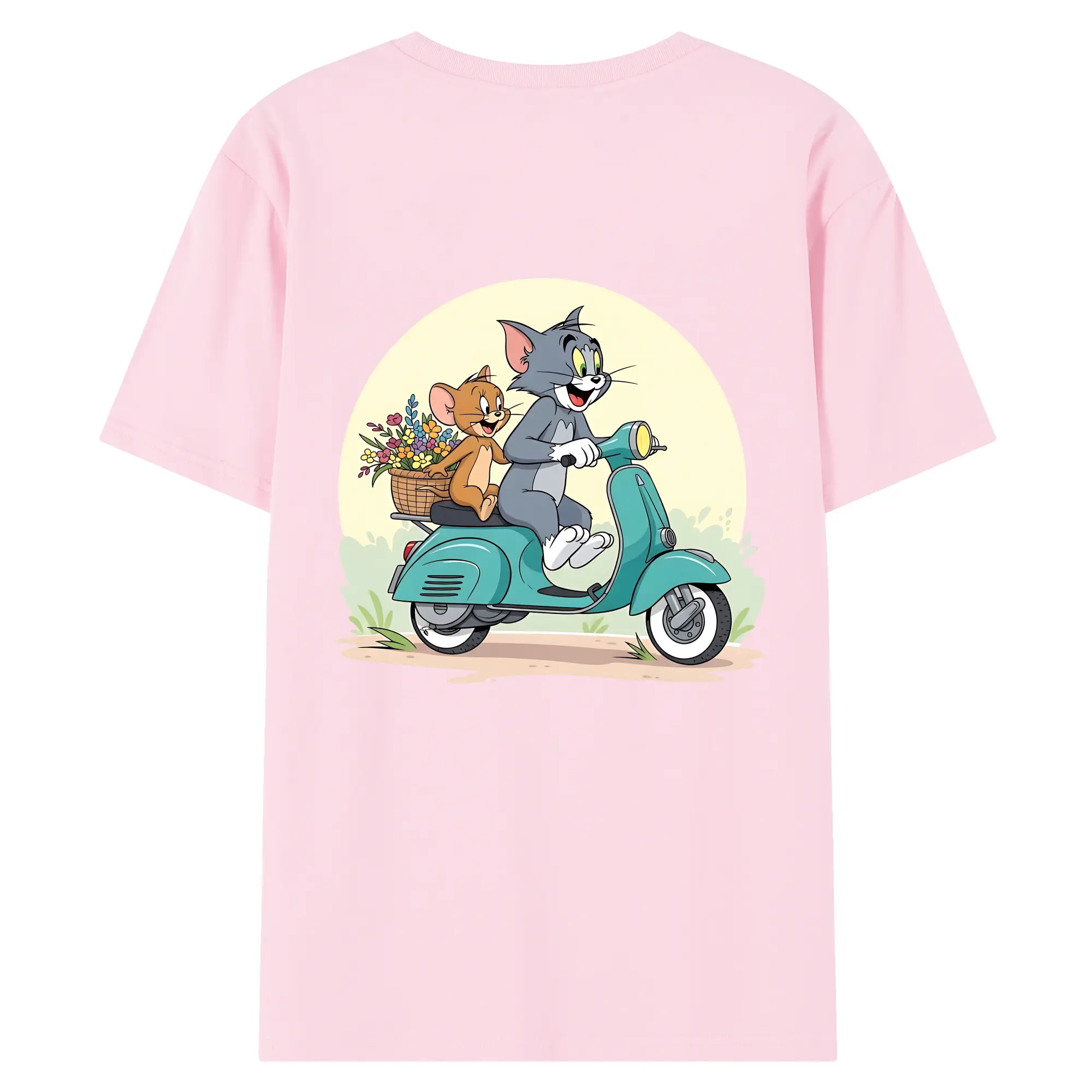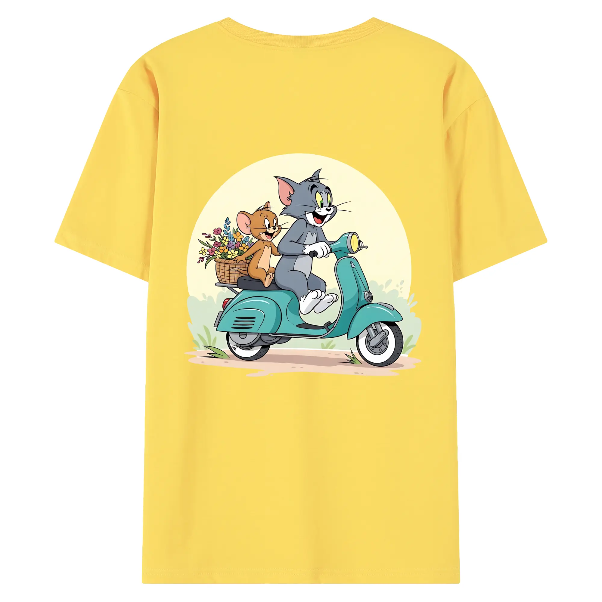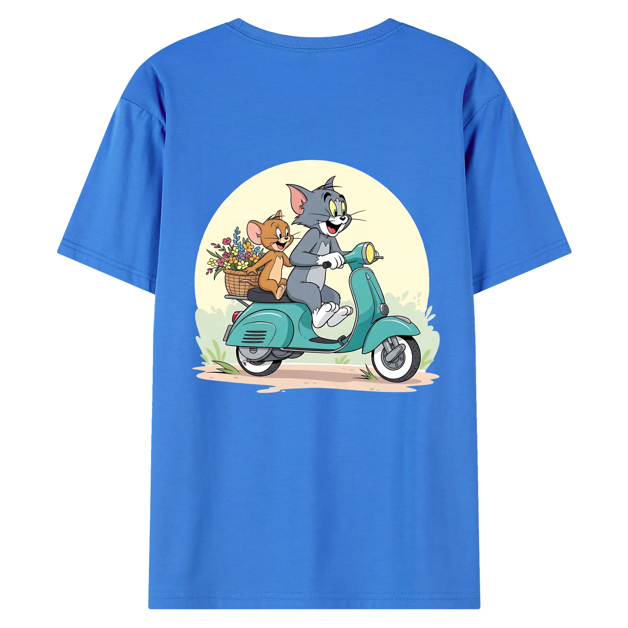 トムとジェリー グッズ トム - 綿100% 半袖Tシャツ ・ フロントプリント ・ 快適 通気性 ・ 日常使い 散歩 スポーツ用