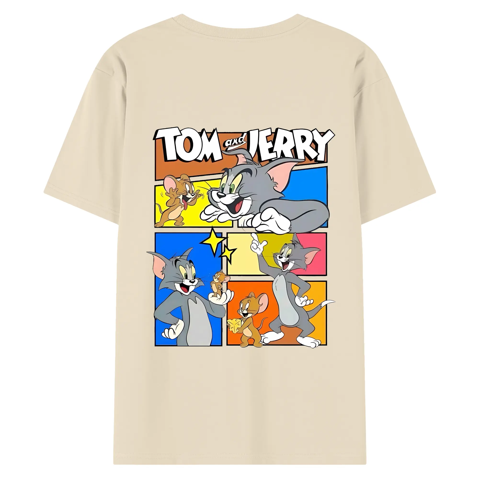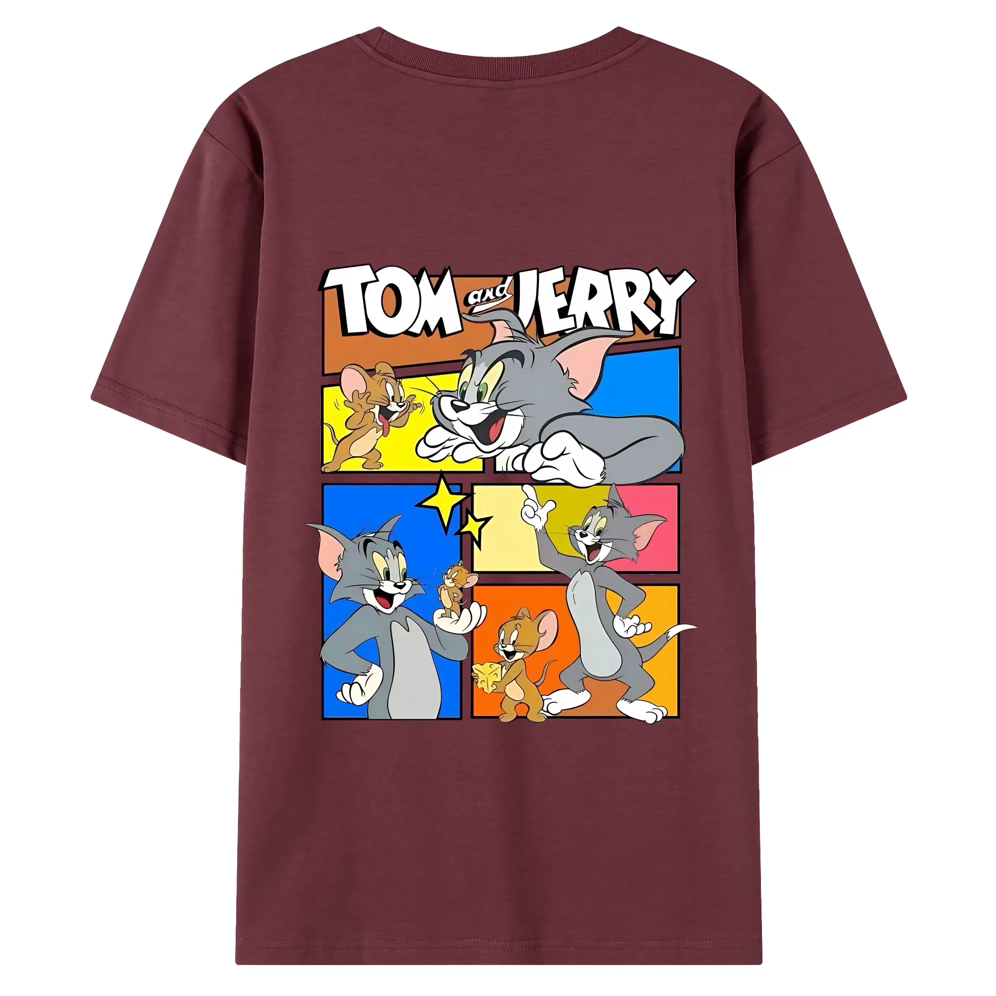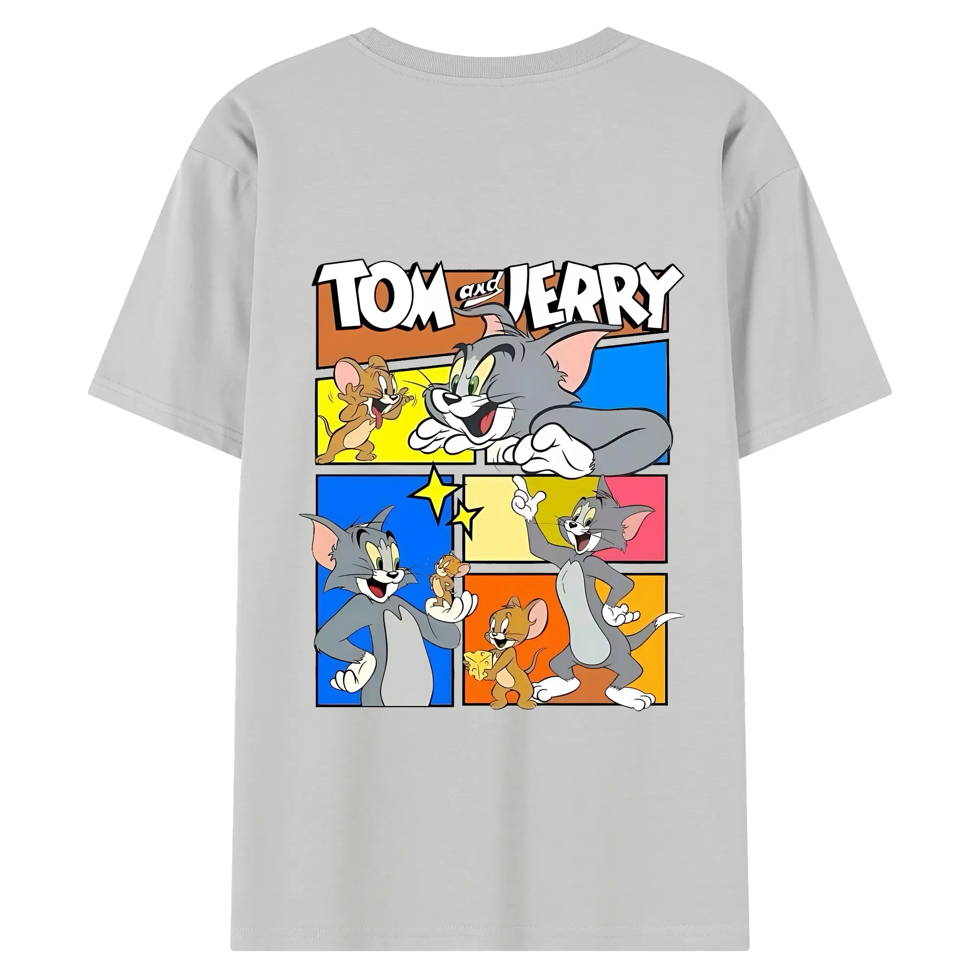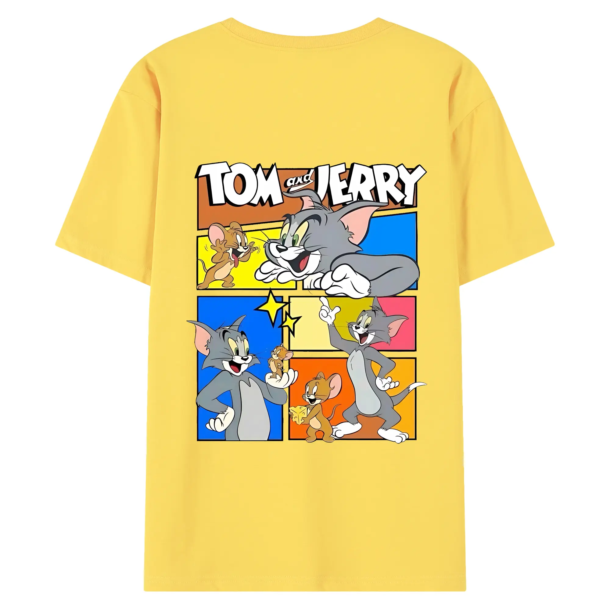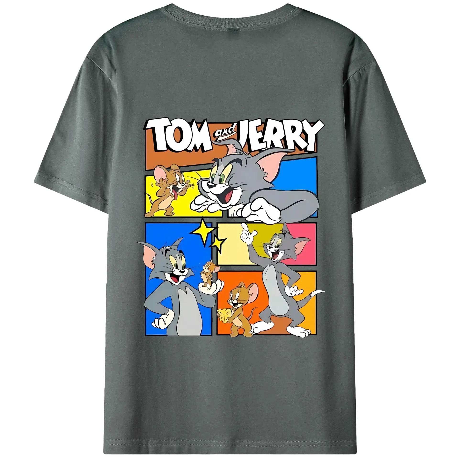 トムとジェリー グッズ トム - 綿100% ヴィンテージ風 半袖Tシャツ ・ 背面プリント ・ 柔らか肌触り ・ 通気性 快適 ・ スポーツ カジュアル 外出用
