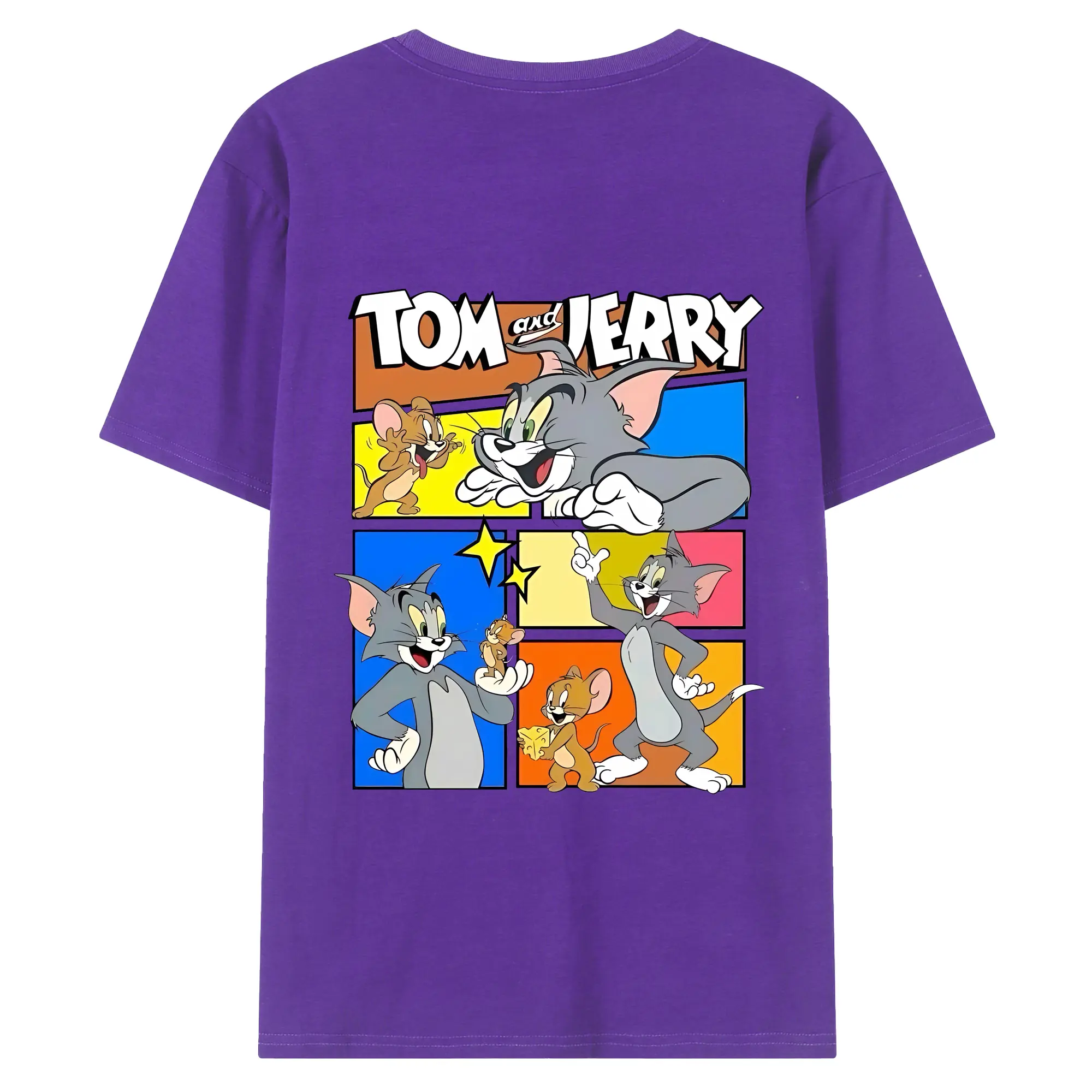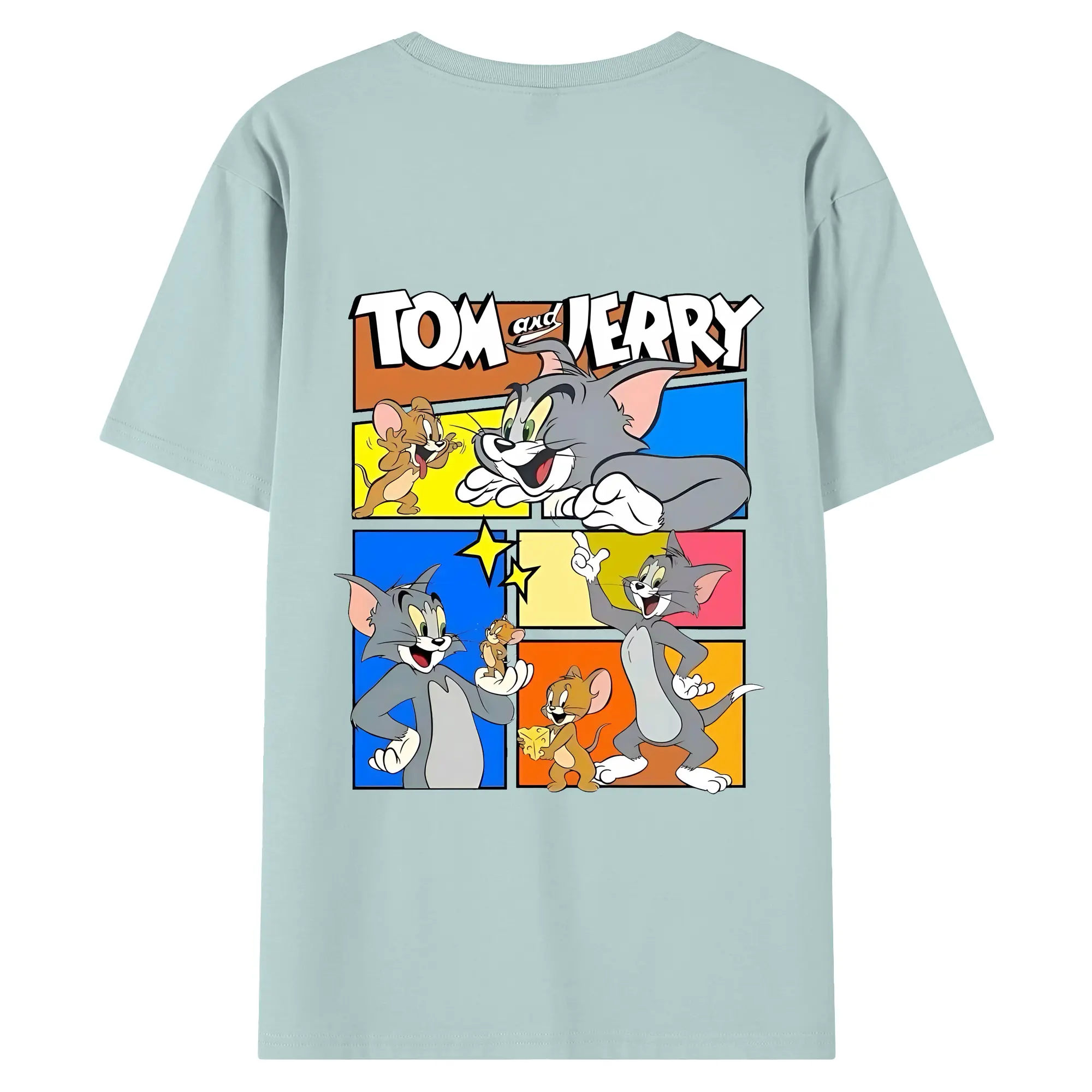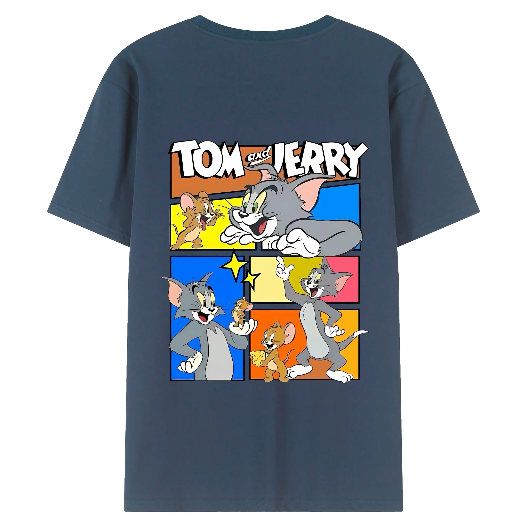 トムとジェリー グッズ トム - 綿100% 半袖Tシャツ ・ フロントプリント ・ 快適 通気性 ・ 日常使い 散歩 スポーツ用