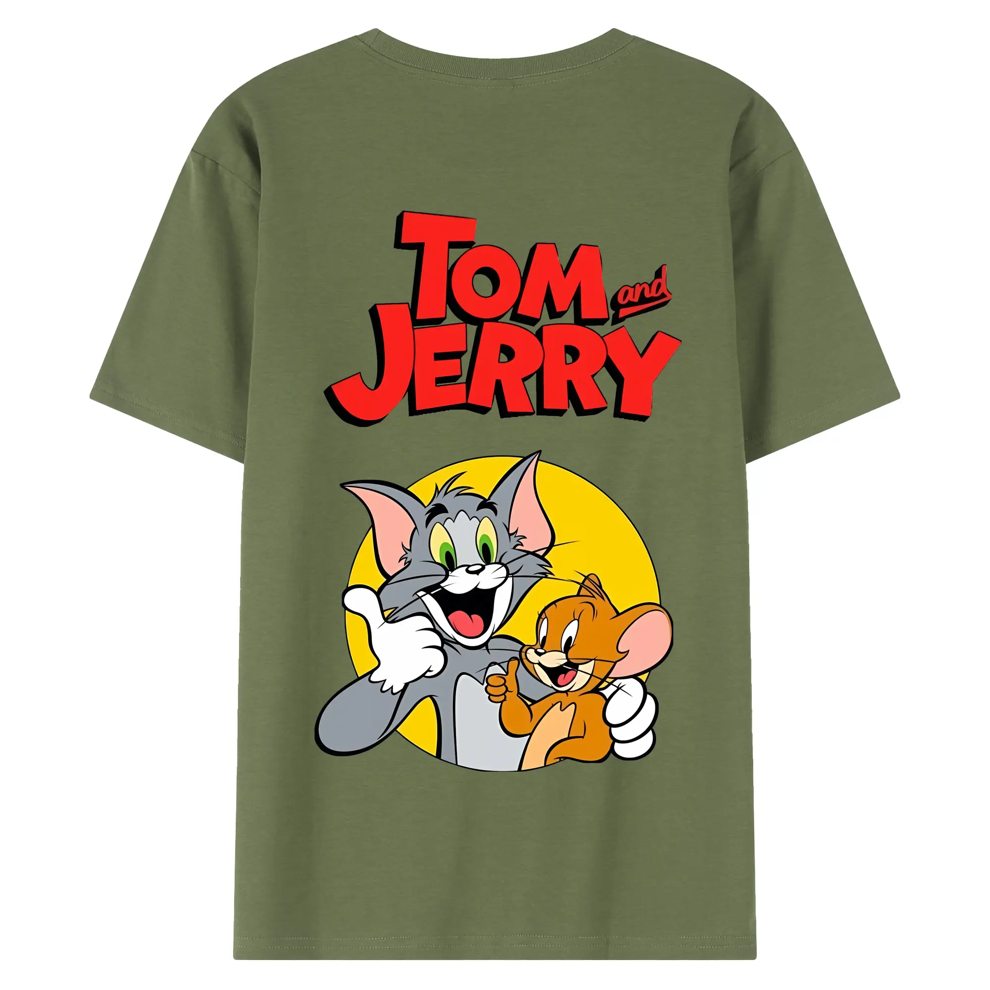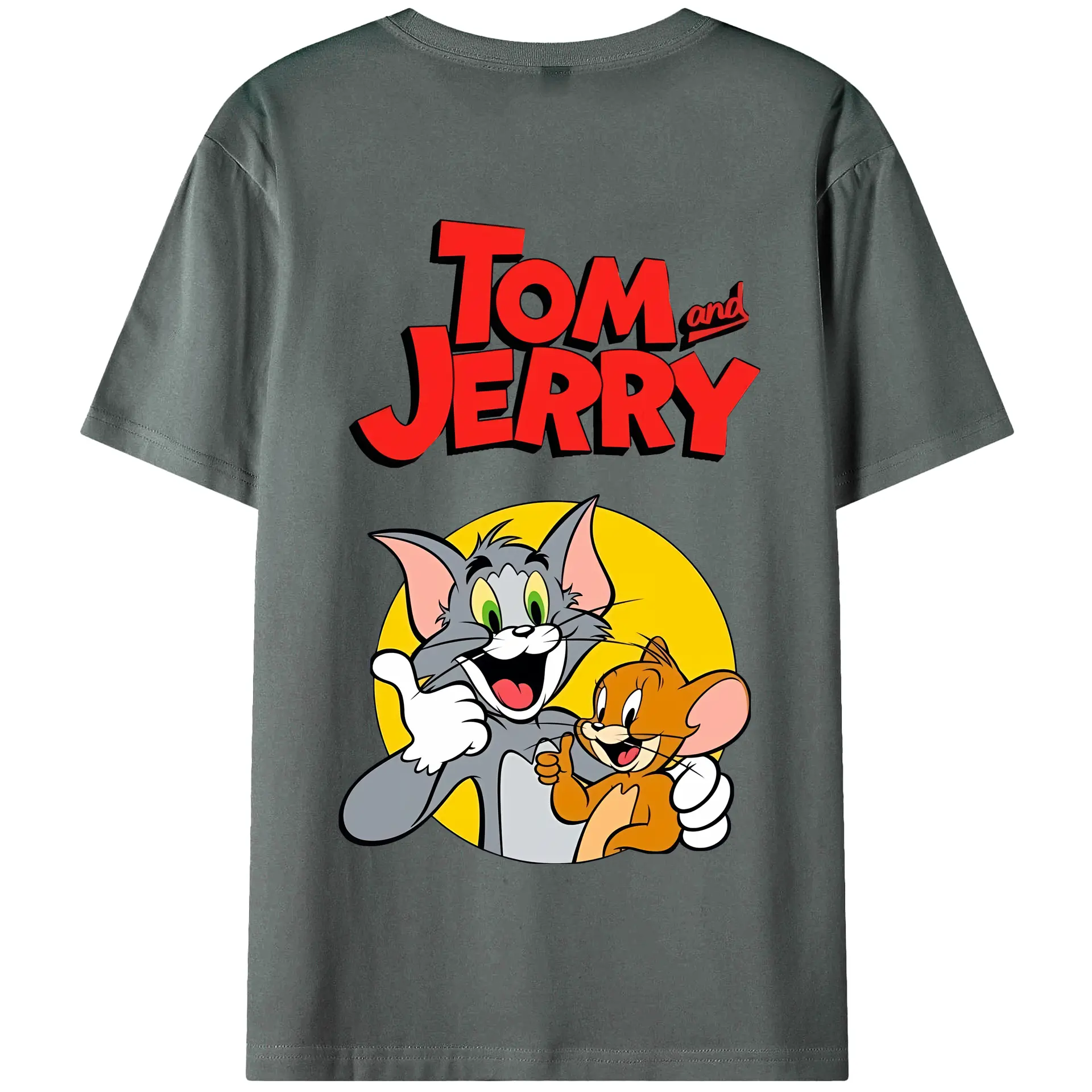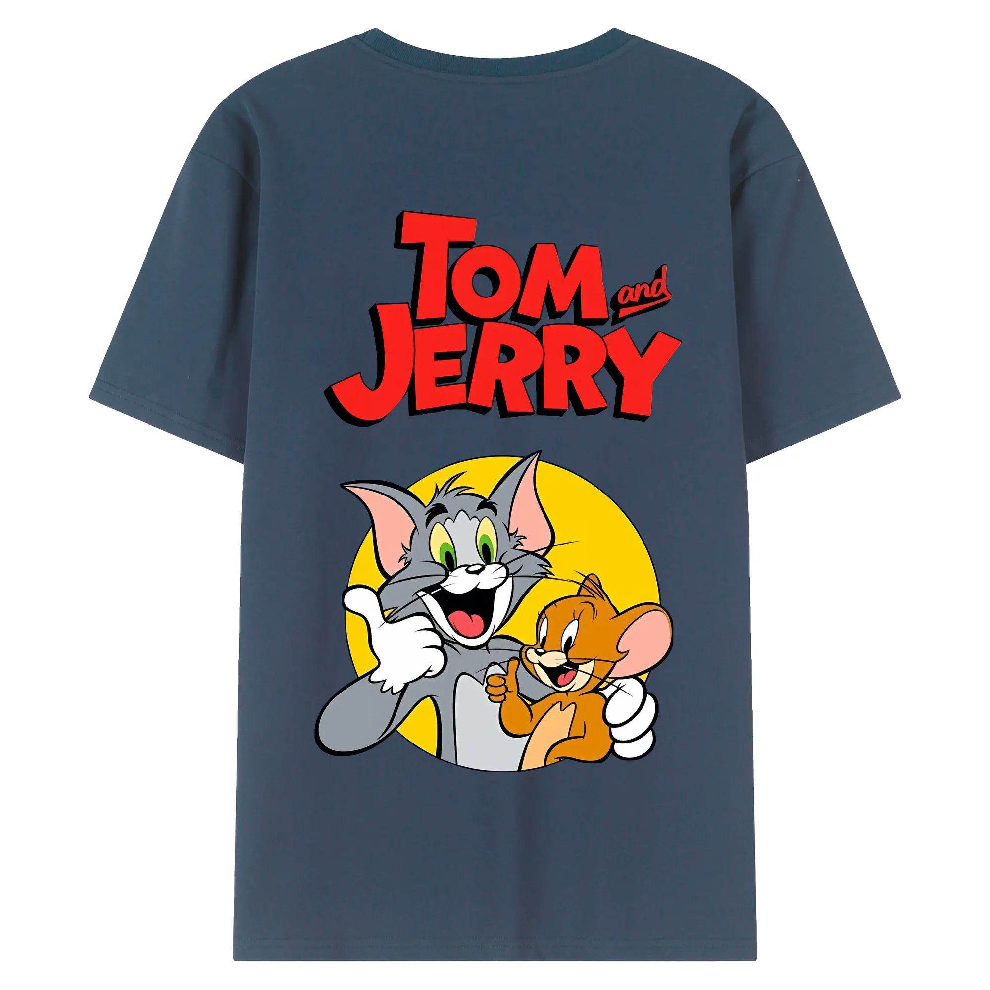 トムとジェリー グッズ トム - 綿100% ヴィンテージ風 半袖Tシャツ ・ 背面プリント ・ 柔らか肌触り ・ 通気性 快適 ・ スポーツ カジュアル 外出用