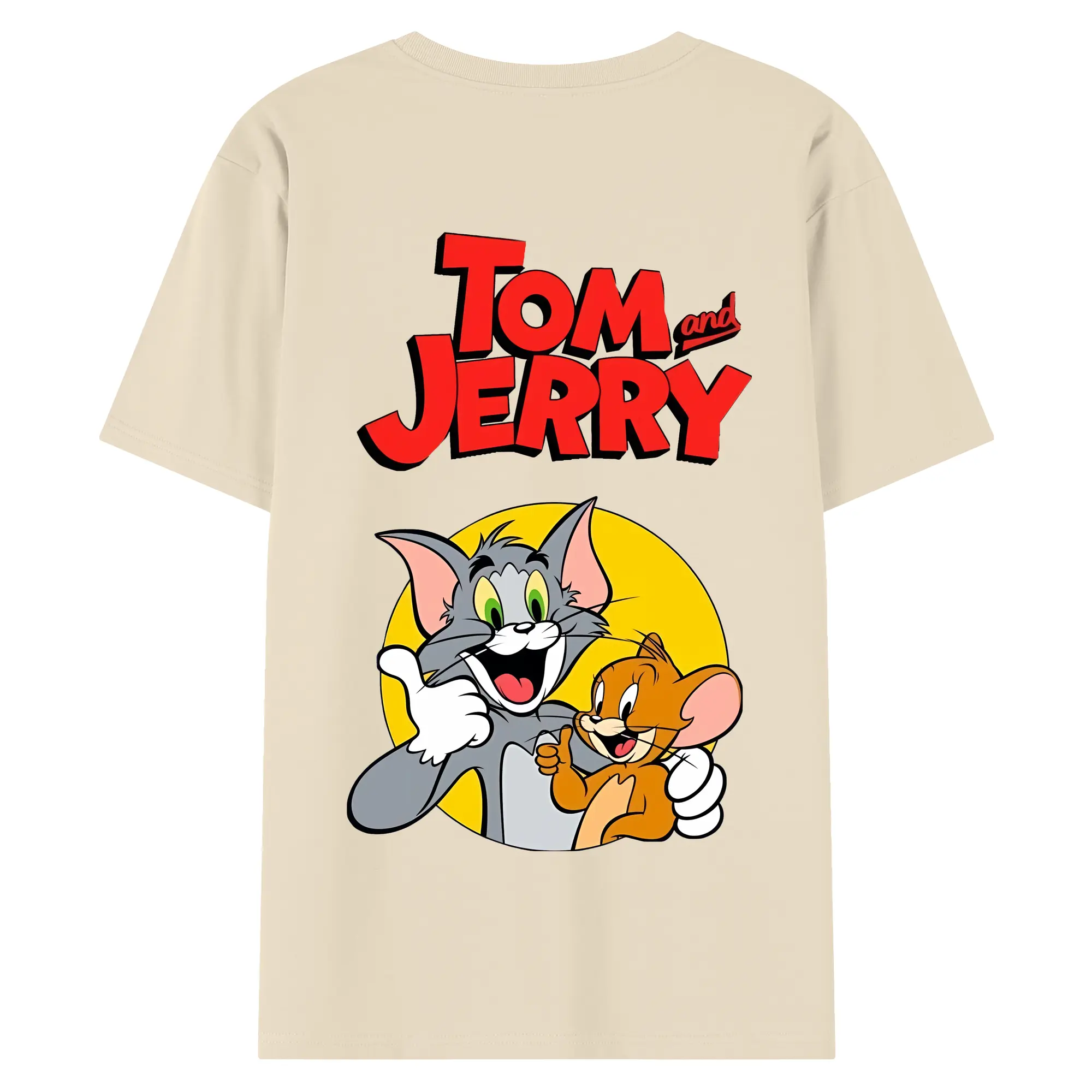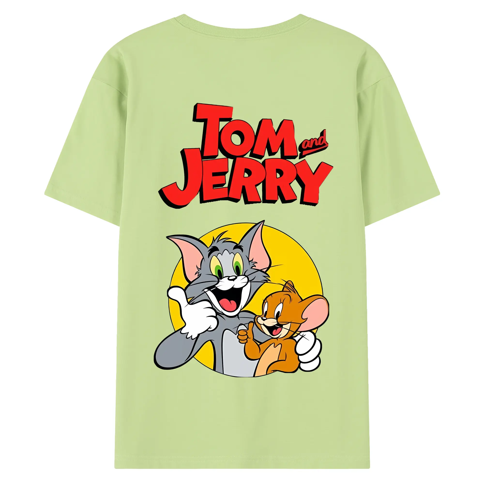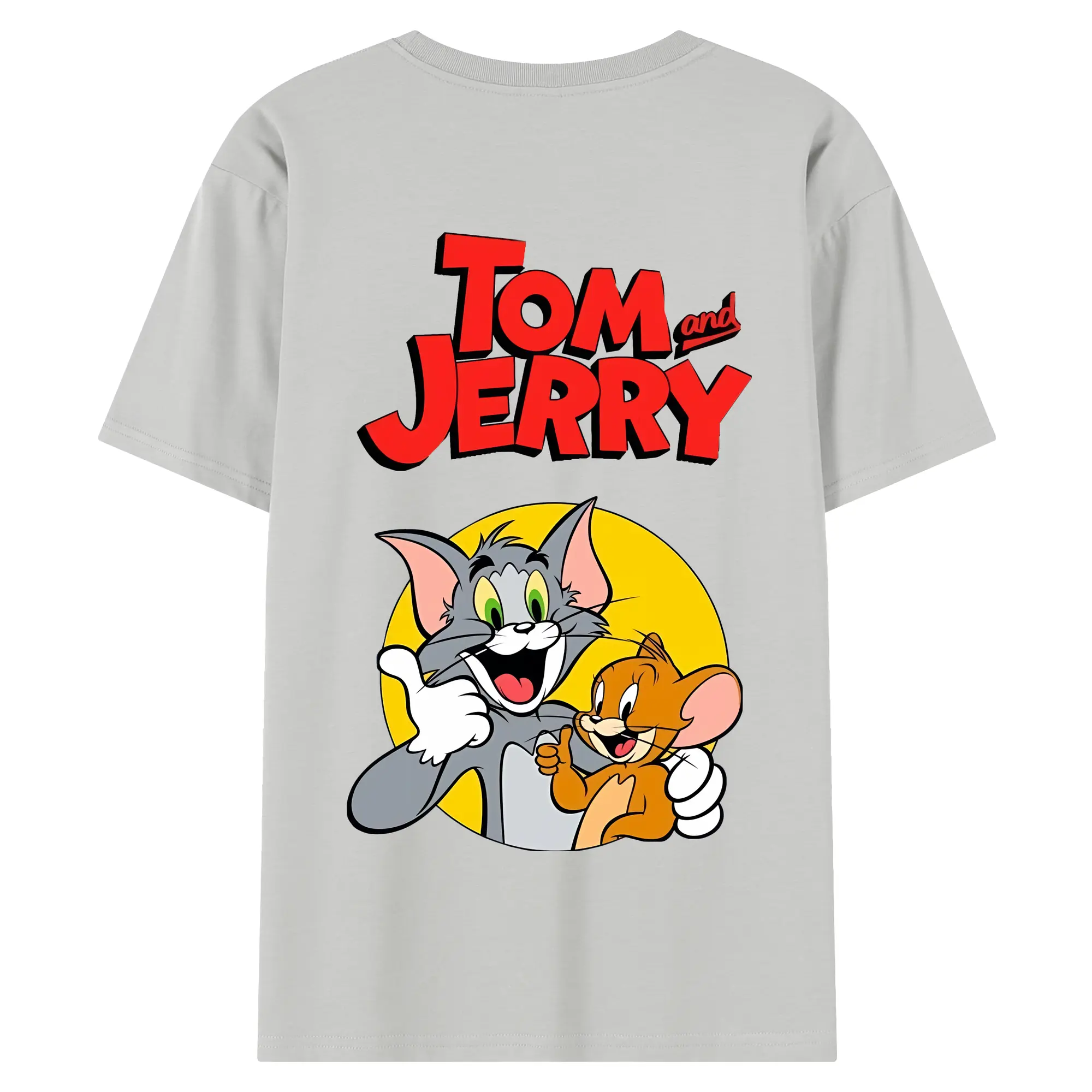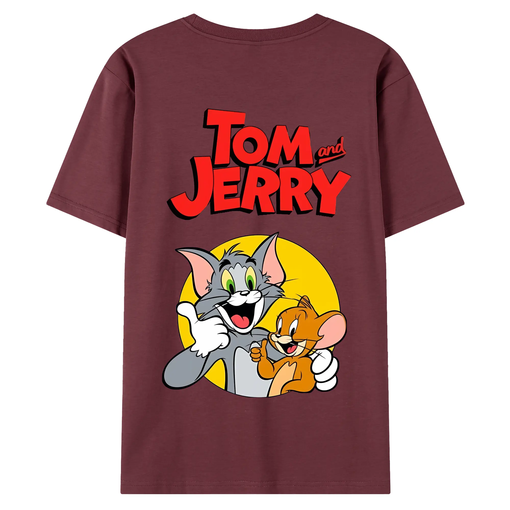トムとジェリー グッズ トム - 綿100% ヴィンテージ風 半袖Tシャツ ・ 背面プリント ・ 柔らか肌触り ・ 通気性 快適 ・ スポーツ カジュアル 外出用