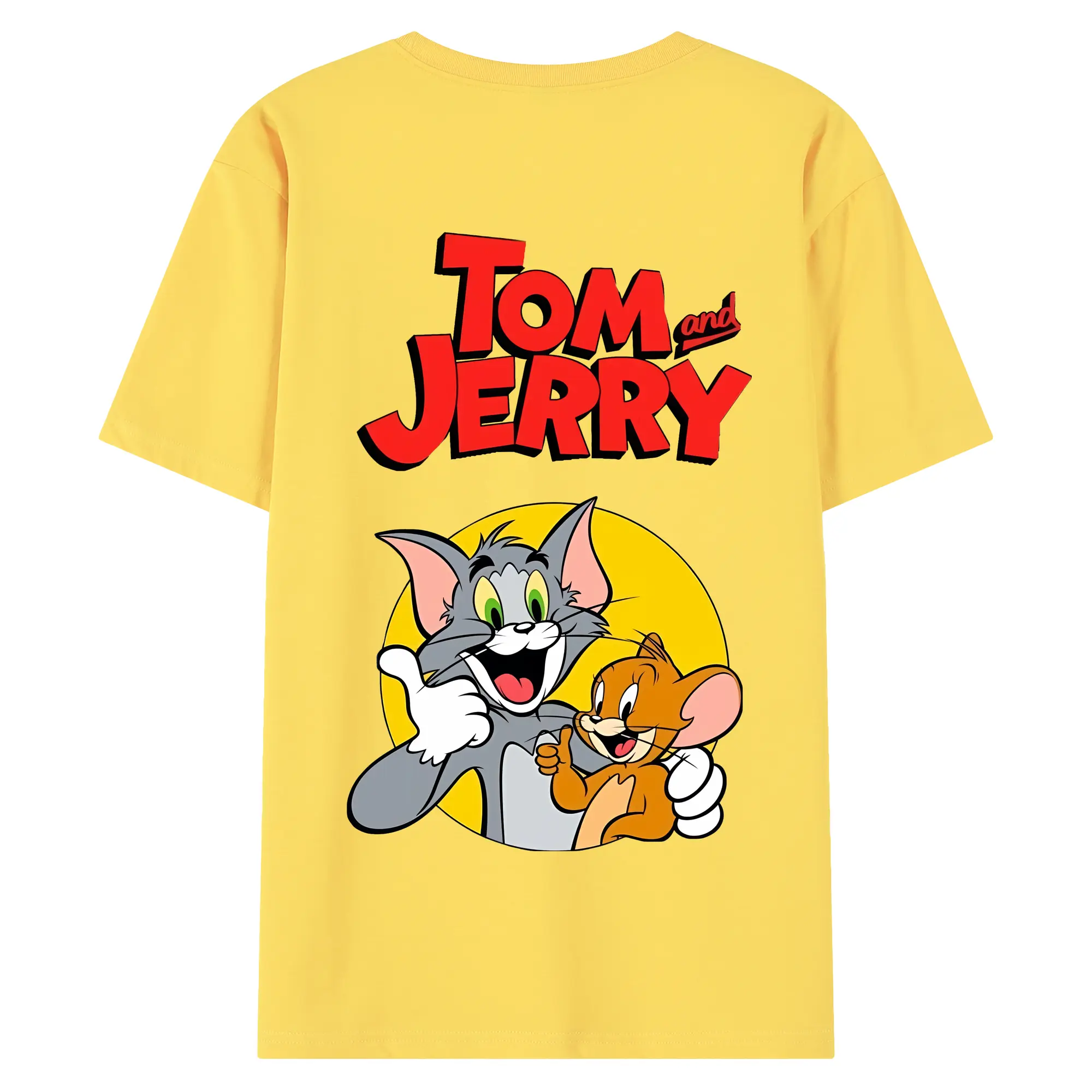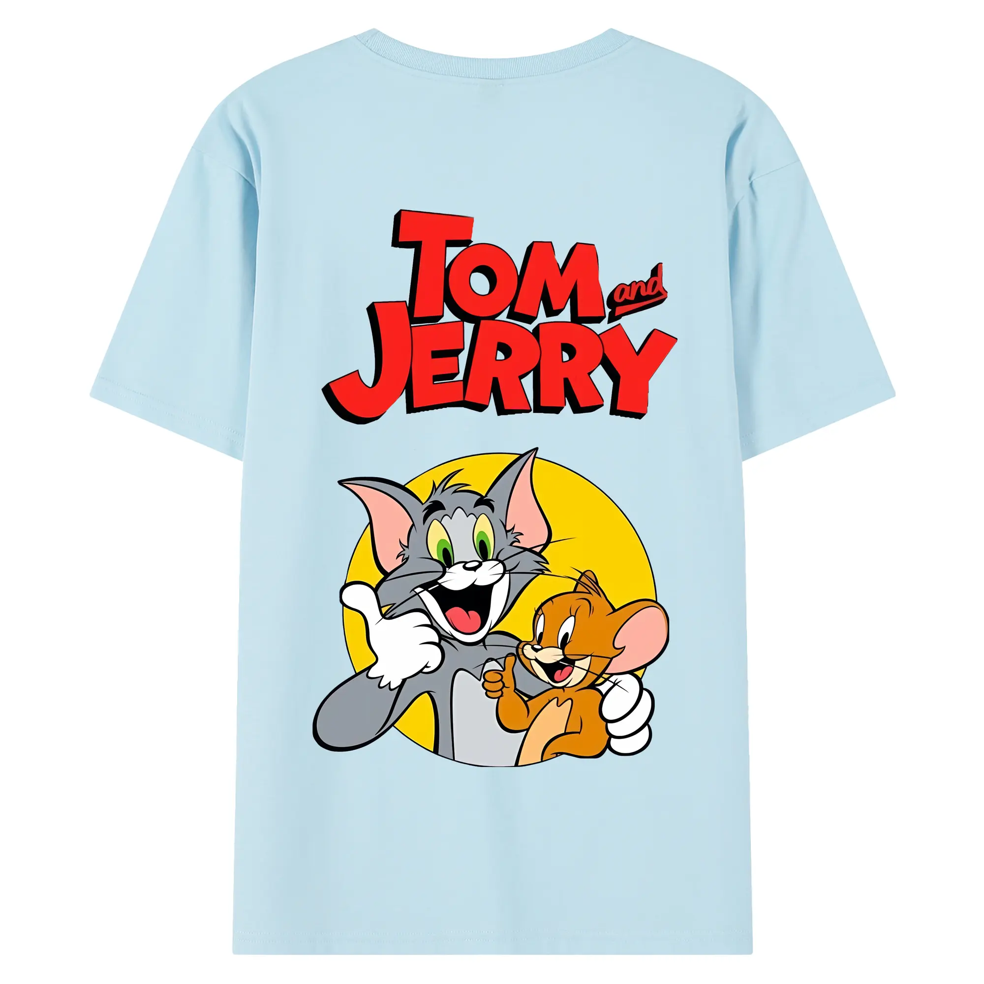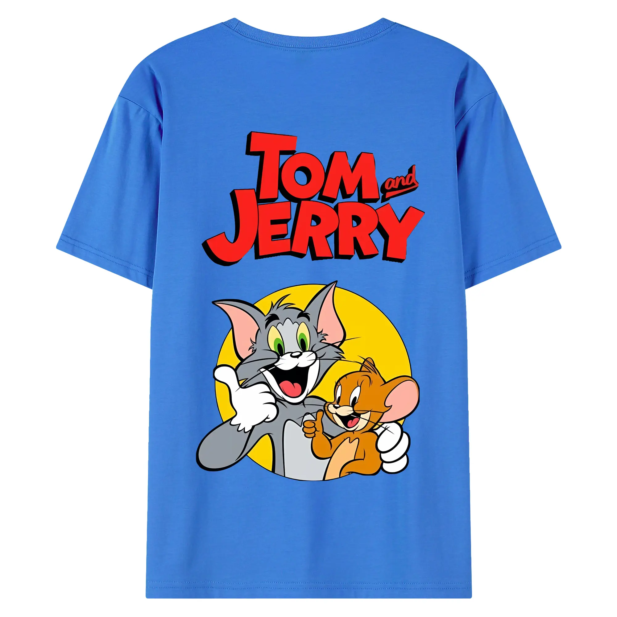 トムとジェリー グッズ トム - 綿100% 半袖Tシャツ ・ フロントプリント ・ 快適 通気性 ・ 日常使い 散歩 スポーツ用
