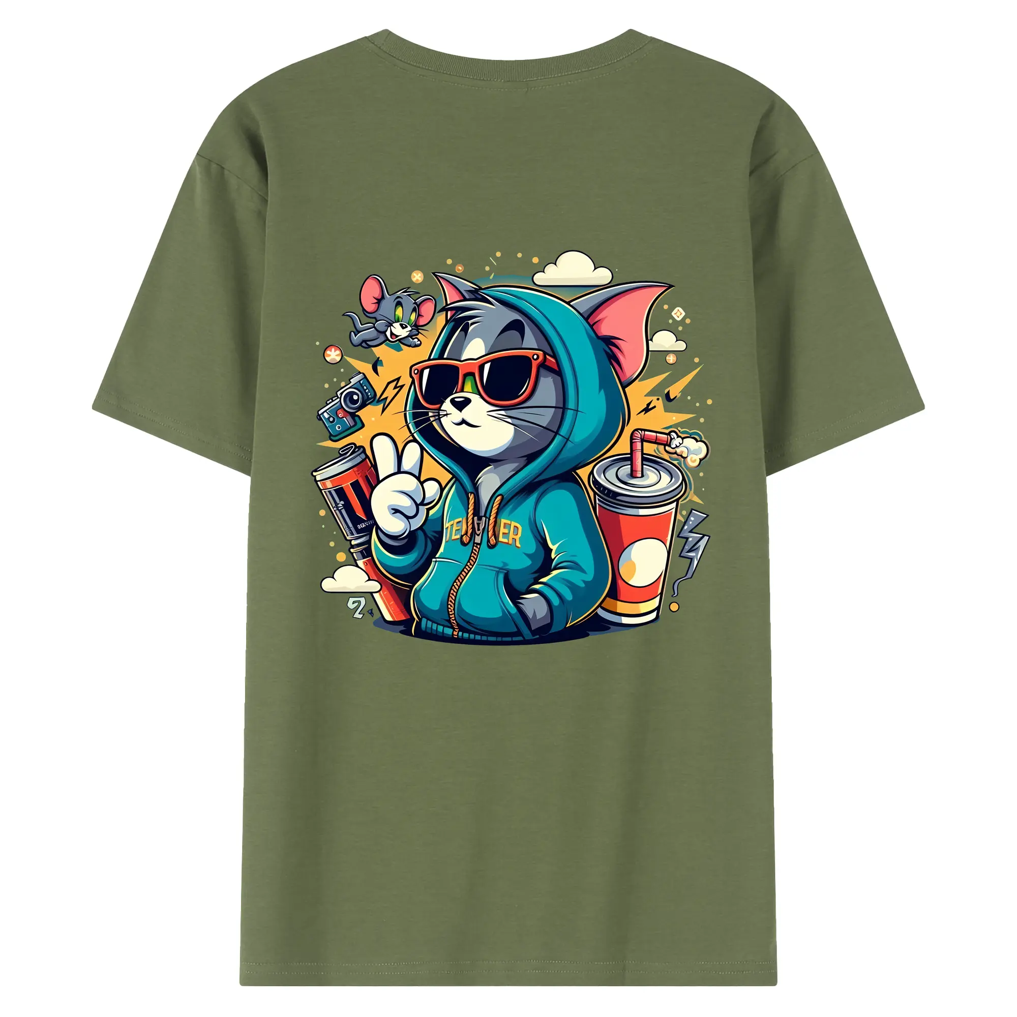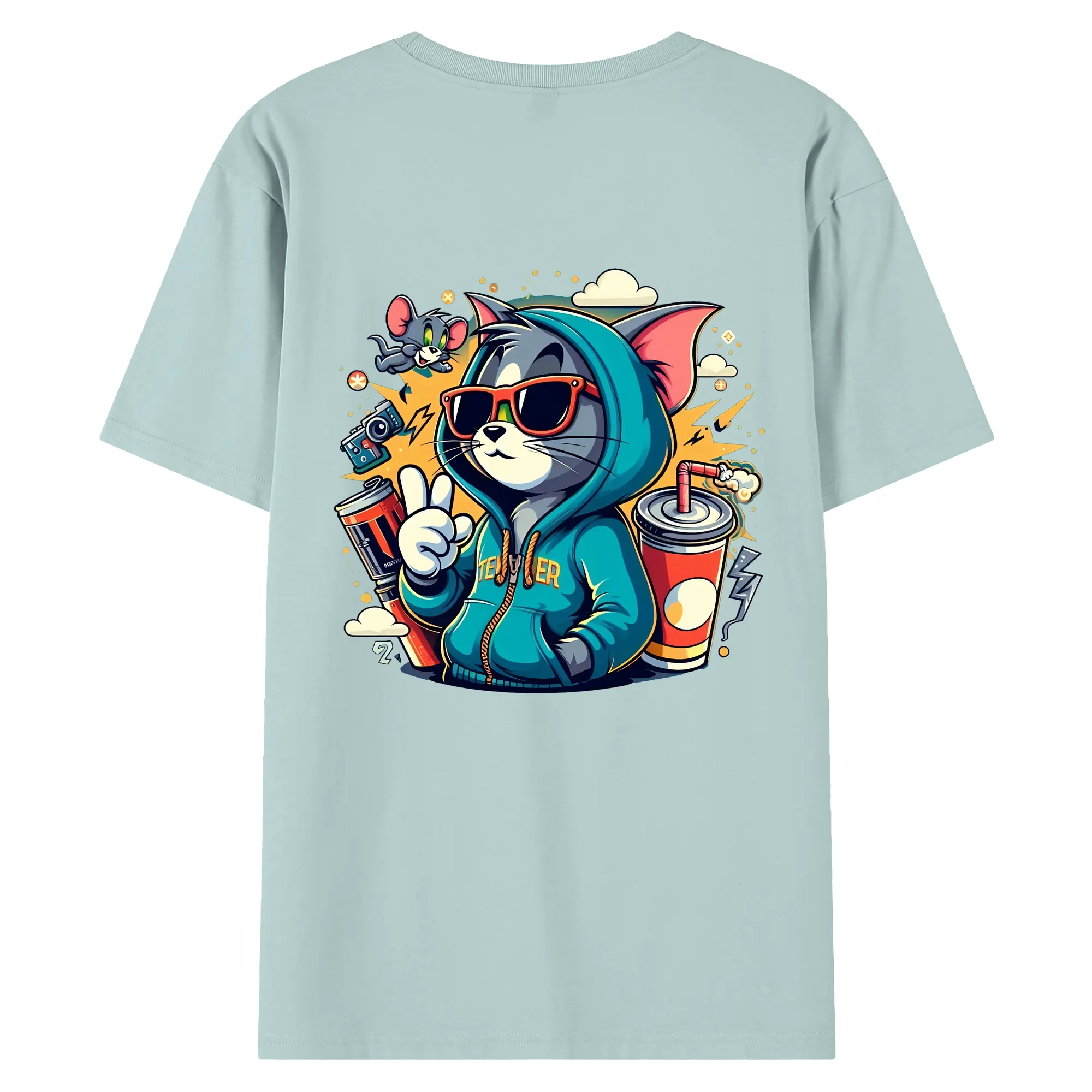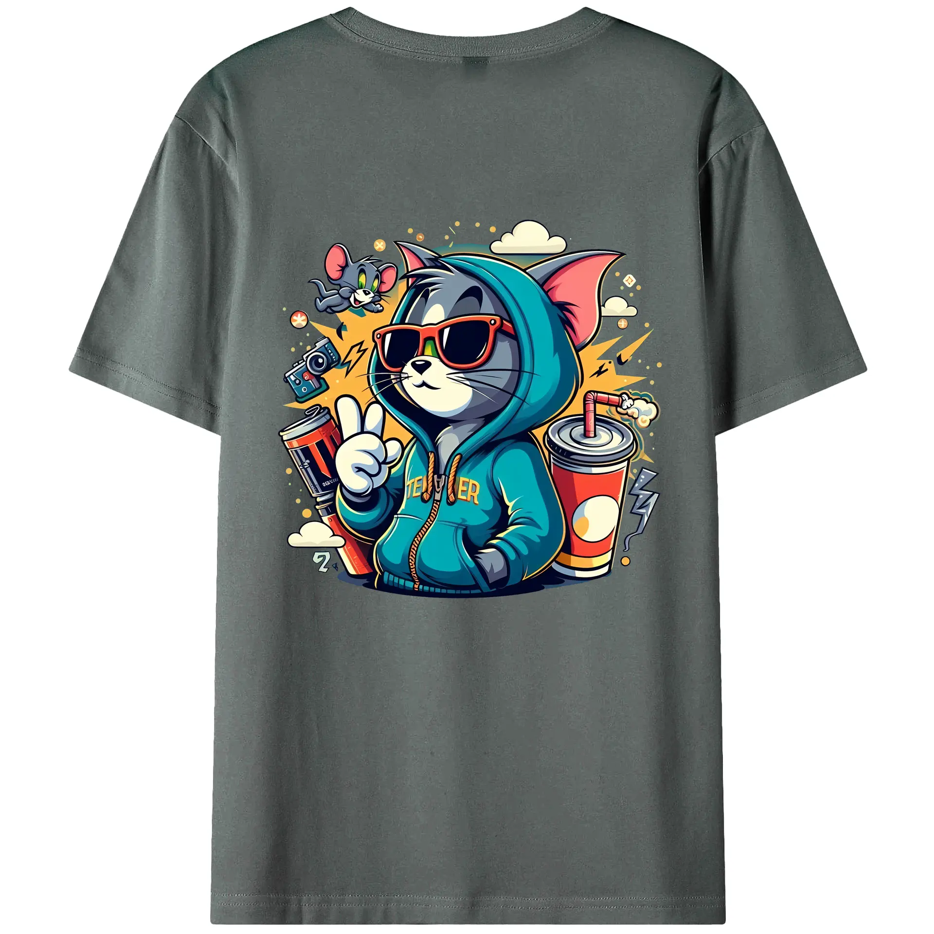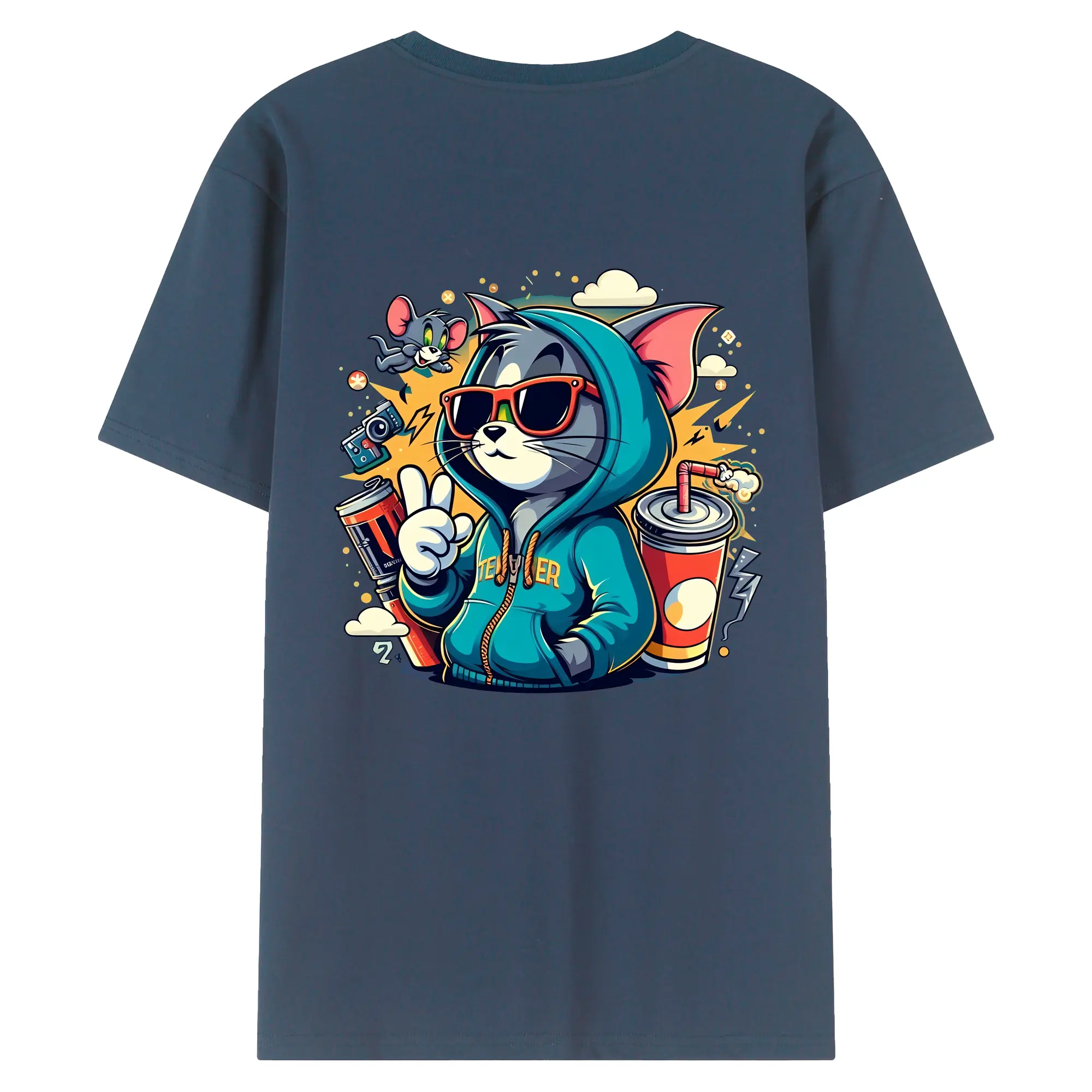 トムとジェリー グッズ トム - 綿100% ヴィンテージ風 半袖Tシャツ ・ 背面プリント ・ 柔らか肌触り ・ 通気性 快適 ・ スポーツ カジュアル 外出用