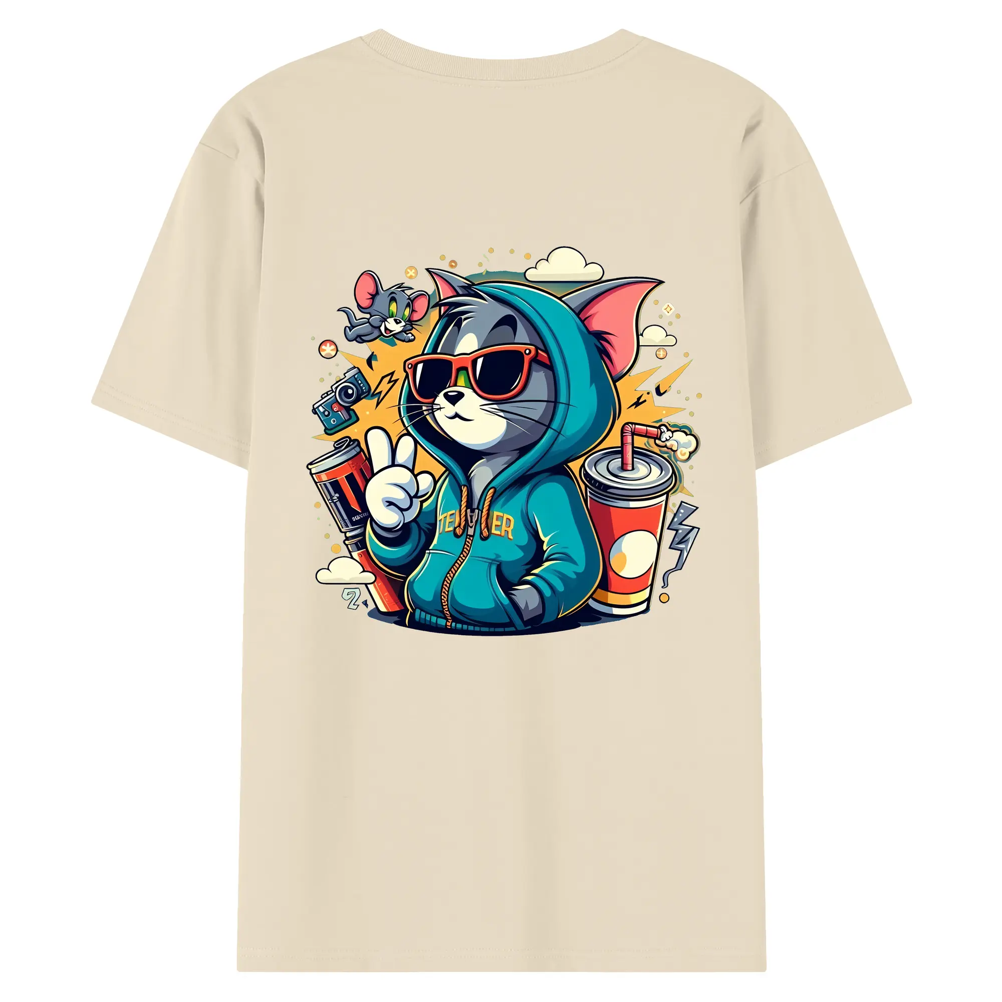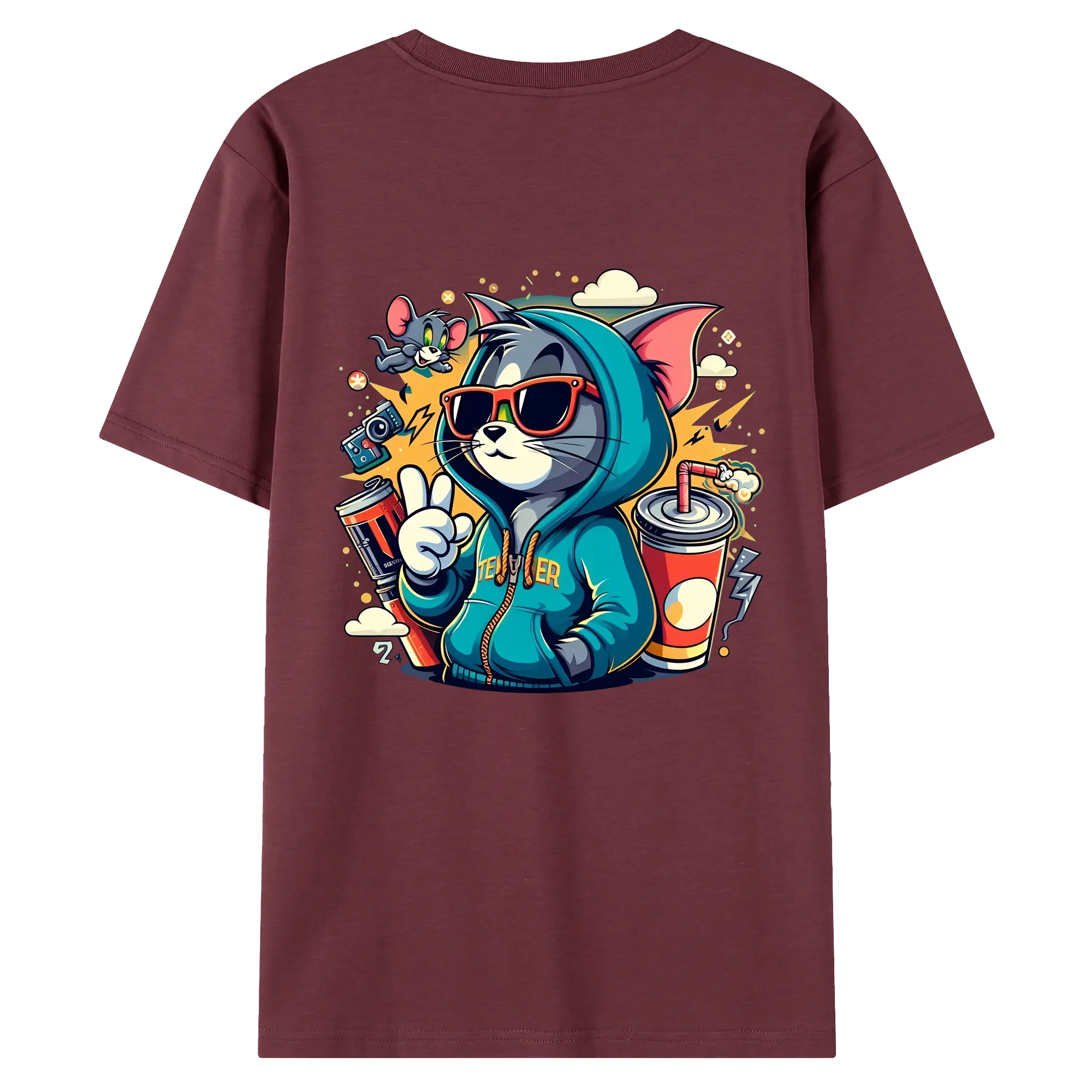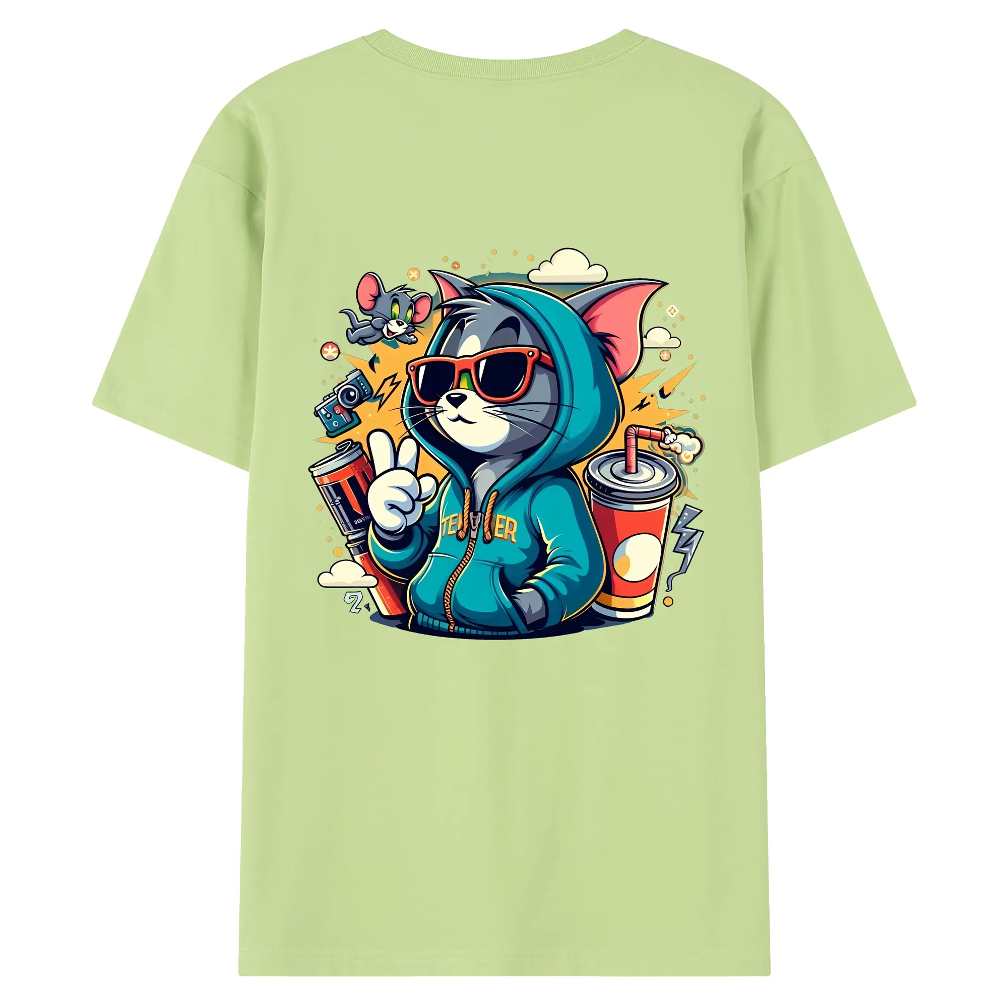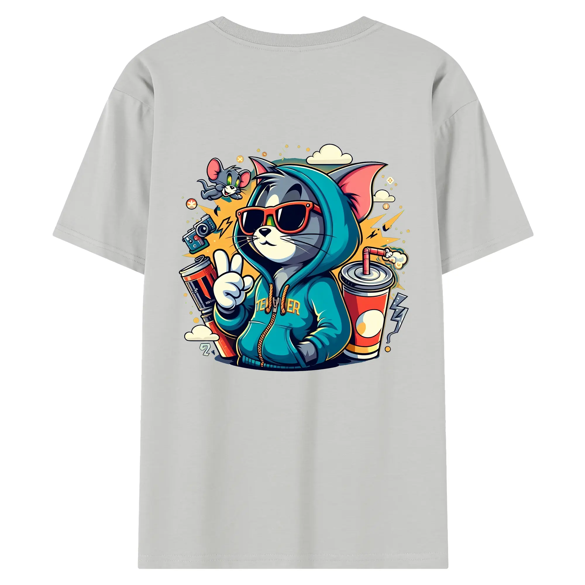 トムとジェリー グッズ トム - 綿100% ヴィンテージ風 半袖Tシャツ ・ 背面プリント ・ 柔らか肌触り ・ 通気性 快適 ・ スポーツ カジュアル 外出用