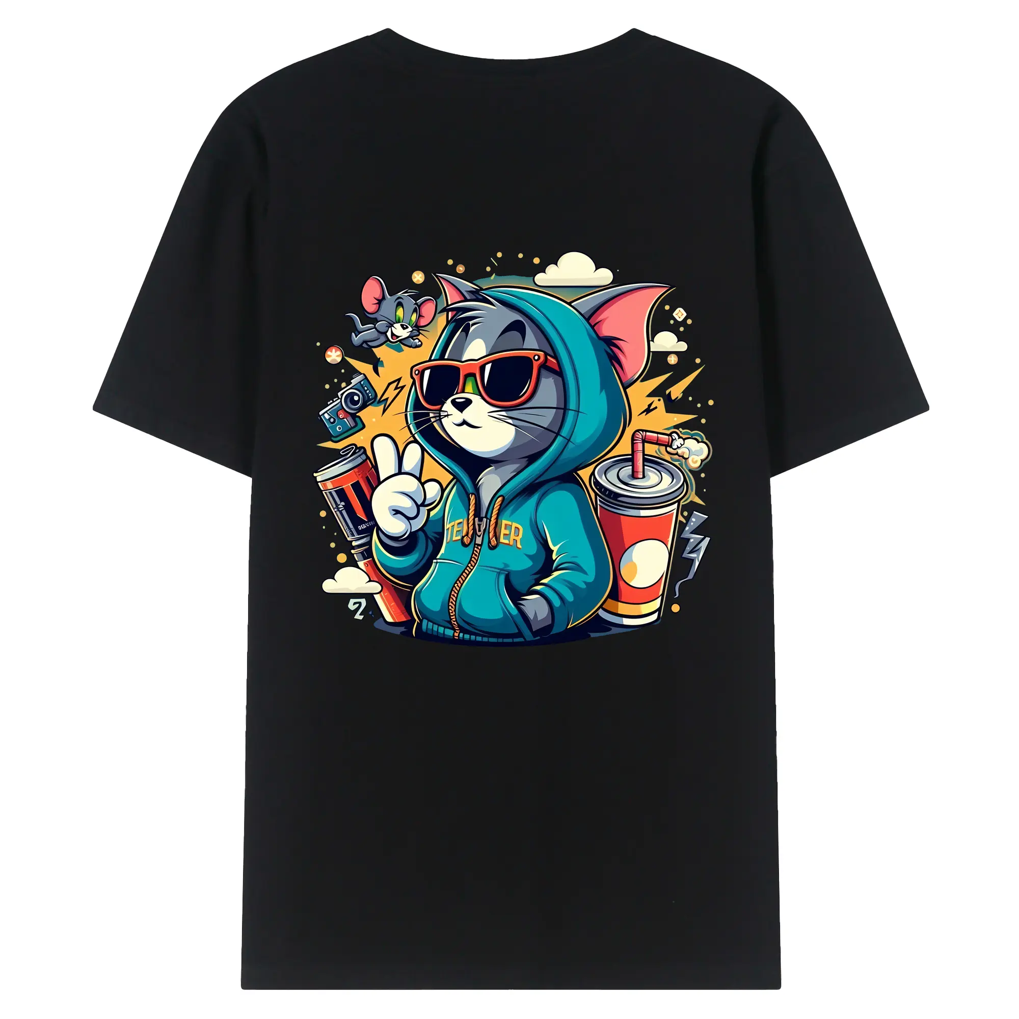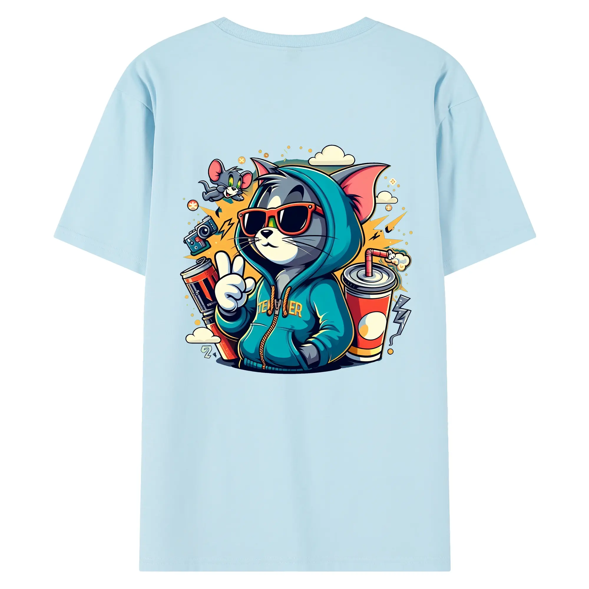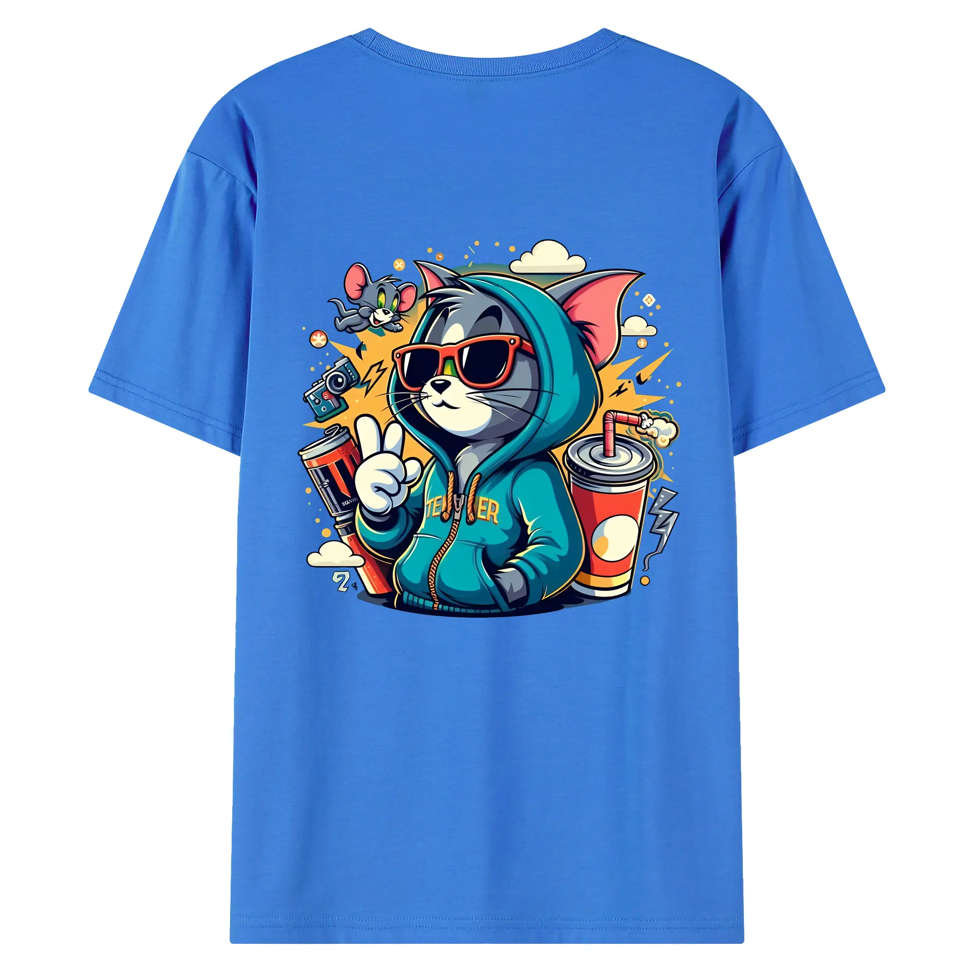 トムとジェリー グッズ トム - 綿100% 半袖Tシャツ ・ フロントプリント ・ 快適 通気性 ・ 日常使い 散歩 スポーツ用