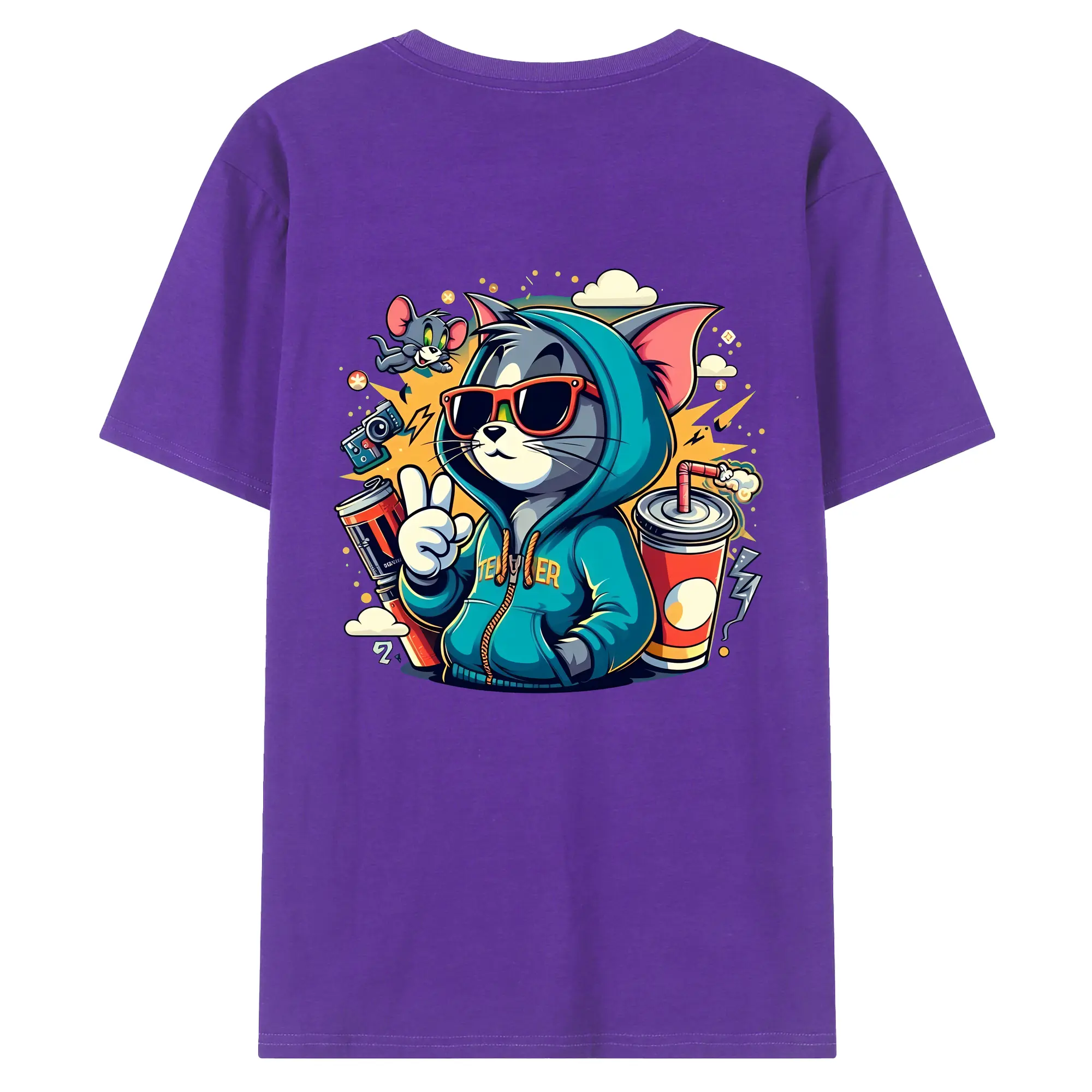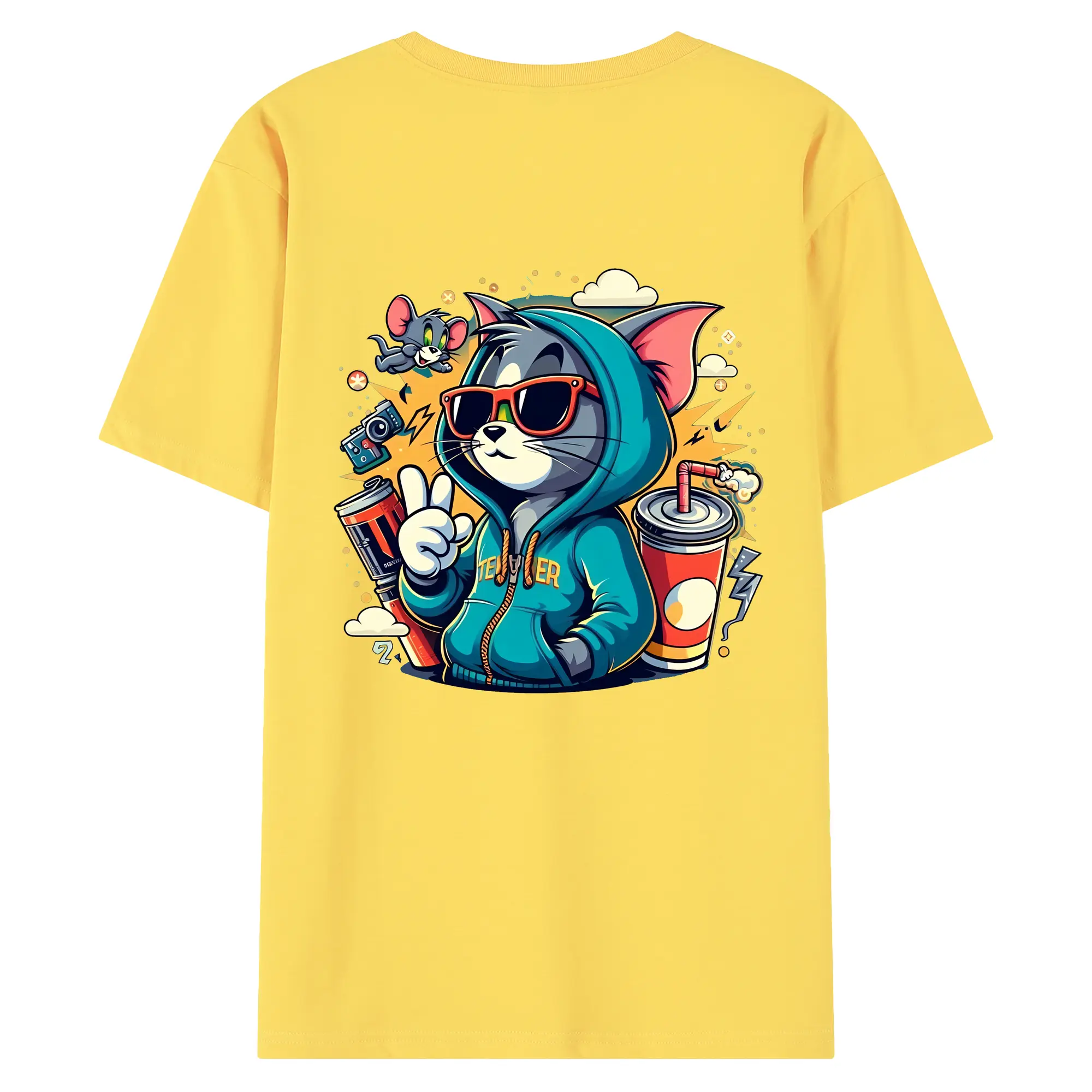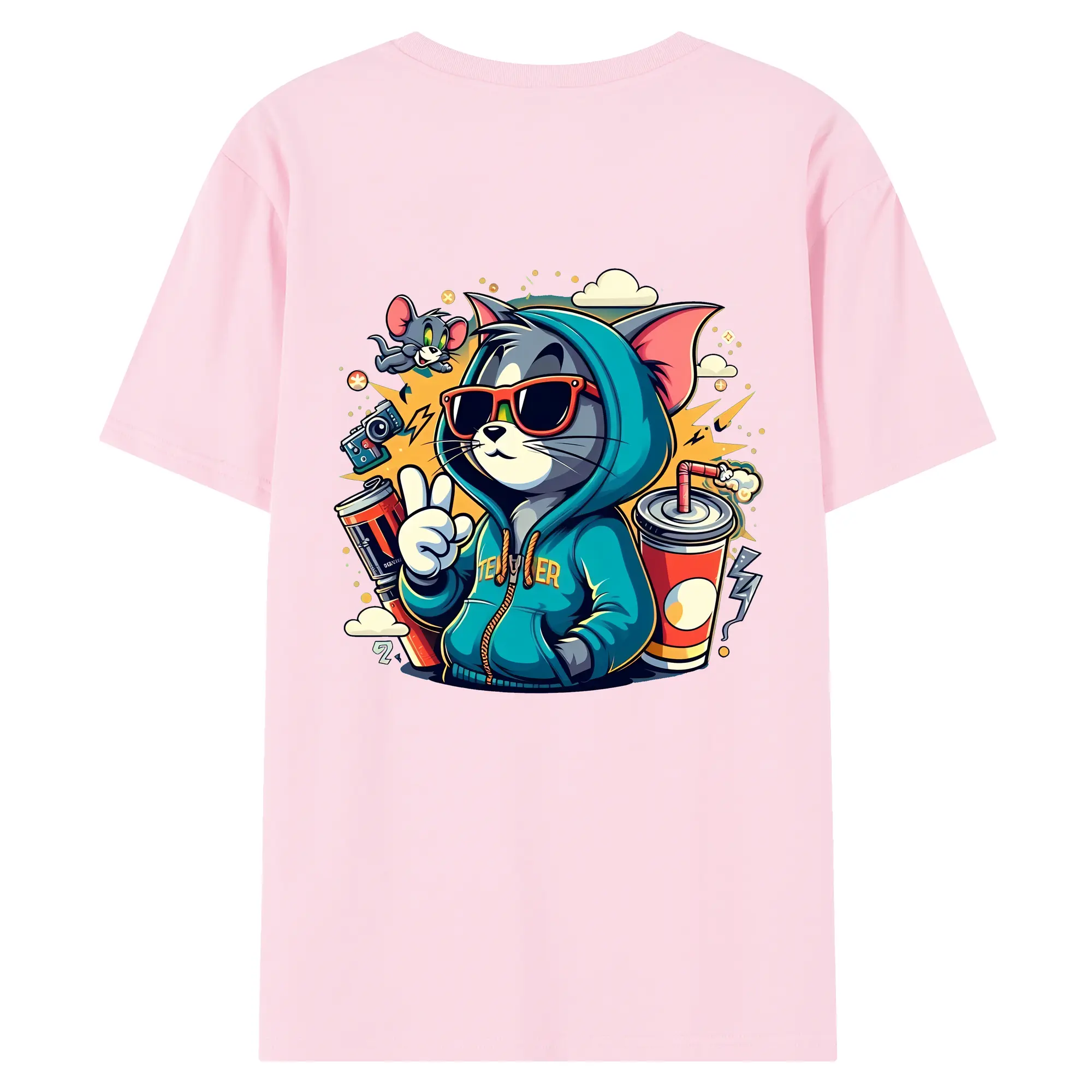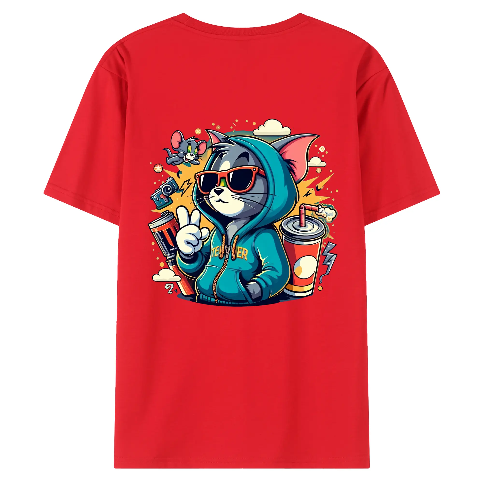 トムとジェリー グッズ トム - 綿100% 半袖Tシャツ ・ フロントプリント ・ 快適 通気性 ・ 日常使い 散歩 スポーツ用