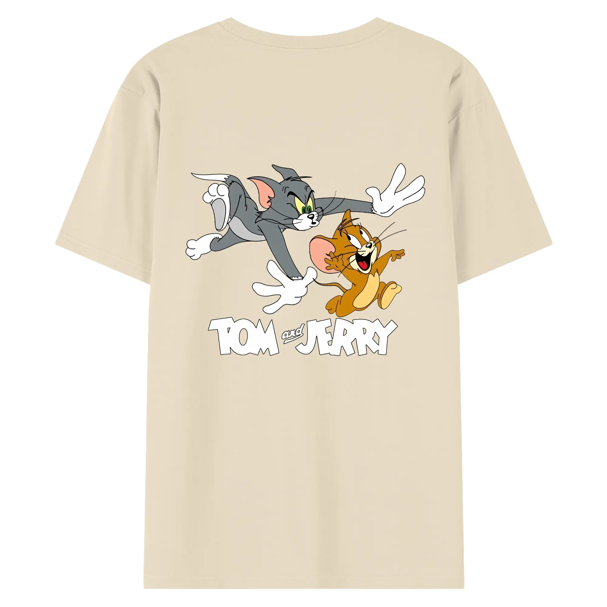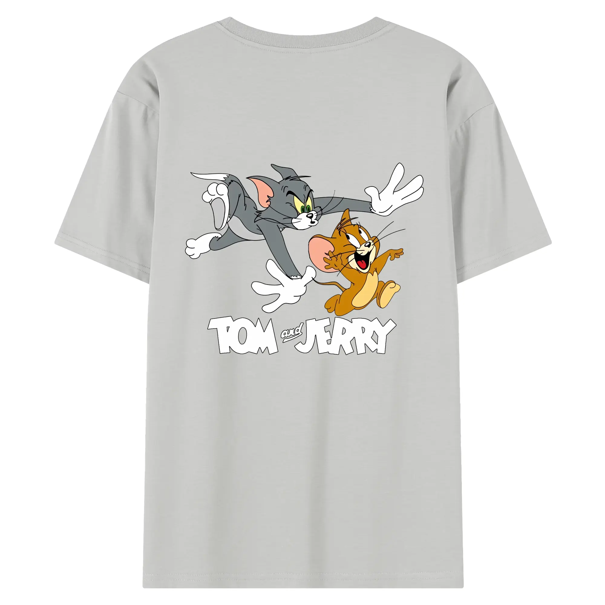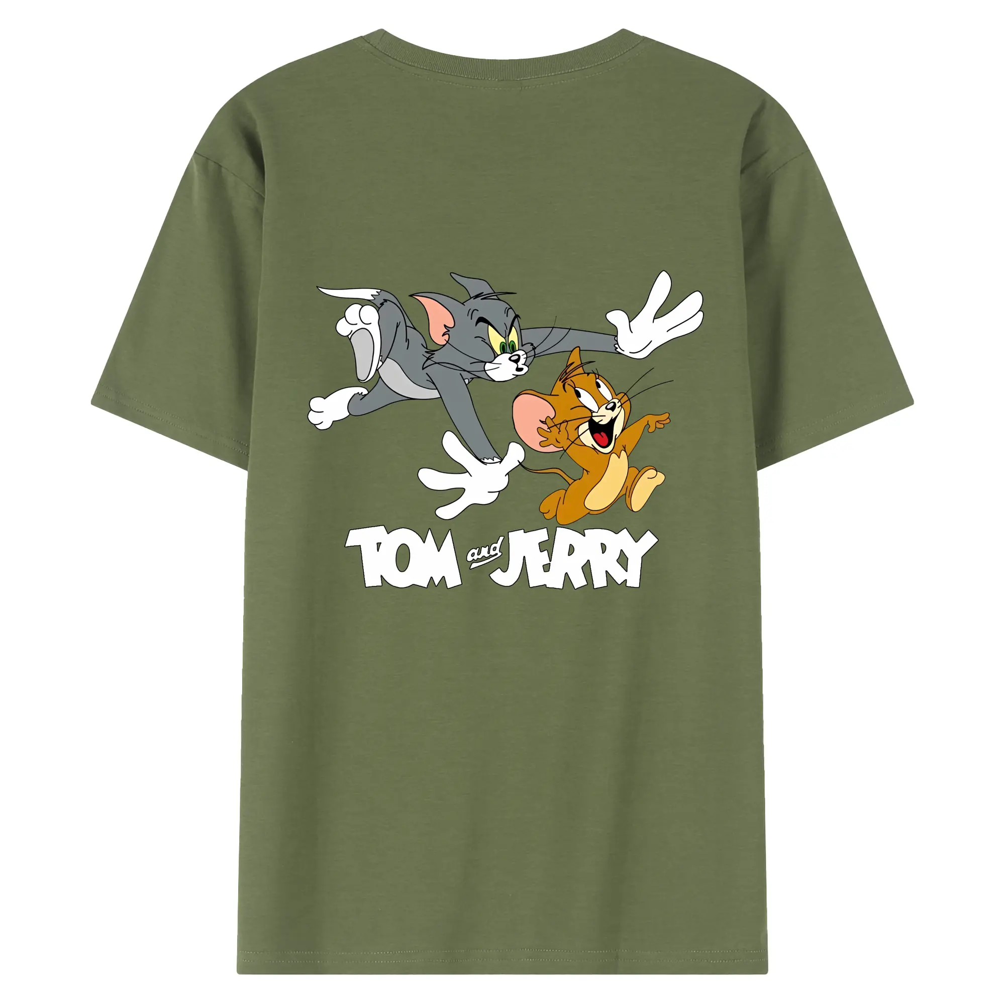 トムとジェリー グッズ トム - 綿100% ヴィンテージ風 半袖Tシャツ ・ 背面プリント ・ 柔らか肌触り ・ 通気性 快適 ・ スポーツ カジュアル 外出用