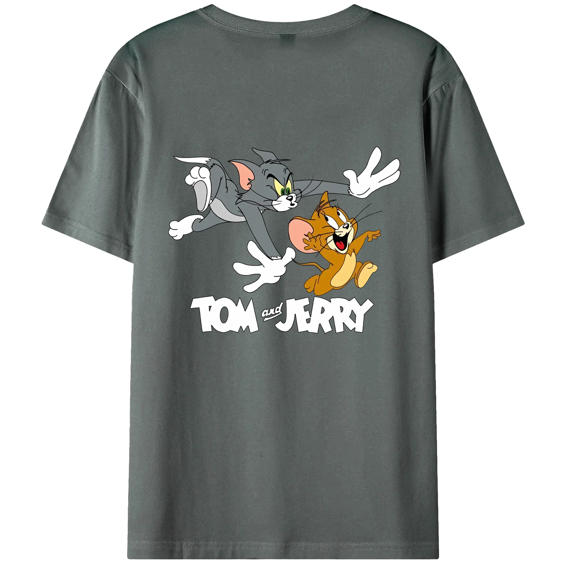 トムとジェリー グッズ トム - 綿100% 半袖Tシャツ ・ フロントプリント ・ 快適 通気性 ・ 日常使い 散歩 スポーツ用