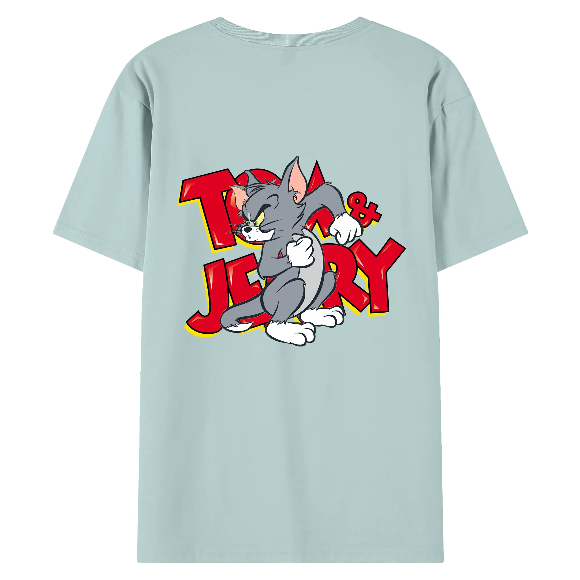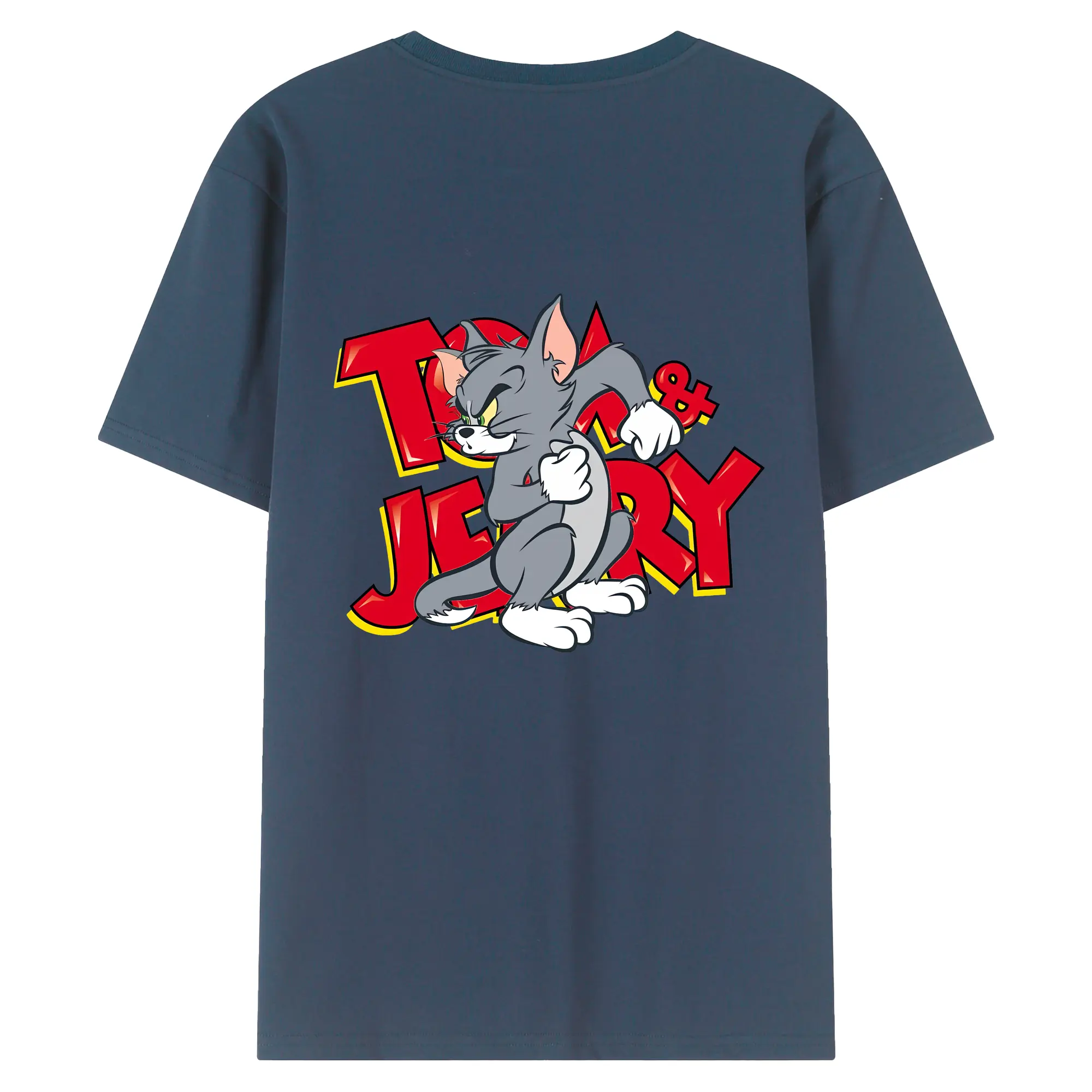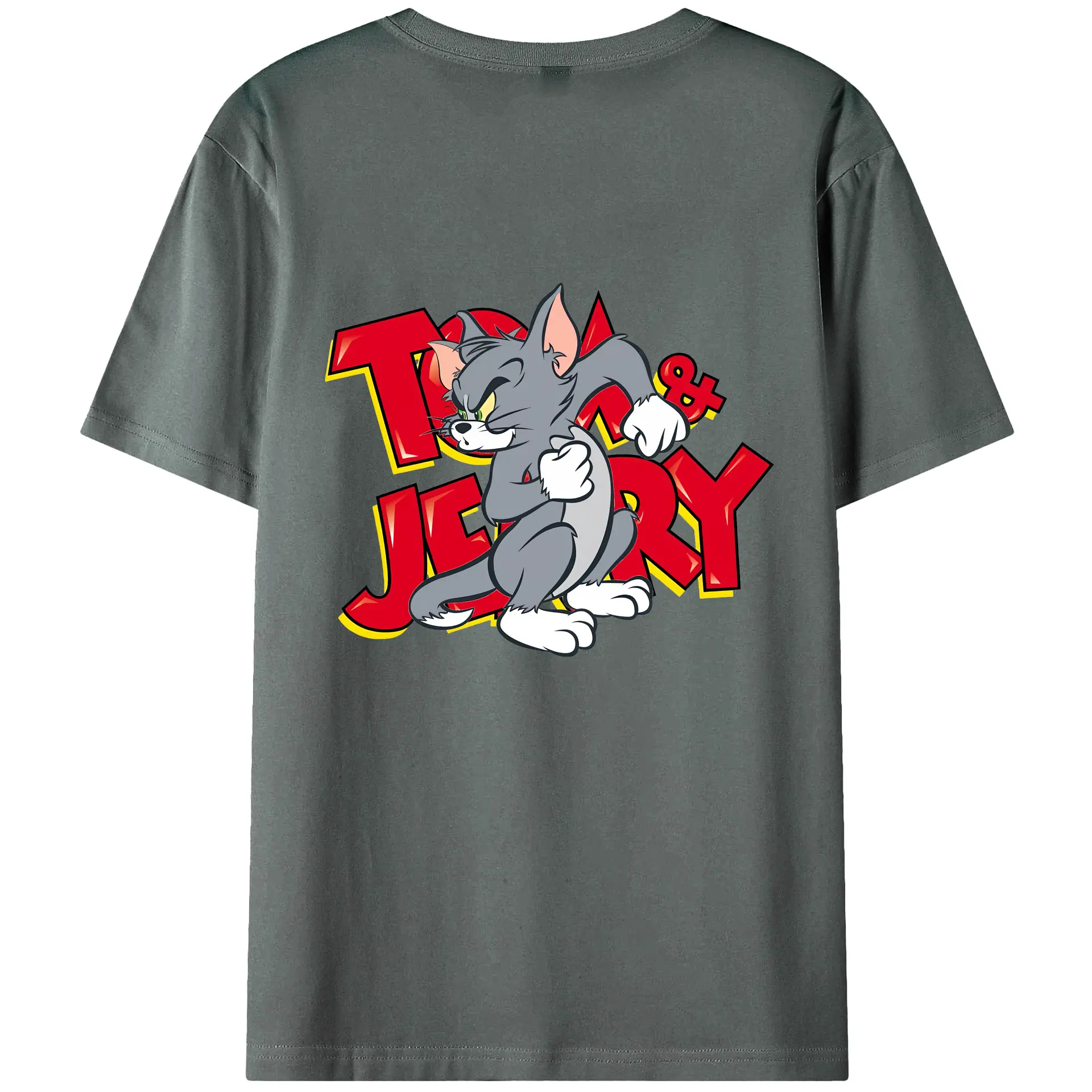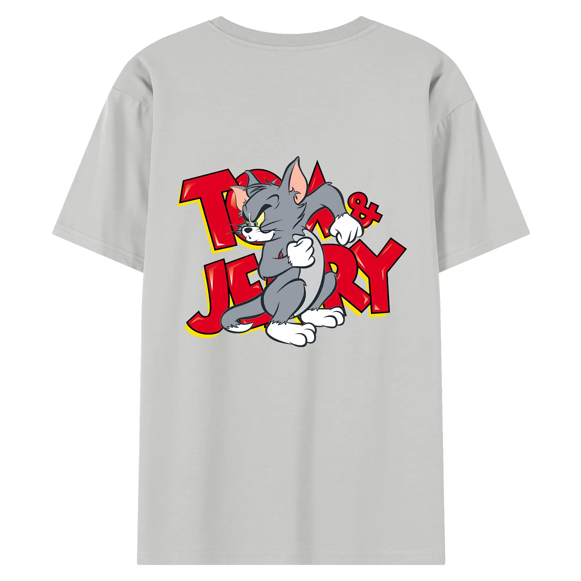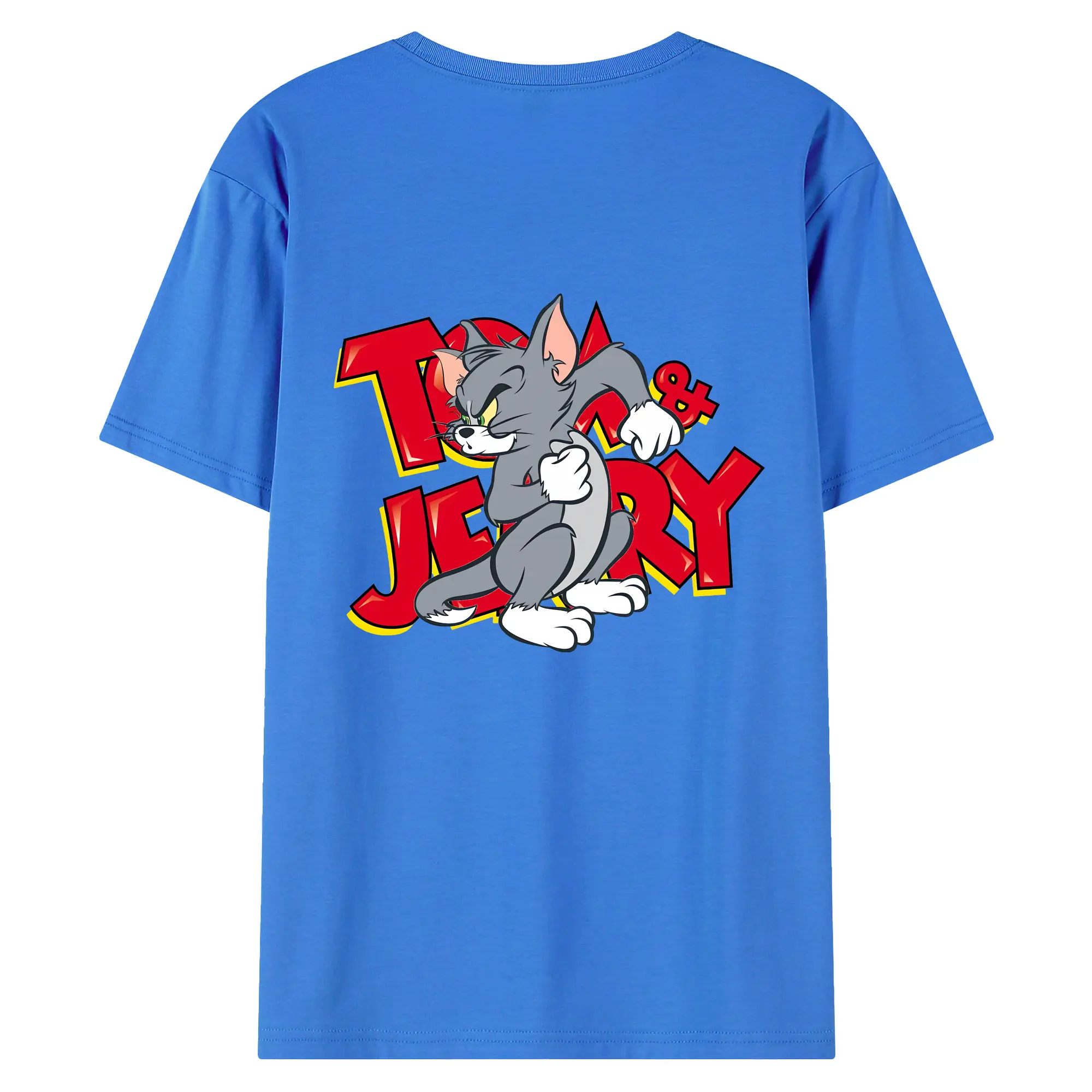 トムとジェリー グッズ トム - 綿100% 半袖Tシャツ ・ バックプリント ・ 快適 通気性 ・ 日常使い 散歩 スポーツ用