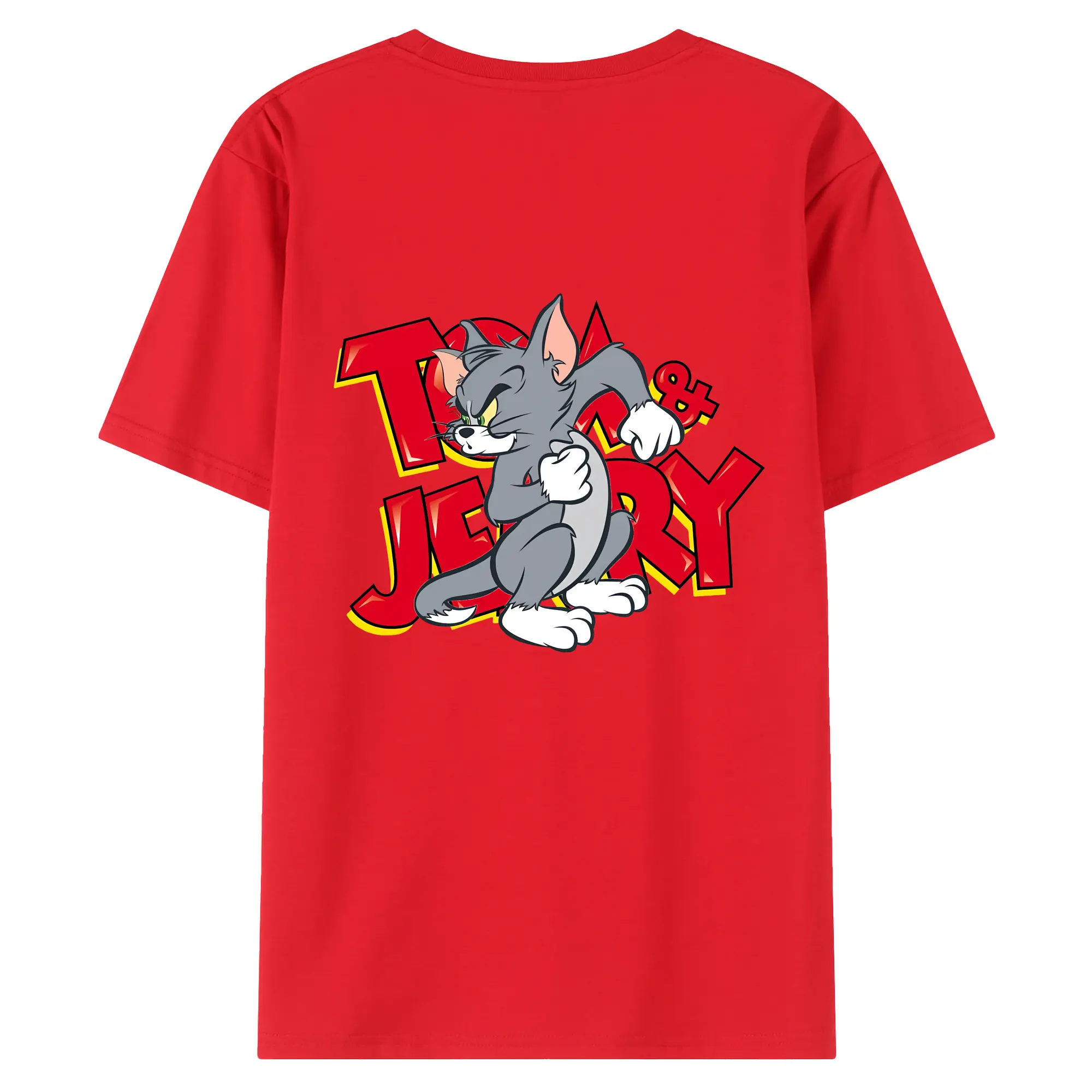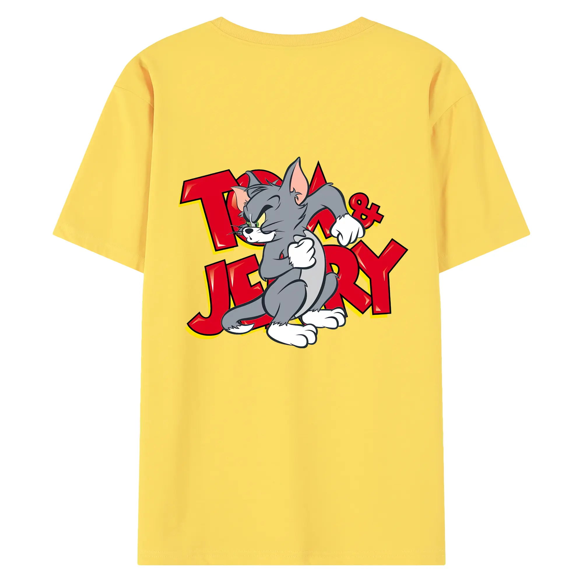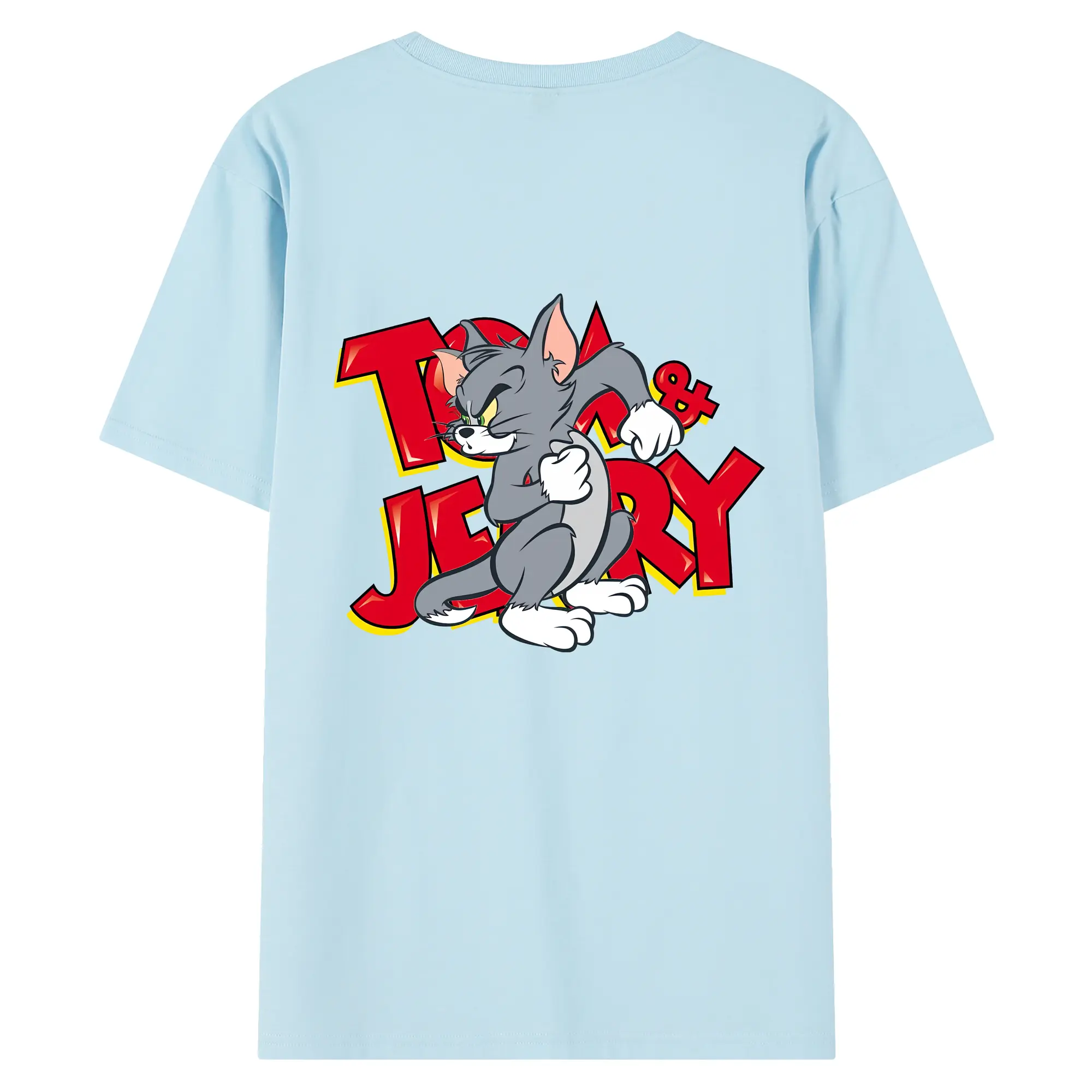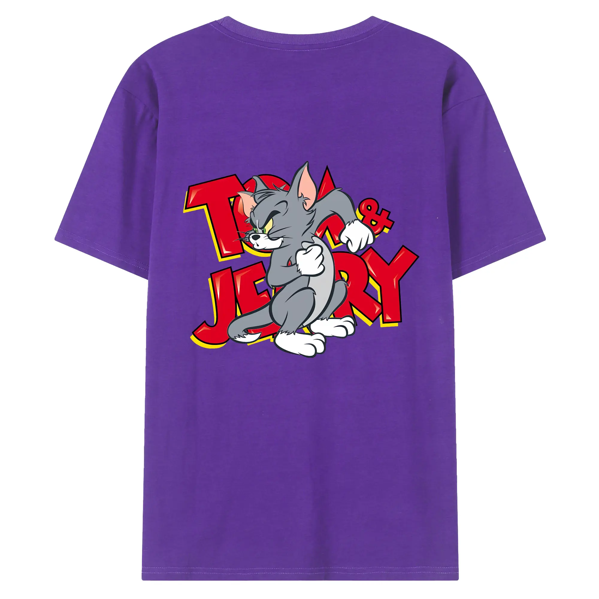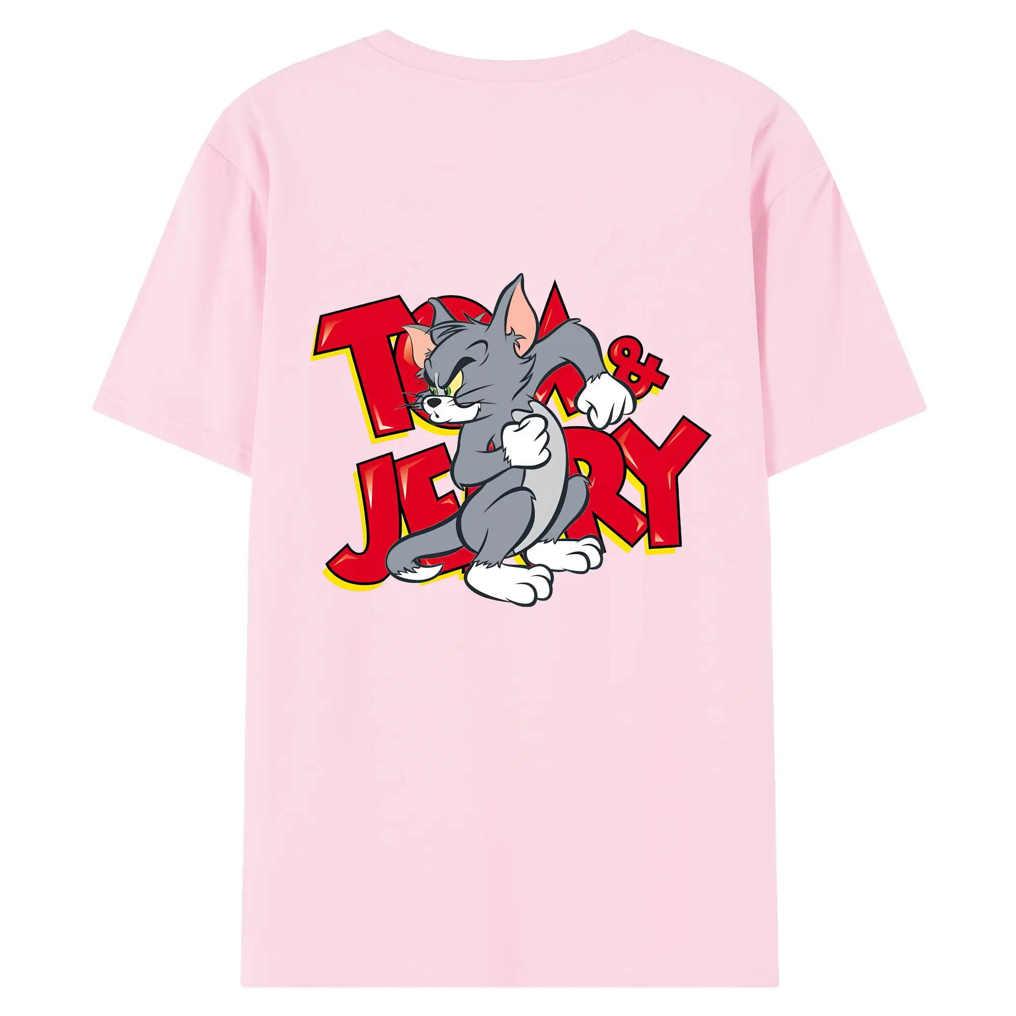 トムとジェリー グッズ トム - 綿100% 半袖Tシャツ ・ バックプリント ・ 快適 通気性 ・ 日常使い 散歩 スポーツ用
