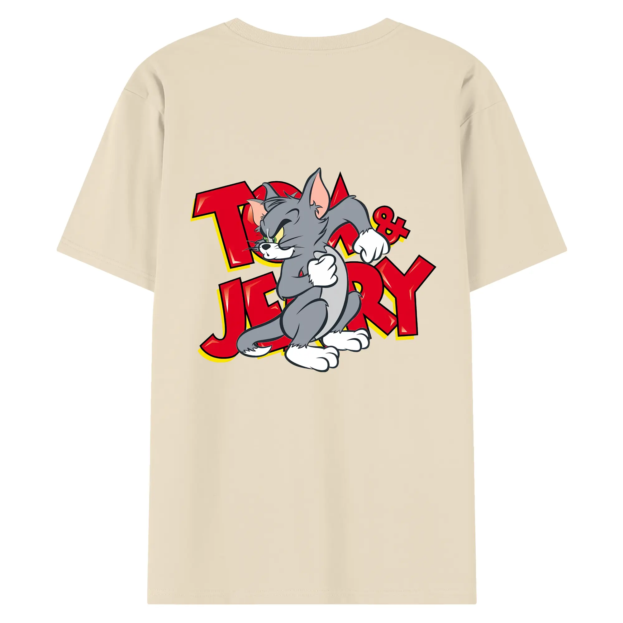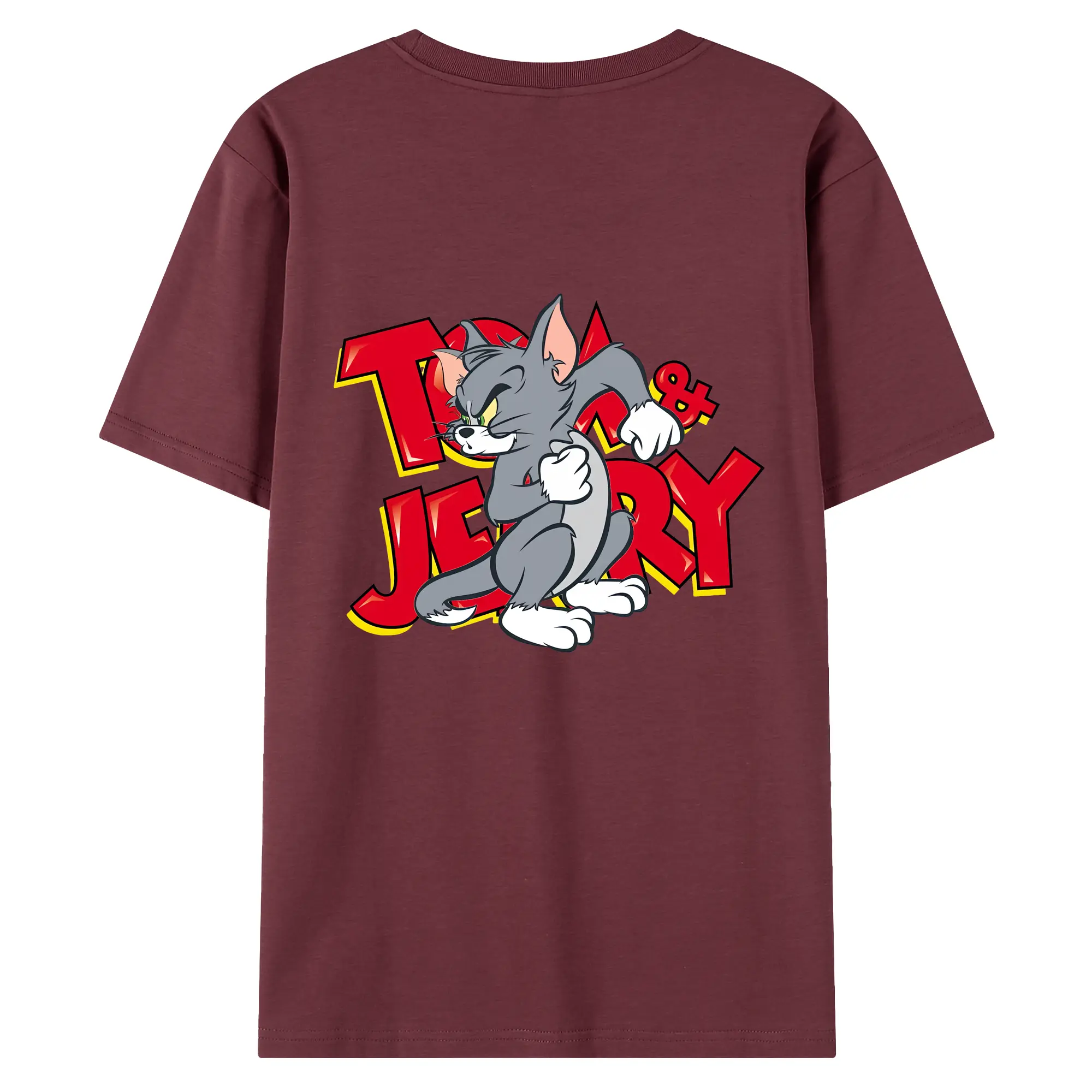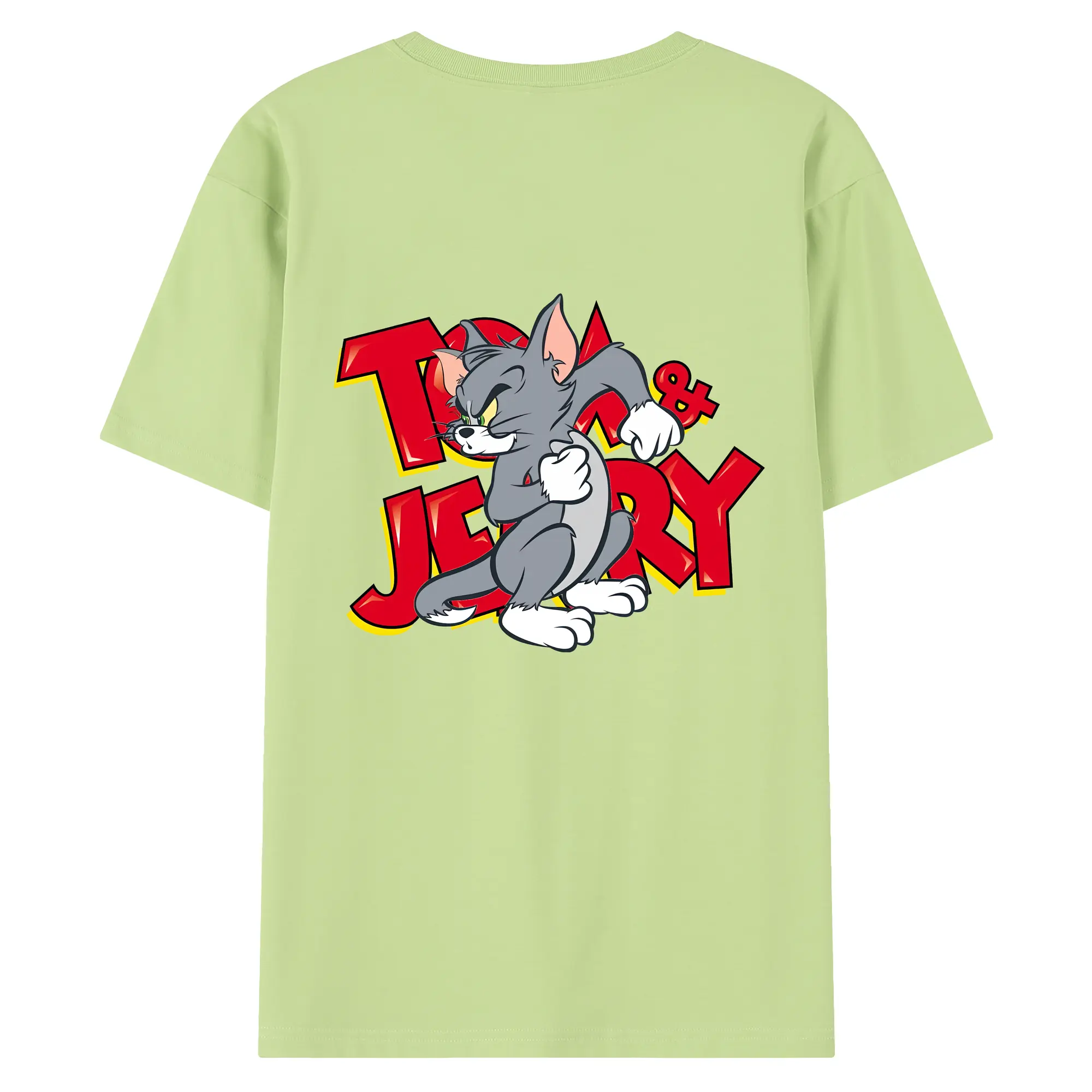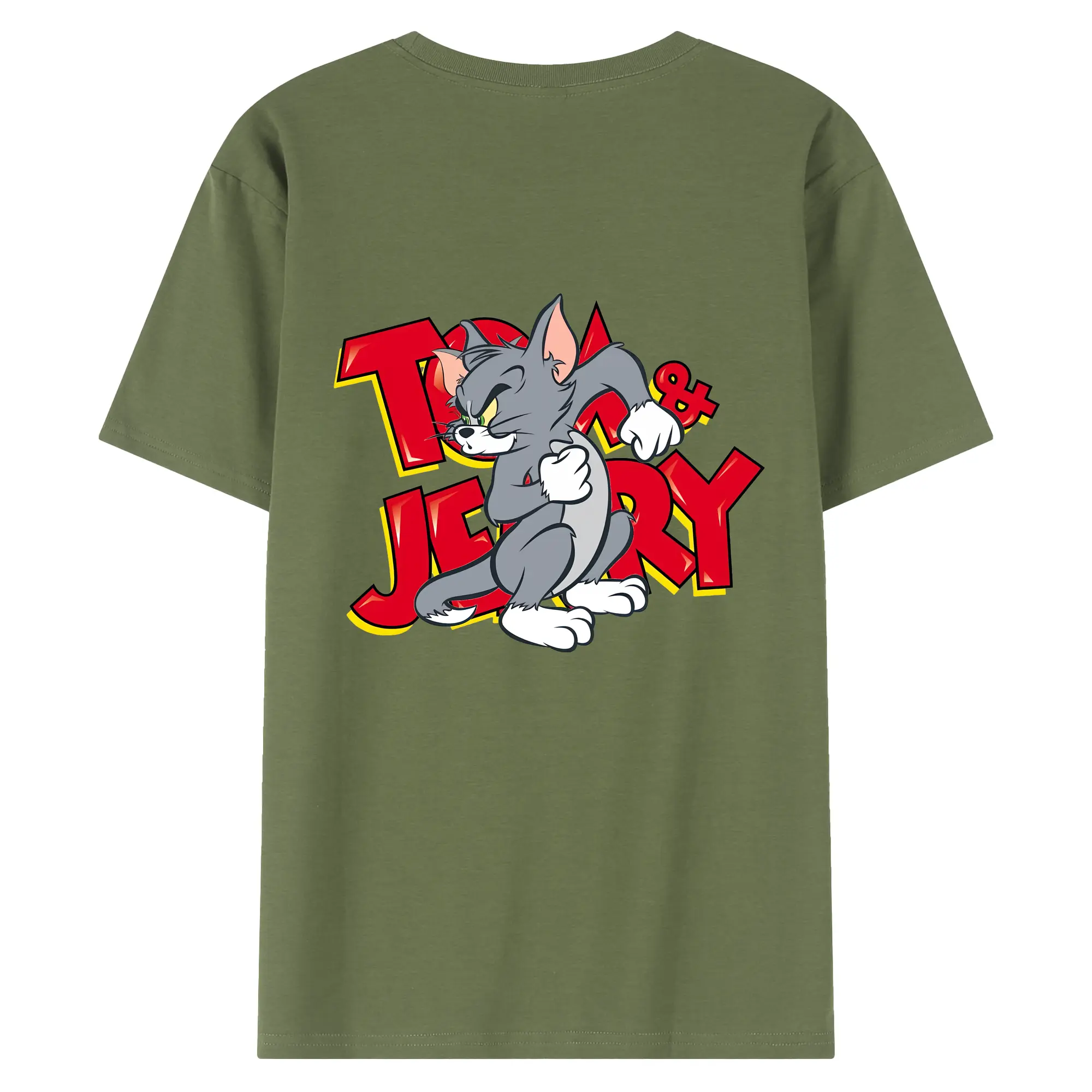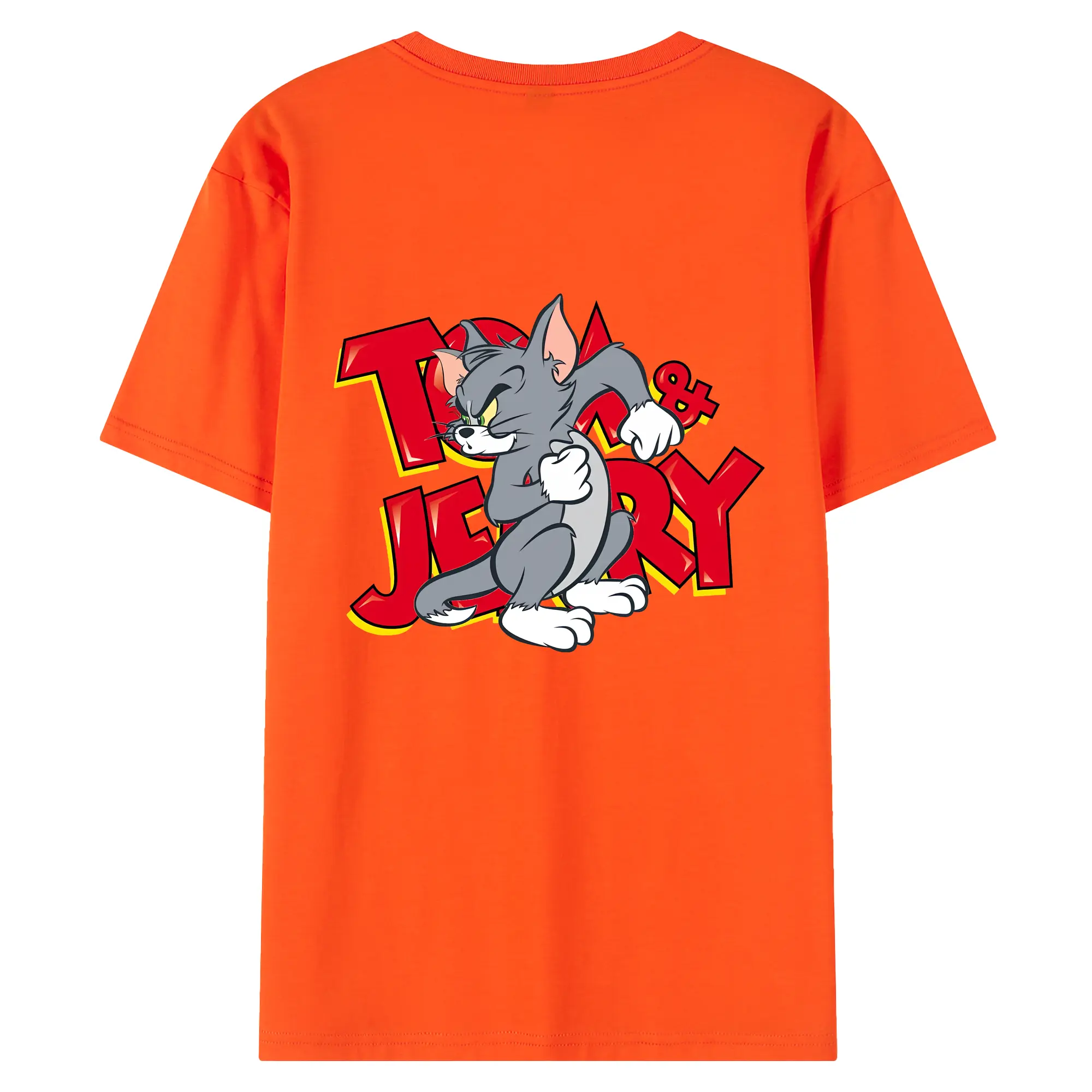 トムとジェリー グッズ トム - 綿100% 半袖Tシャツ ・ バックプリント ・ 快適 通気性 ・ 日常使い 散歩 スポーツ用