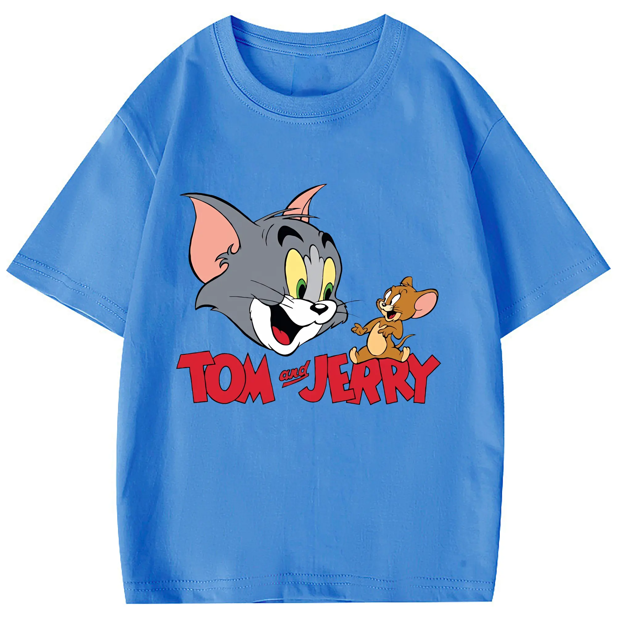 トムとジェリー グッズ トム - 綿100% 半袖Tシャツ ・ フロントプリント ・ 快適 通気性 ・ 日常使い 散歩 スポーツ用