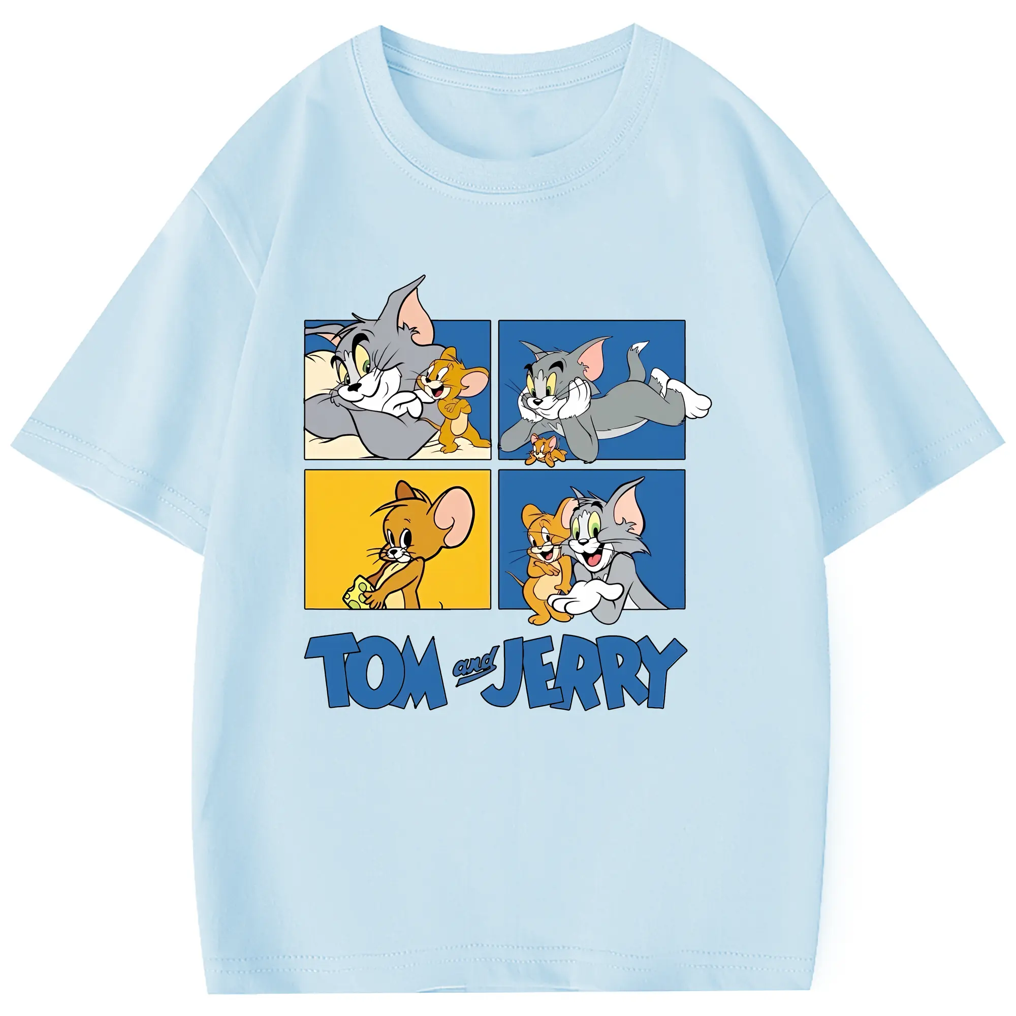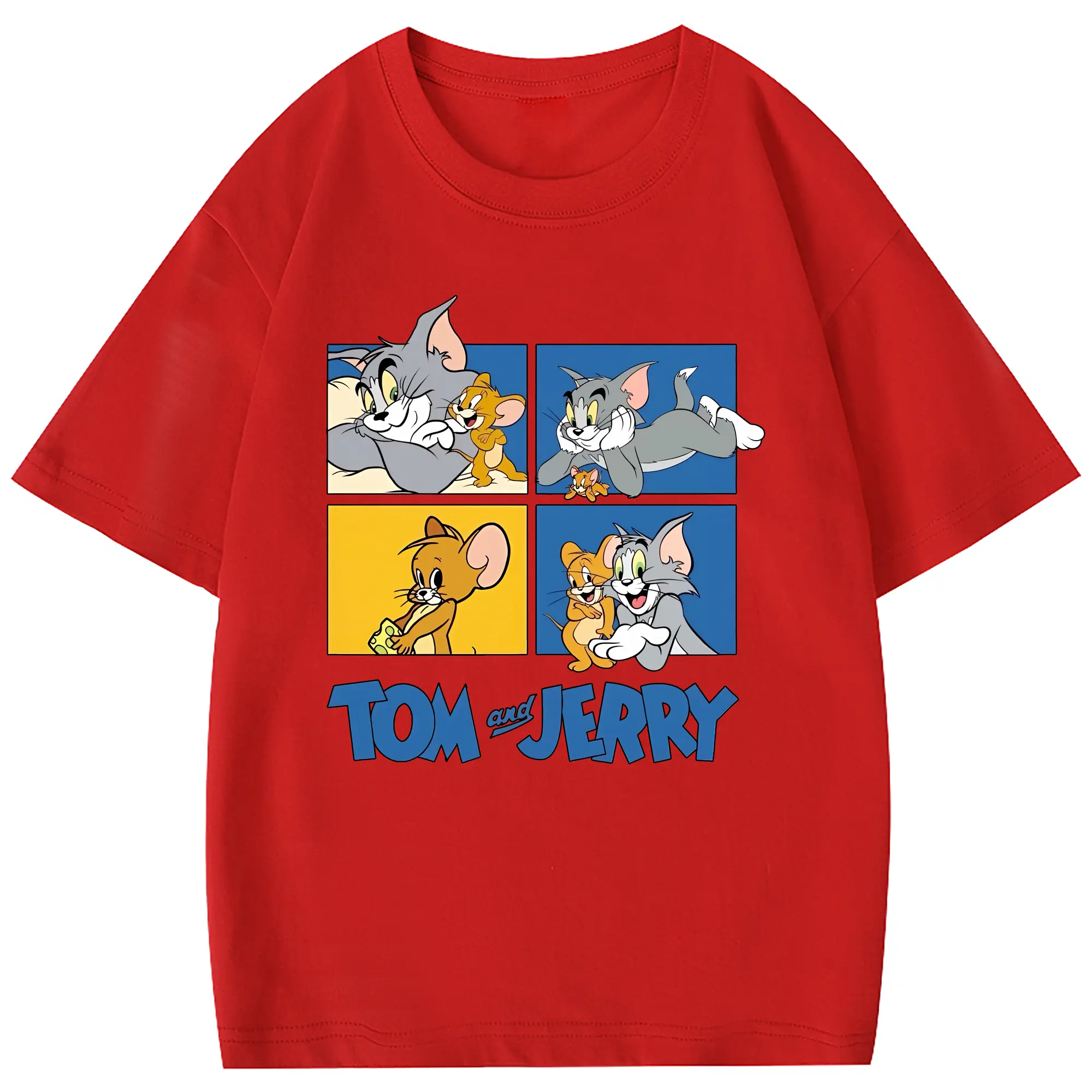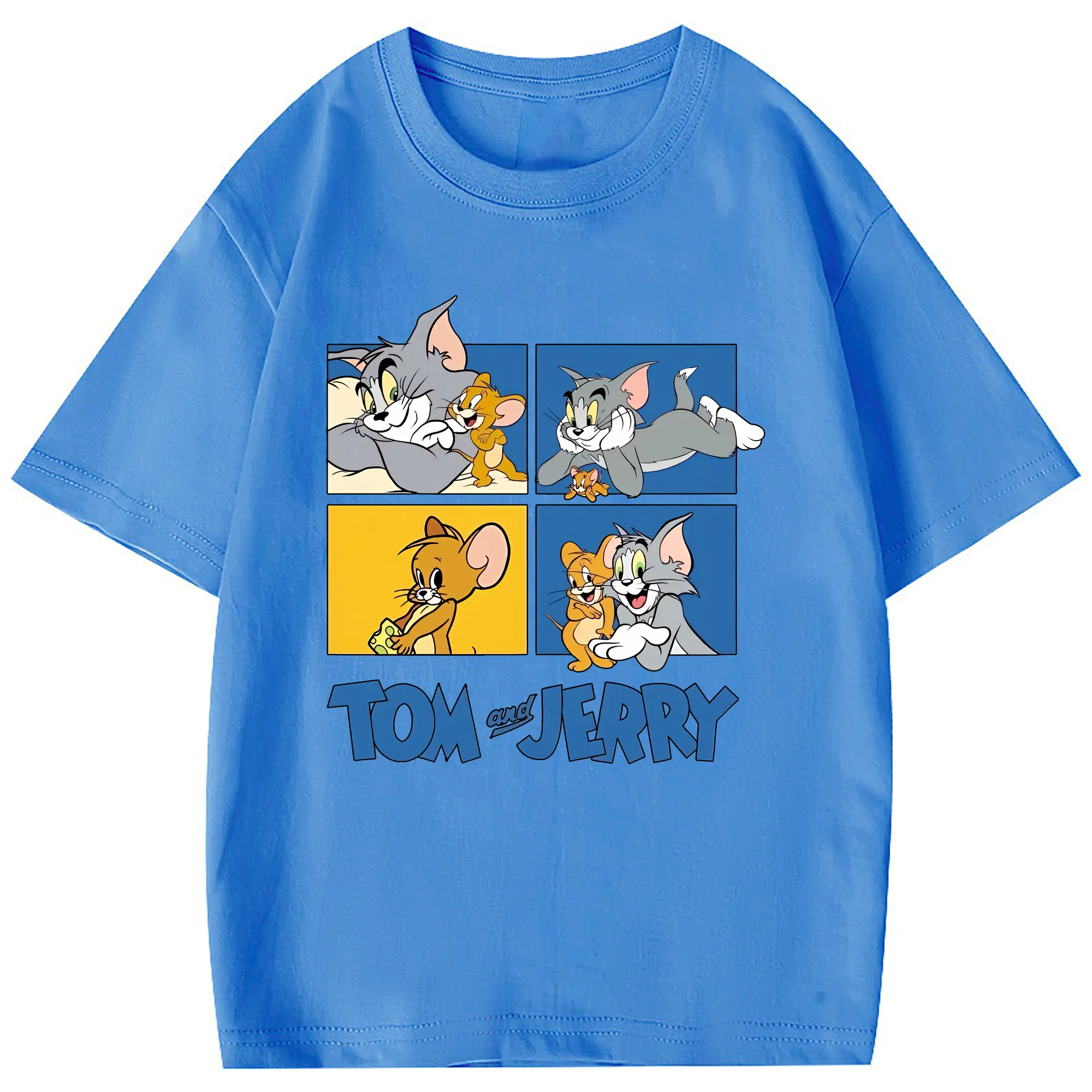 トムとジェリー グッズ トム - 綿100% 半袖Tシャツ ・ フロントプリント ・ 快適 通気性 ・ 日常使い 散歩 スポーツ用