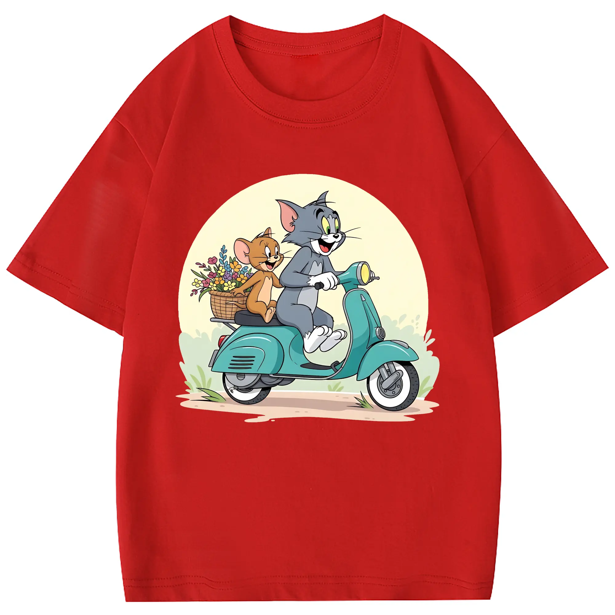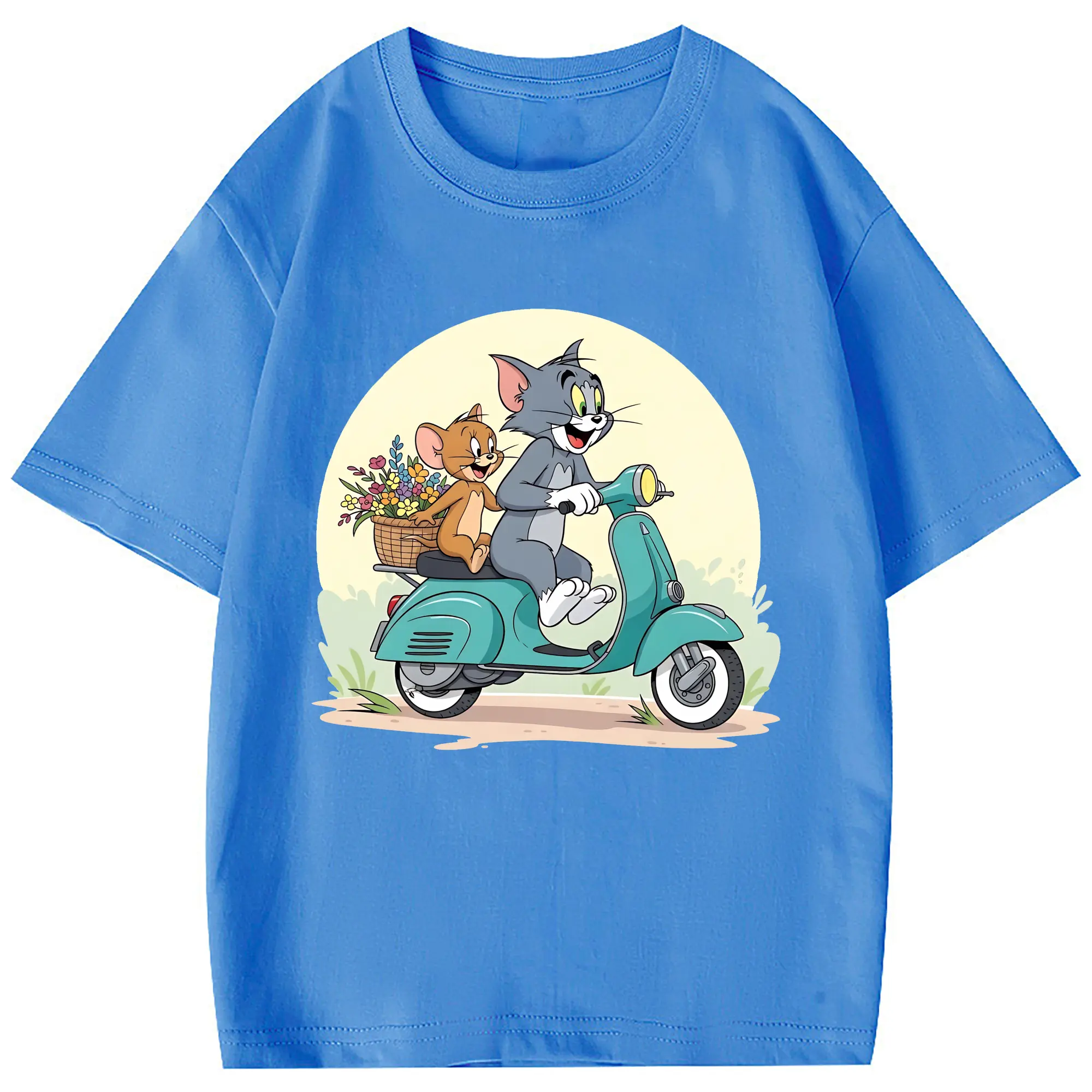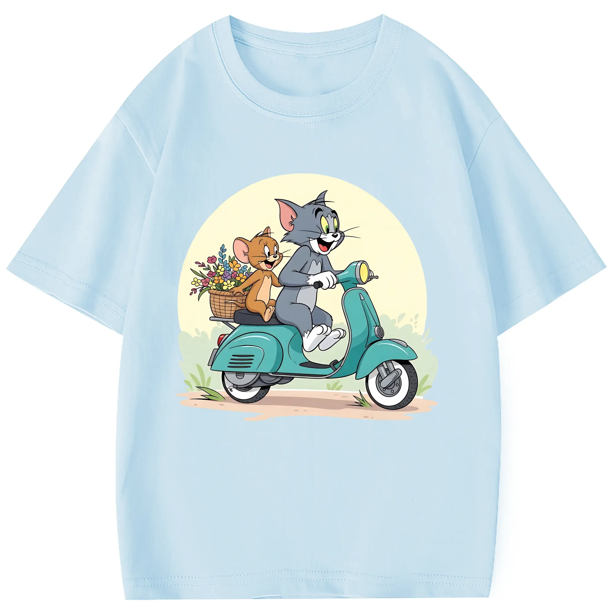 トムとジェリー グッズ トム - 綿100% 半袖Tシャツ ・ フロントプリント ・ 快適 通気性 ・ 日常使い 散歩 スポーツ用