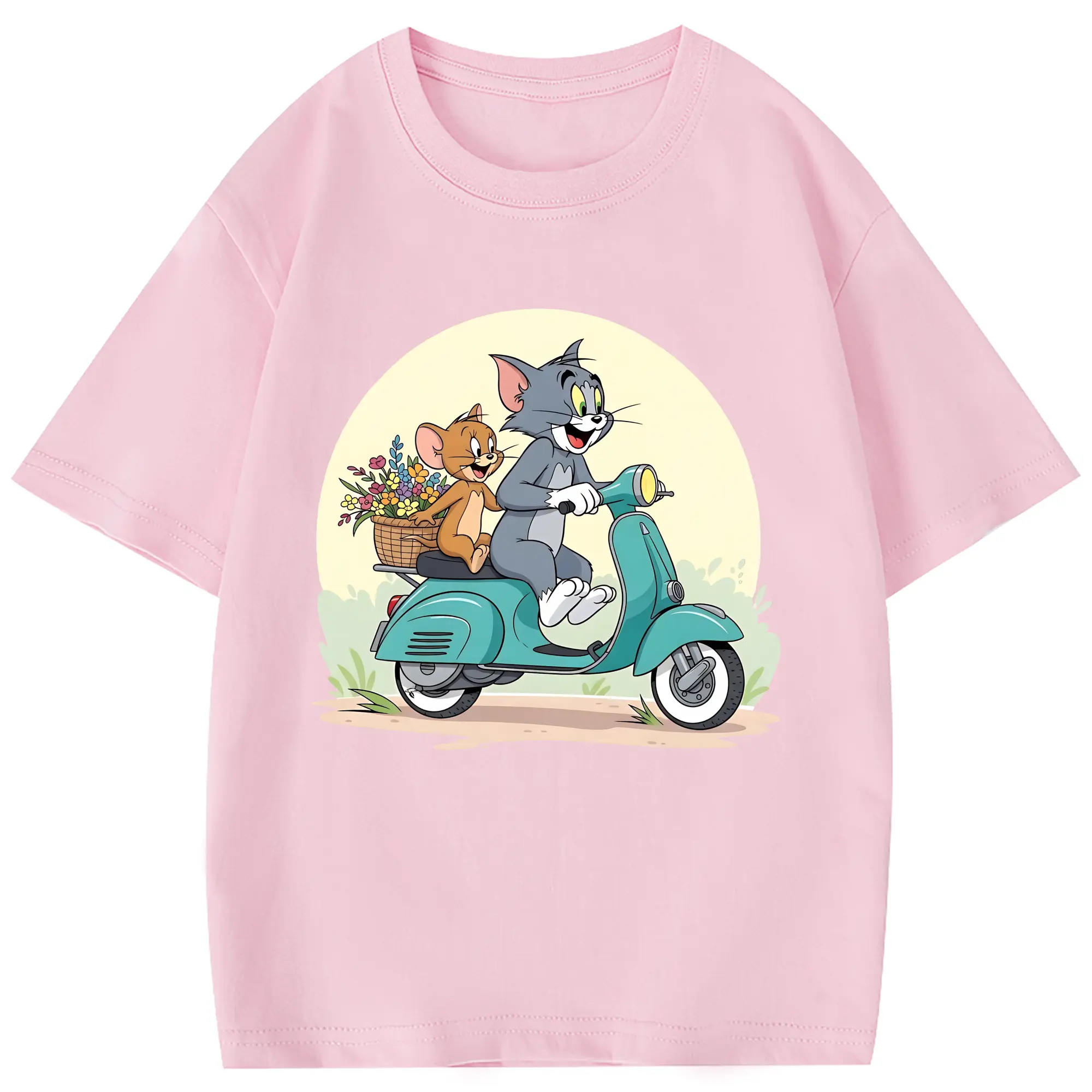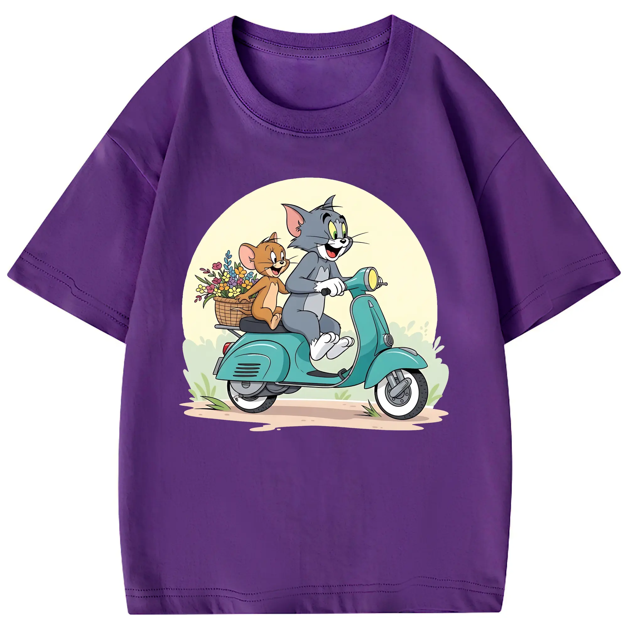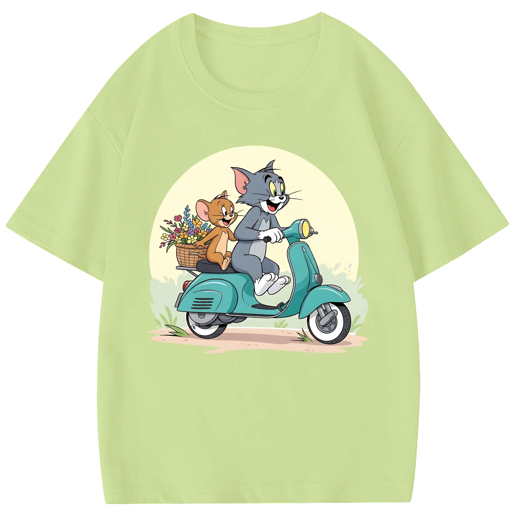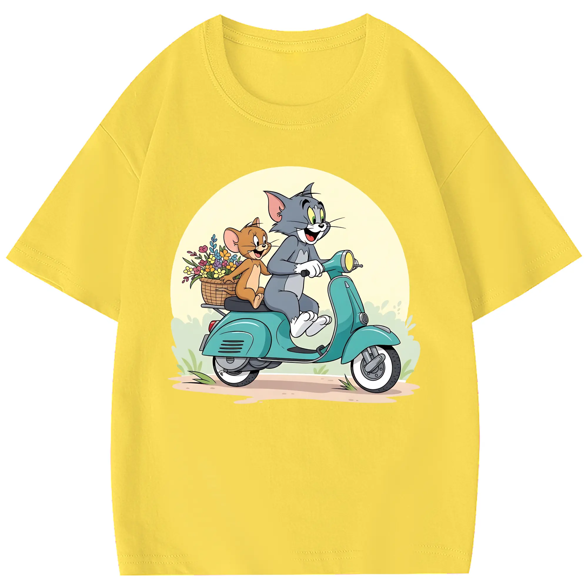 トムとジェリー グッズ トム - 綿100% 半袖Tシャツ ・ フロントプリント ・ 快適 通気性 ・ 日常使い 散歩 スポーツ用