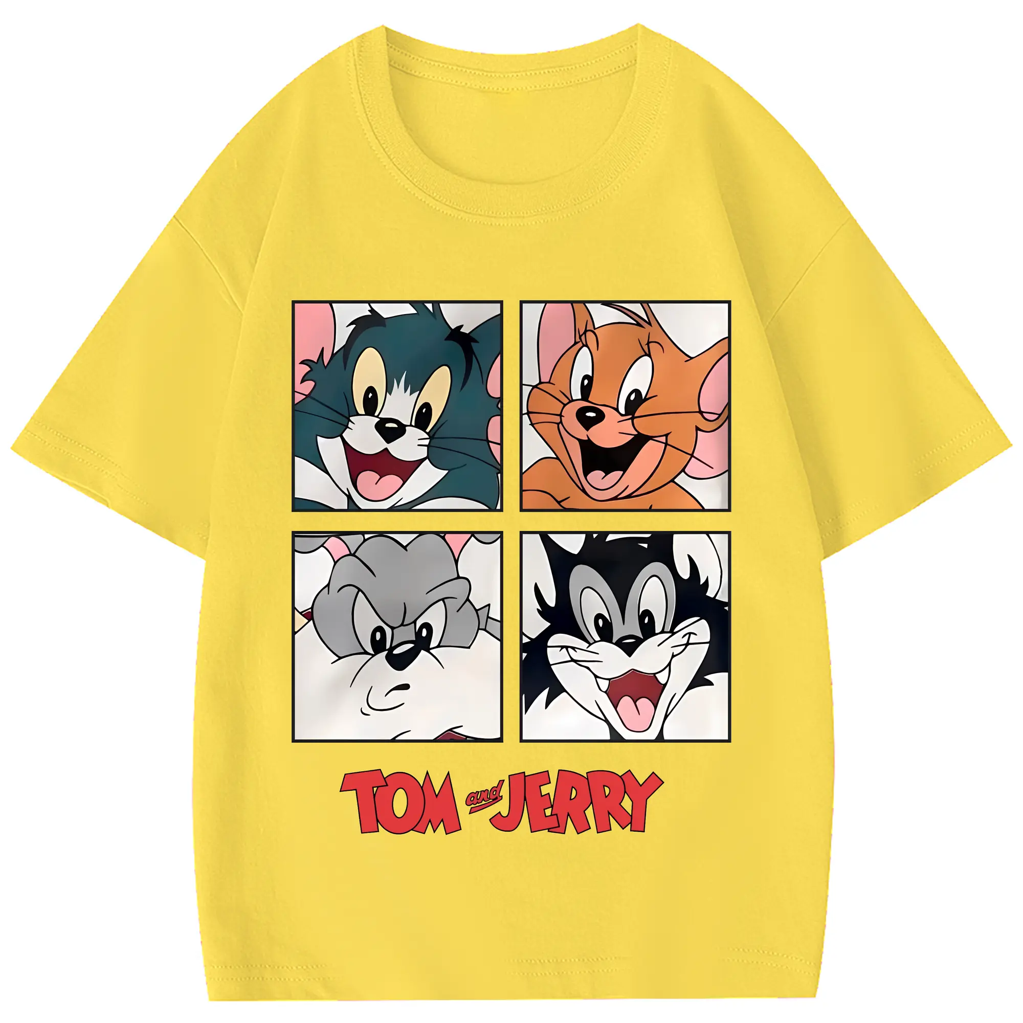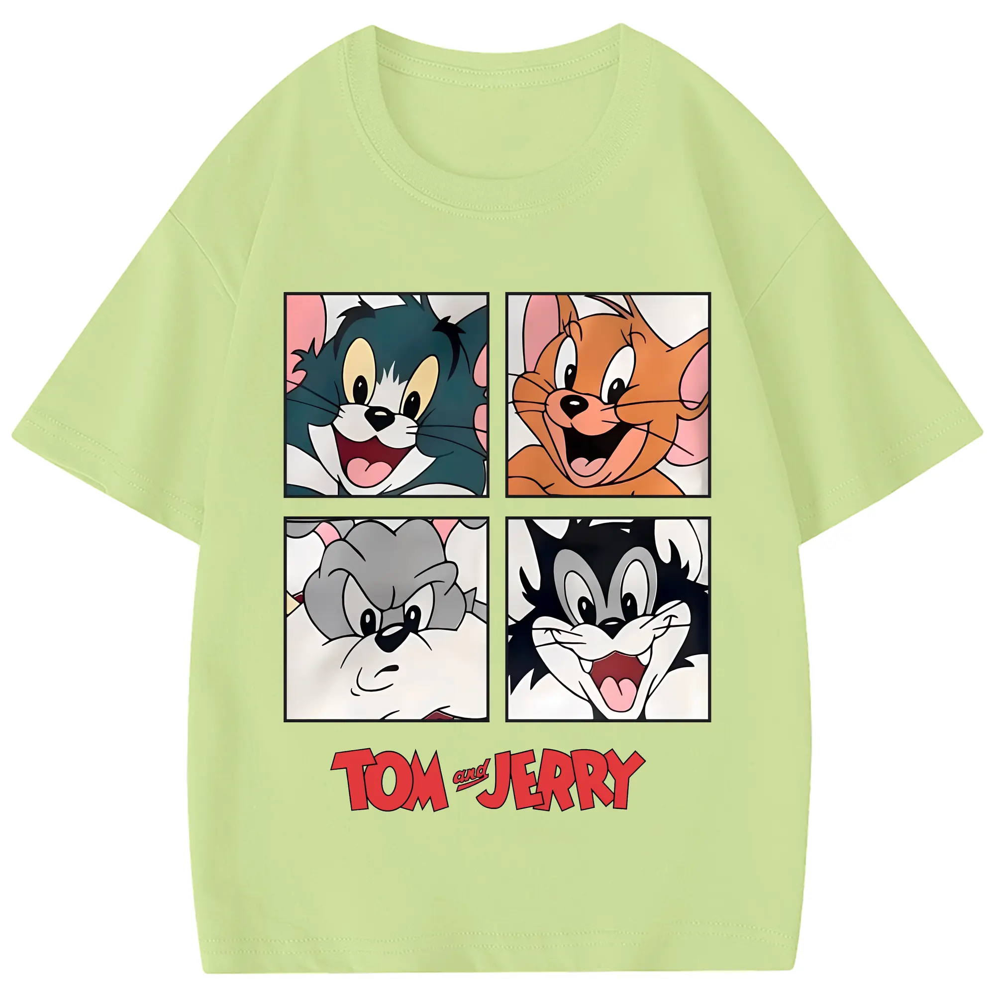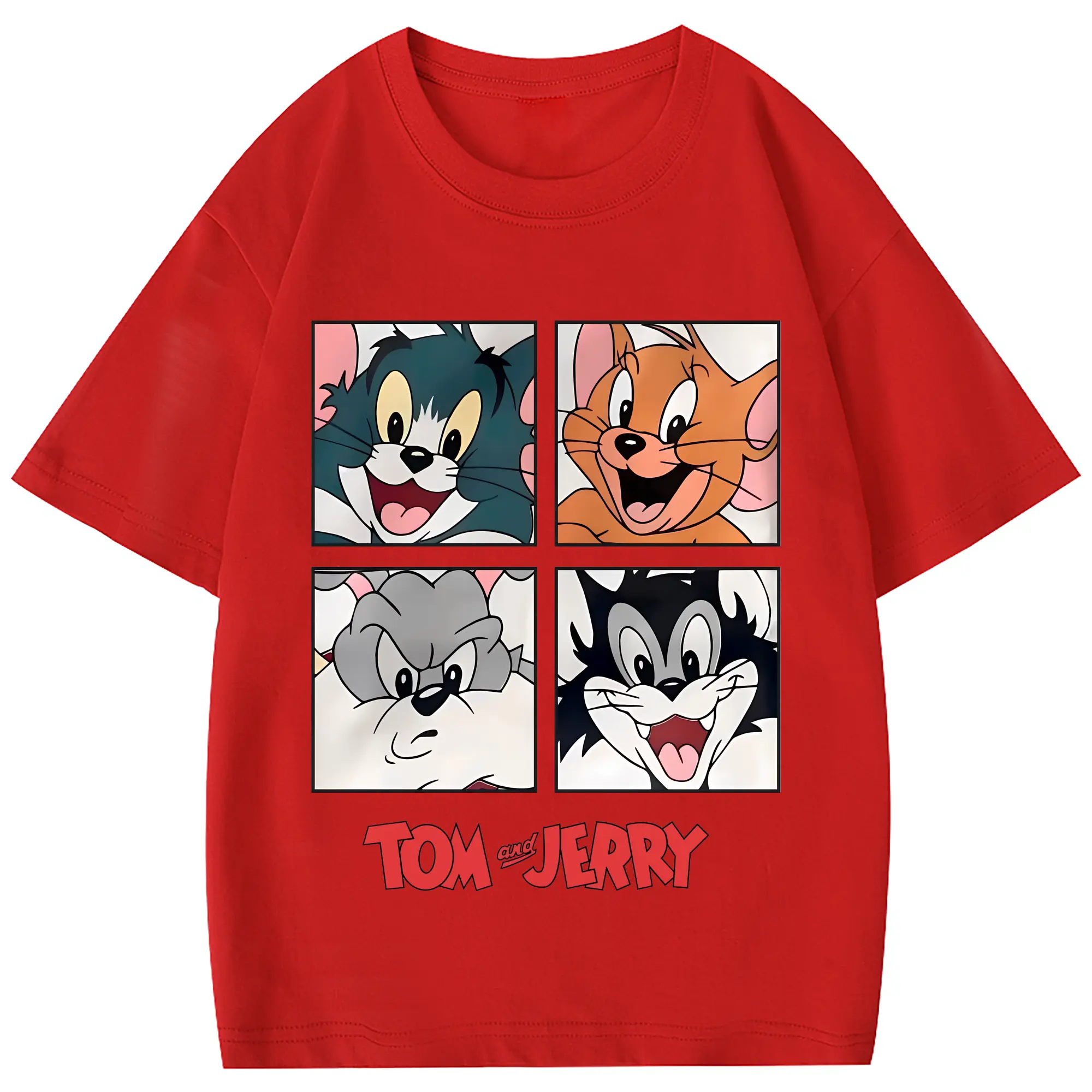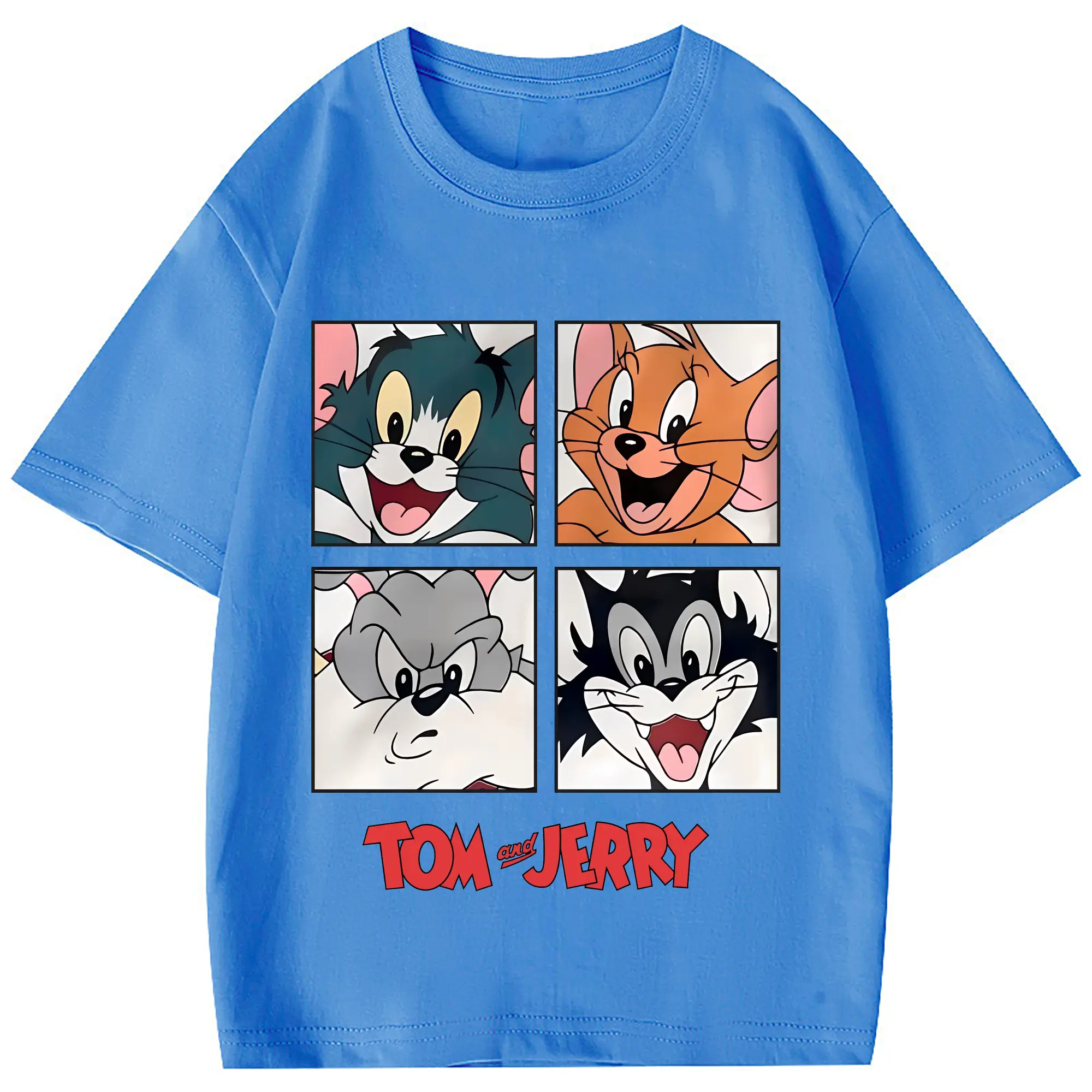 トムとジェリー グッズ トム - 綿100% 半袖Tシャツ ・ フロントプリント ・ 快適 通気性 ・ 日常使い 散歩 スポーツ用