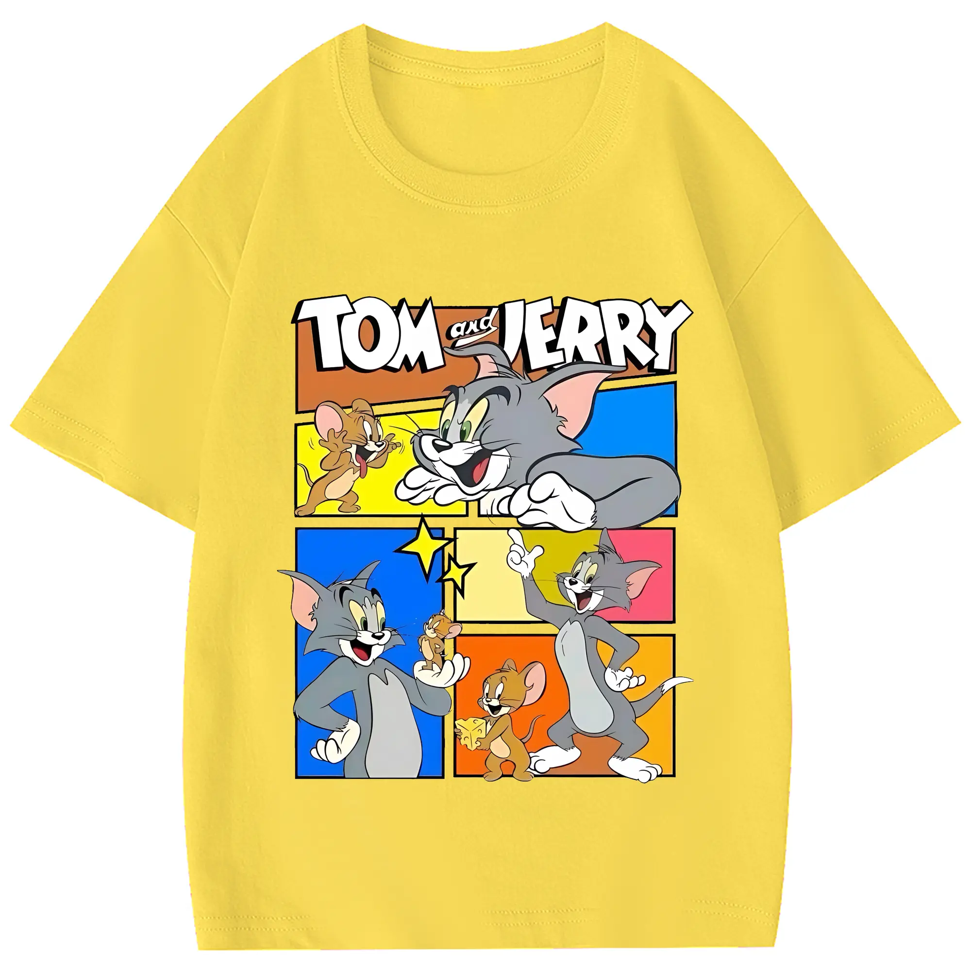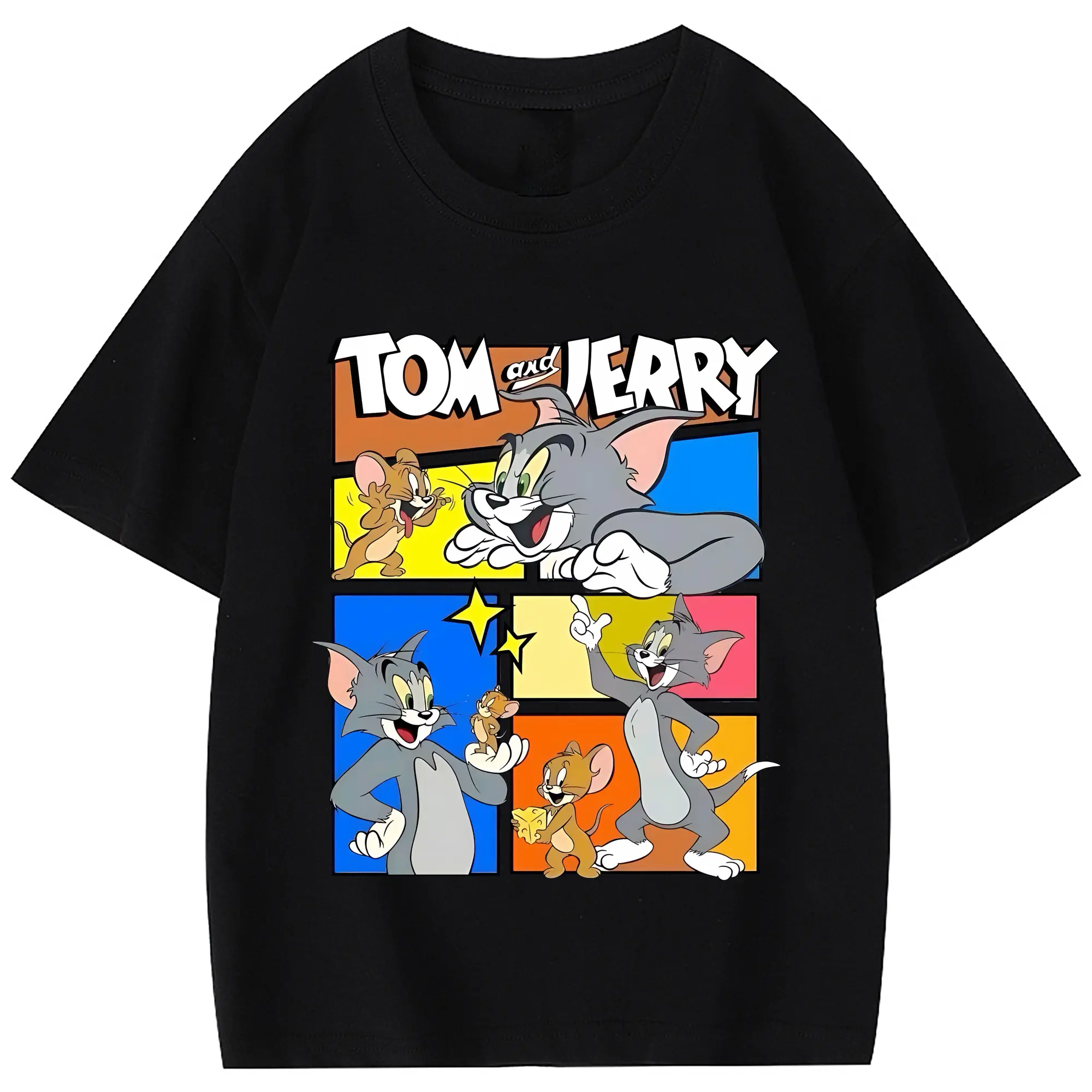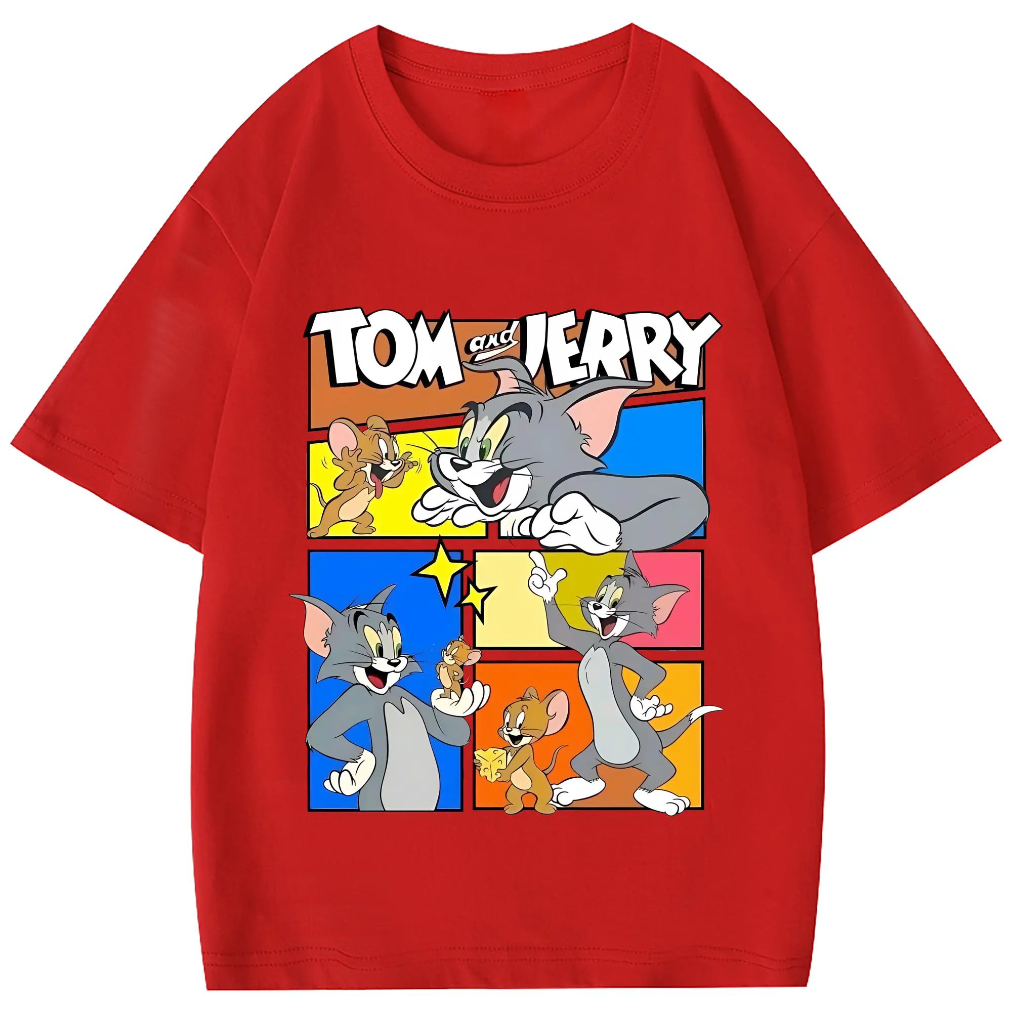トムとジェリー グッズ トム - 綿100% 半袖Tシャツ ・ フロントプリント ・ 快適 通気性 ・ 日常使い 散歩 スポーツ用