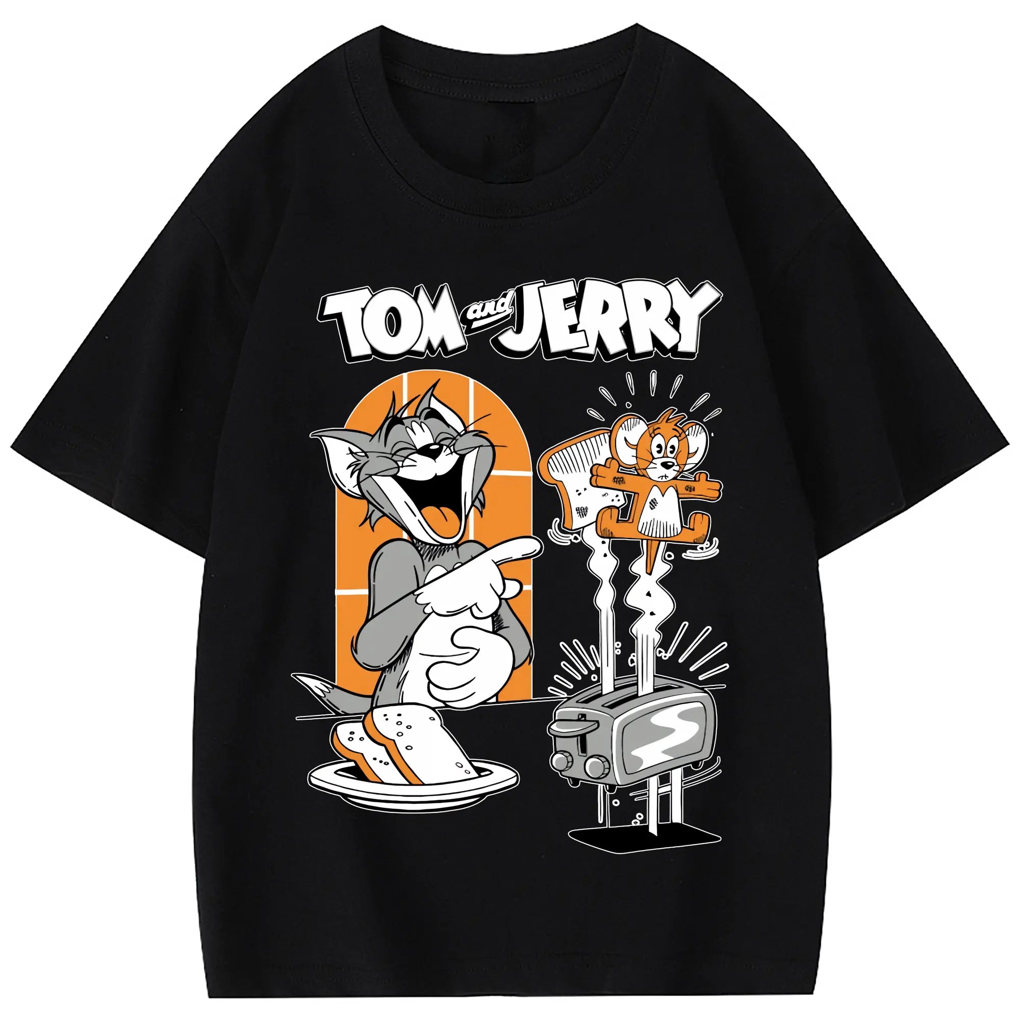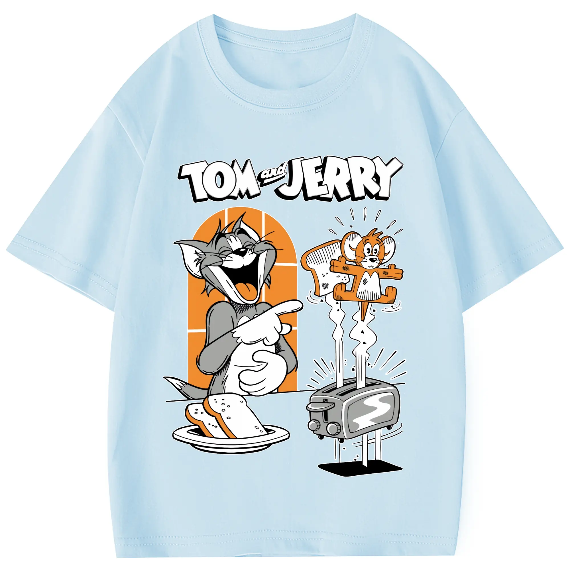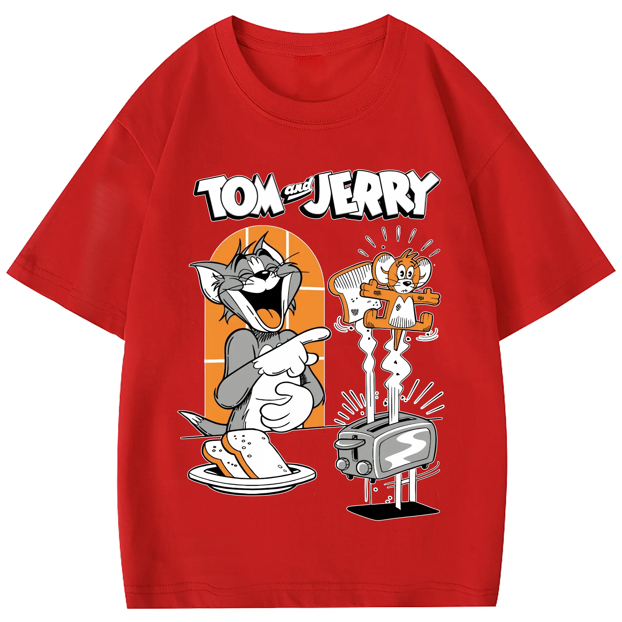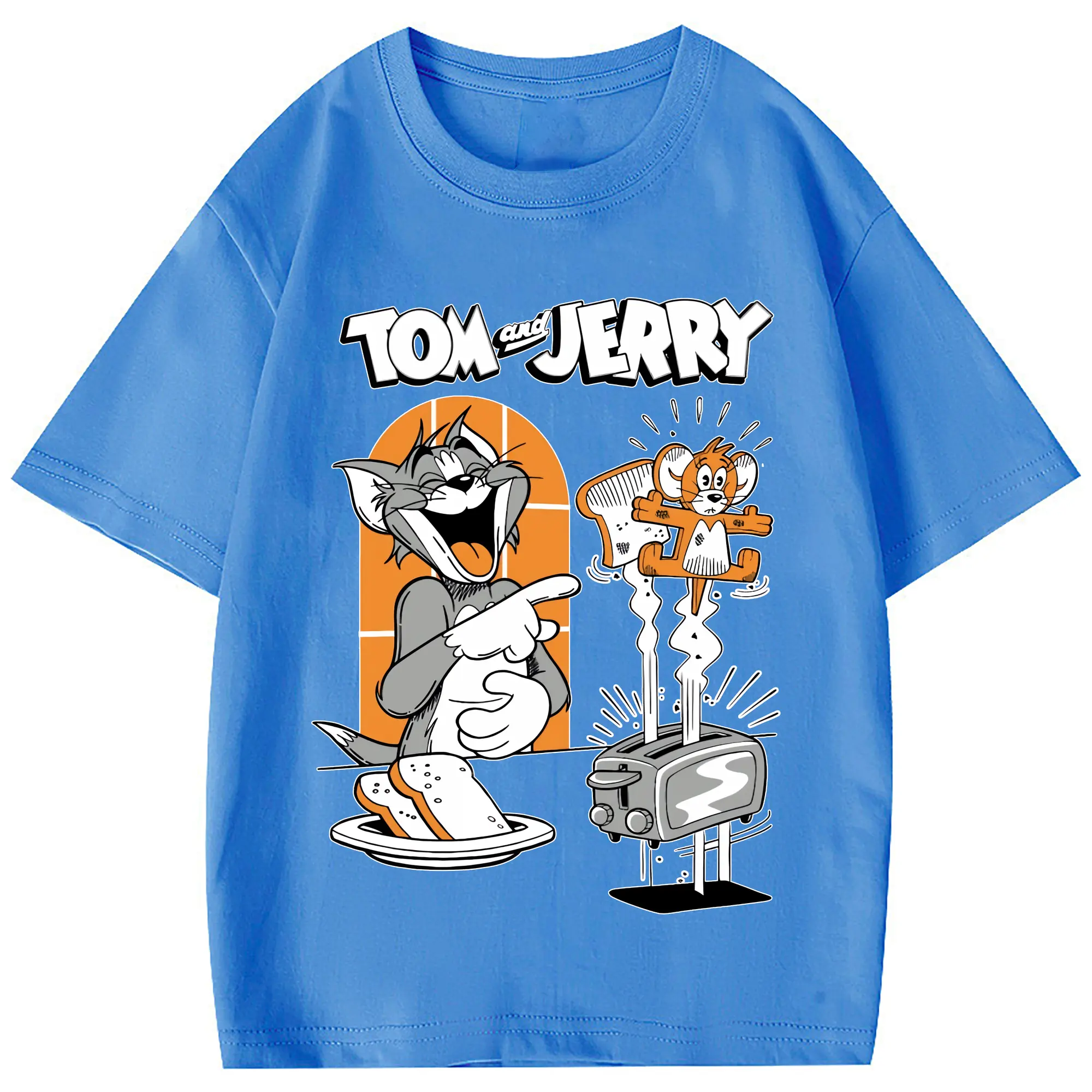 トムとジェリー グッズ トム - 綿100% 半袖Tシャツ ・ フロントプリント ・ 快適 通気性 ・ 日常使い 散歩 スポーツ用