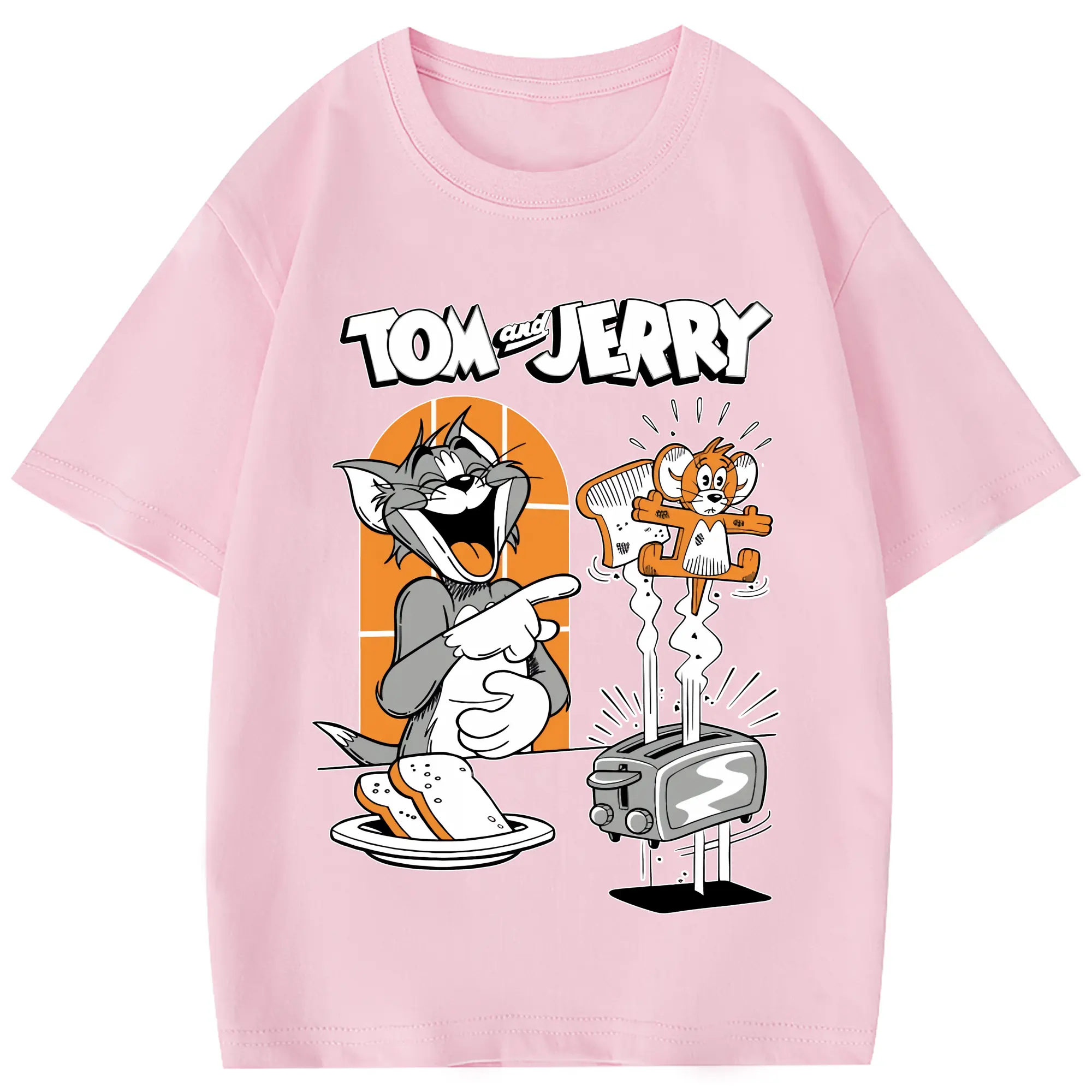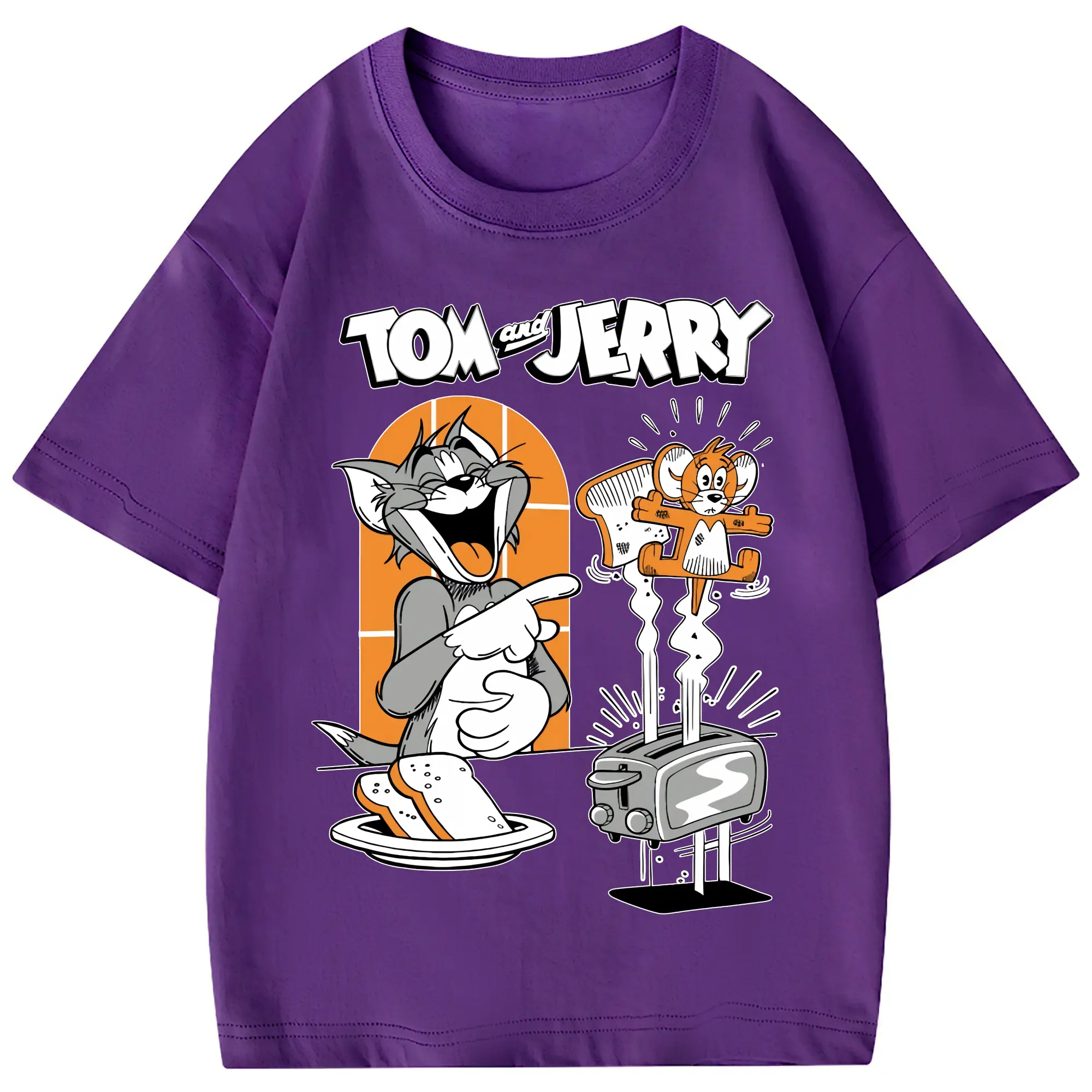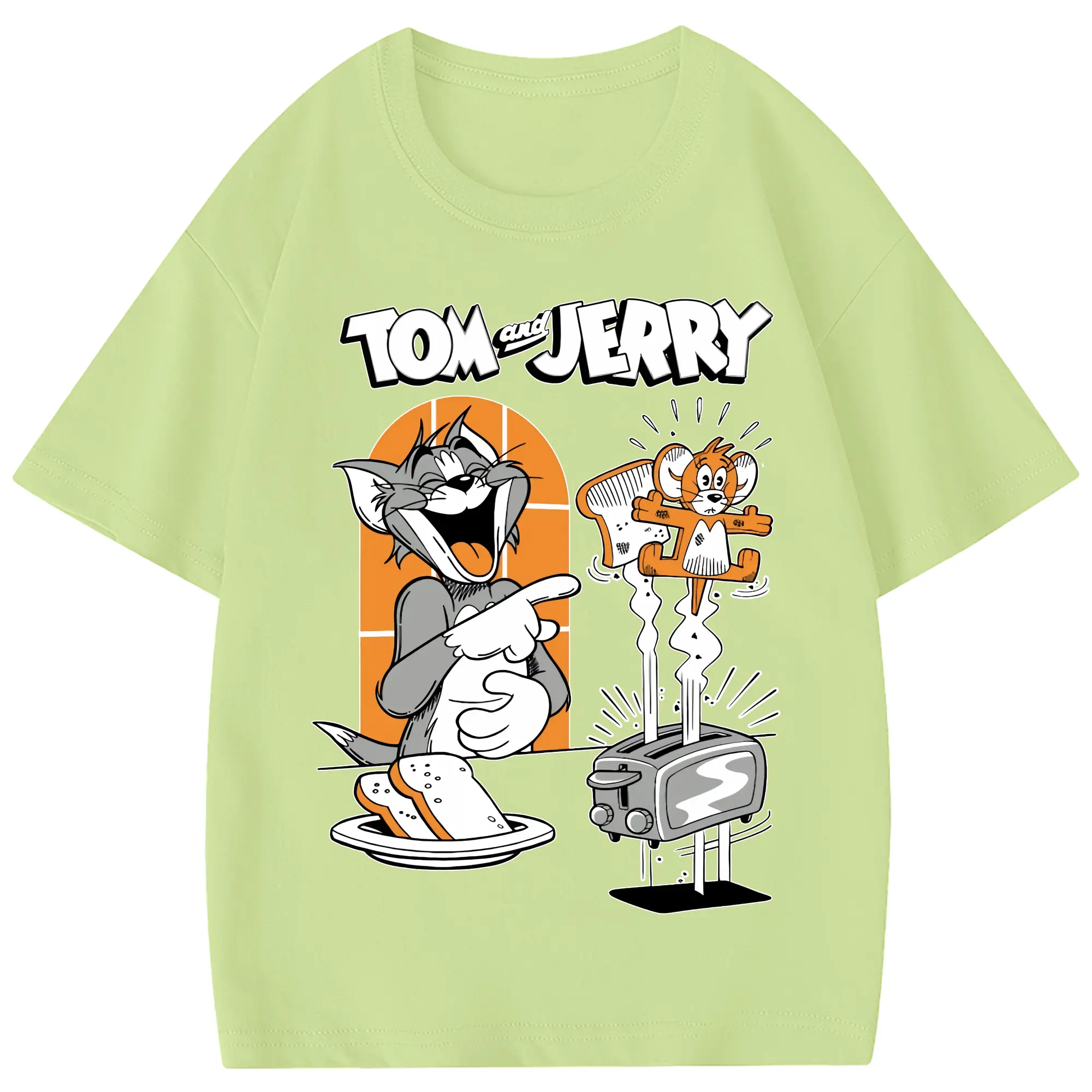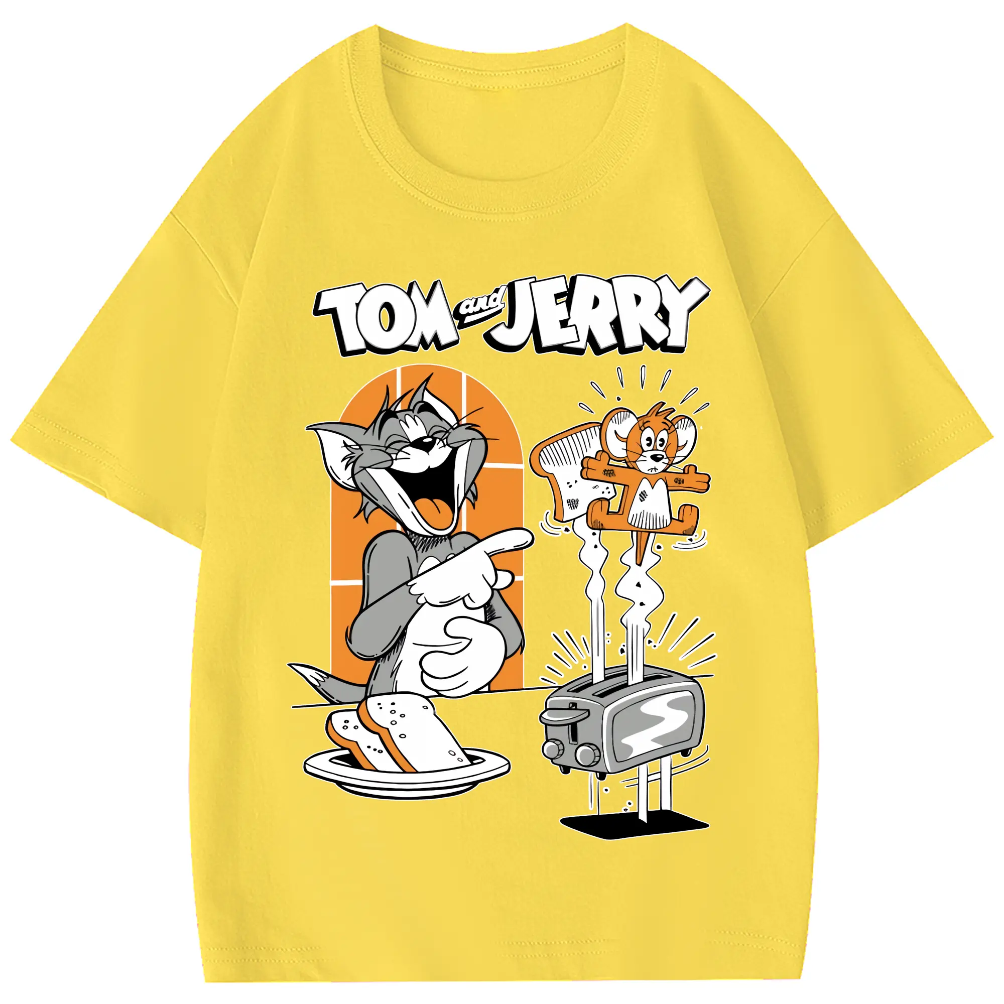 トムとジェリー グッズ トム - 綿100% 半袖Tシャツ ・ フロントプリント ・ 快適 通気性 ・ 日常使い 散歩 スポーツ用