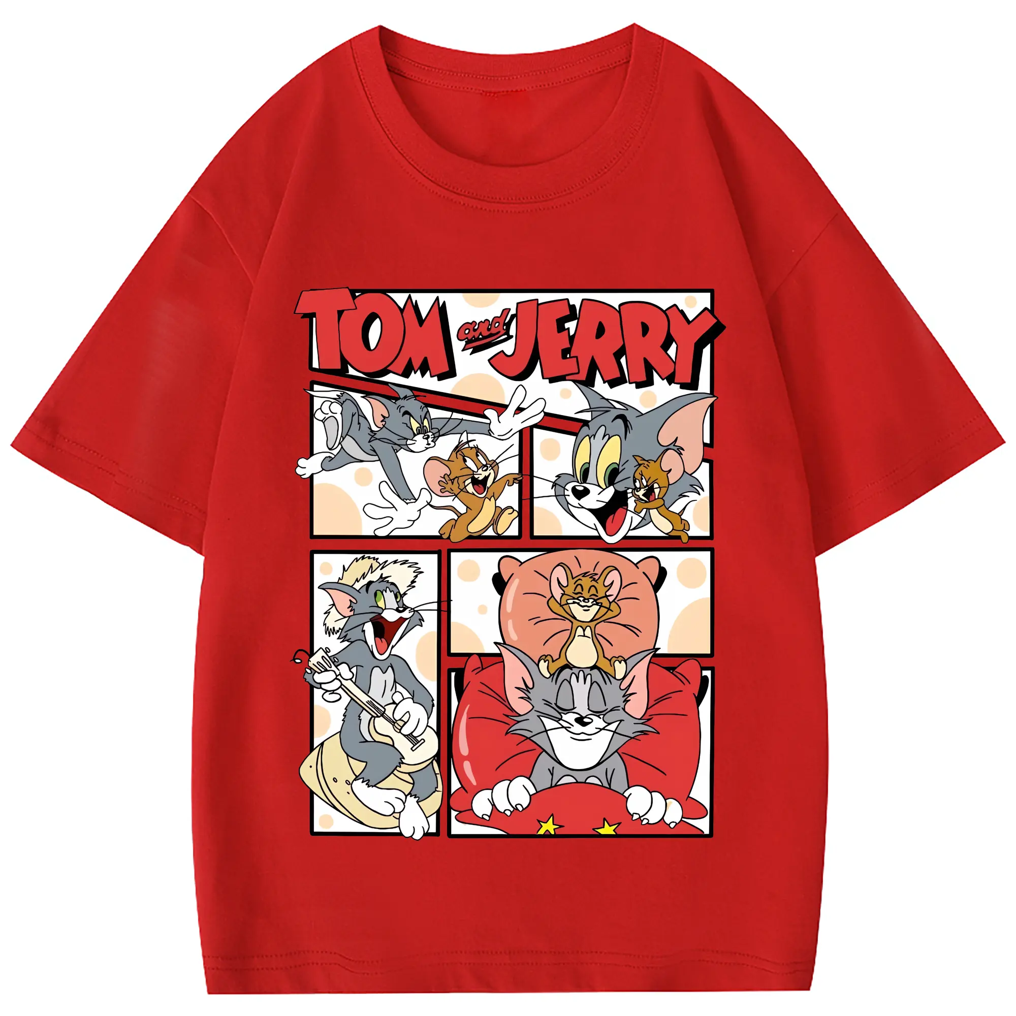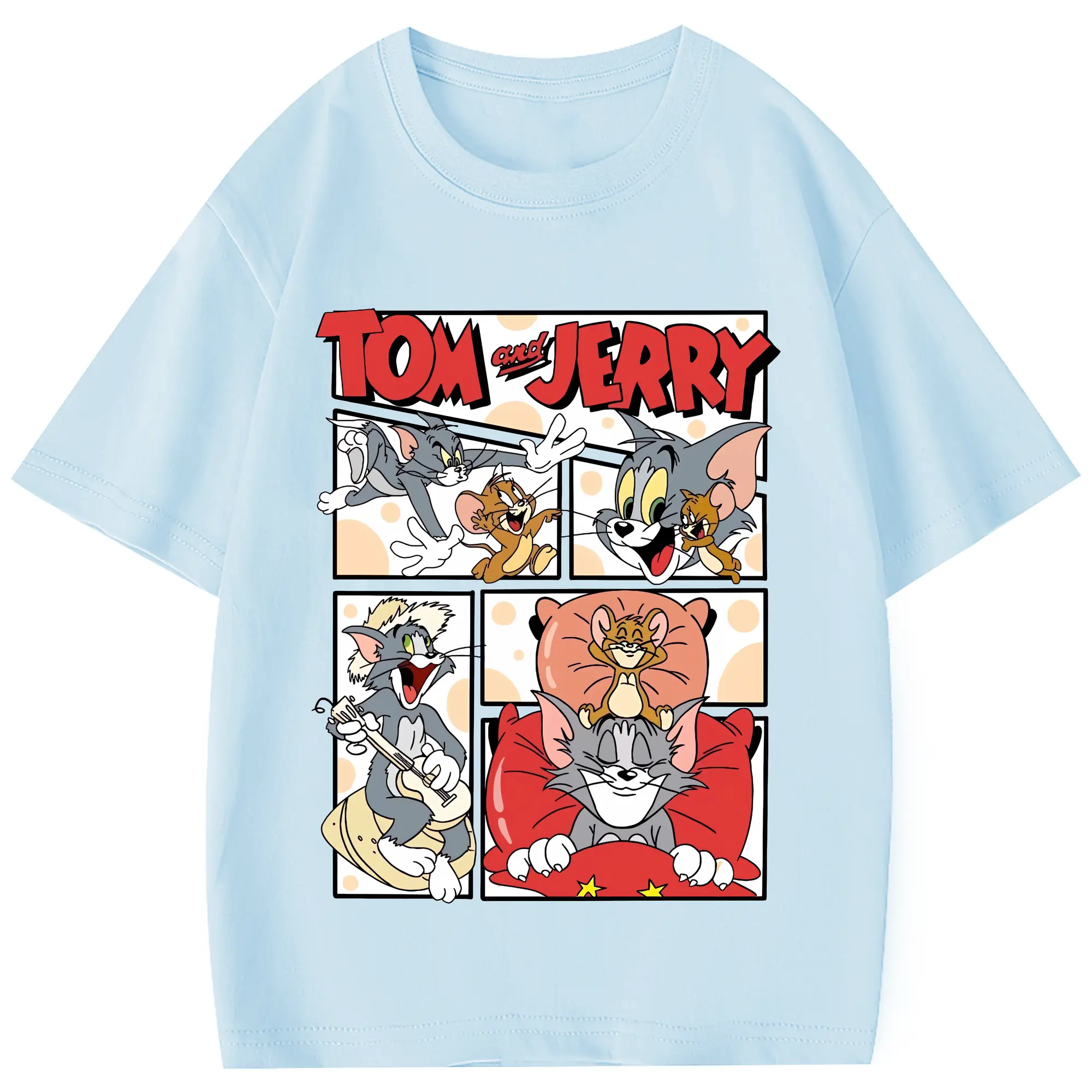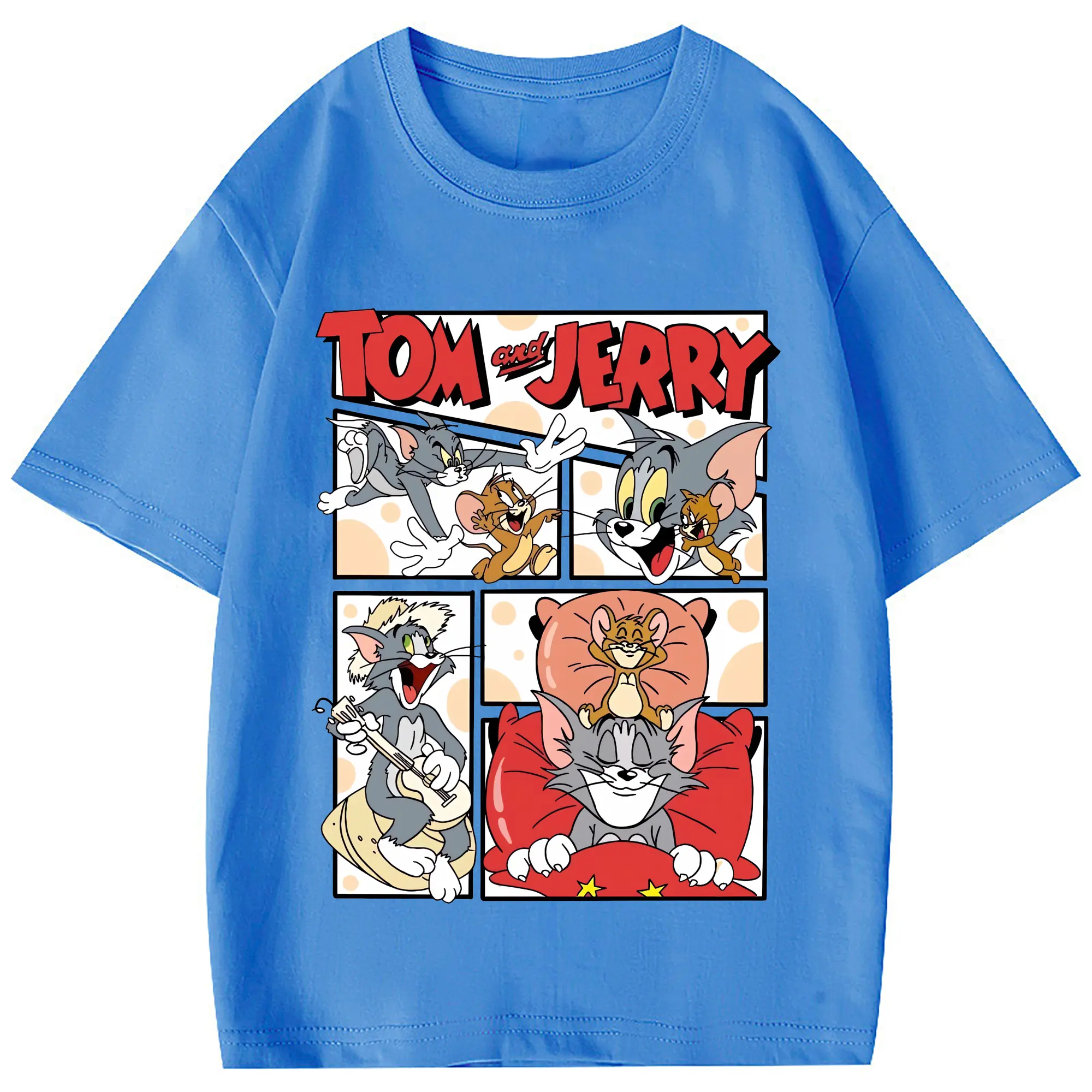 トムとジェリー グッズ トム - 綿100% 半袖Tシャツ ・ フロントプリント ・ 快適 通気性 ・ 日常使い 散歩 スポーツ用
