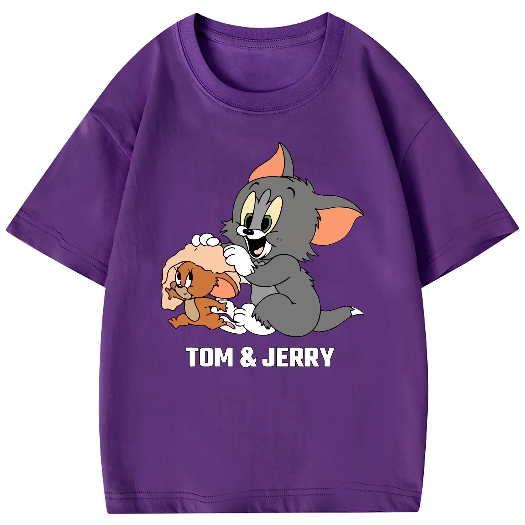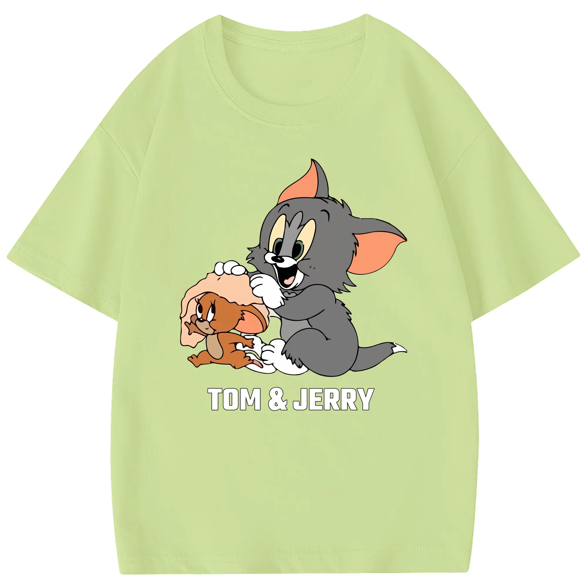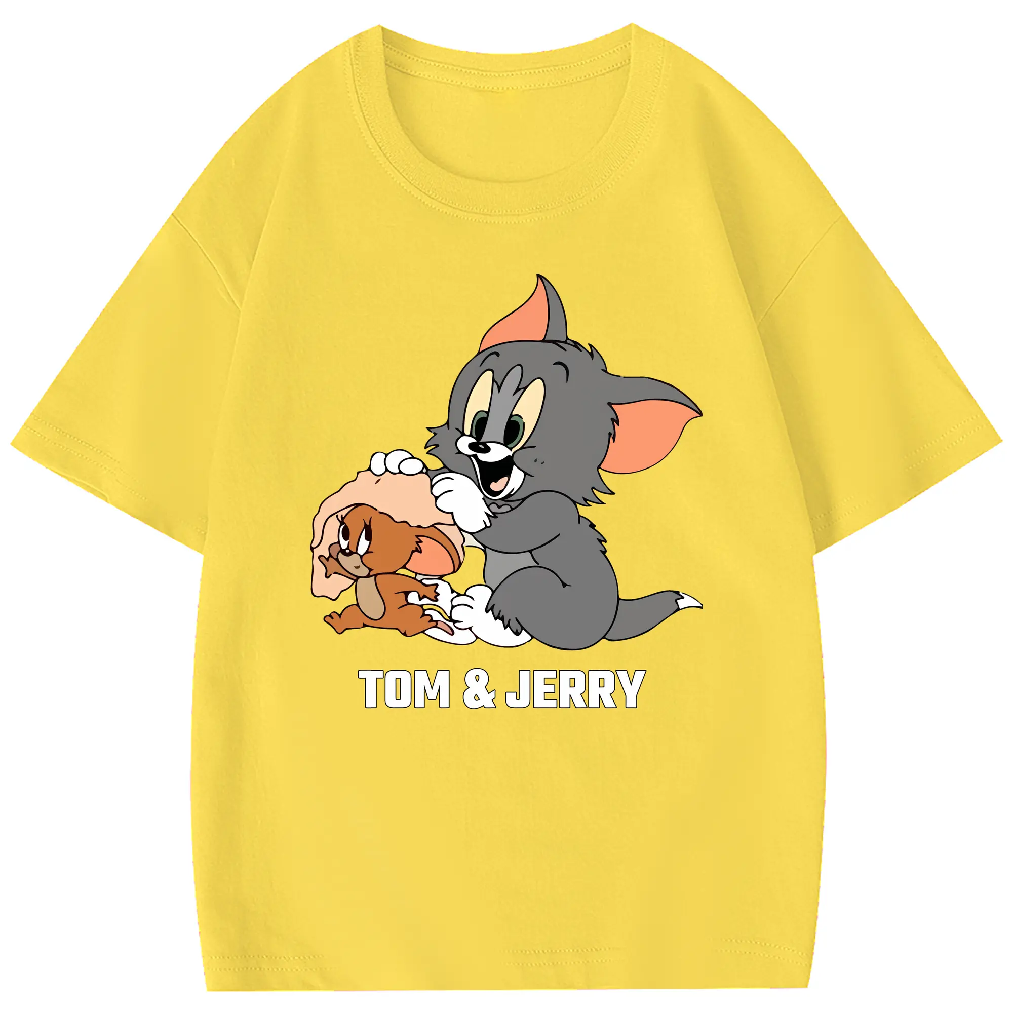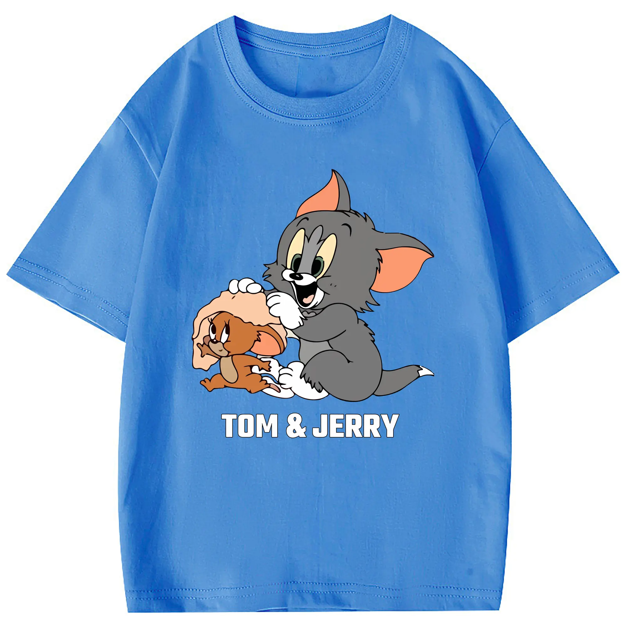 トムとジェリー グッズ トム - 綿100% 半袖Tシャツ ・ フロントプリント ・ 快適 通気性 ・ 日常使い 散歩 スポーツ用