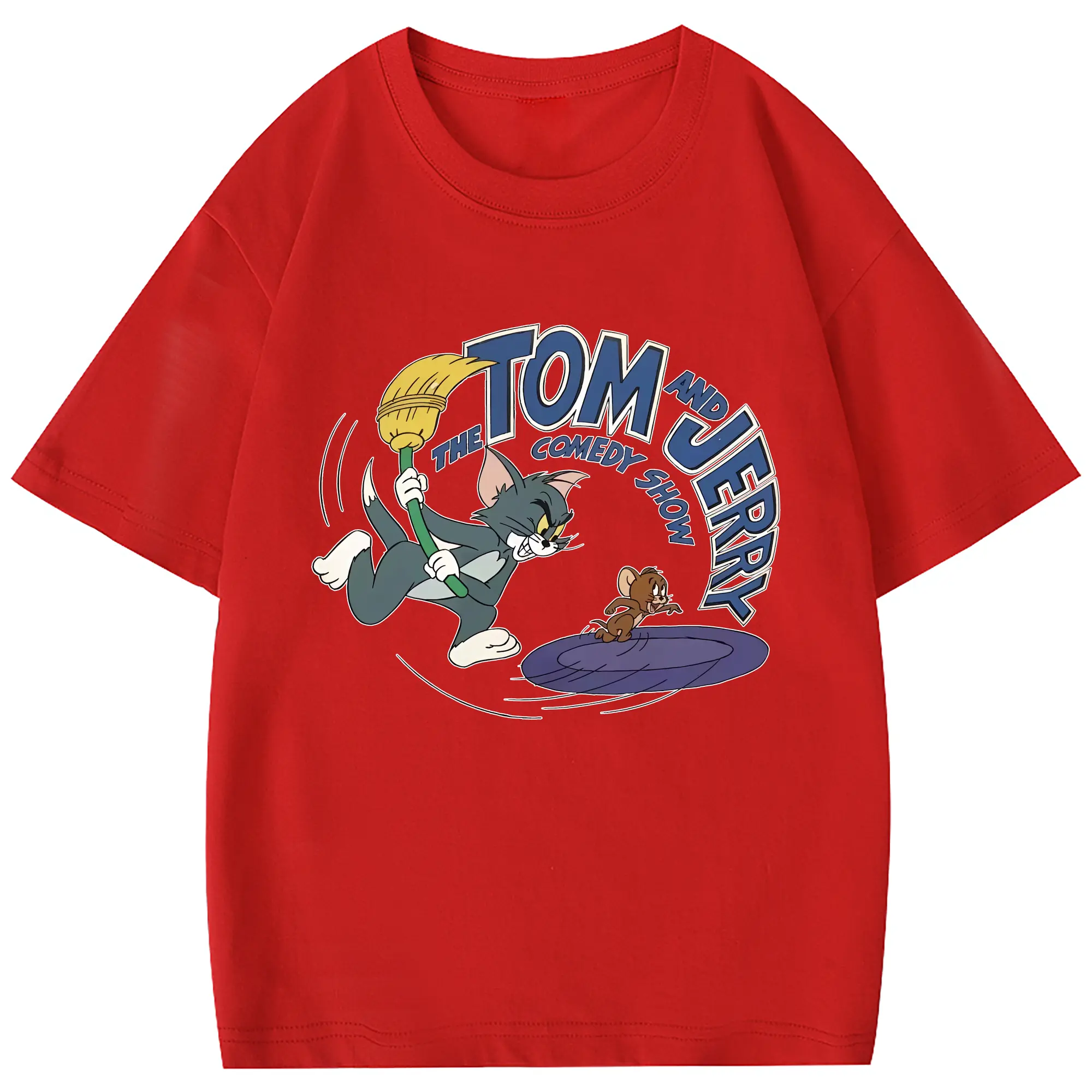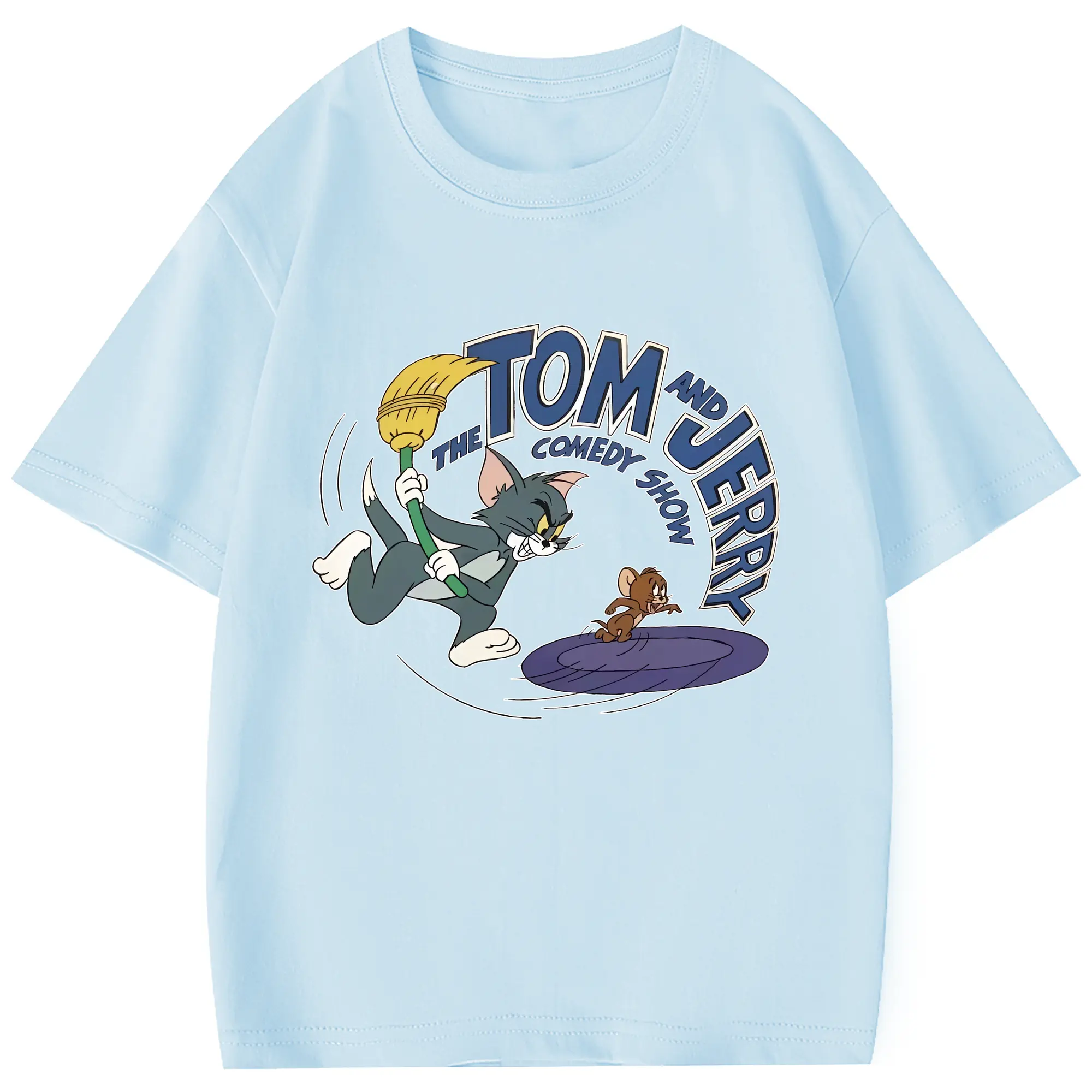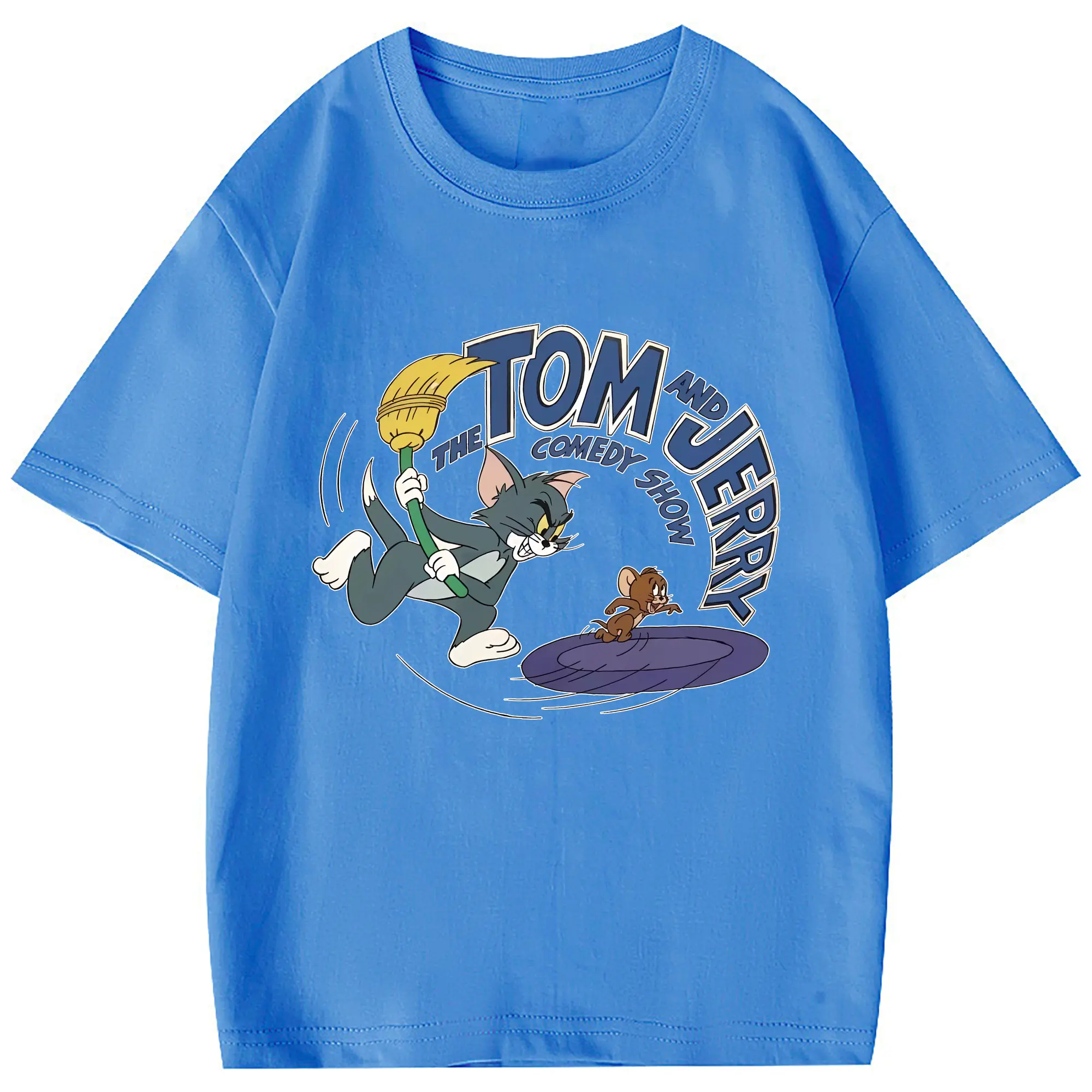 トムとジェリー グッズ トム - 綿100% 半袖Tシャツ ・ フロントプリント ・ 快適 通気性 ・ 日常使い 散歩 スポーツ用