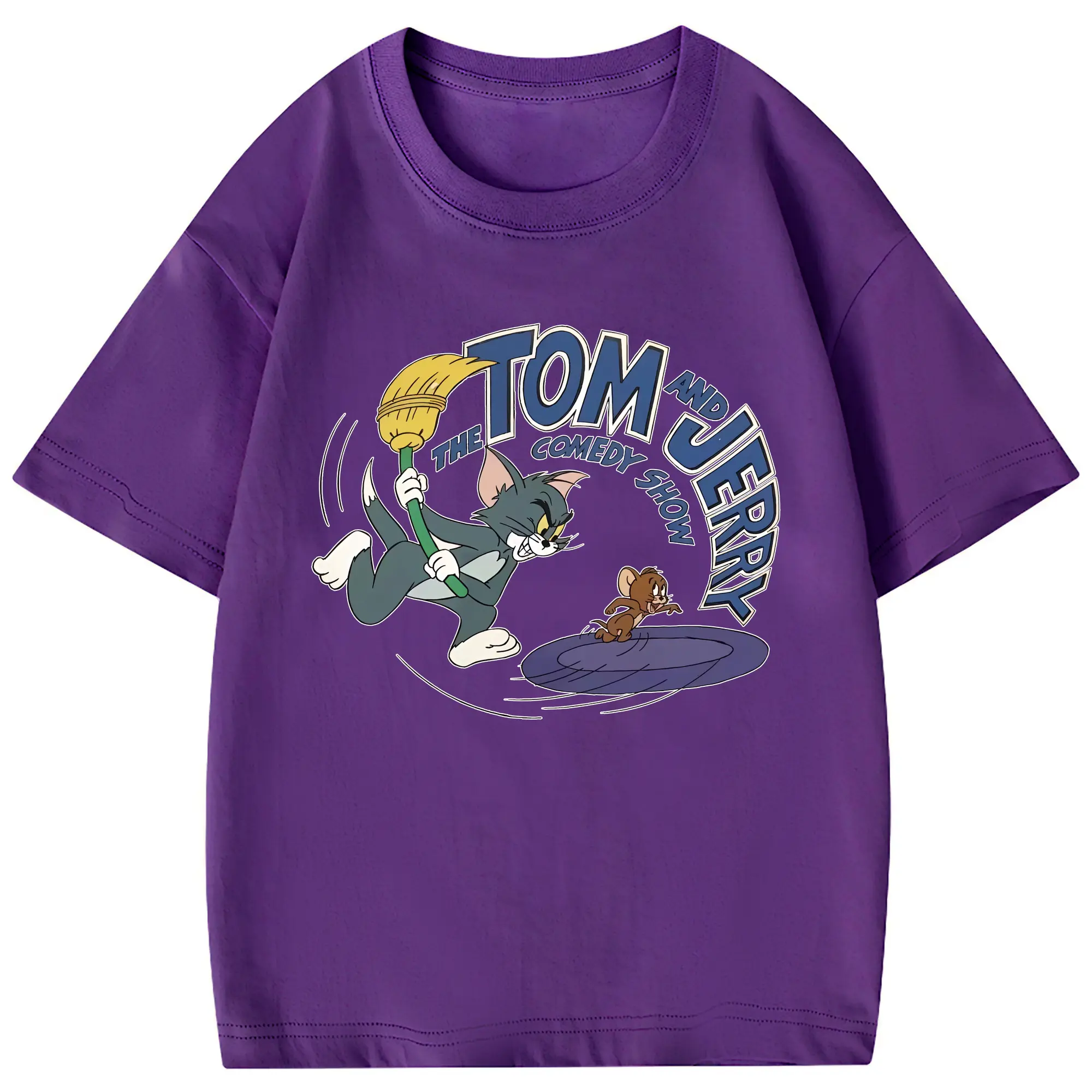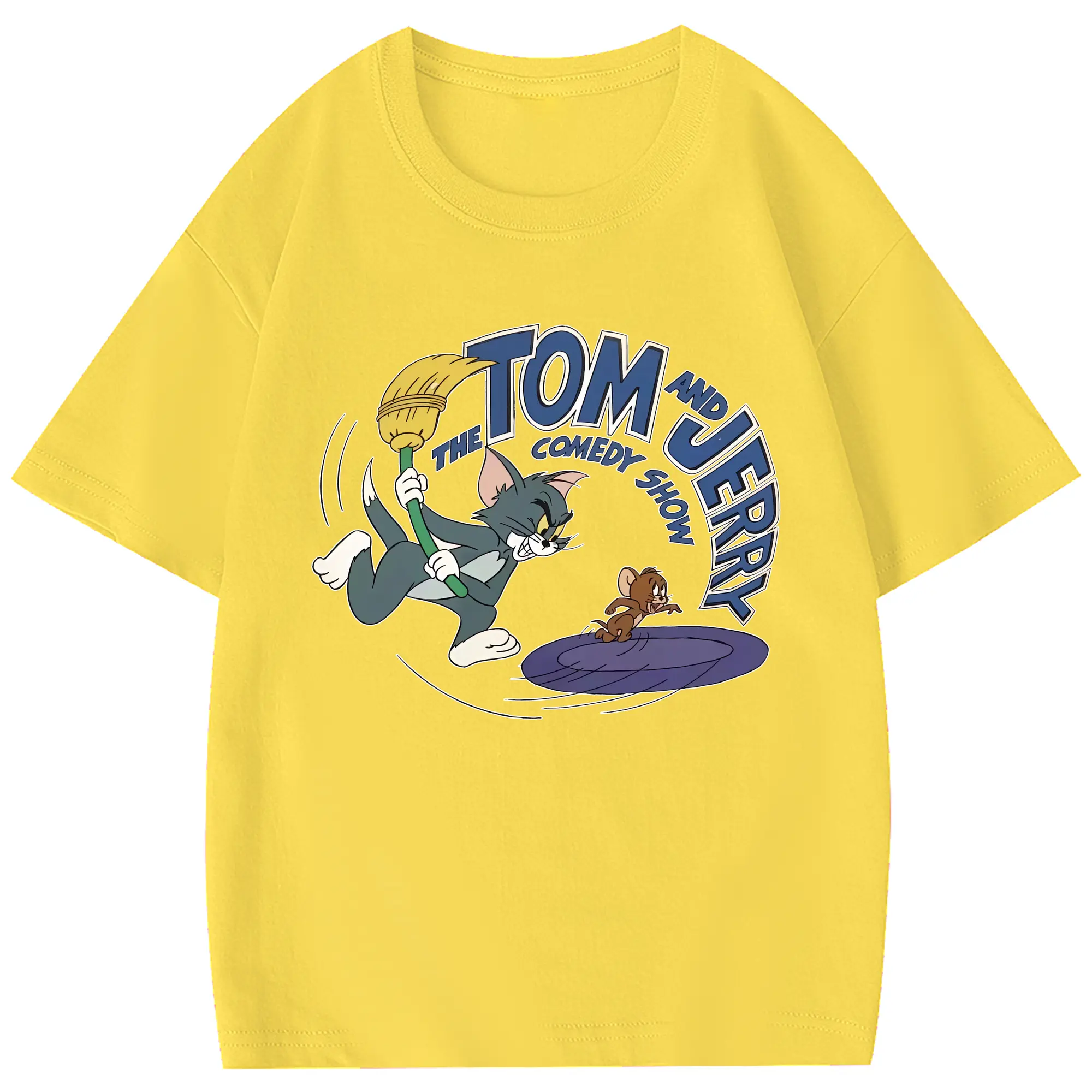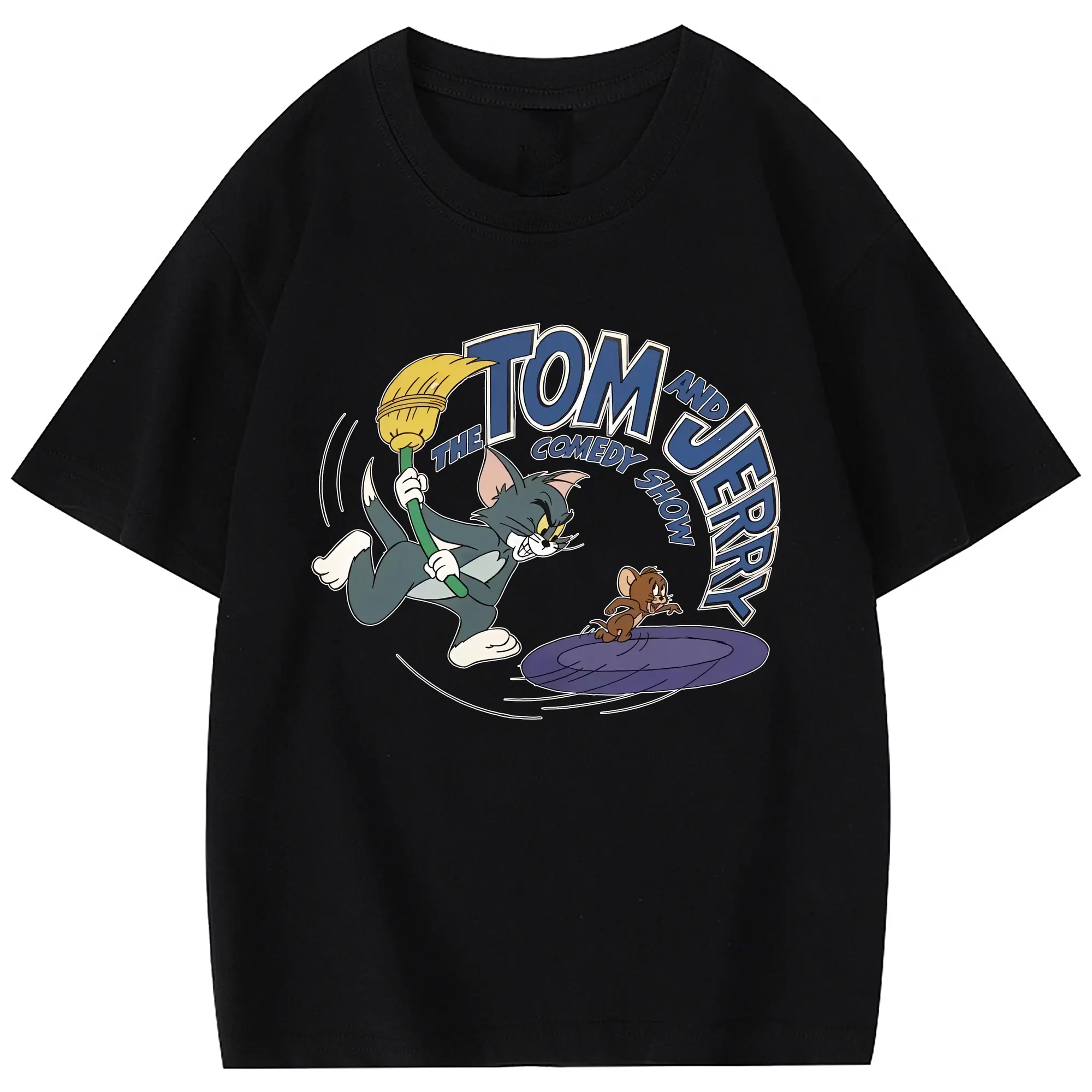 トムとジェリー グッズ トム - 綿100% 半袖Tシャツ ・ フロントプリント ・ 快適 通気性 ・ 日常使い 散歩 スポーツ用