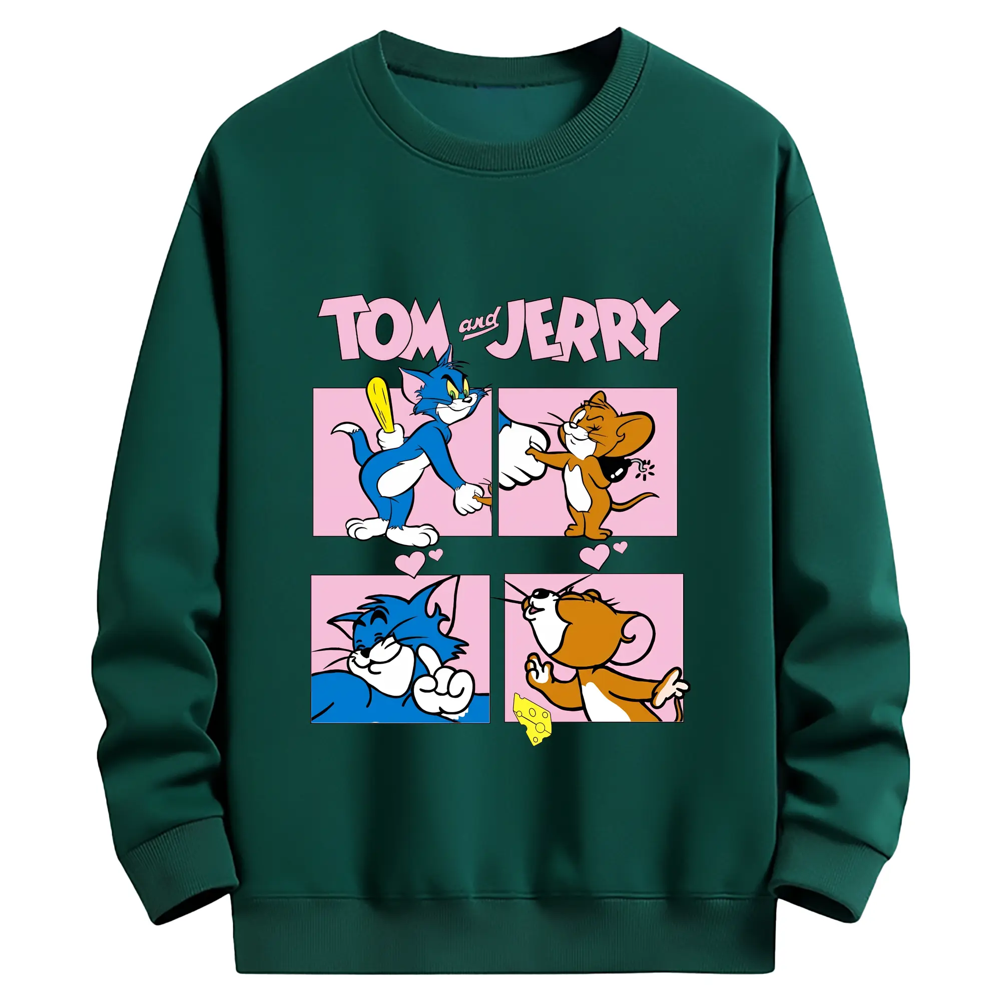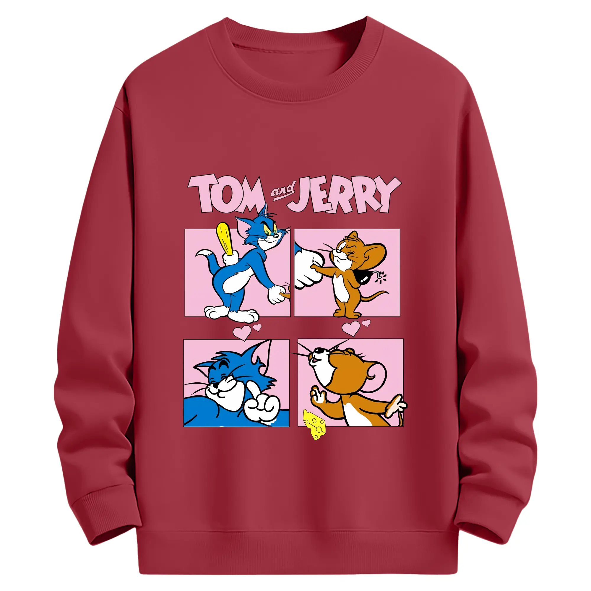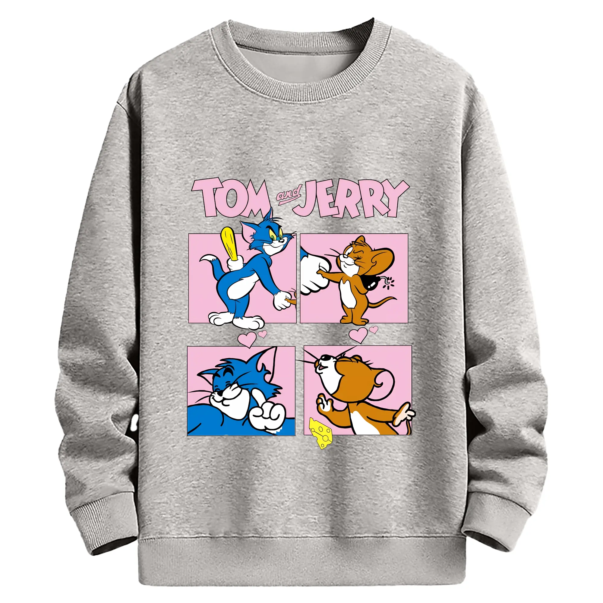 トムとジェリー グッズ トム - 高品質 クルーネック スウェット ・ コットン59% ポリエステル41% ・ ユニセックス 長袖 トレーナー ・ カジュアル デイリー スポーツ 散歩用