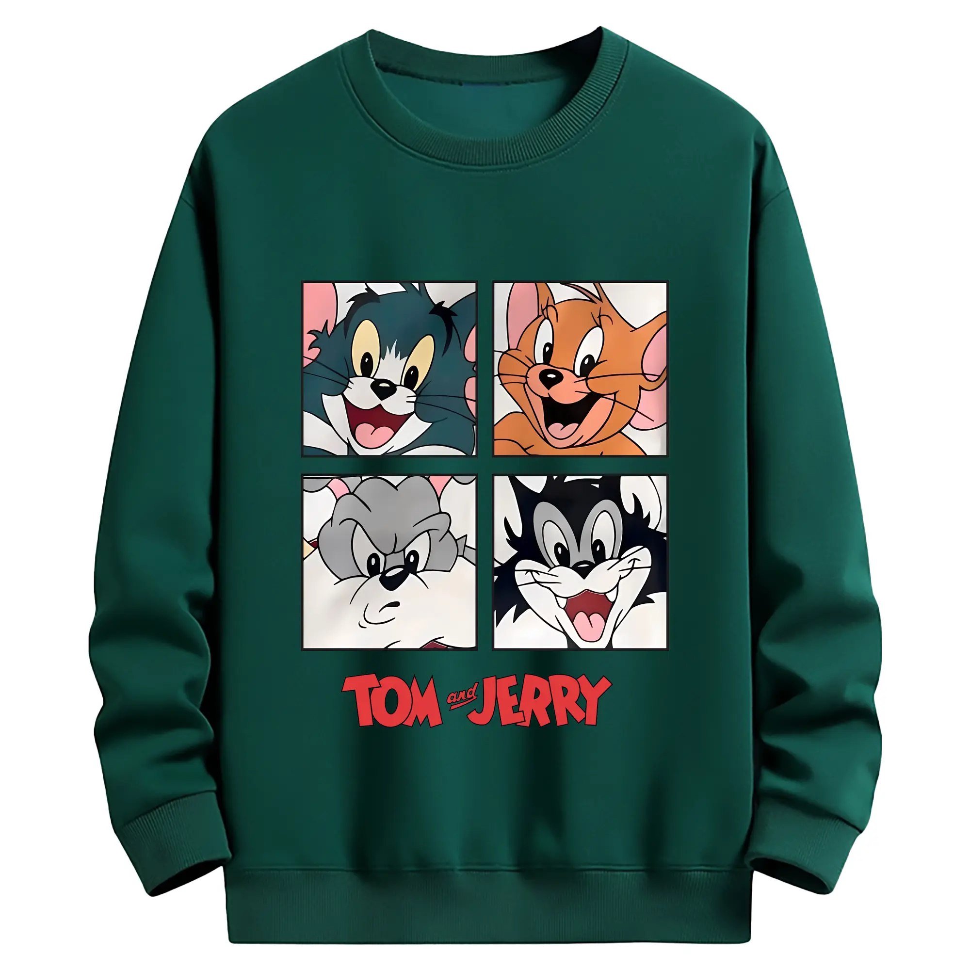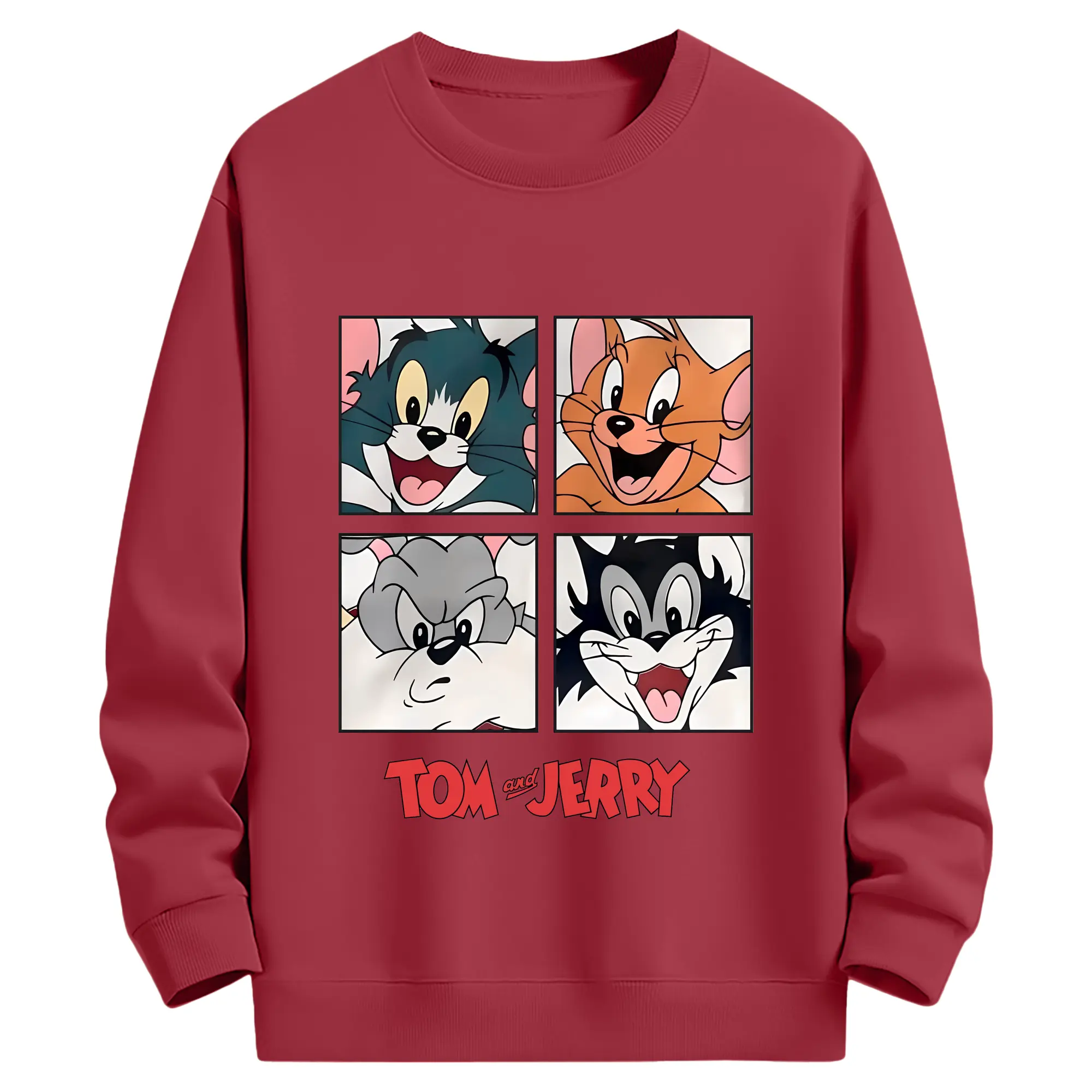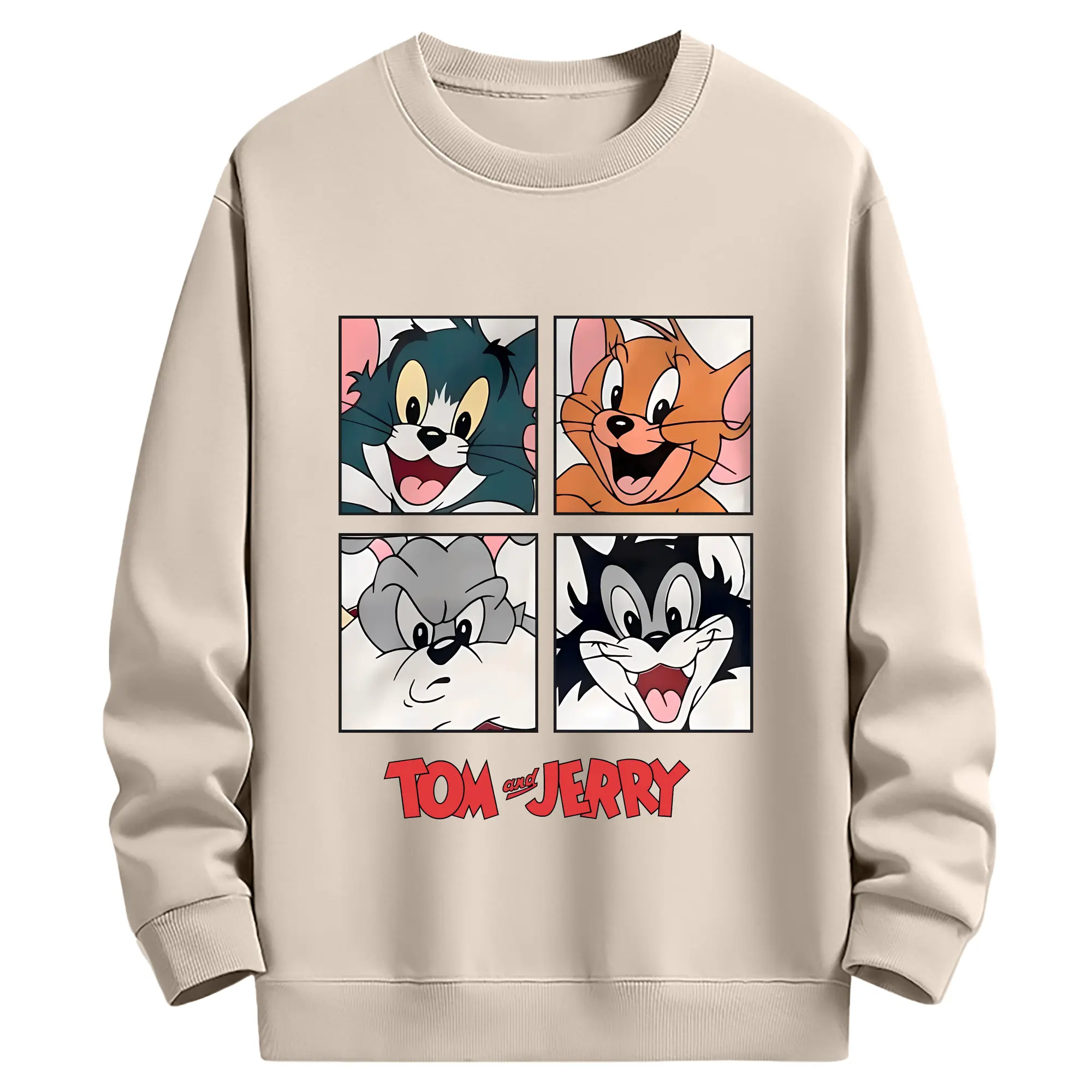 トムとジェリー グッズ トム - 高品質 クルーネック スウェット ・ コットン59% ポリエステル41% ・ ユニセックス 長袖 トレーナー ・ カジュアル デイリー スポーツ 散歩用