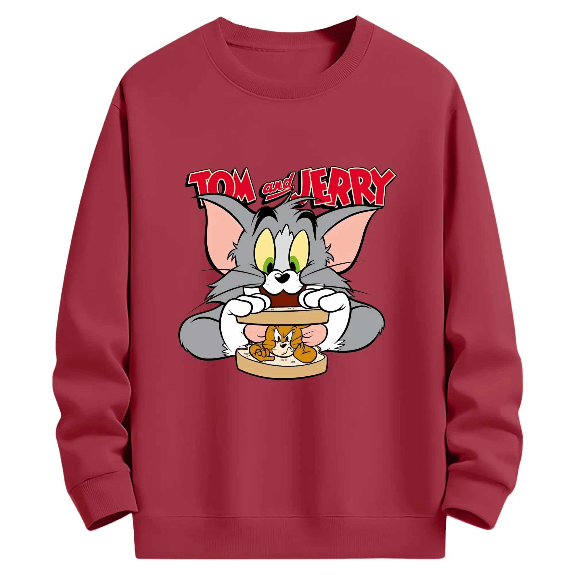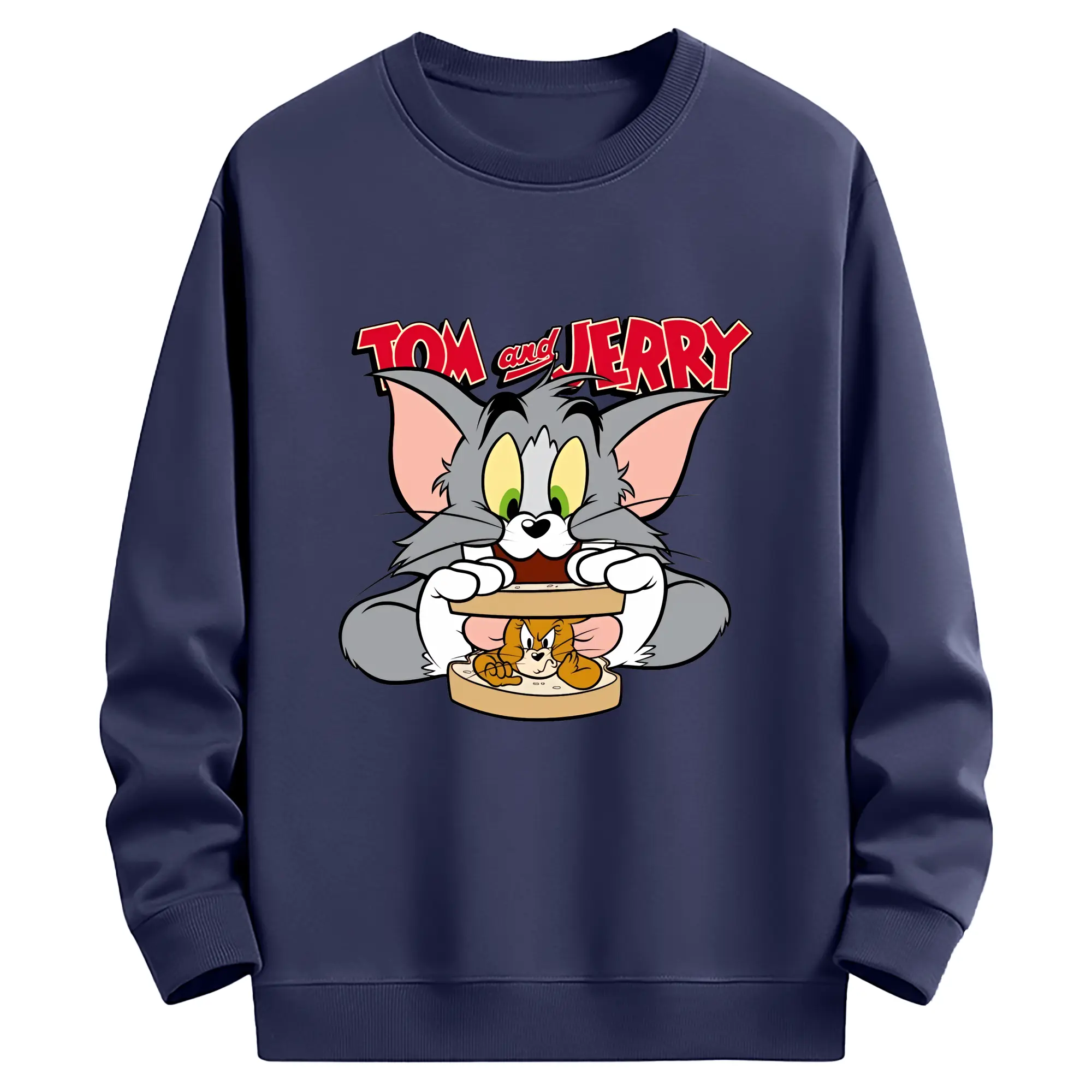 トムとジェリー グッズ トム - 薄手 クルーネック スウェット 裏毛260g · ポリエステル 春秋向け カジュアル 男女兼用 · トレーナー デイリー スポーツ 散歩に最適