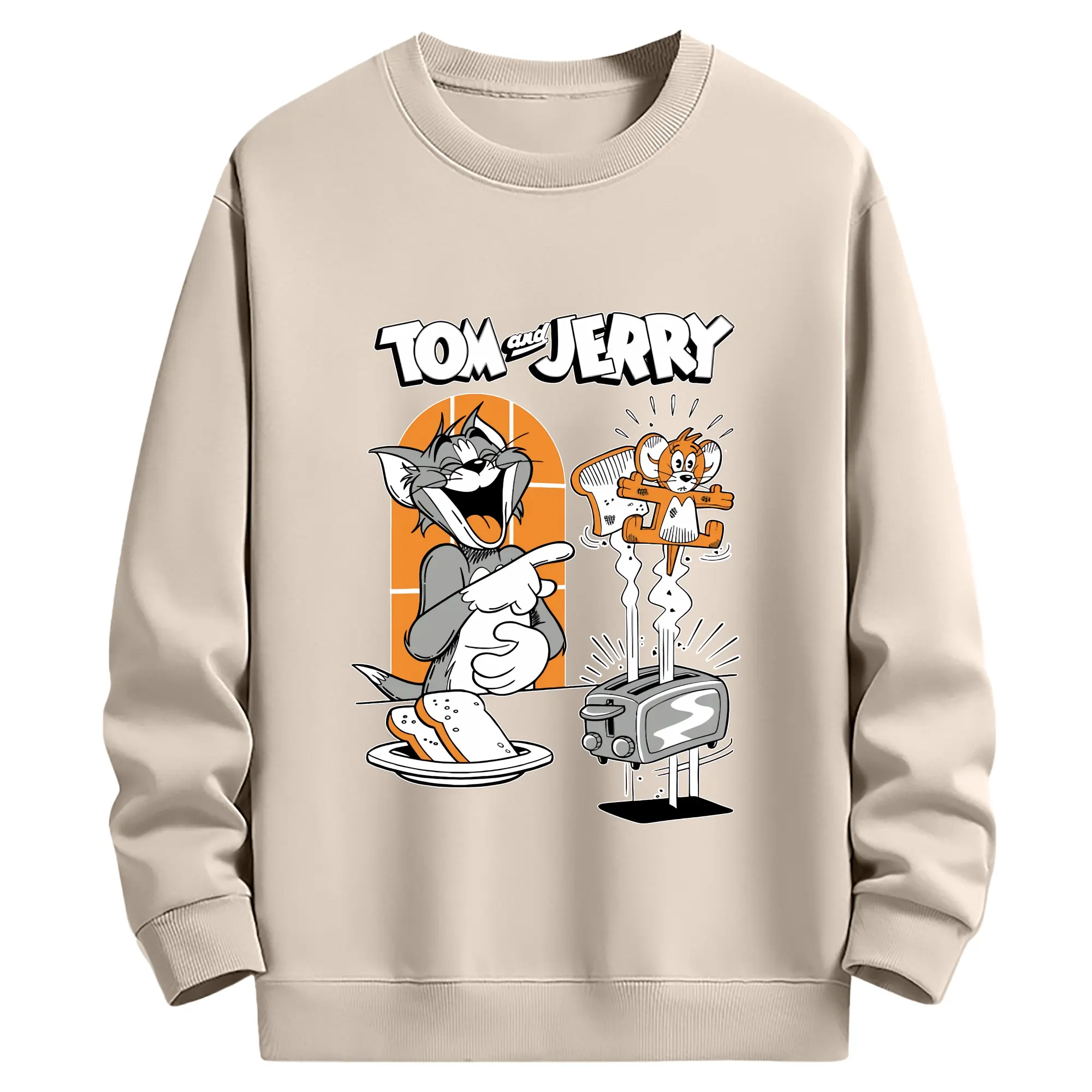 トムとジェリー グッズ トム - 薄手 クルーネック スウェット 裏毛260g · ポリエステル 春秋向け カジュアル 男女兼用 · トレーナー デイリー スポーツ 散歩に最適