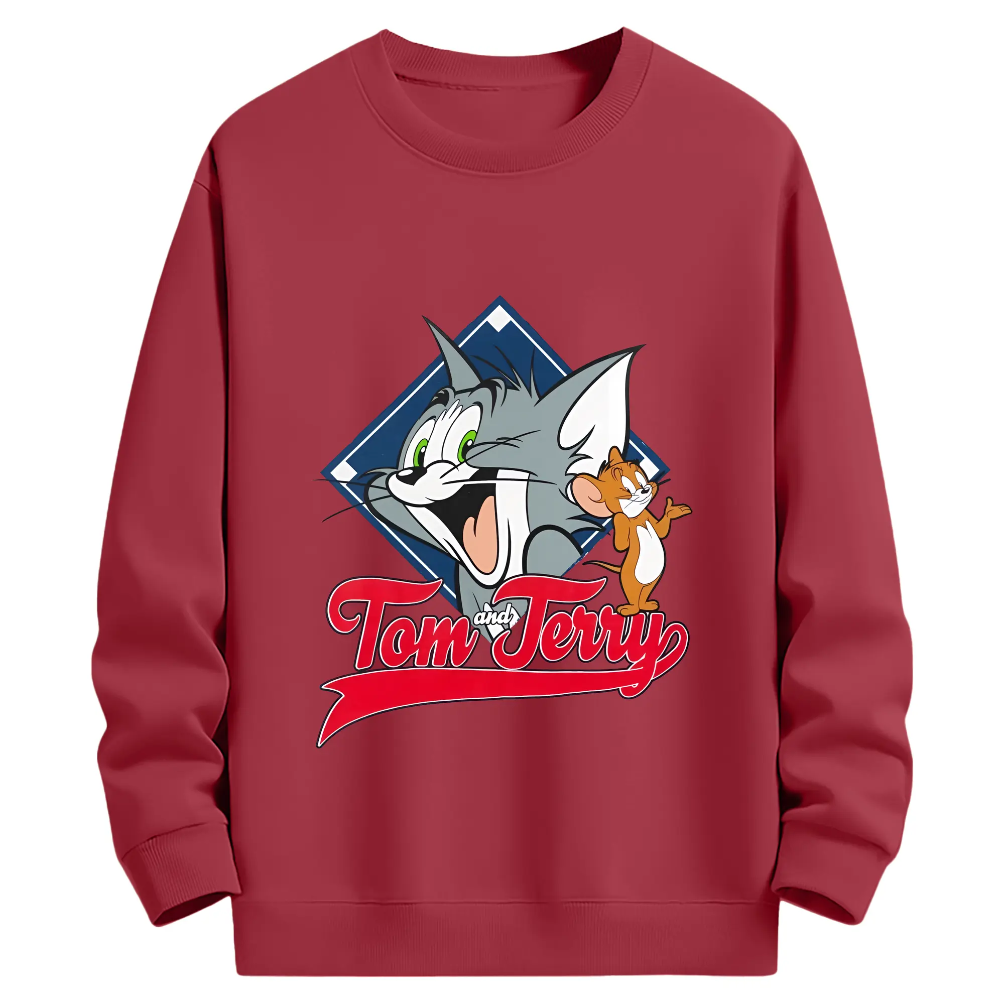 トムとジェリー グッズ トム - 薄手 クルーネック スウェット 裏毛260g · ポリエステル 春秋向け カジュアル 男女兼用 · トレーナー デイリー スポーツ 散歩に最適