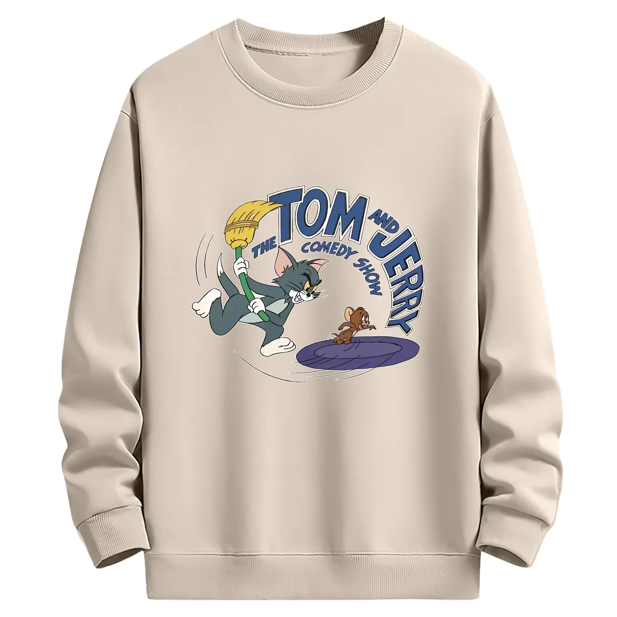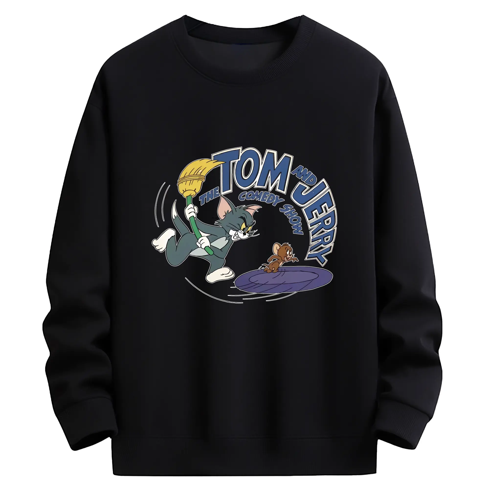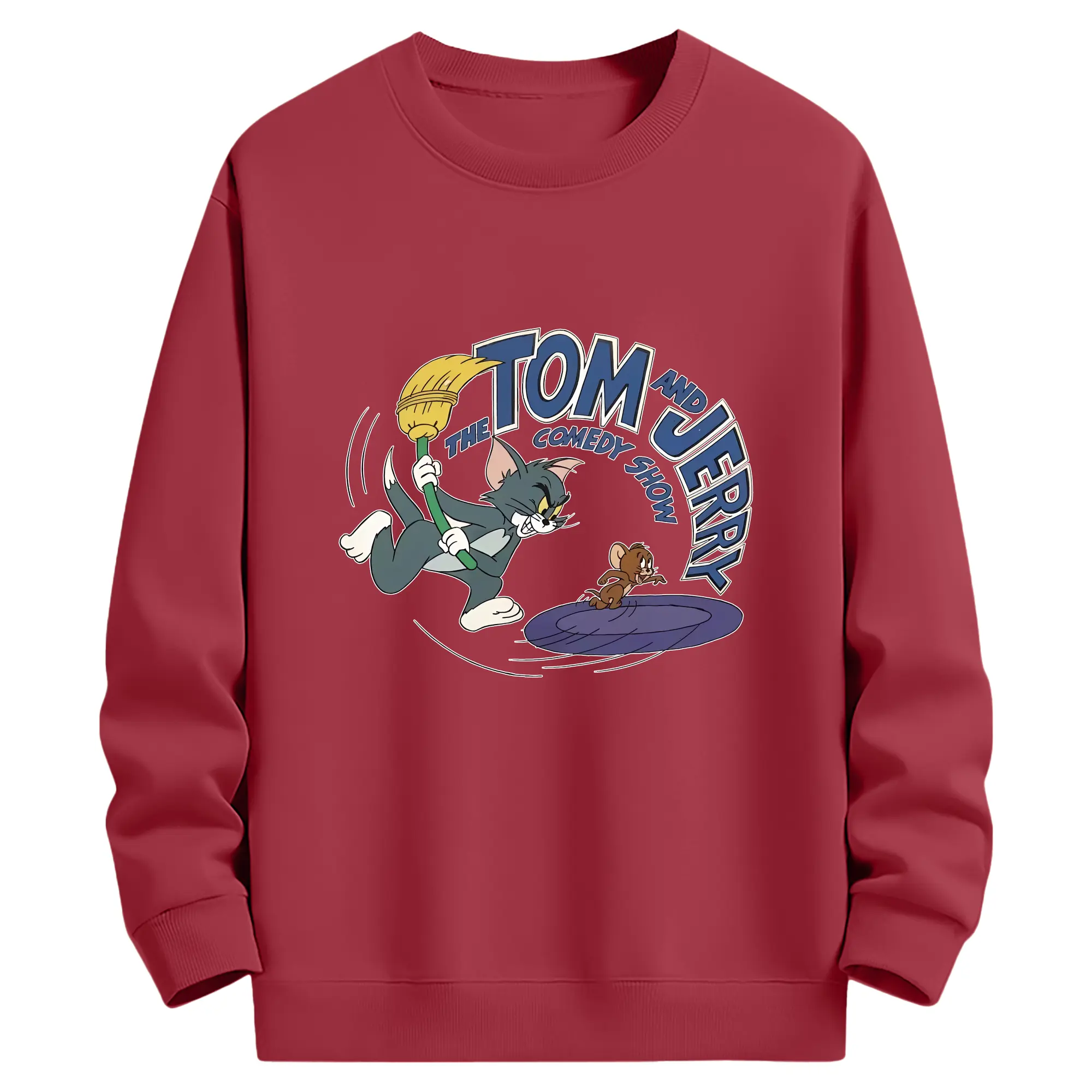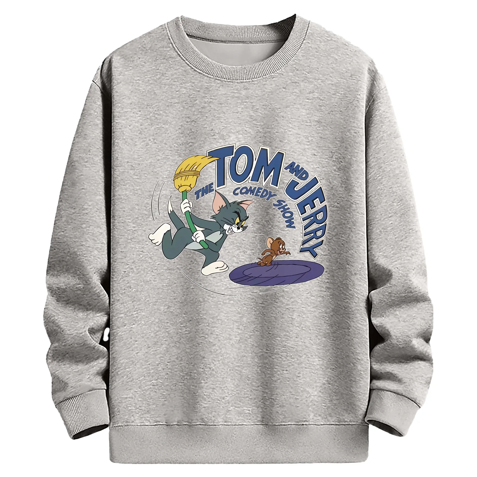 トムとジェリー グッズ トム - 薄手 クルーネック スウェット 裏毛260g · ポリエステル 春秋向け カジュアル 男女兼用 · トレーナー デイリー スポーツ 散歩に最適