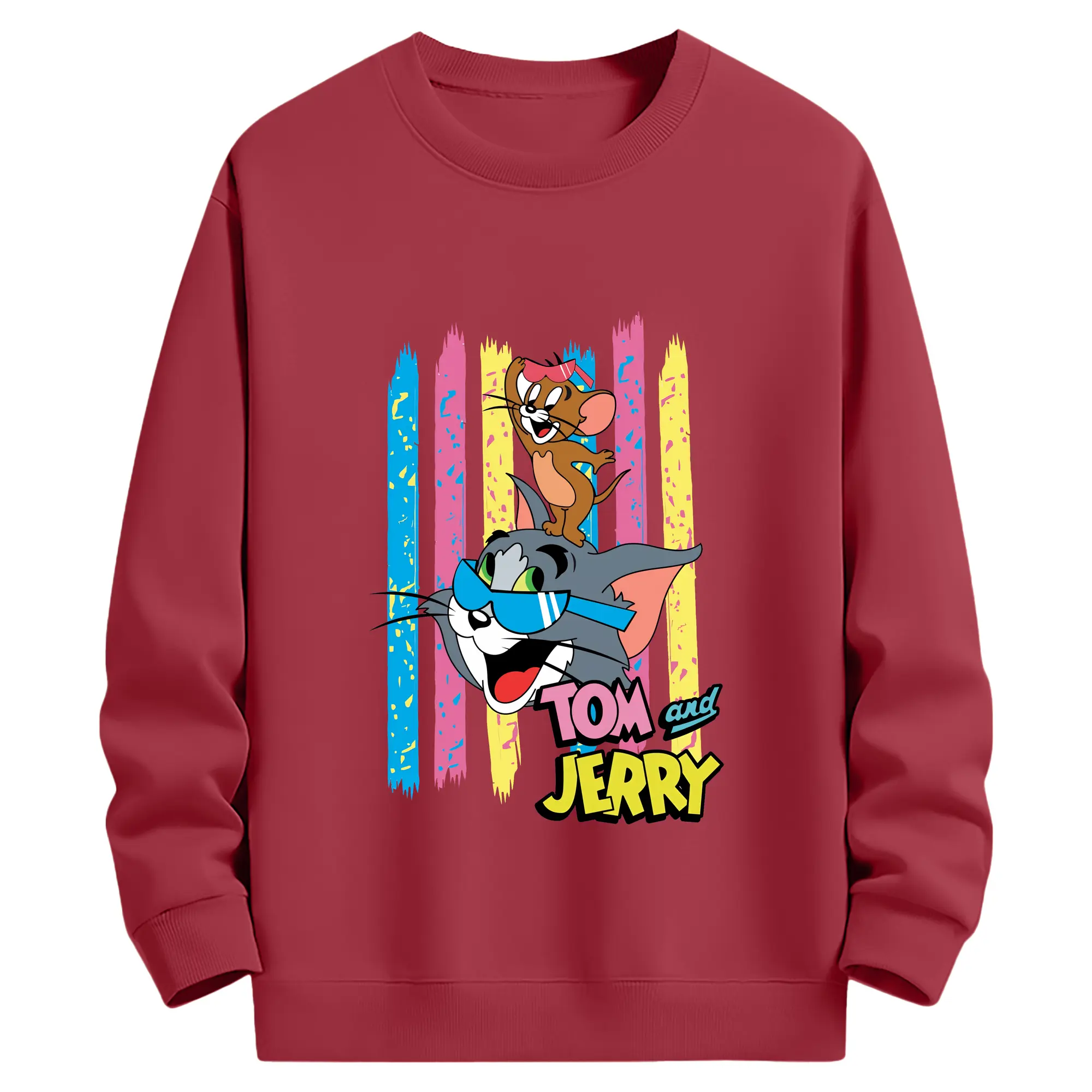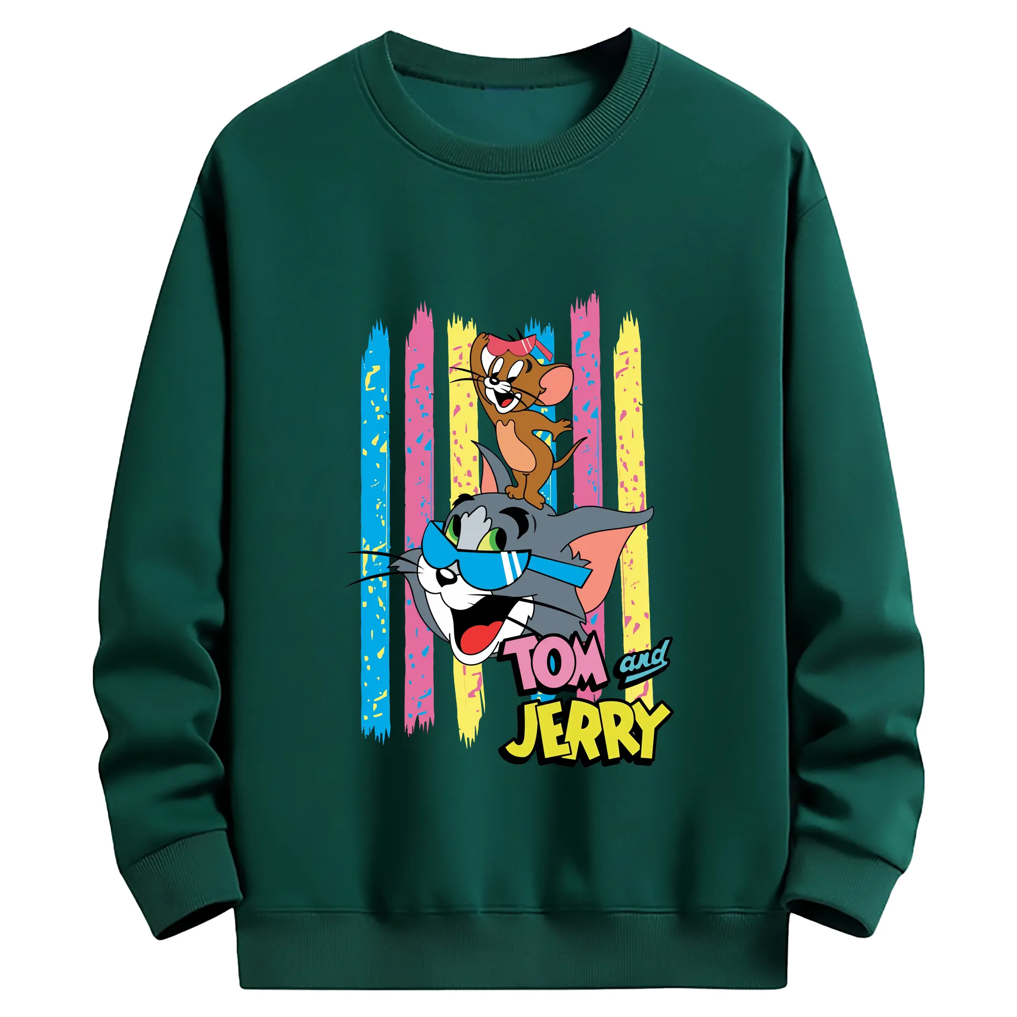 トムとジェリー グッズ トム - 高品質 クルーネック スウェット ・ コットン59% ポリエステル41% ・ ユニセックス 長袖 トレーナー ・ カジュアル デイリー スポーツ 散歩用