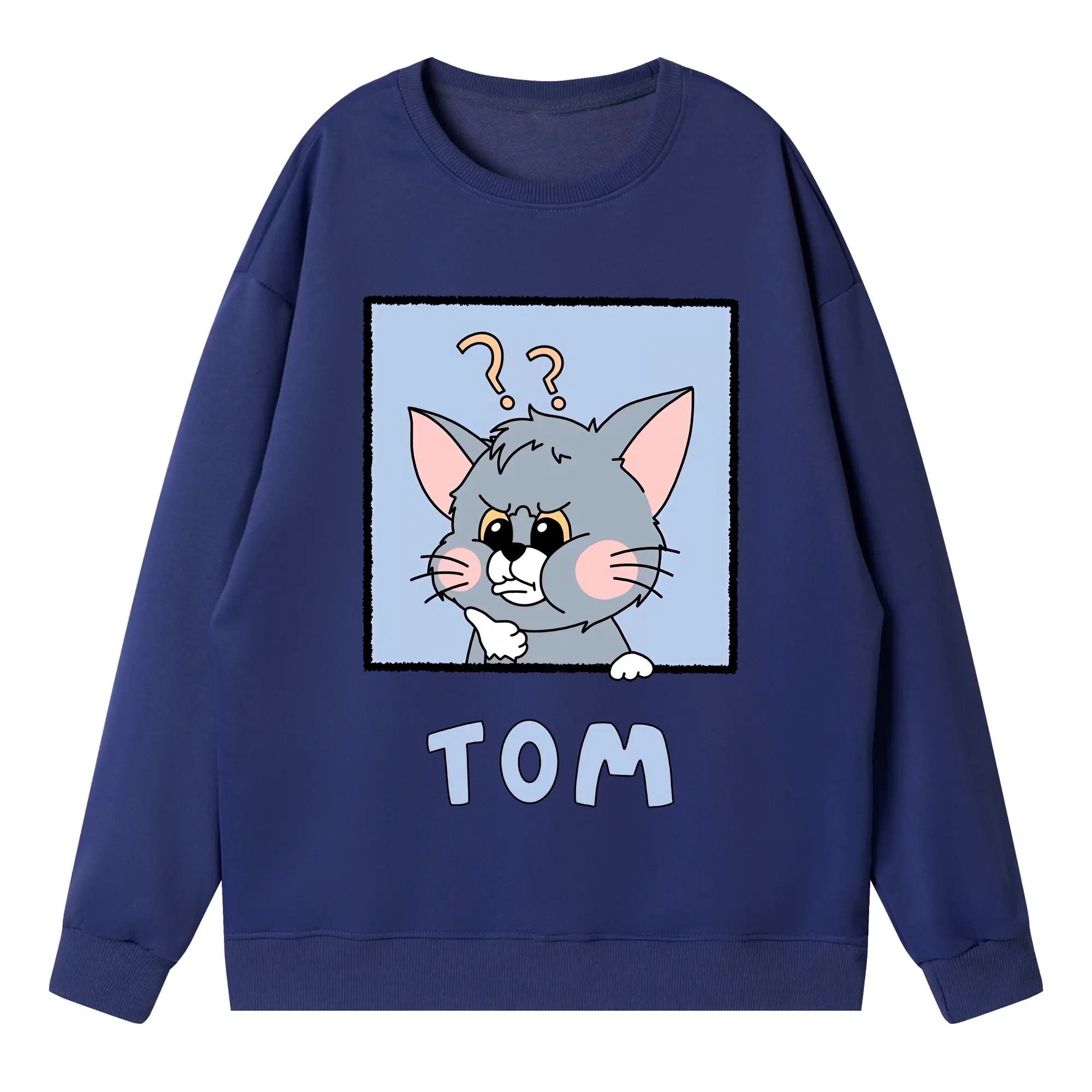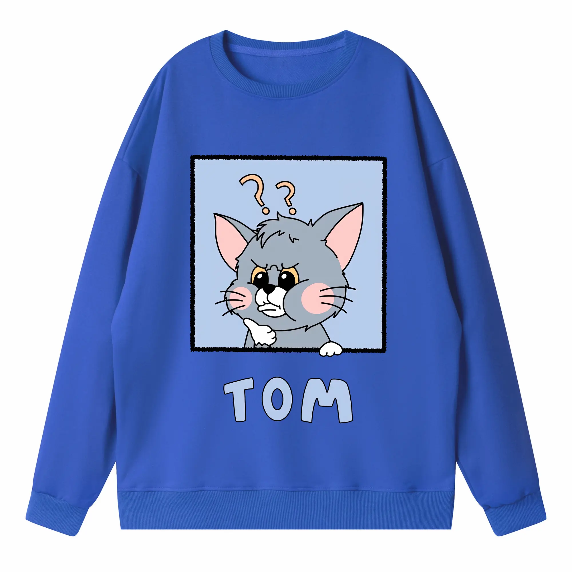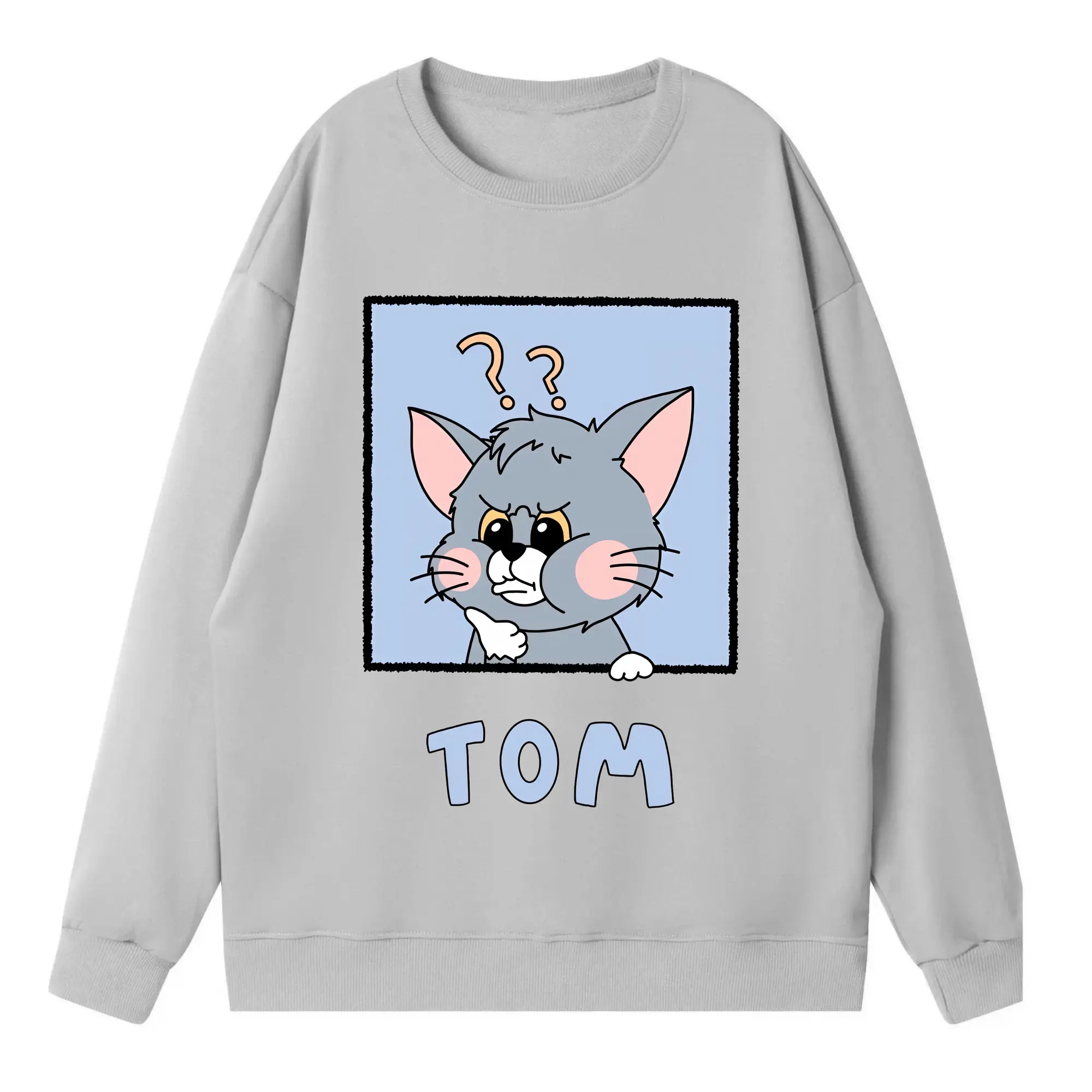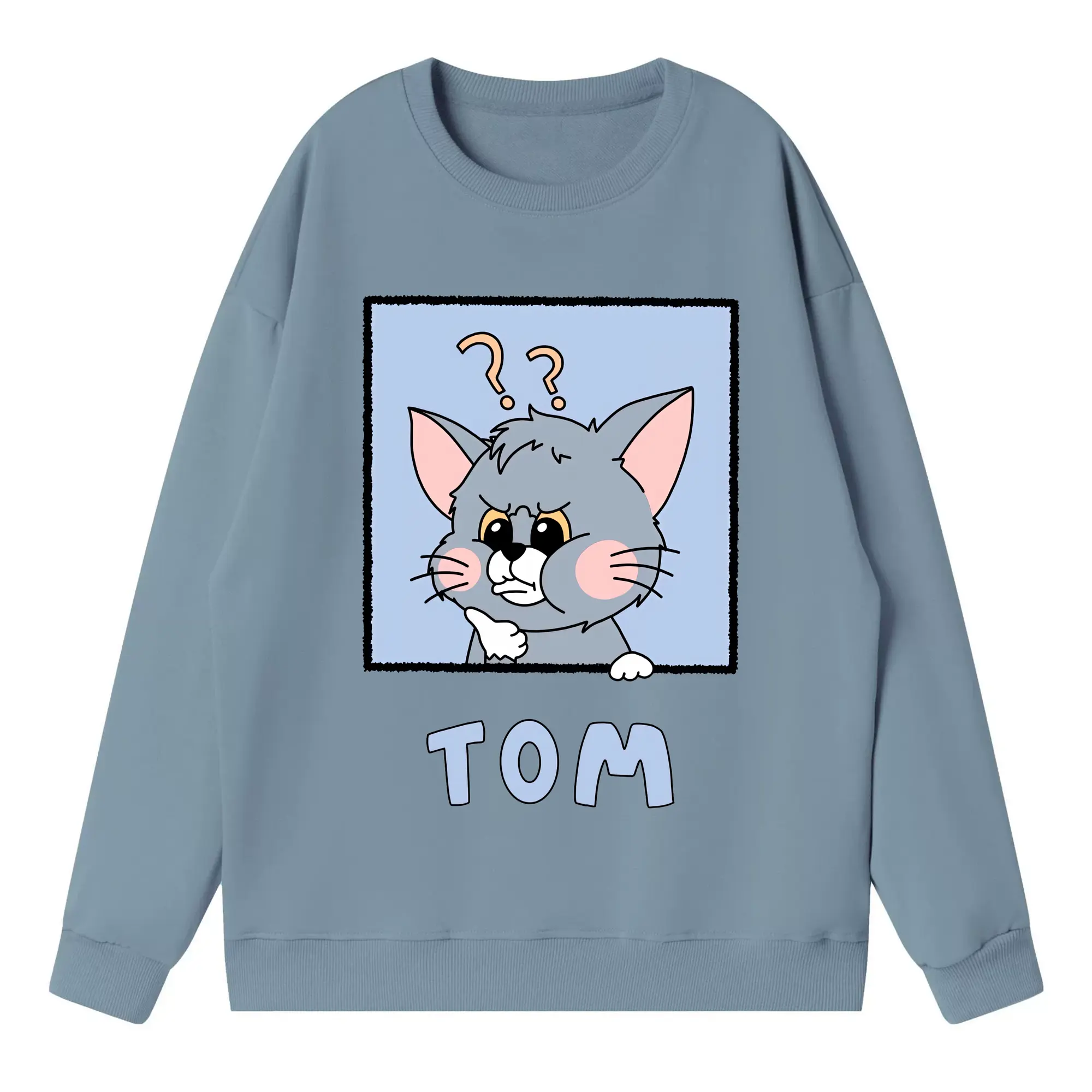 トムとジェリー グッズ トム - 高品質 クルーネック スウェット ・ コットン59% ポリエステル41% ・ ユニセックス 長袖 トレーナー ・ カジュアル デイリー スポーツ 散歩用