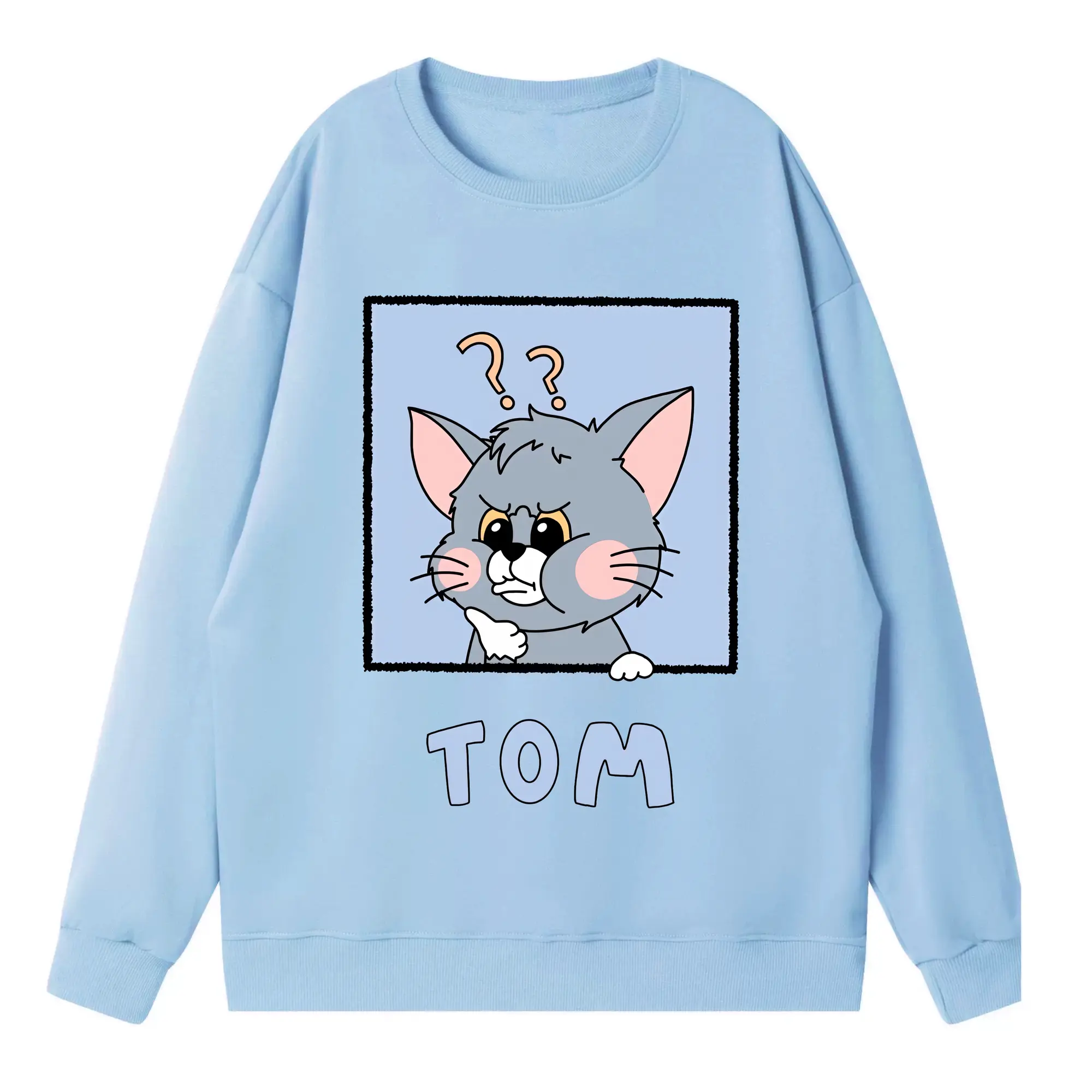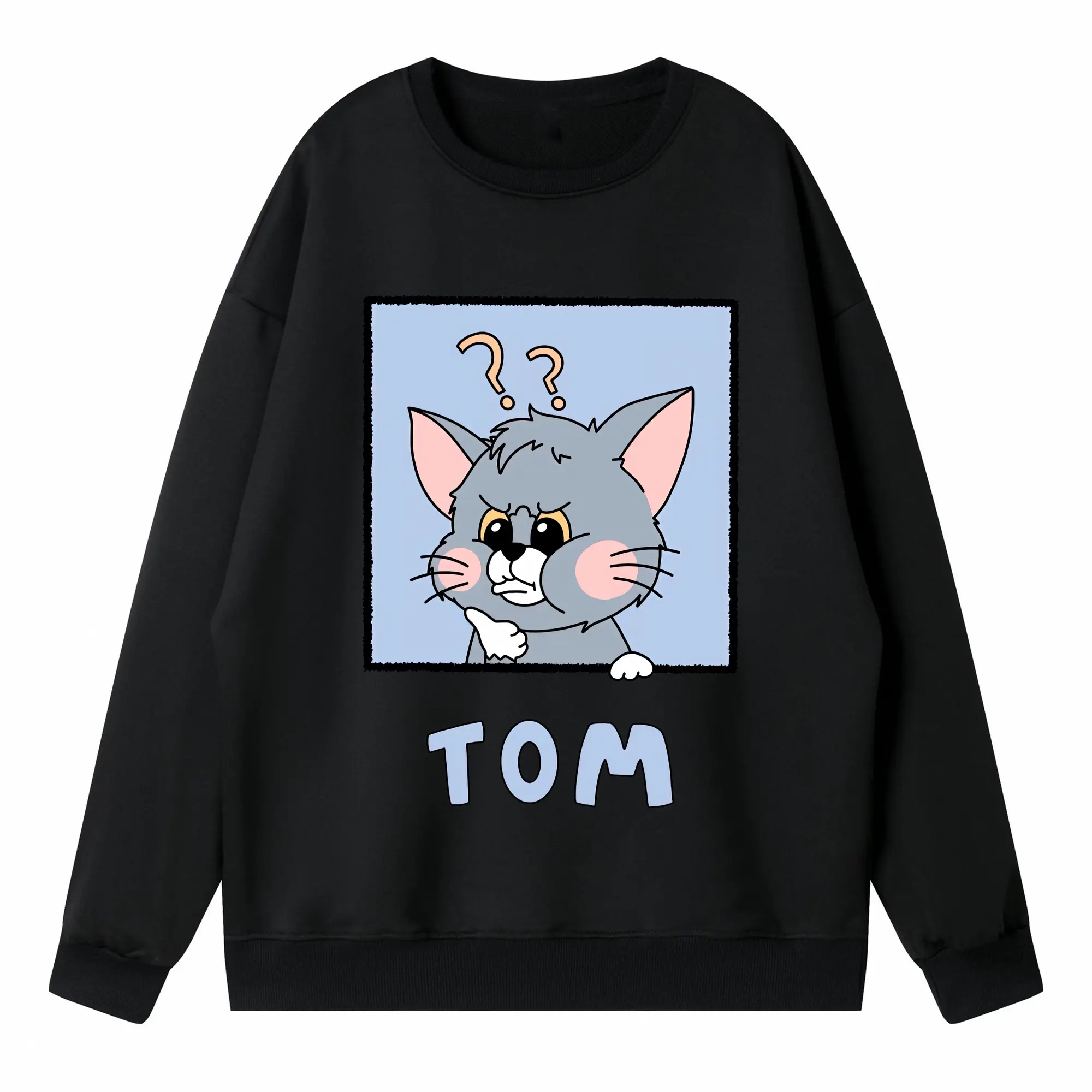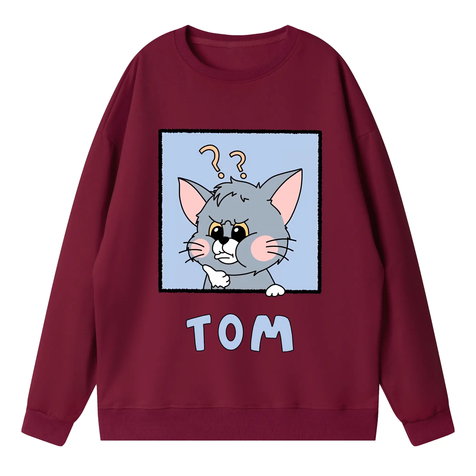 トムとジェリー グッズ トム - 高品質 クルーネック スウェット ・ コットン59% ポリエステル41% ・ ユニセックス 長袖 トレーナー ・ カジュアル デイリー スポーツ 散歩用