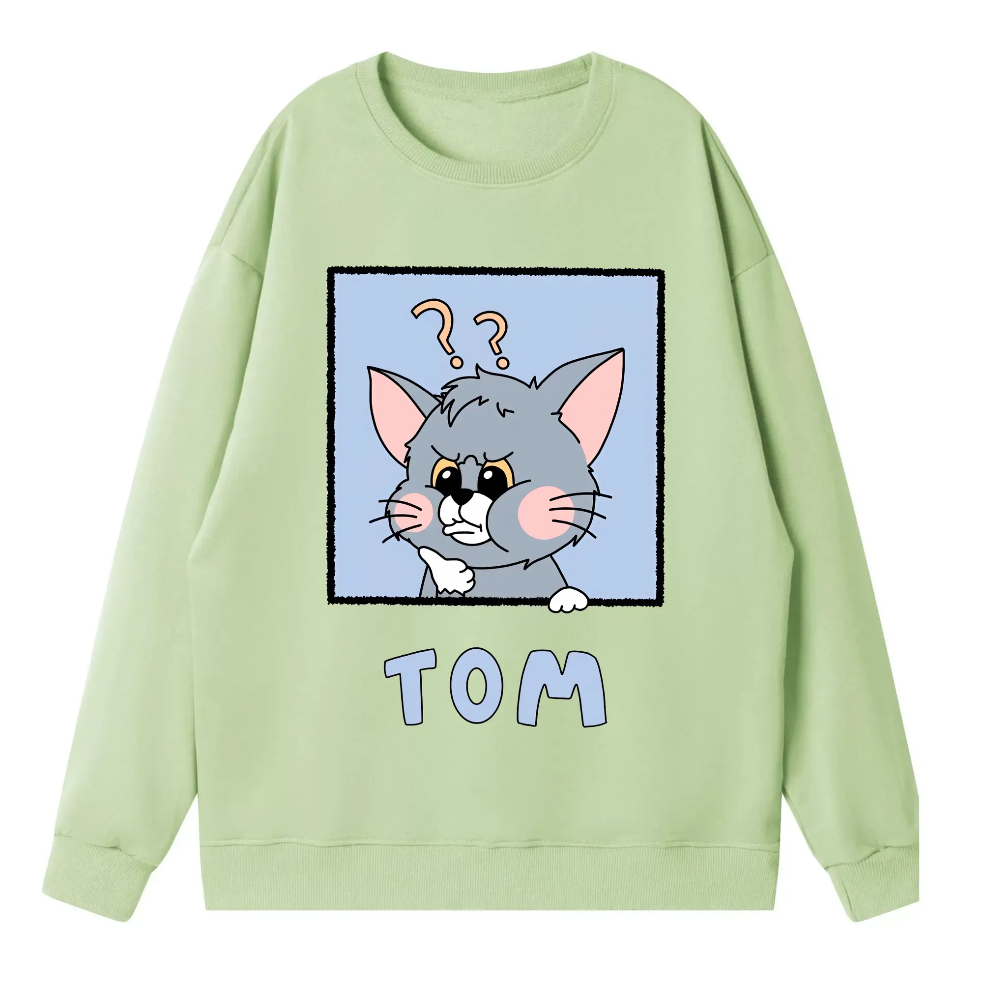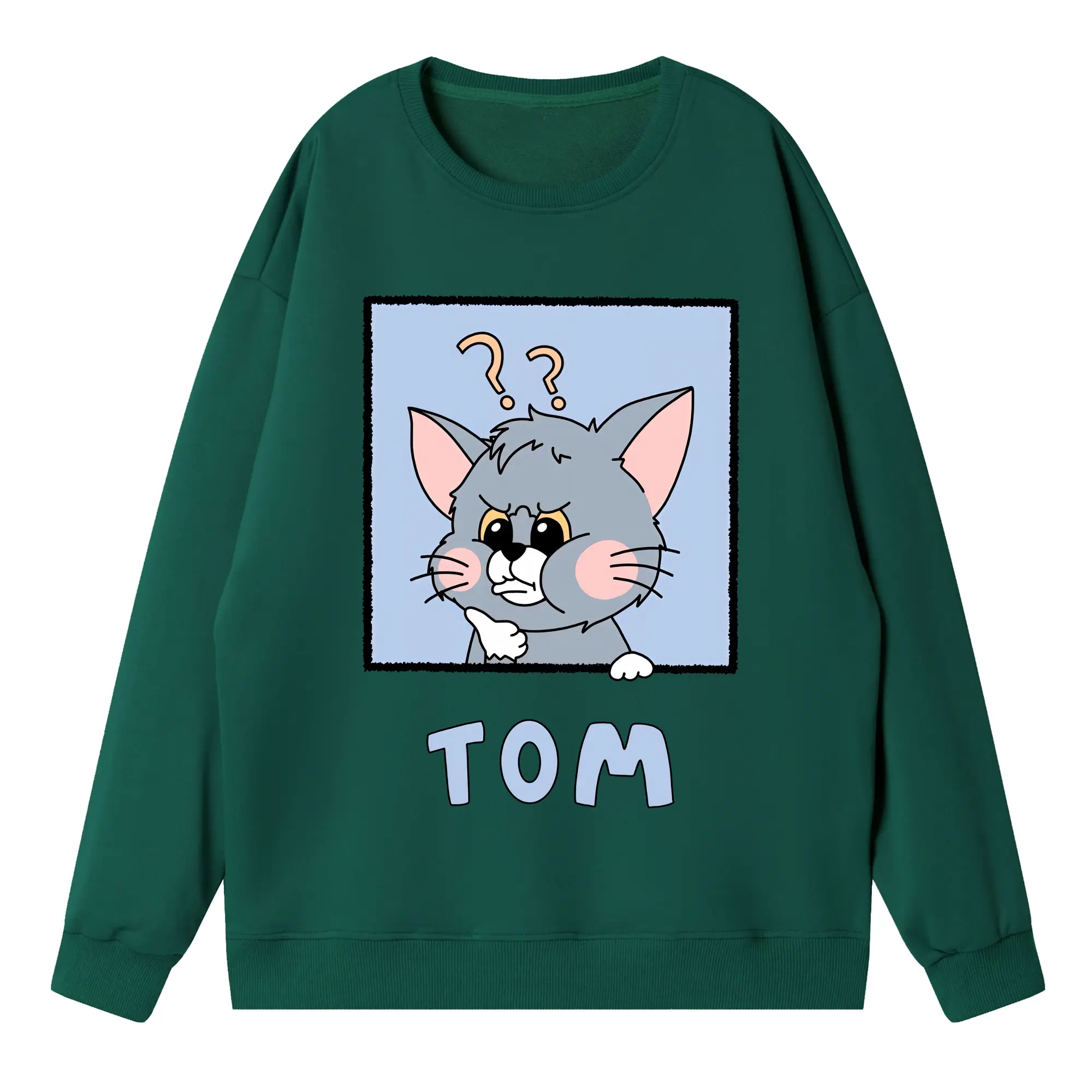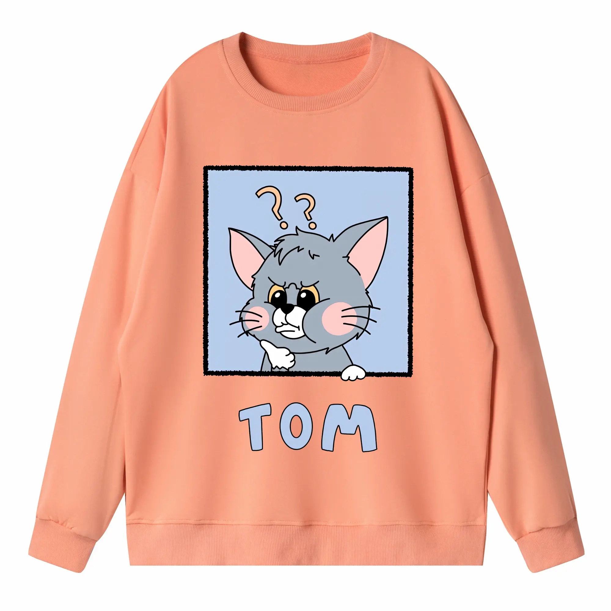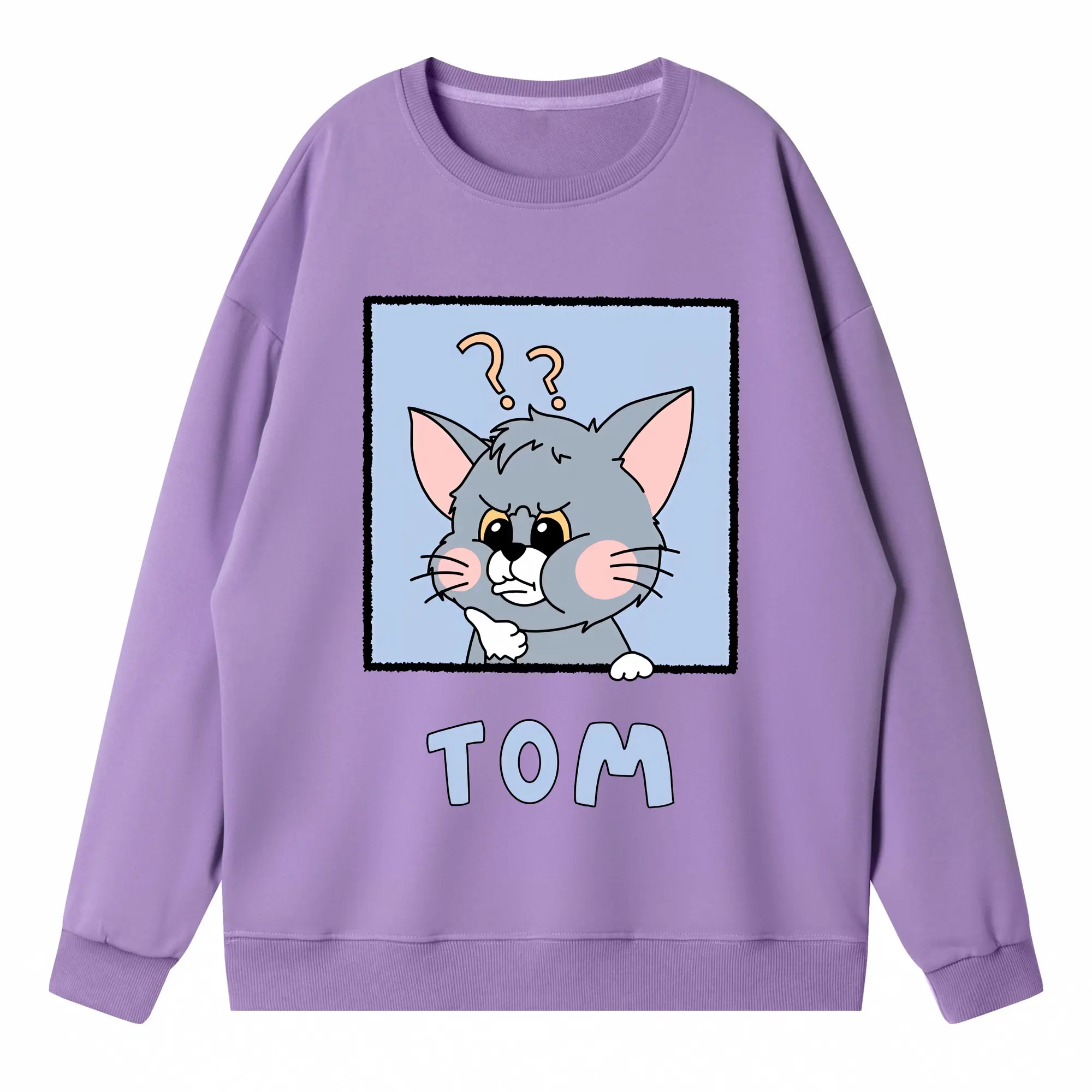 トムとジェリー グッズ トム - 高品質 クルーネック スウェット ・ コットン59% ポリエステル41% ・ ユニセックス 長袖 トレーナー ・ カジュアル デイリー スポーツ 散歩用