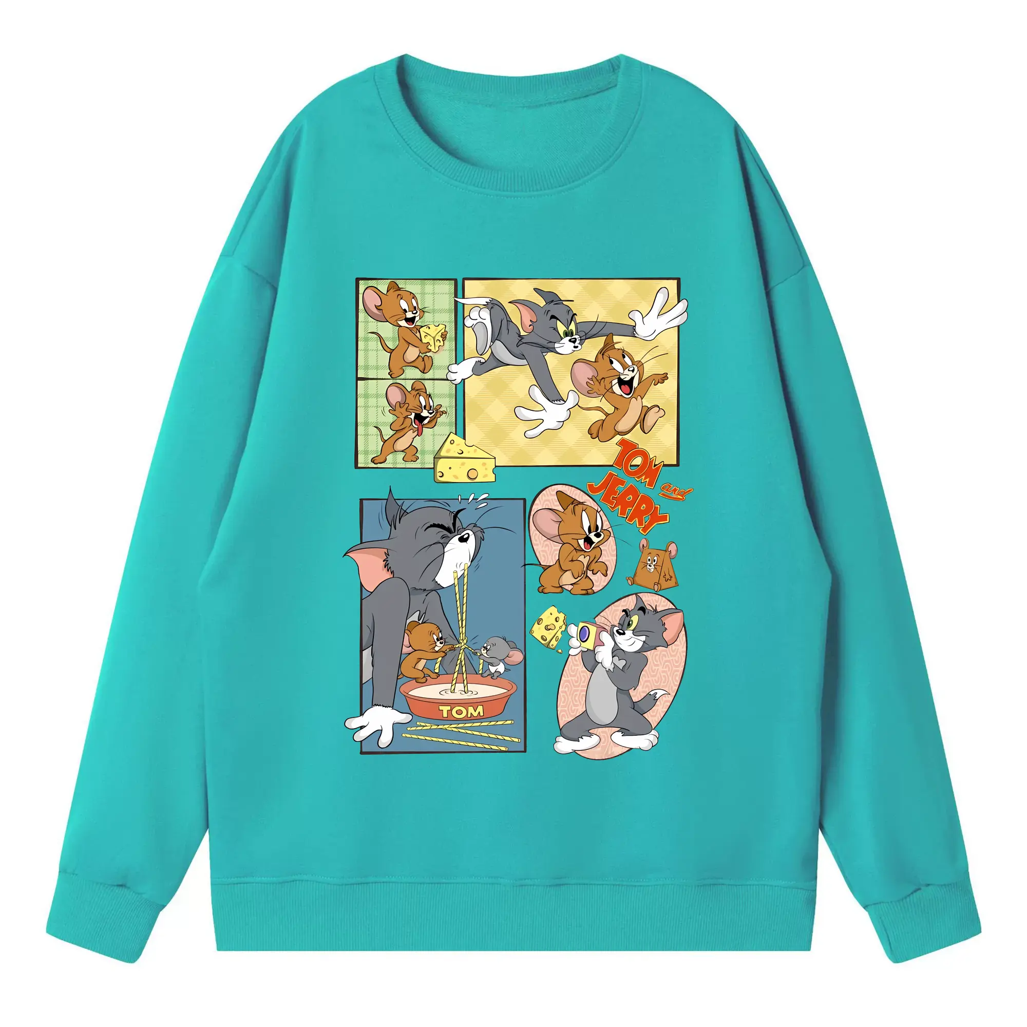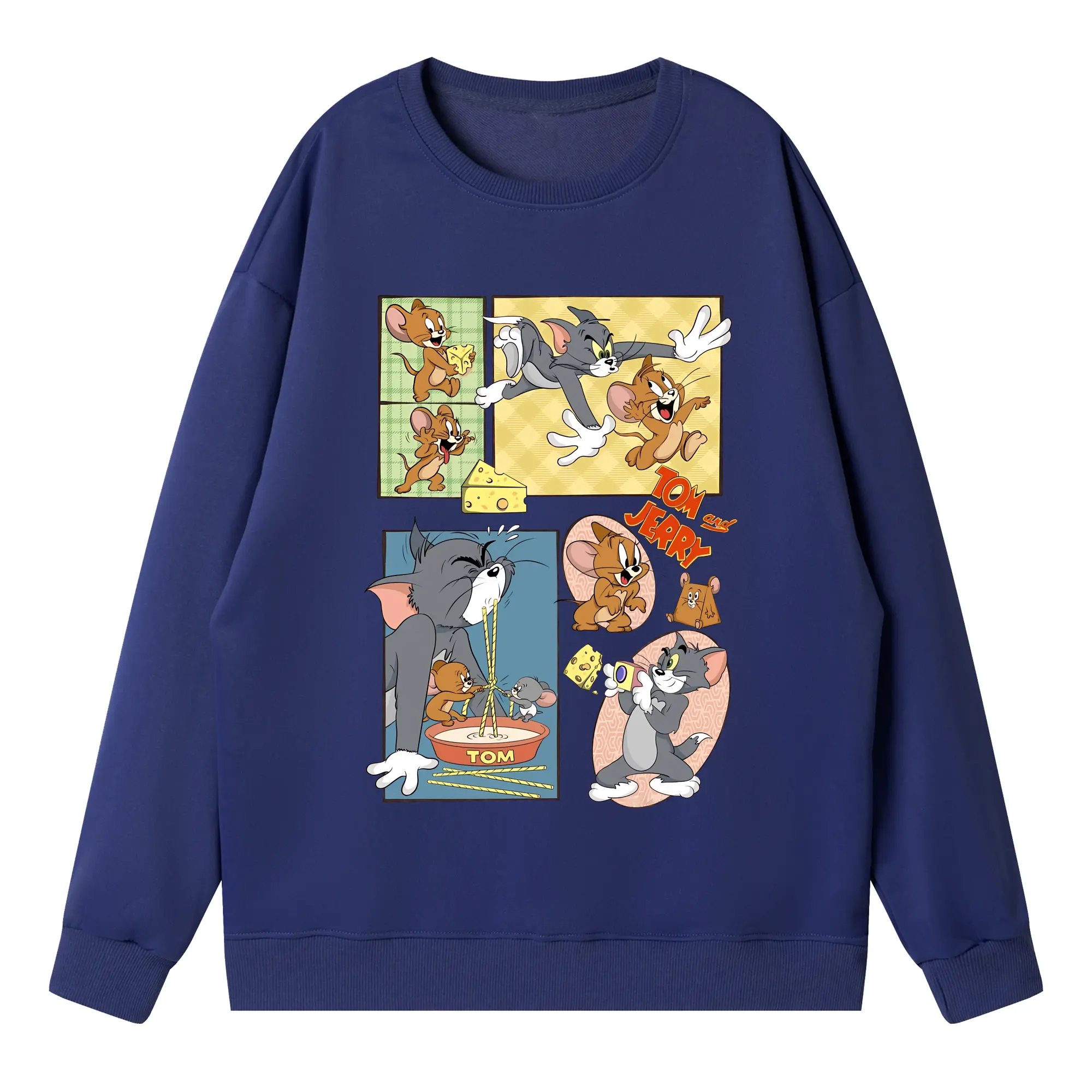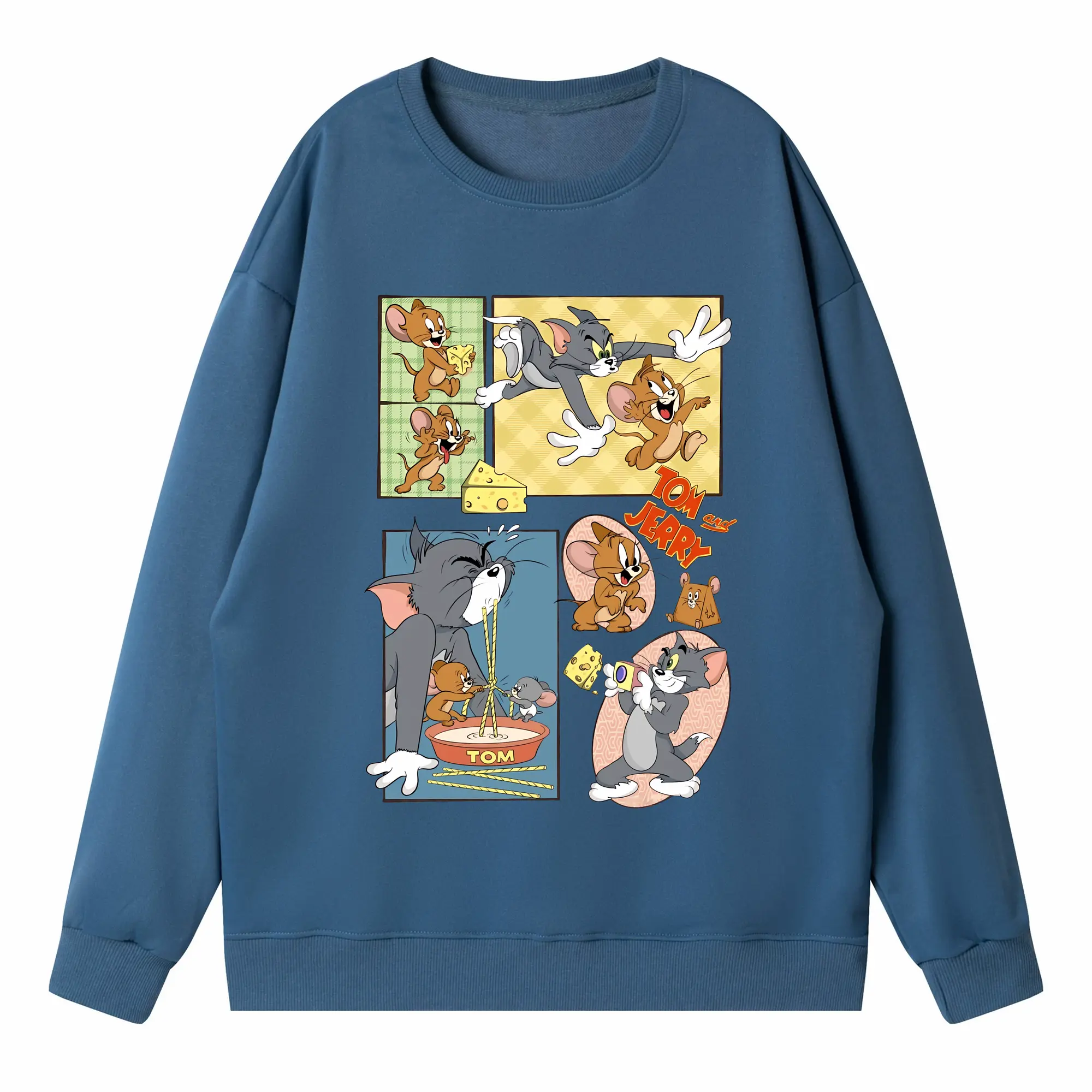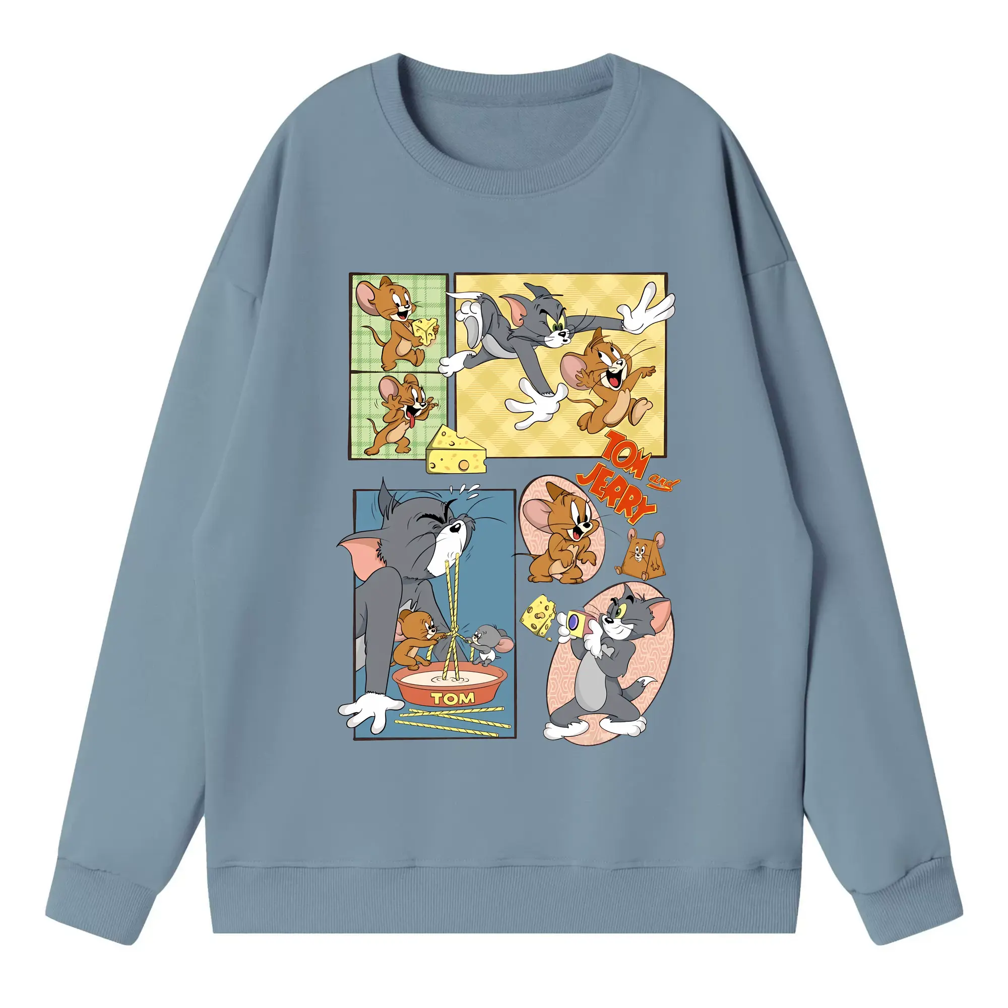 トムとジェリー グッズ トム - 高品質 クルーネック スウェット ・ コットン59% ポリエステル41% ・ ユニセックス 長袖 トレーナー ・ カジュアル デイリー スポーツ 散歩用