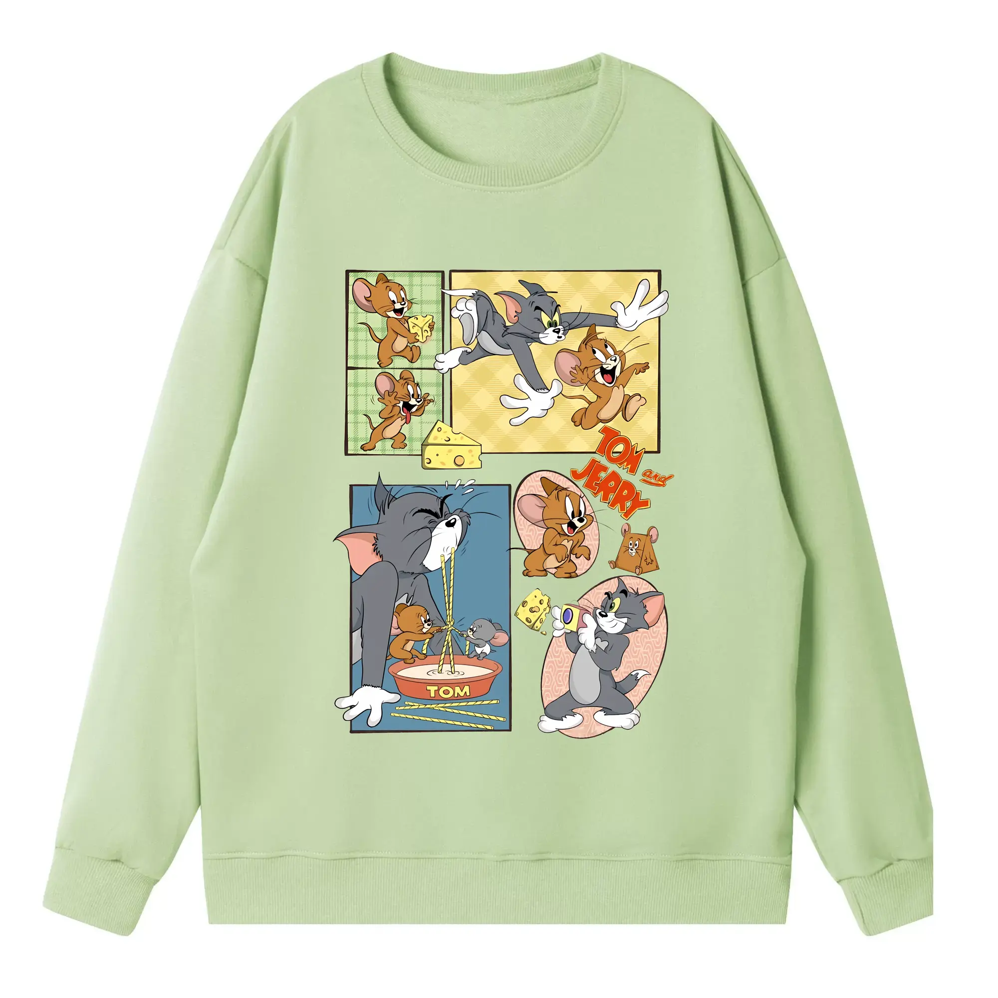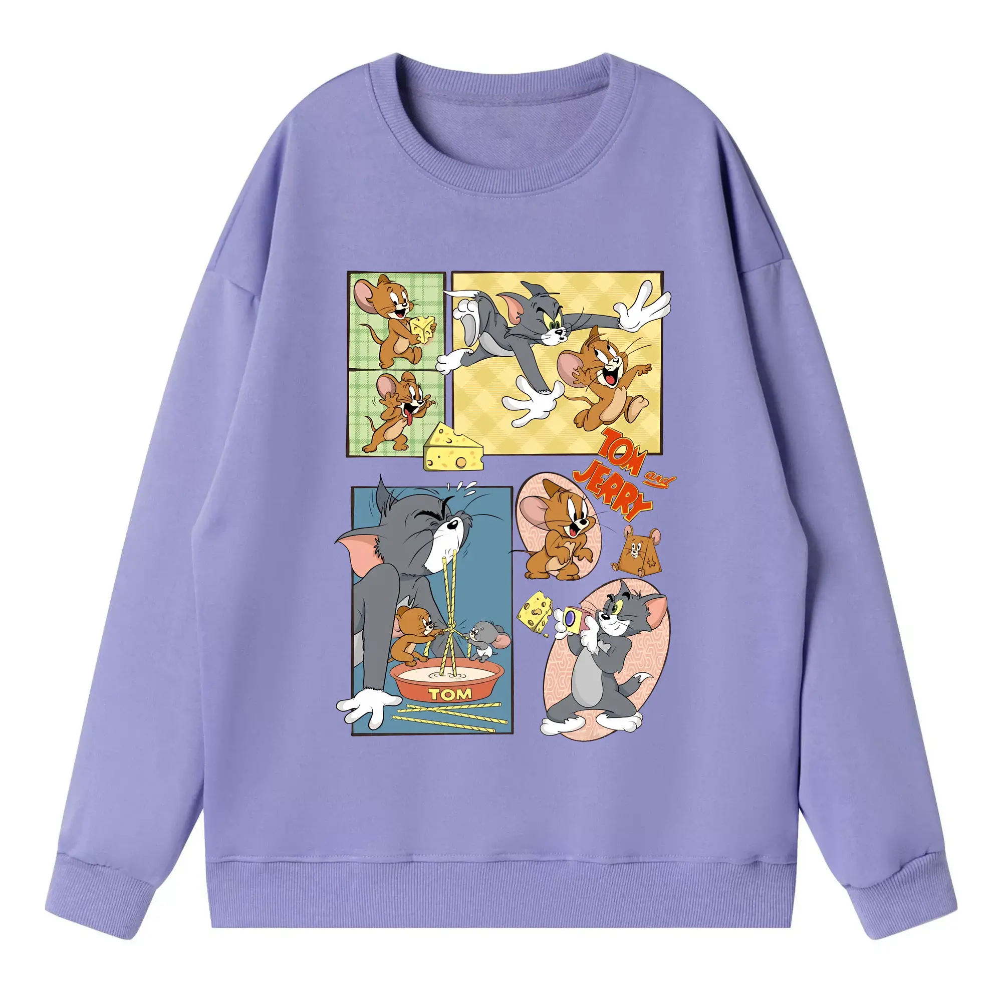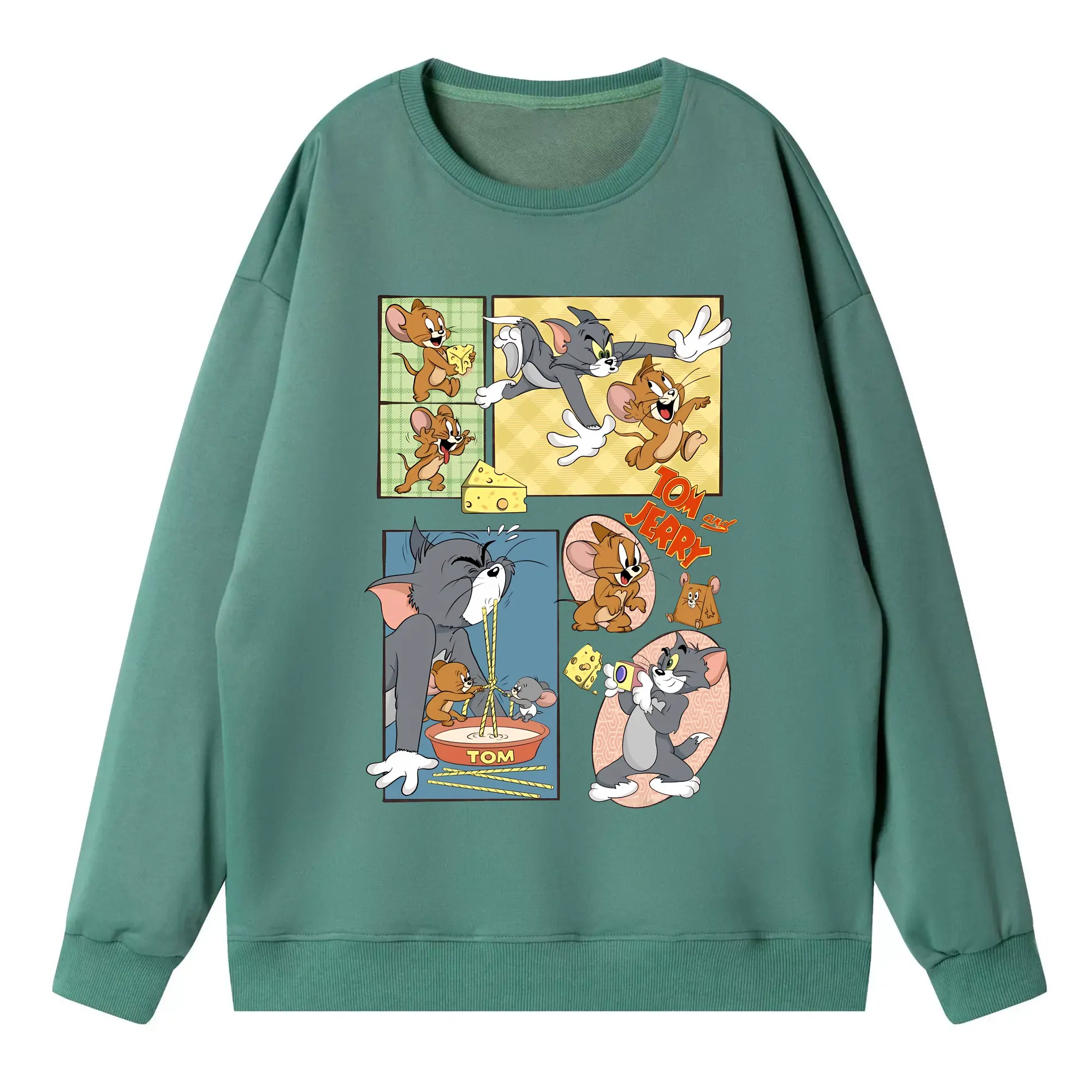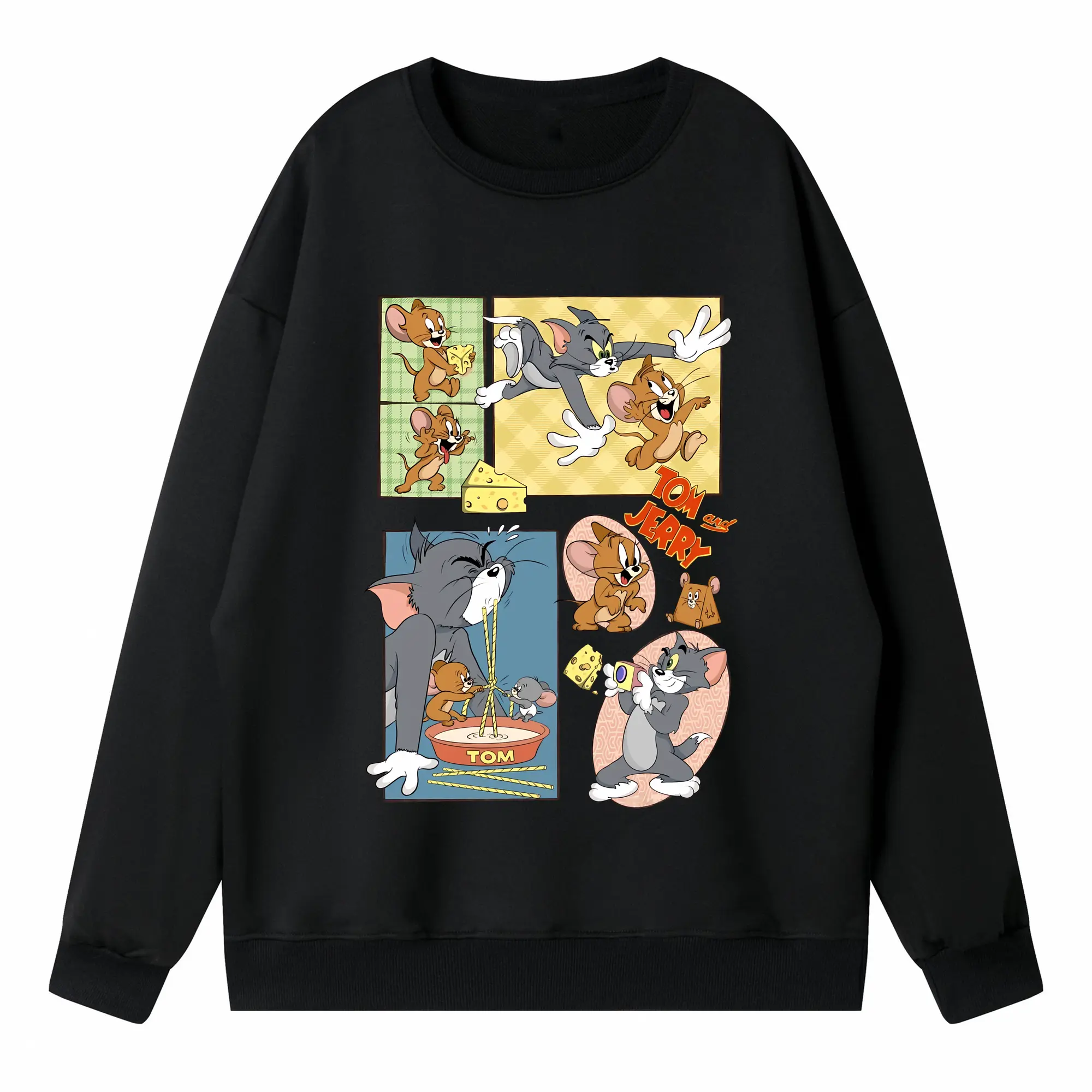 トムとジェリー グッズ トム - 高品質 クルーネック スウェット ・ コットン59% ポリエステル41% ・ ユニセックス 長袖 トレーナー ・ カジュアル デイリー スポーツ 散歩用
