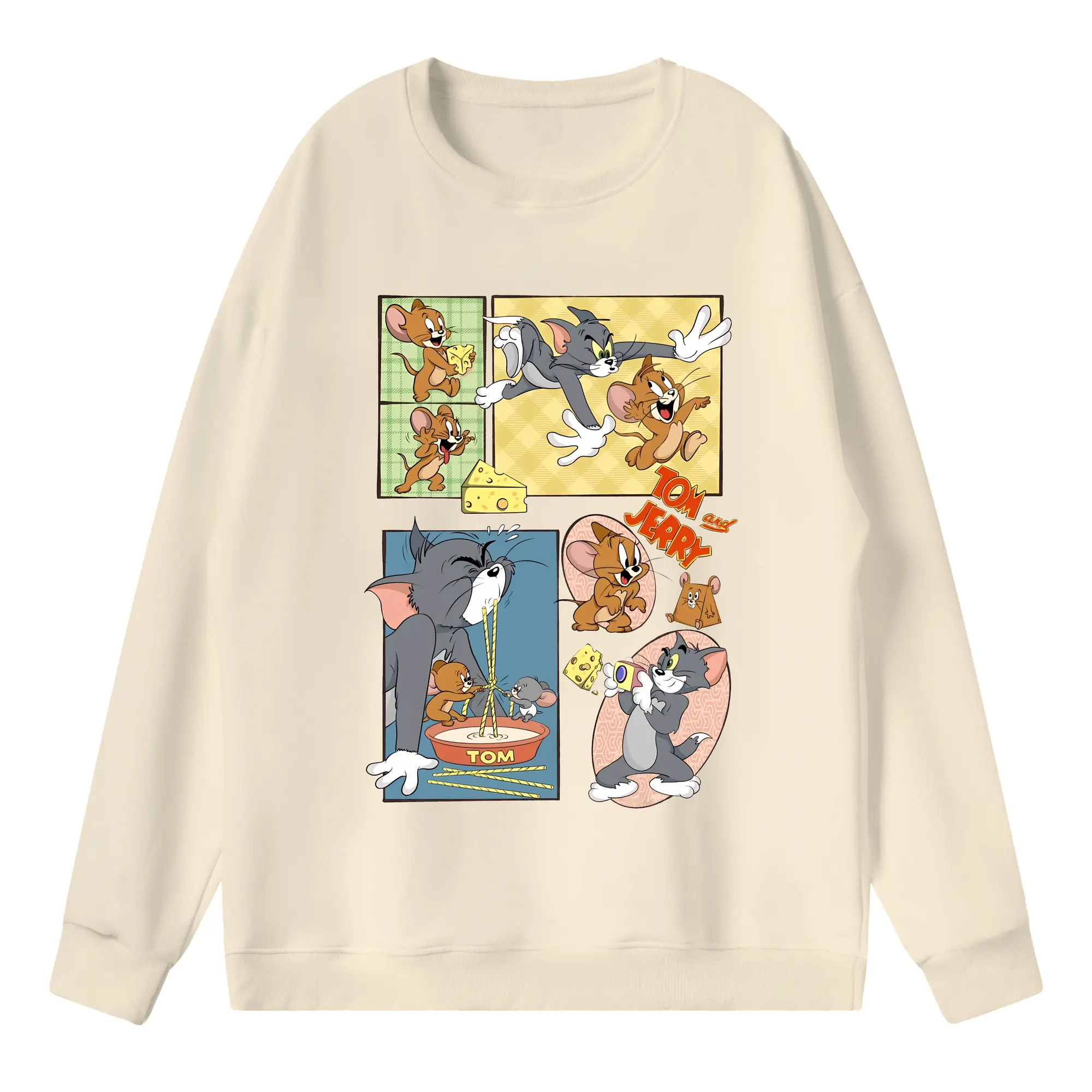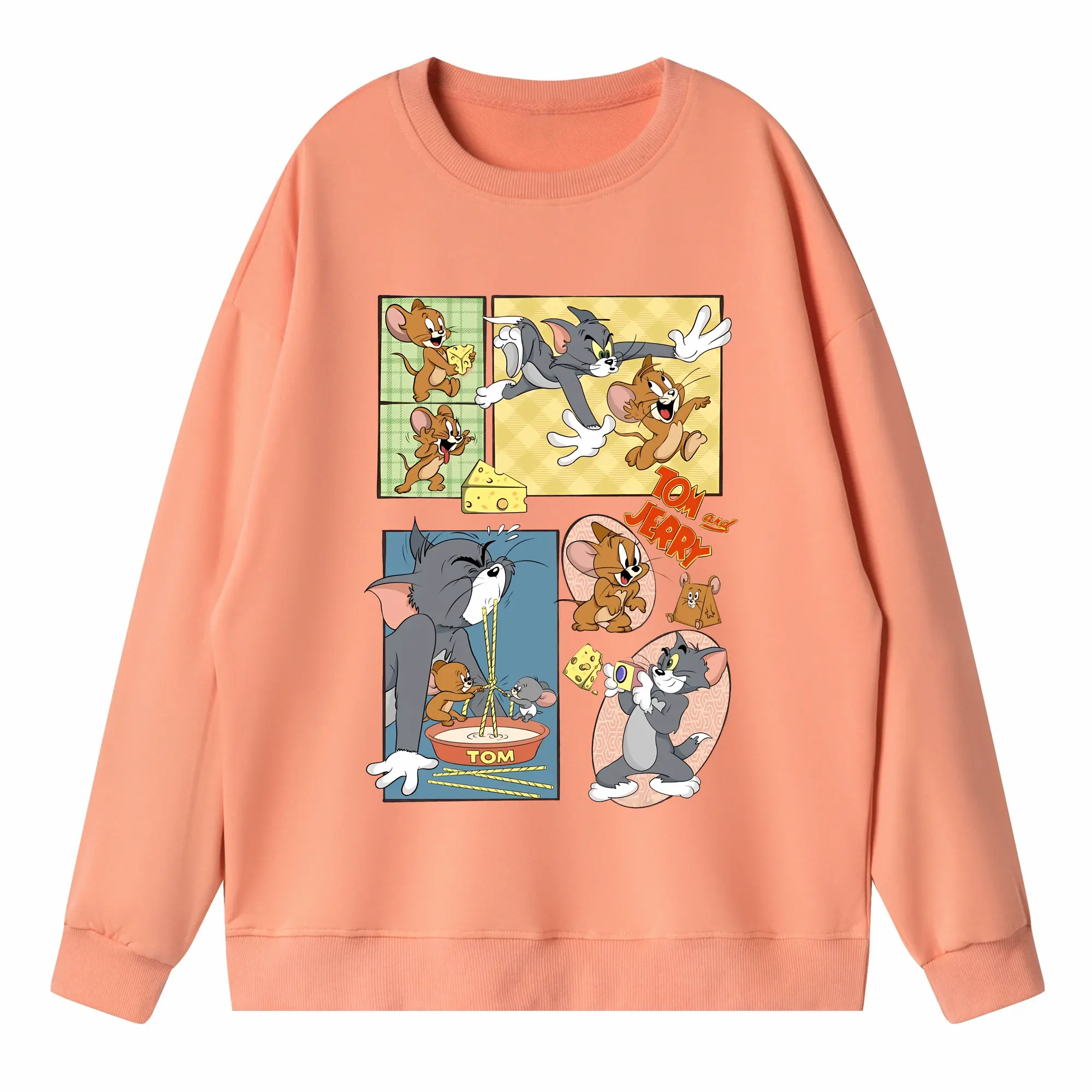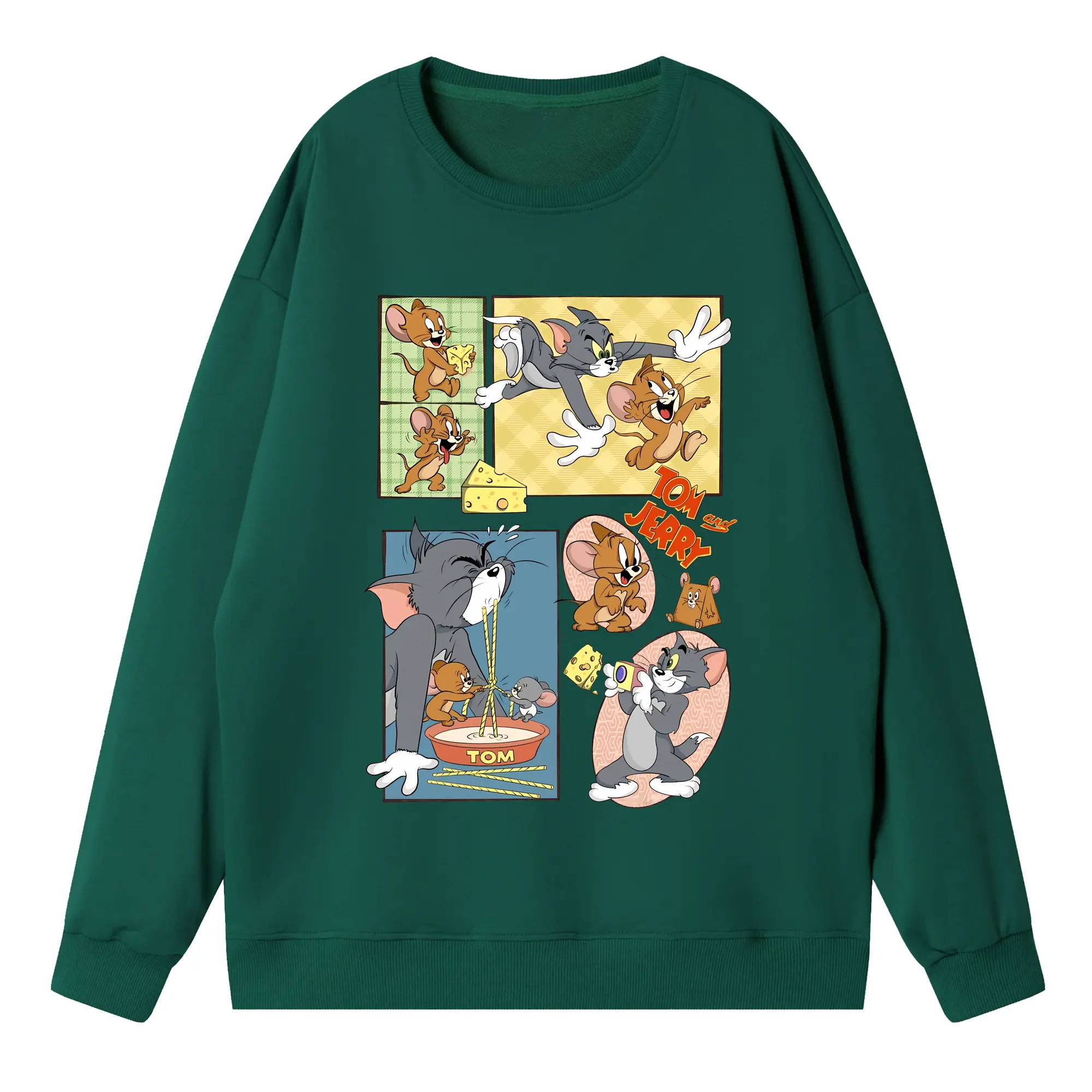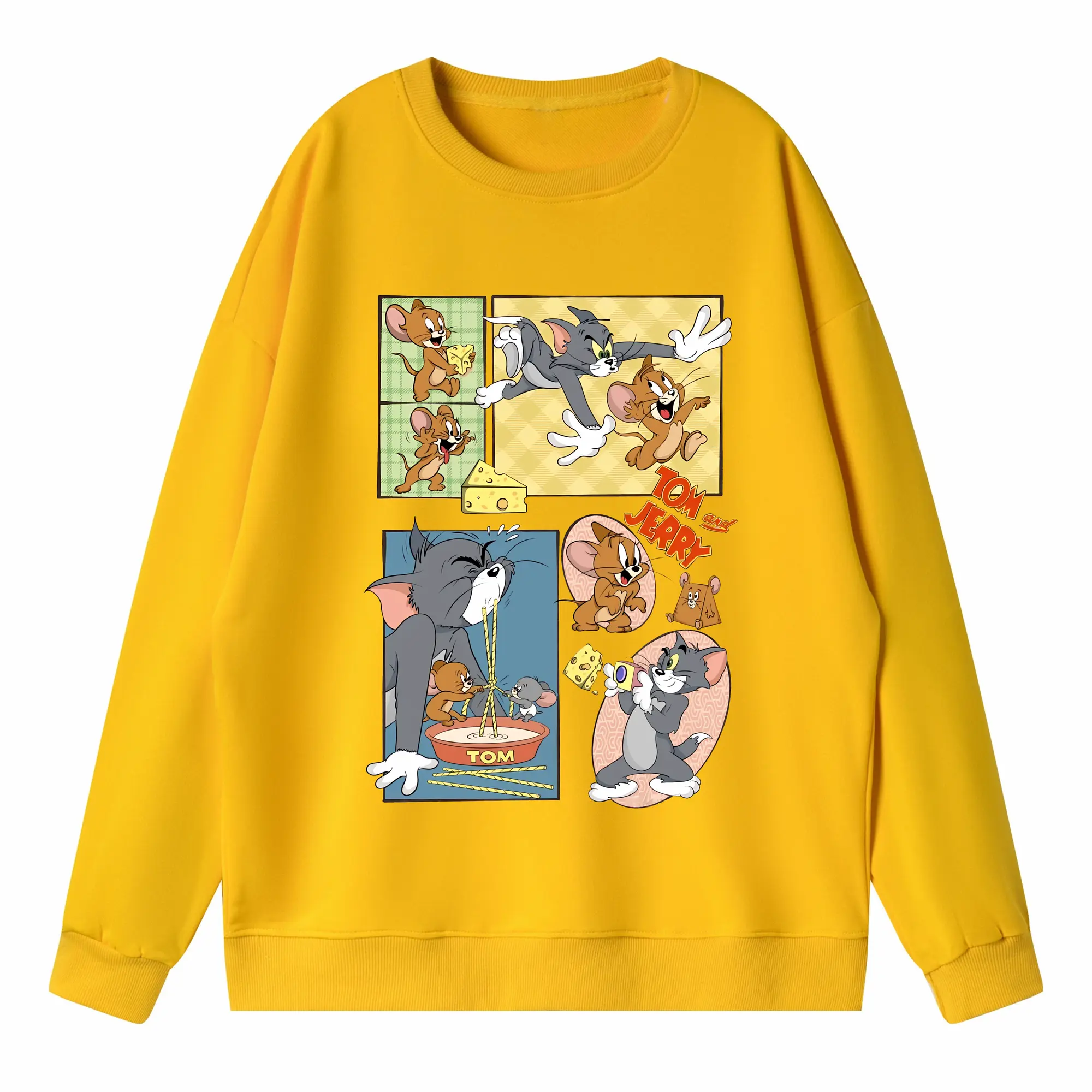トムとジェリー グッズ トム - 高品質 クルーネック スウェット ・ コットン59% ポリエステル41% ・ ユニセックス 長袖 トレーナー ・ カジュアル デイリー スポーツ 散歩用