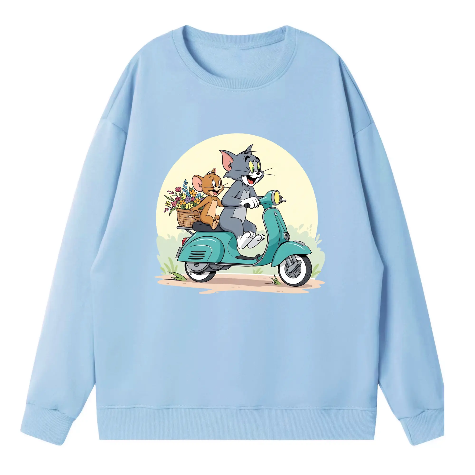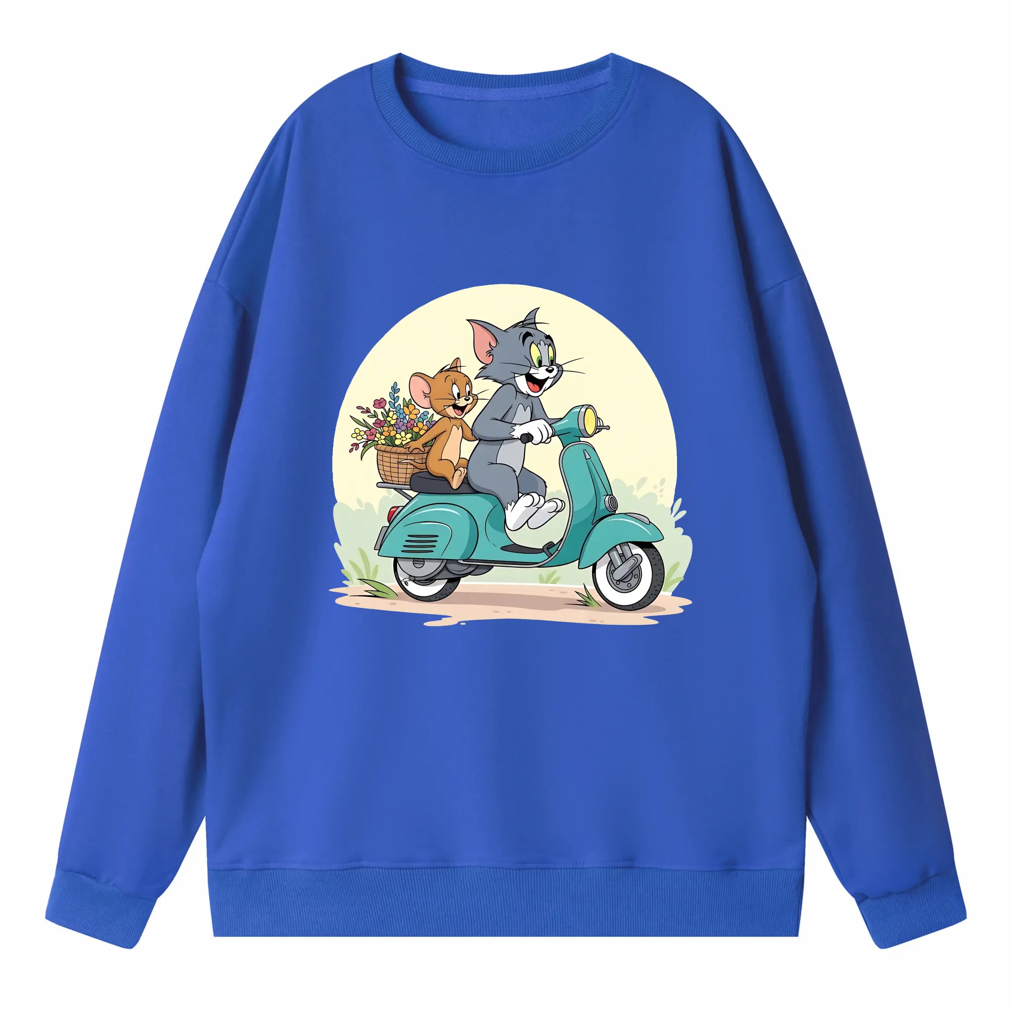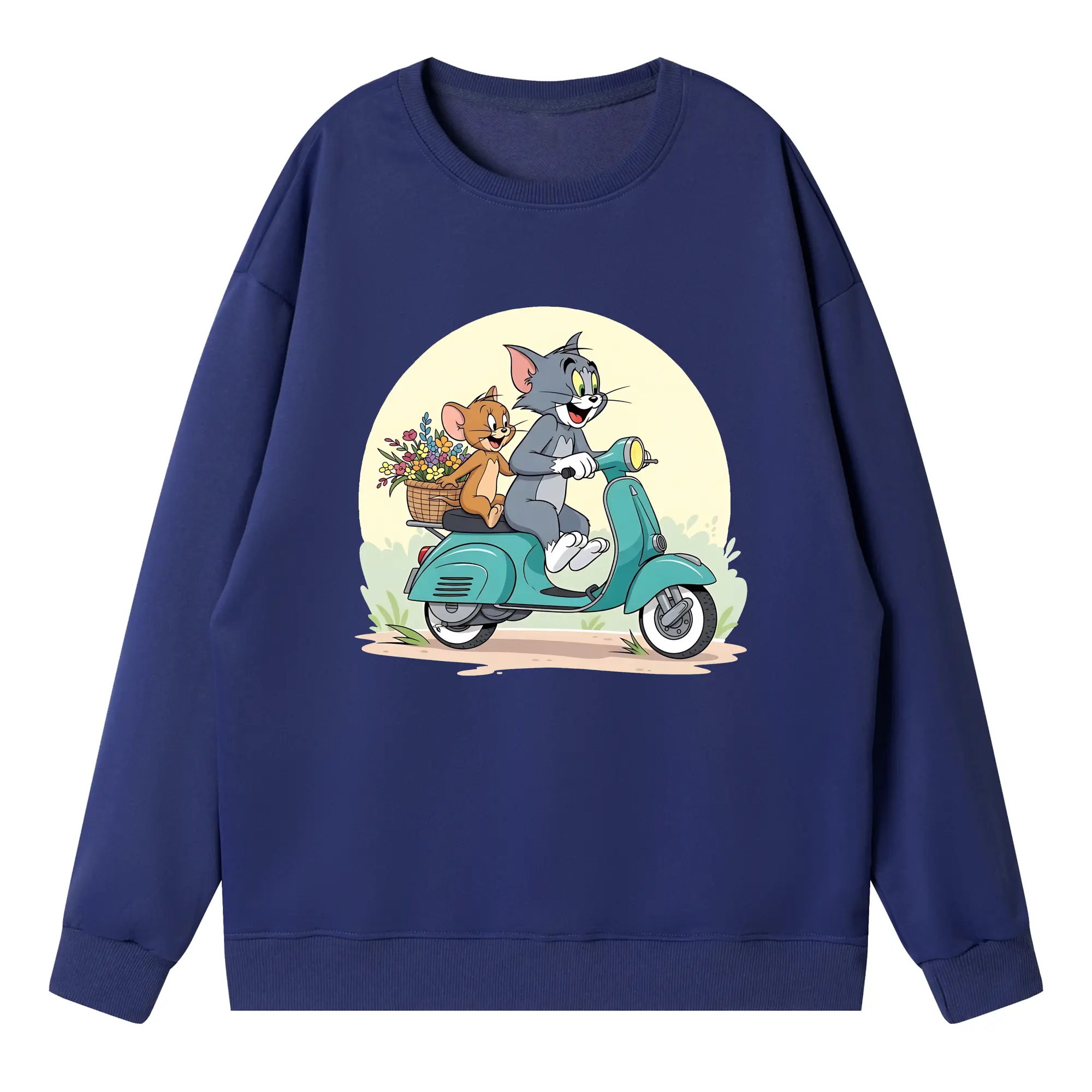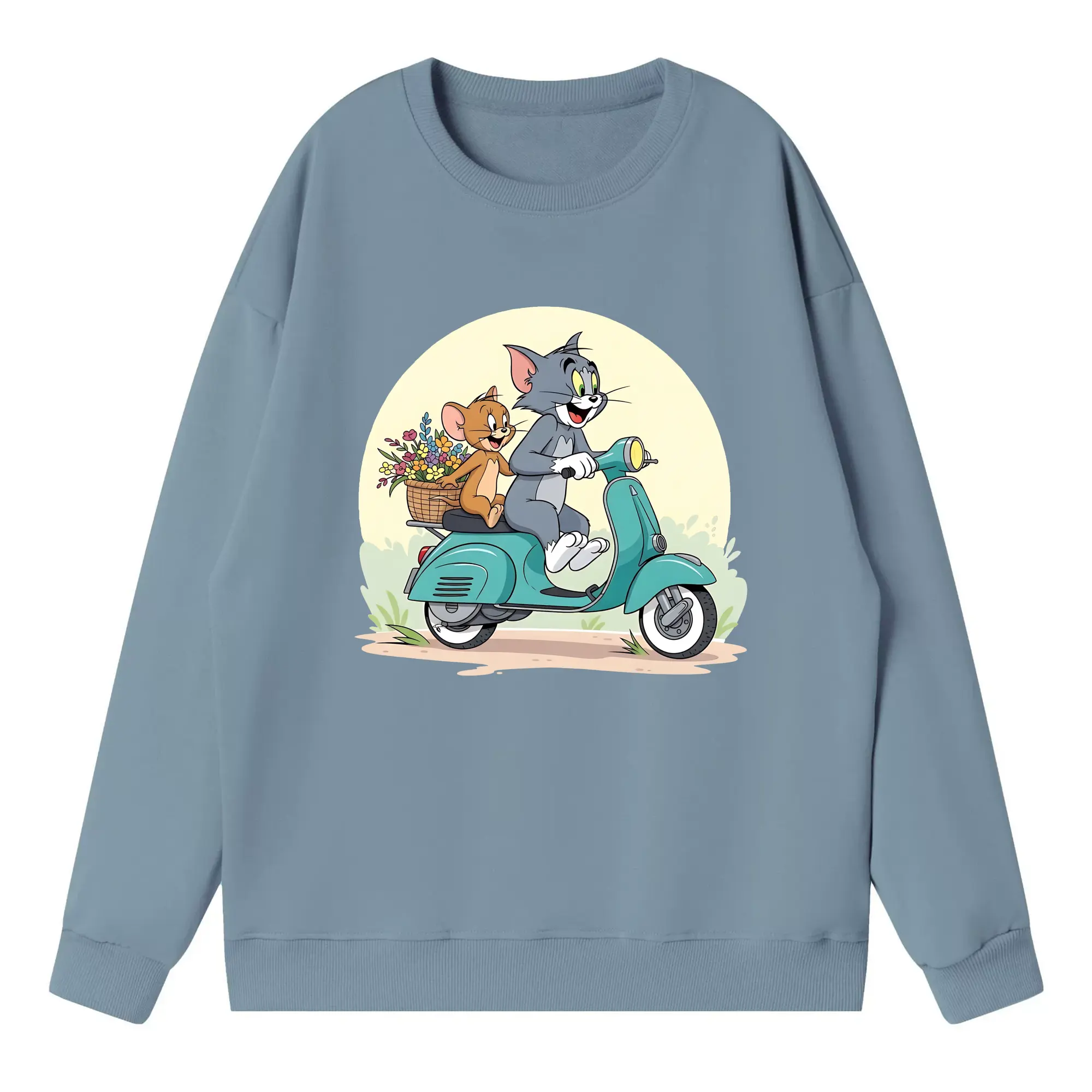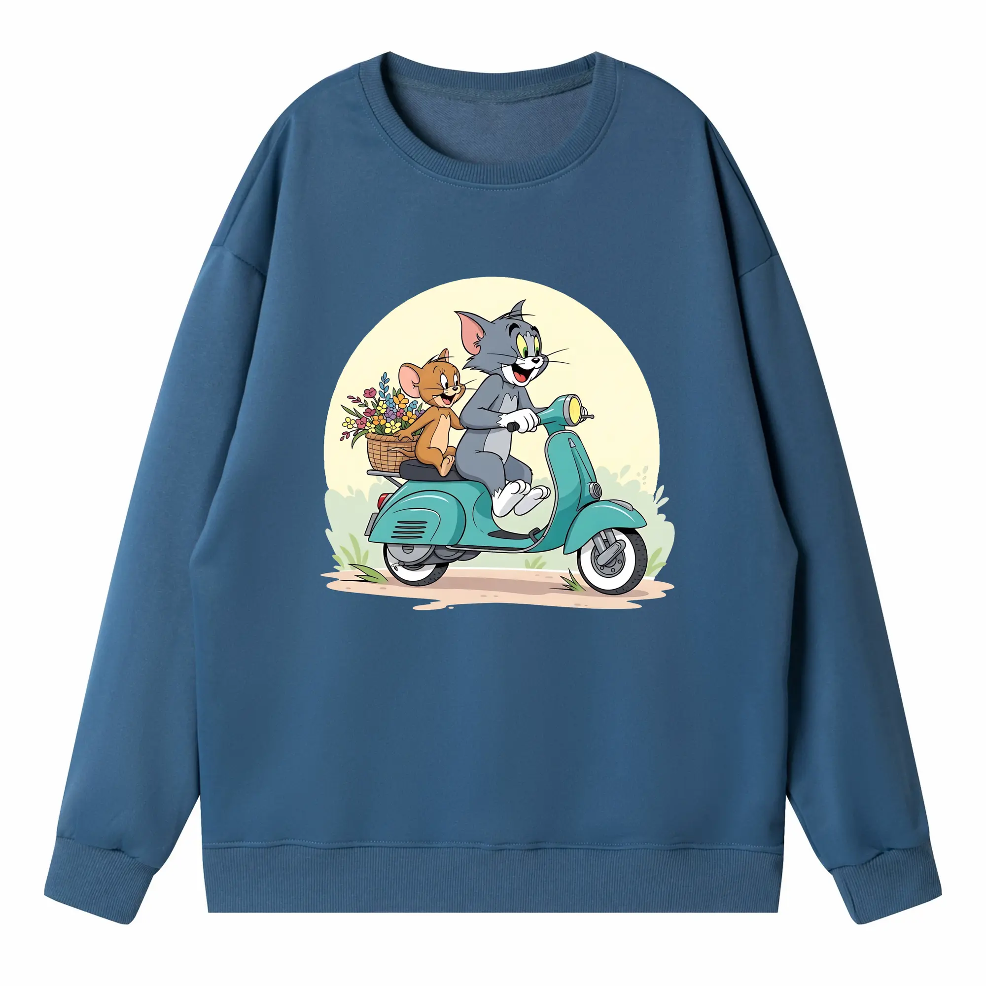 トムとジェリー グッズ トム - 高品質 クルーネック スウェット ・ コットン59% ポリエステル41% ・ ユニセックス 長袖 トレーナー ・ カジュアル デイリー スポーツ 散歩用