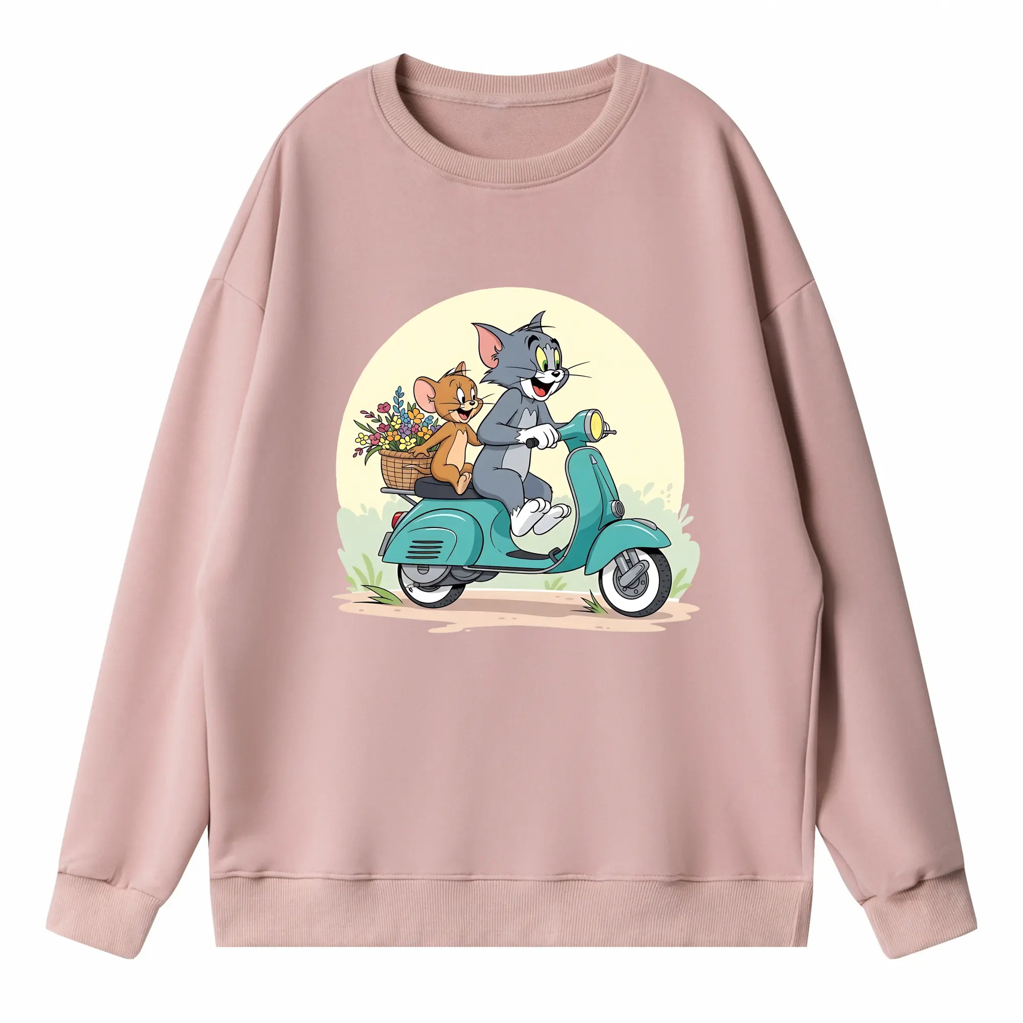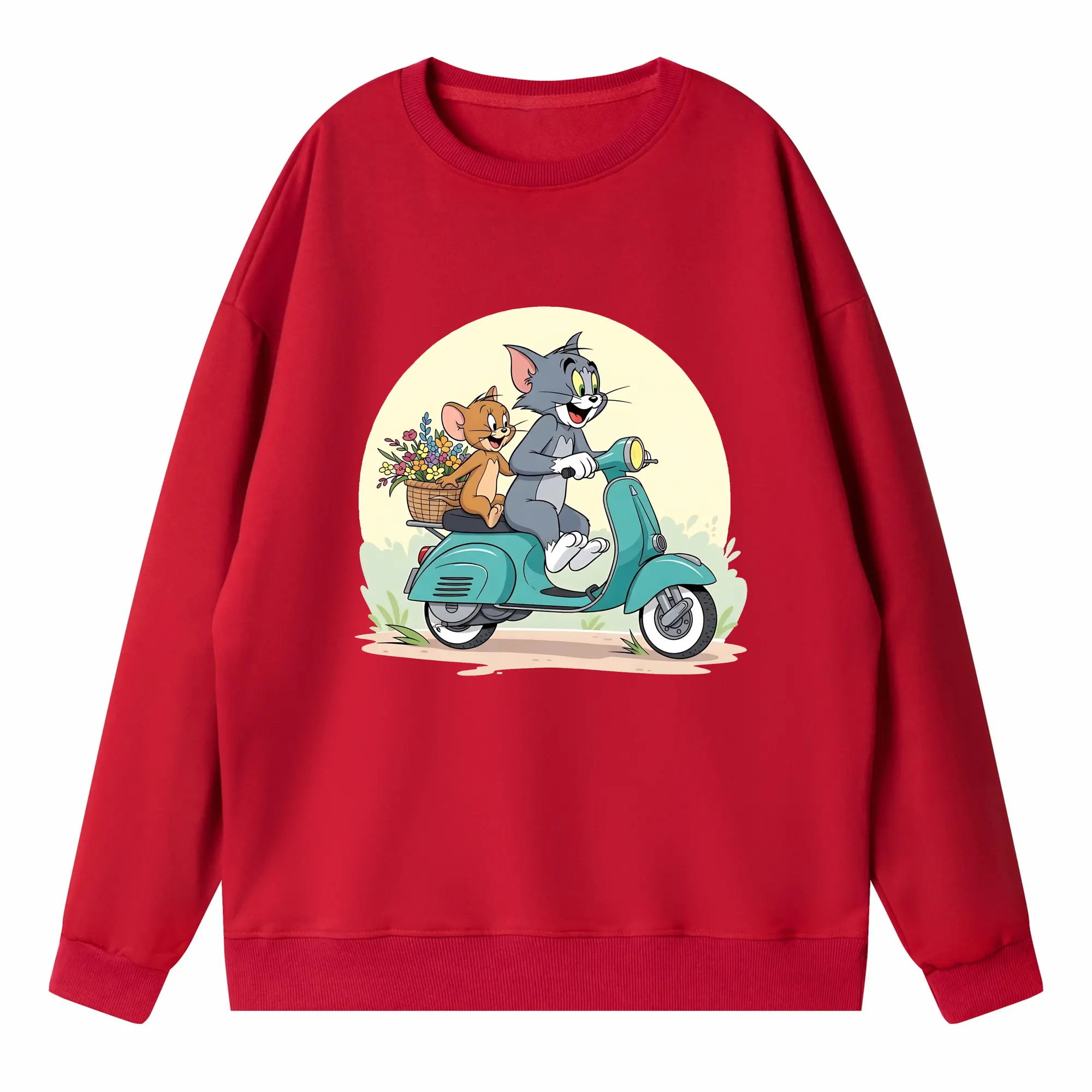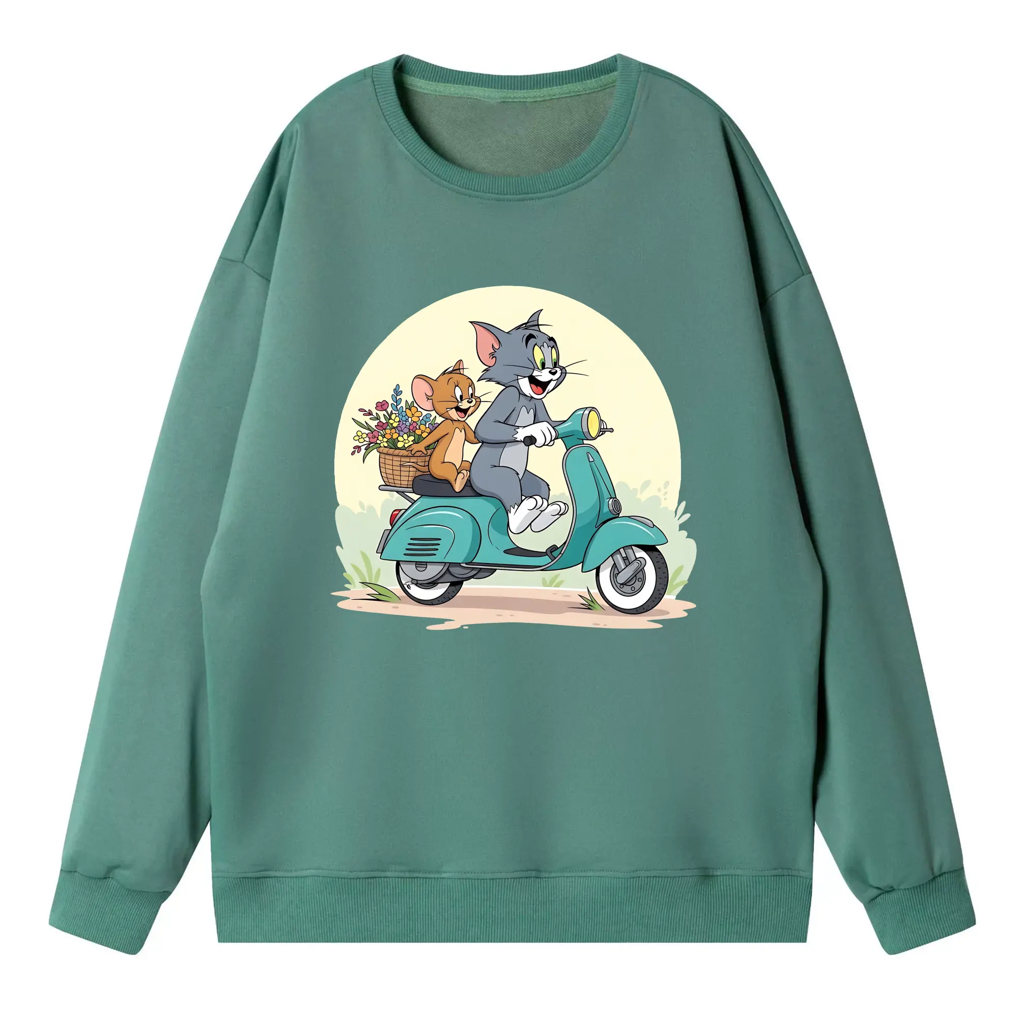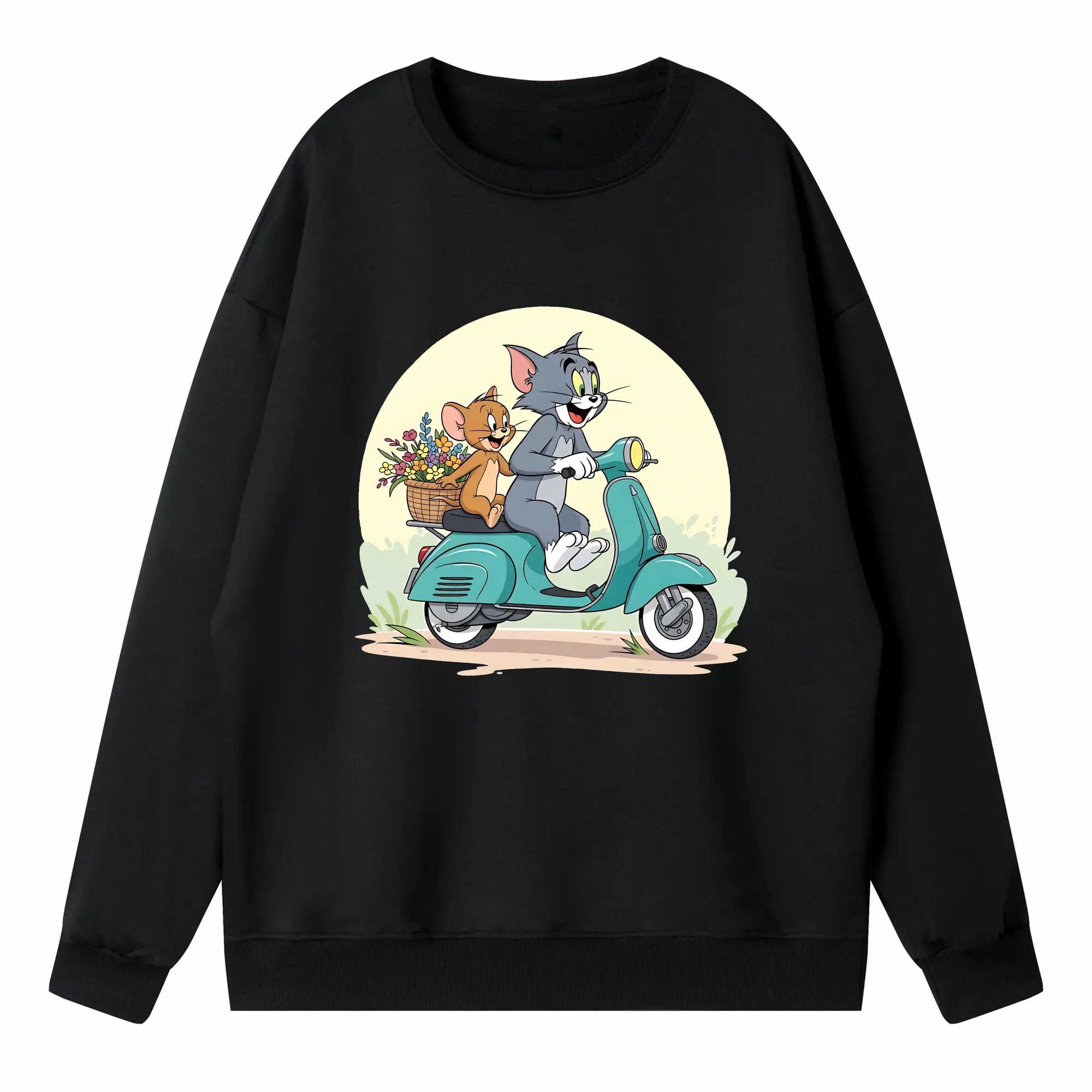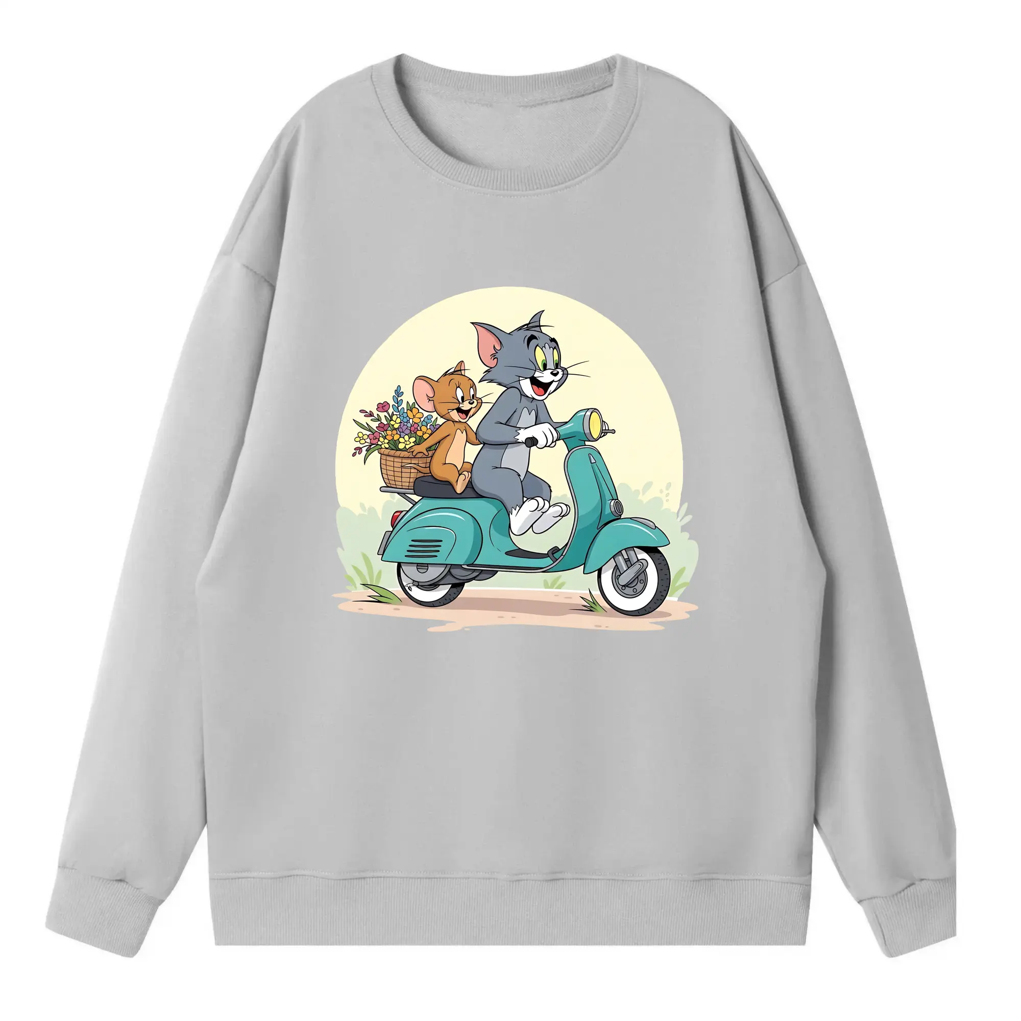 トムとジェリー グッズ トム - 高品質 クルーネック スウェット ・ コットン59% ポリエステル41% ・ ユニセックス 長袖 トレーナー ・ カジュアル デイリー スポーツ 散歩用