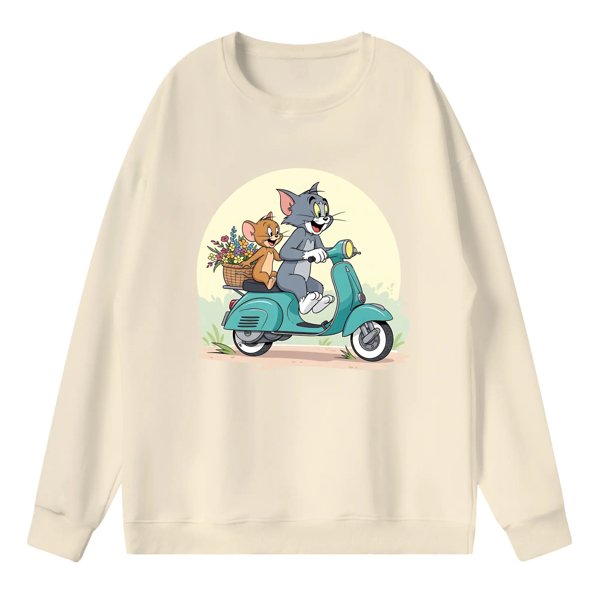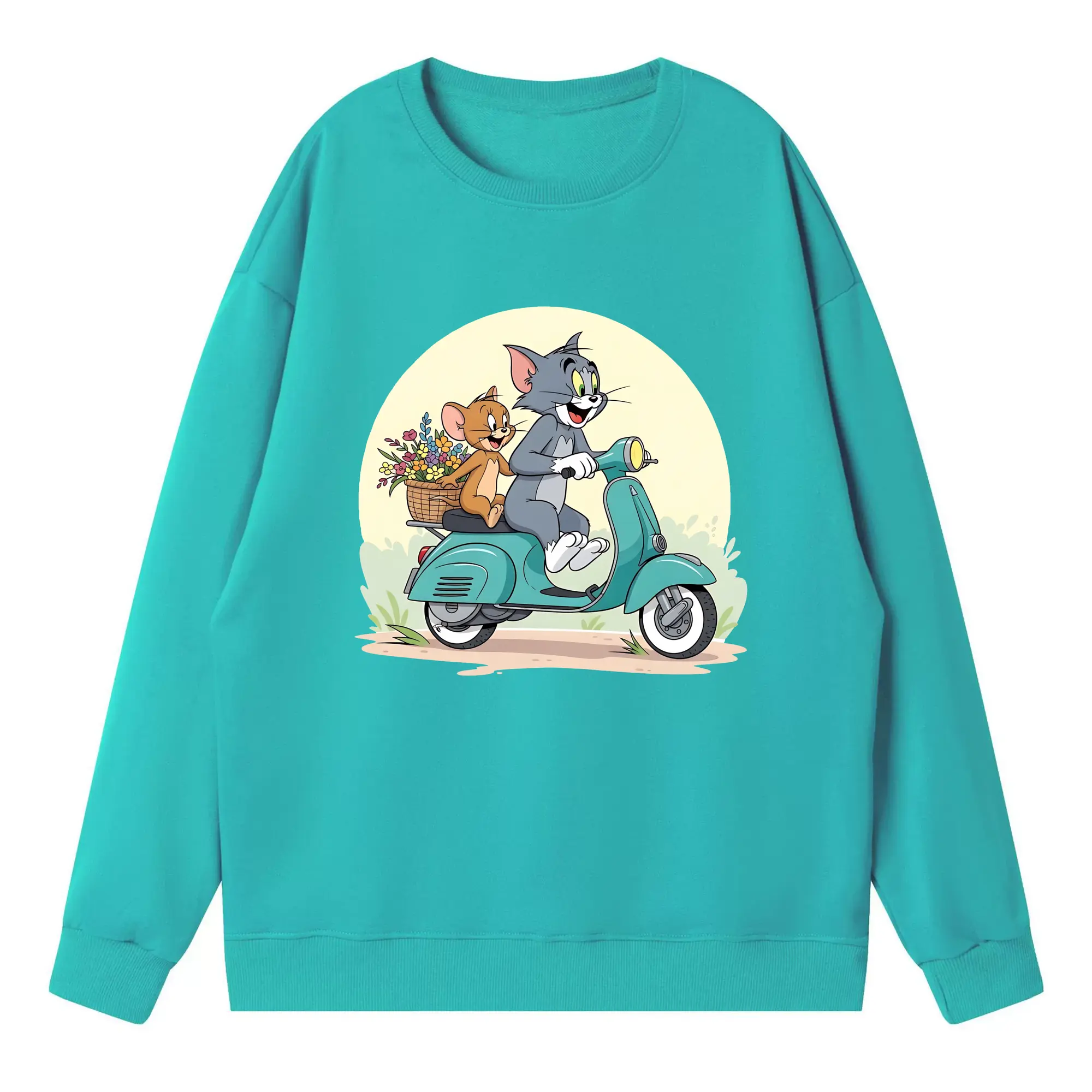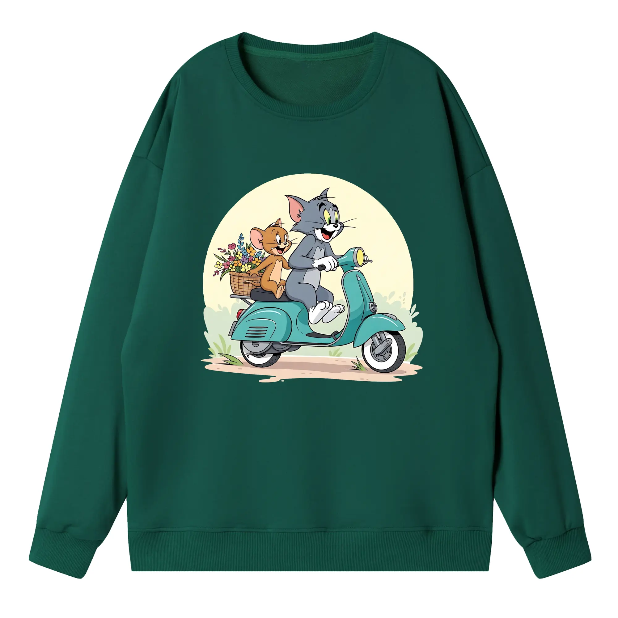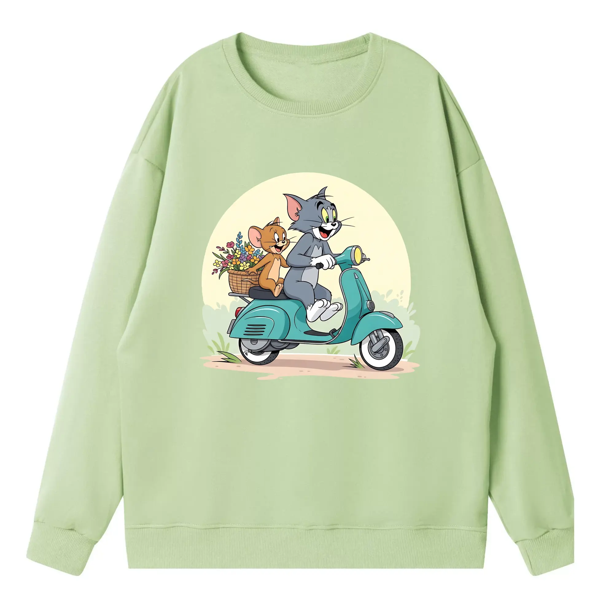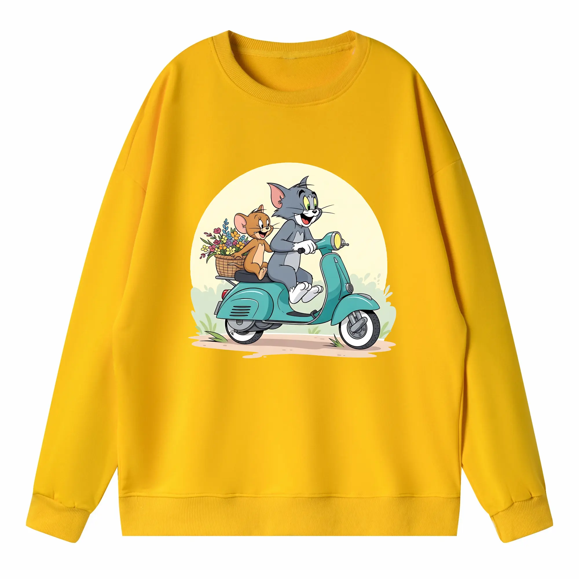 トムとジェリー グッズ トム - 高品質 クルーネック スウェット ・ コットン59% ポリエステル41% ・ ユニセックス 長袖 トレーナー ・ カジュアル デイリー スポーツ 散歩用
