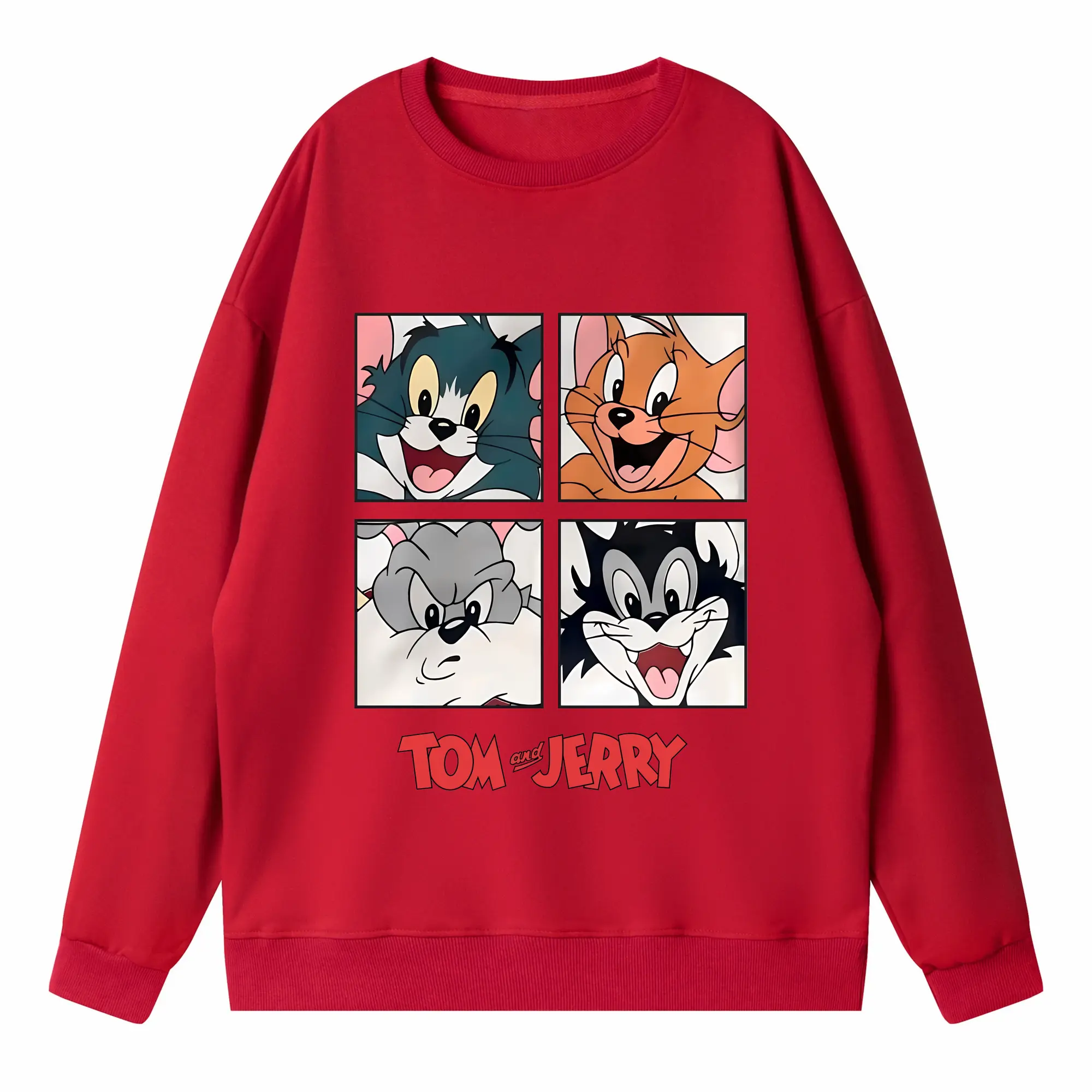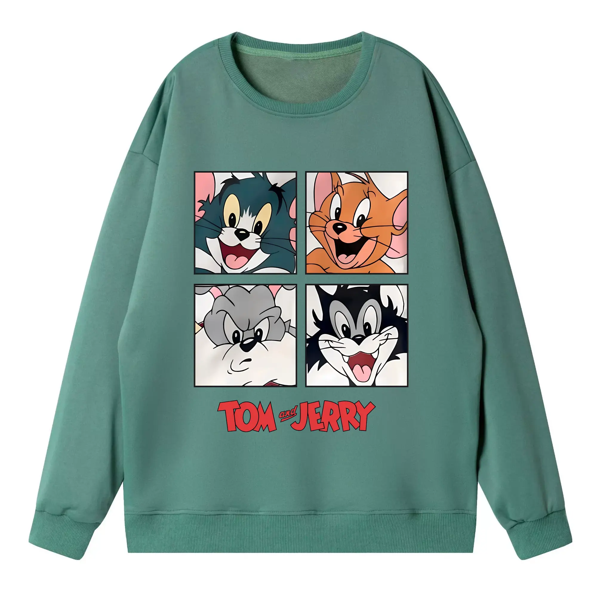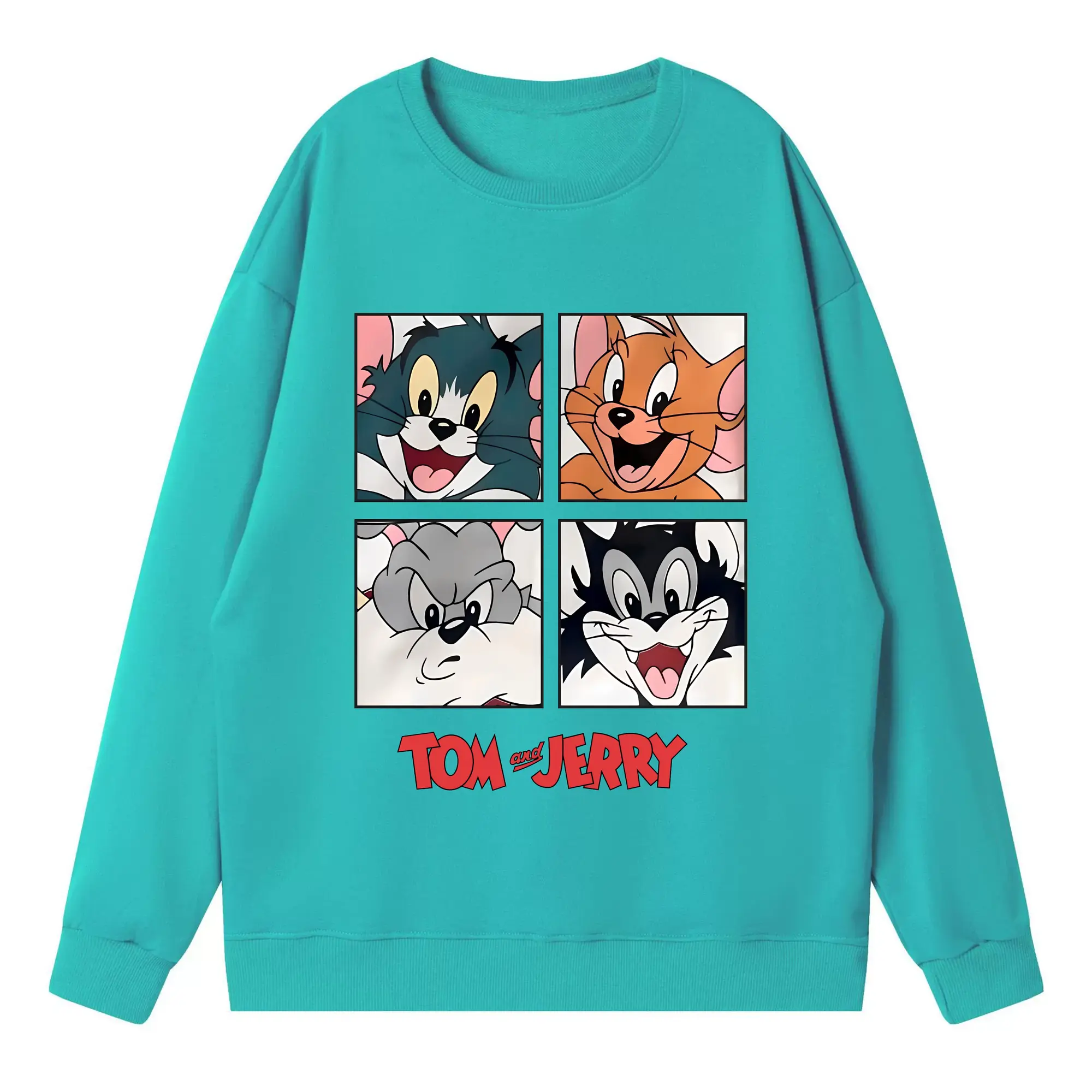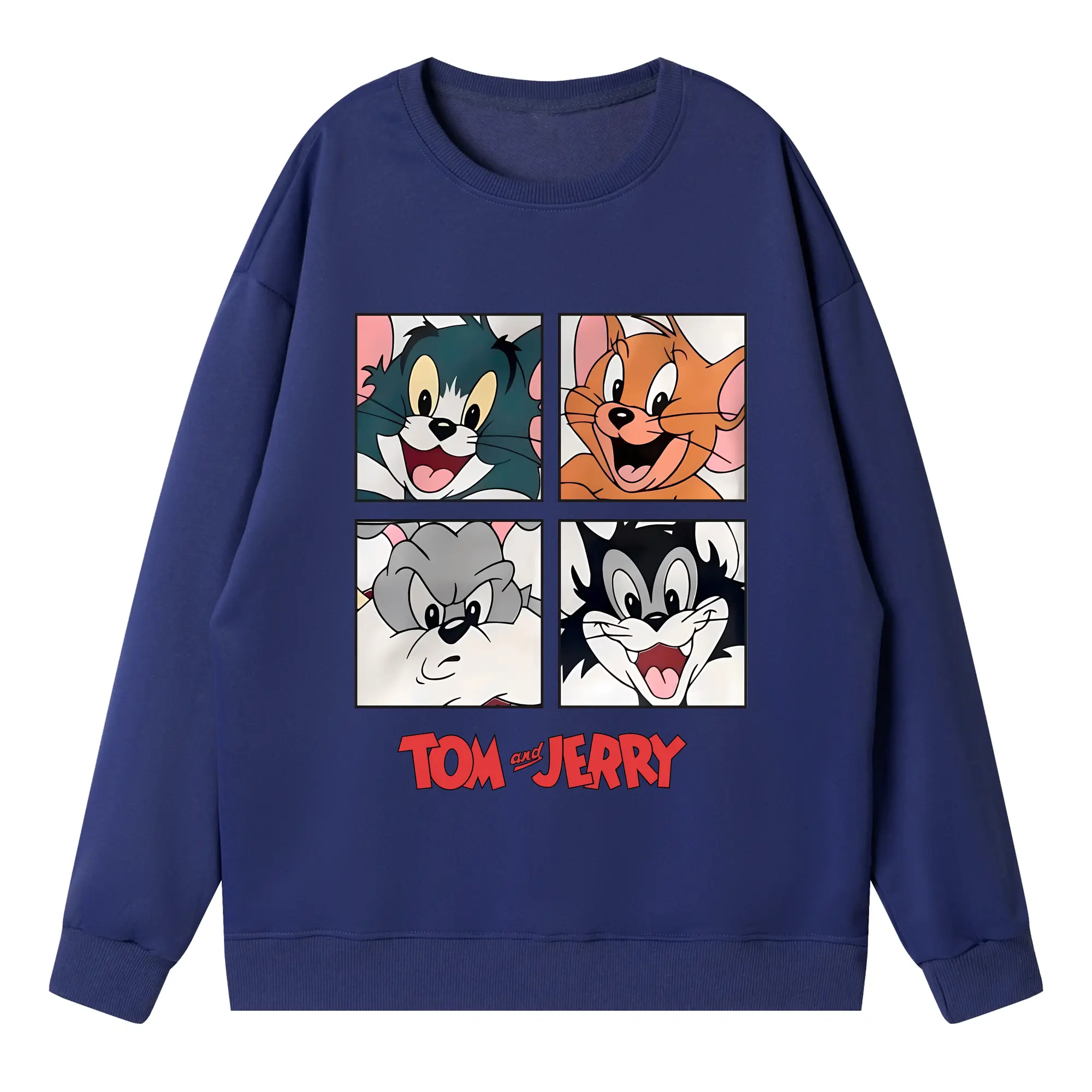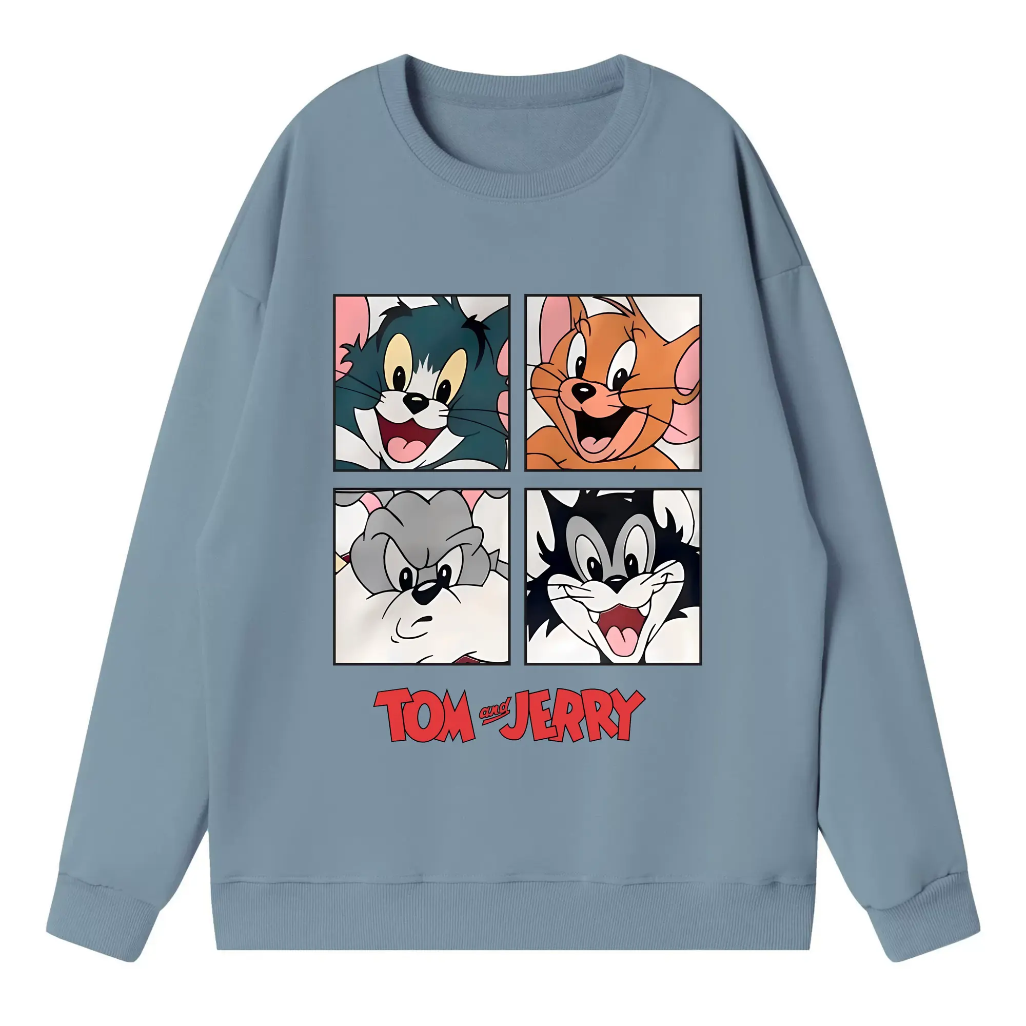 トムとジェリー グッズ トム - 高品質 クルーネック スウェット ・ コットン59% ポリエステル41% ・ ユニセックス 長袖 トレーナー ・ カジュアル デイリー スポーツ 散歩用