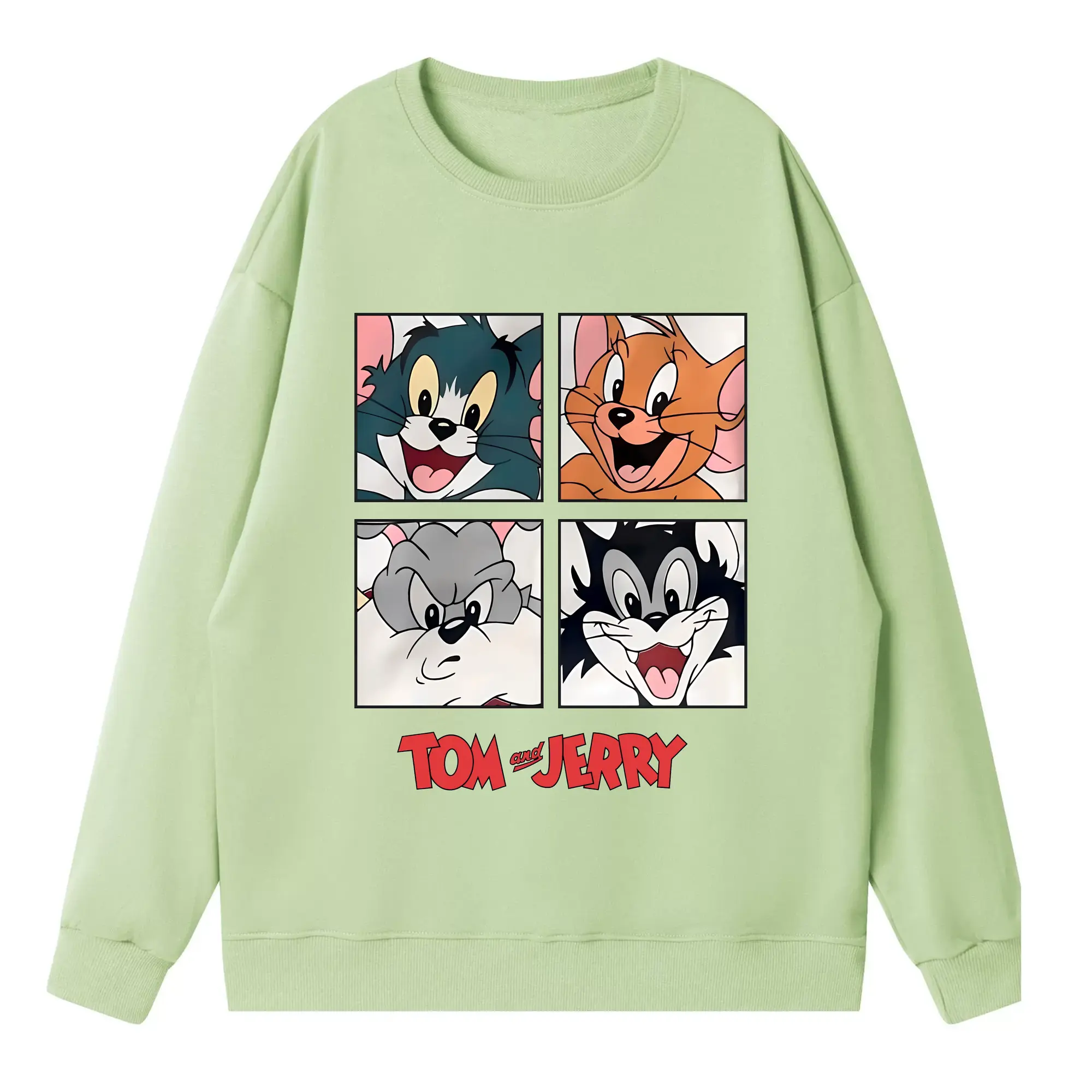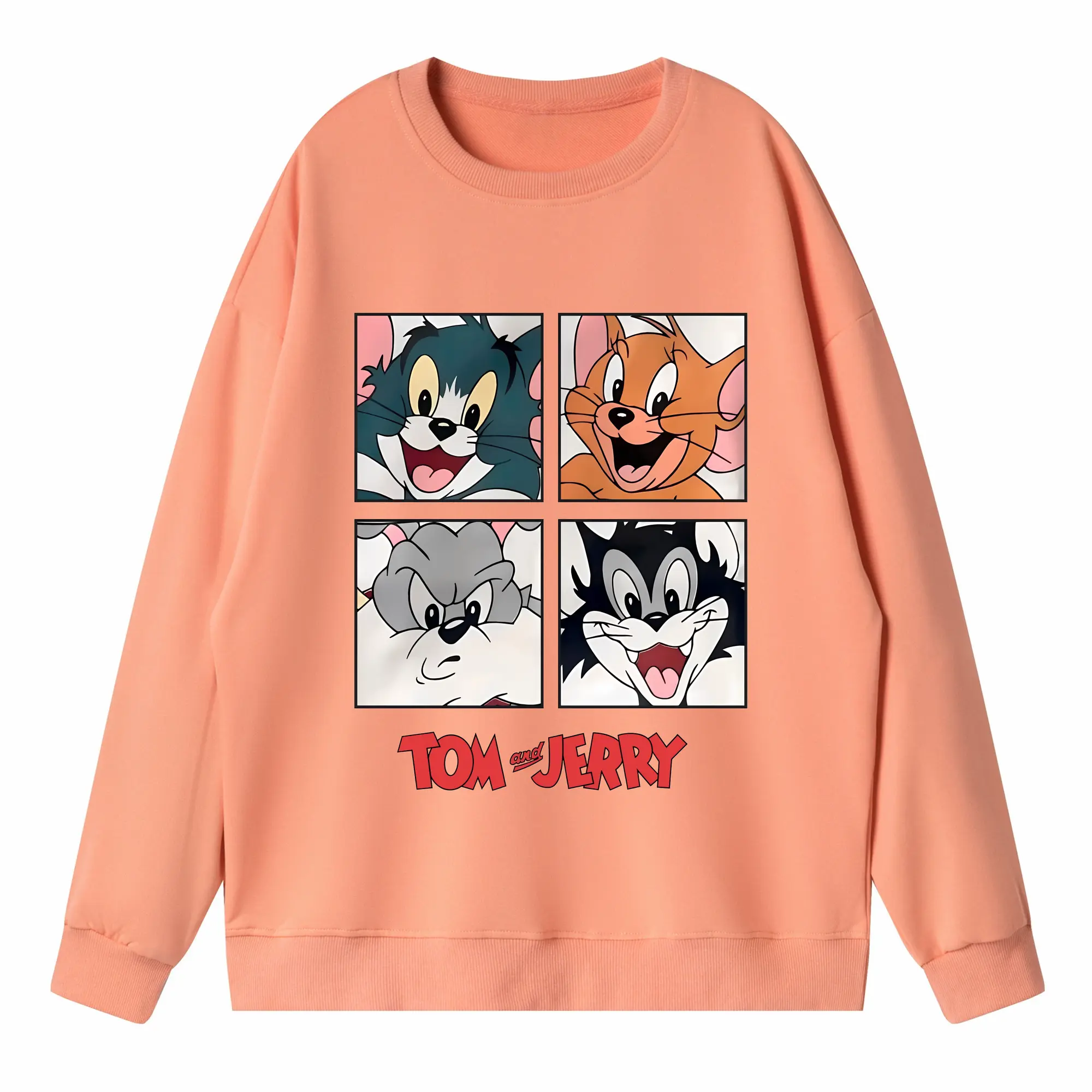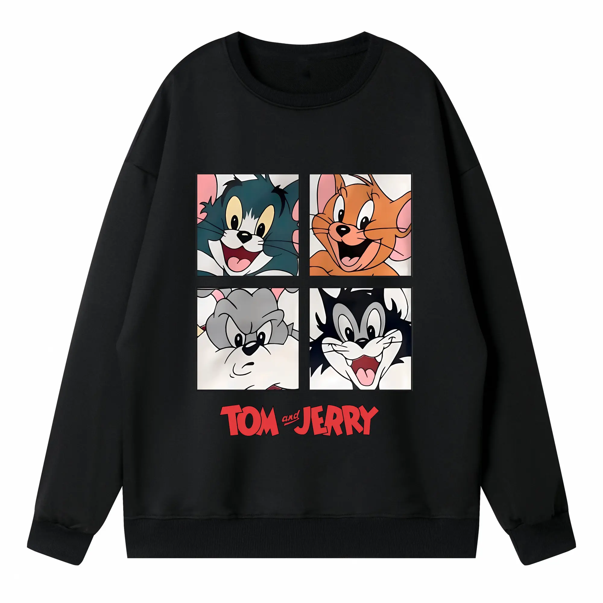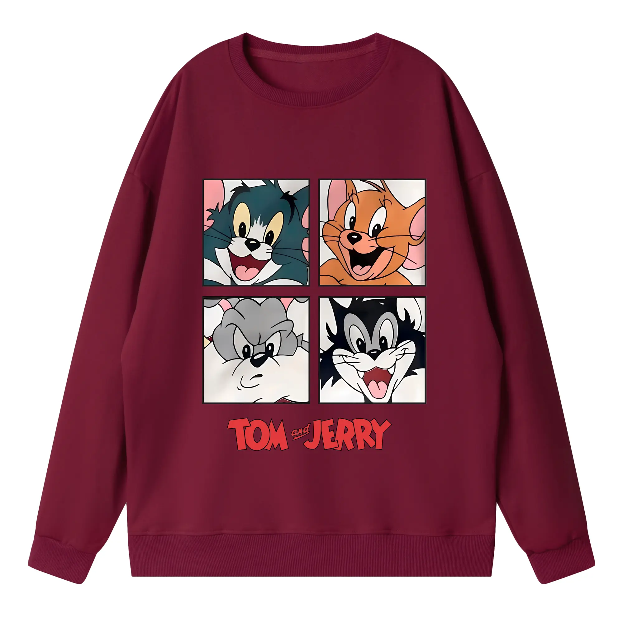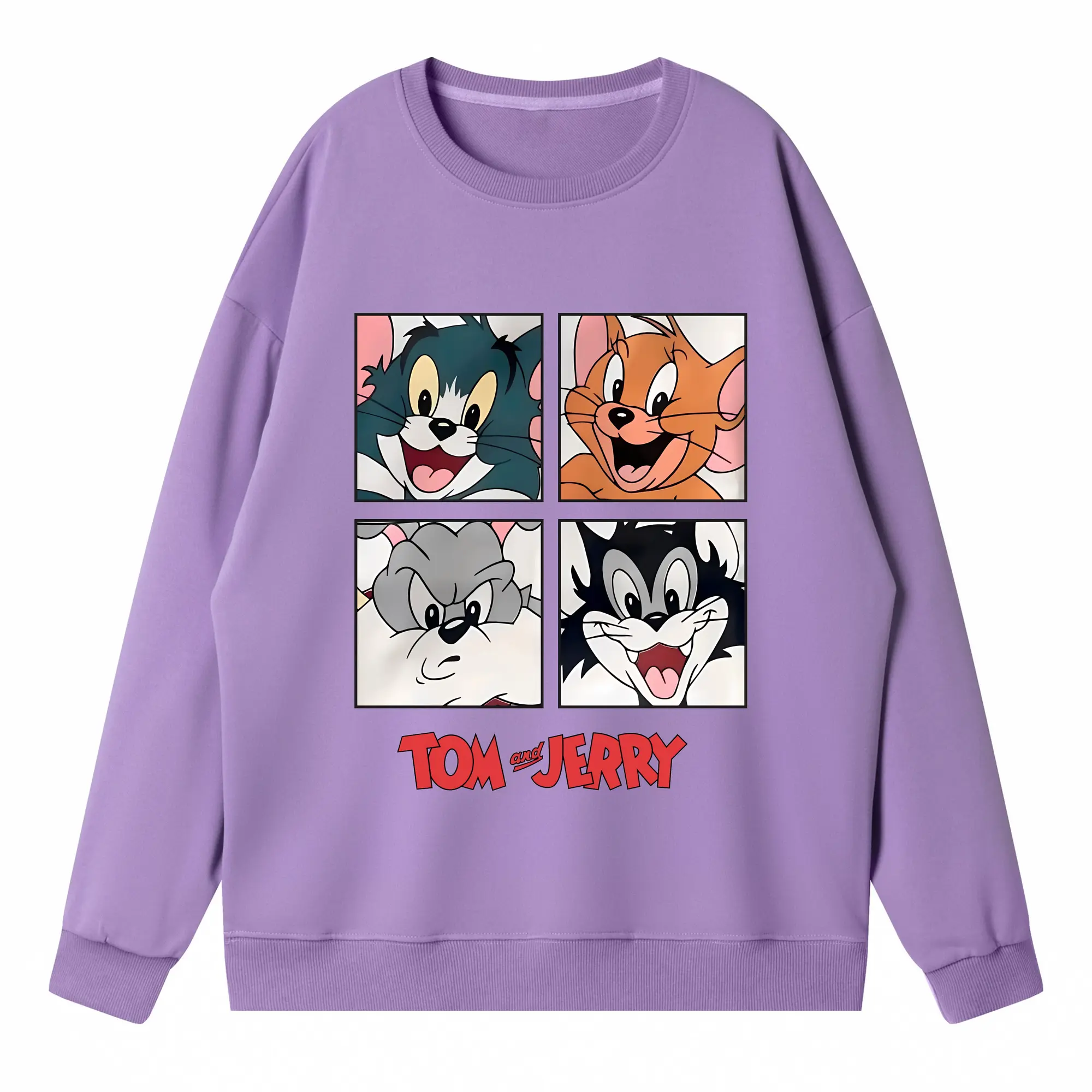 トムとジェリー グッズ トム - 高品質 クルーネック スウェット ・ コットン59% ポリエステル41% ・ ユニセックス 長袖 トレーナー ・ カジュアル デイリー スポーツ 散歩用