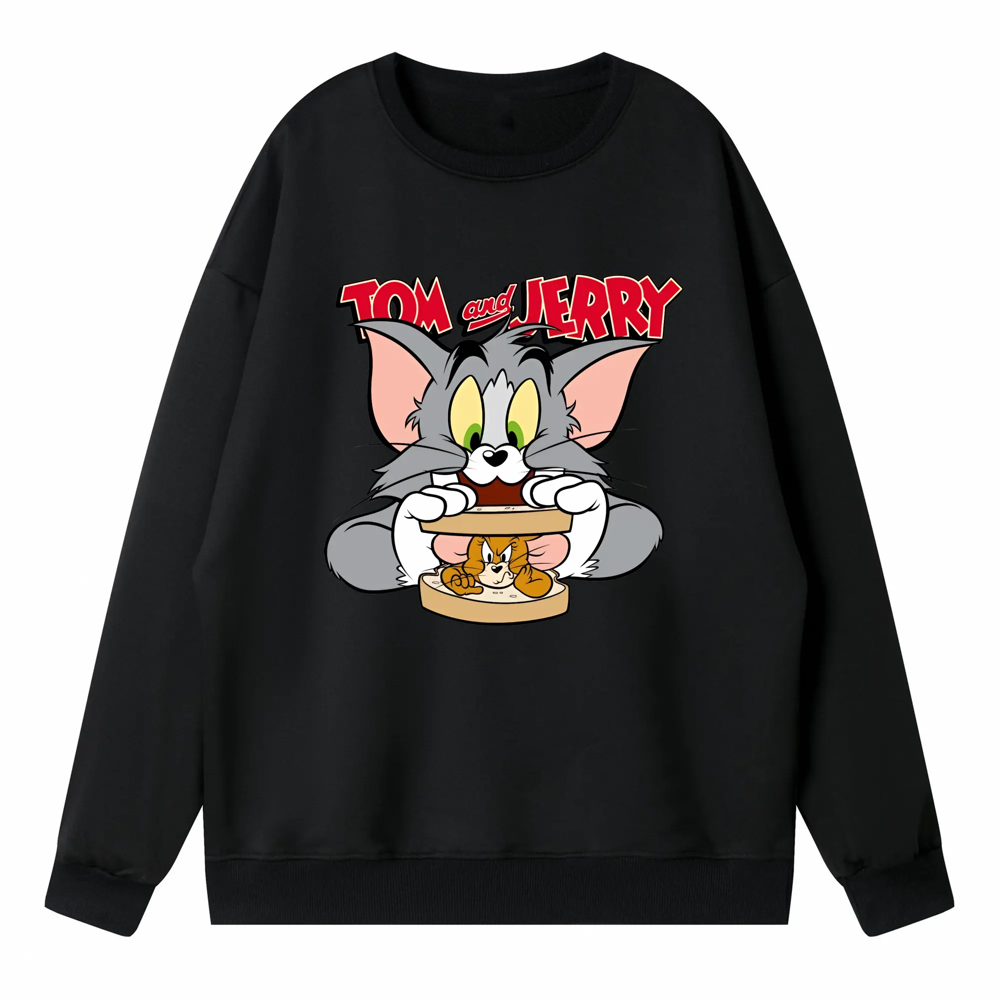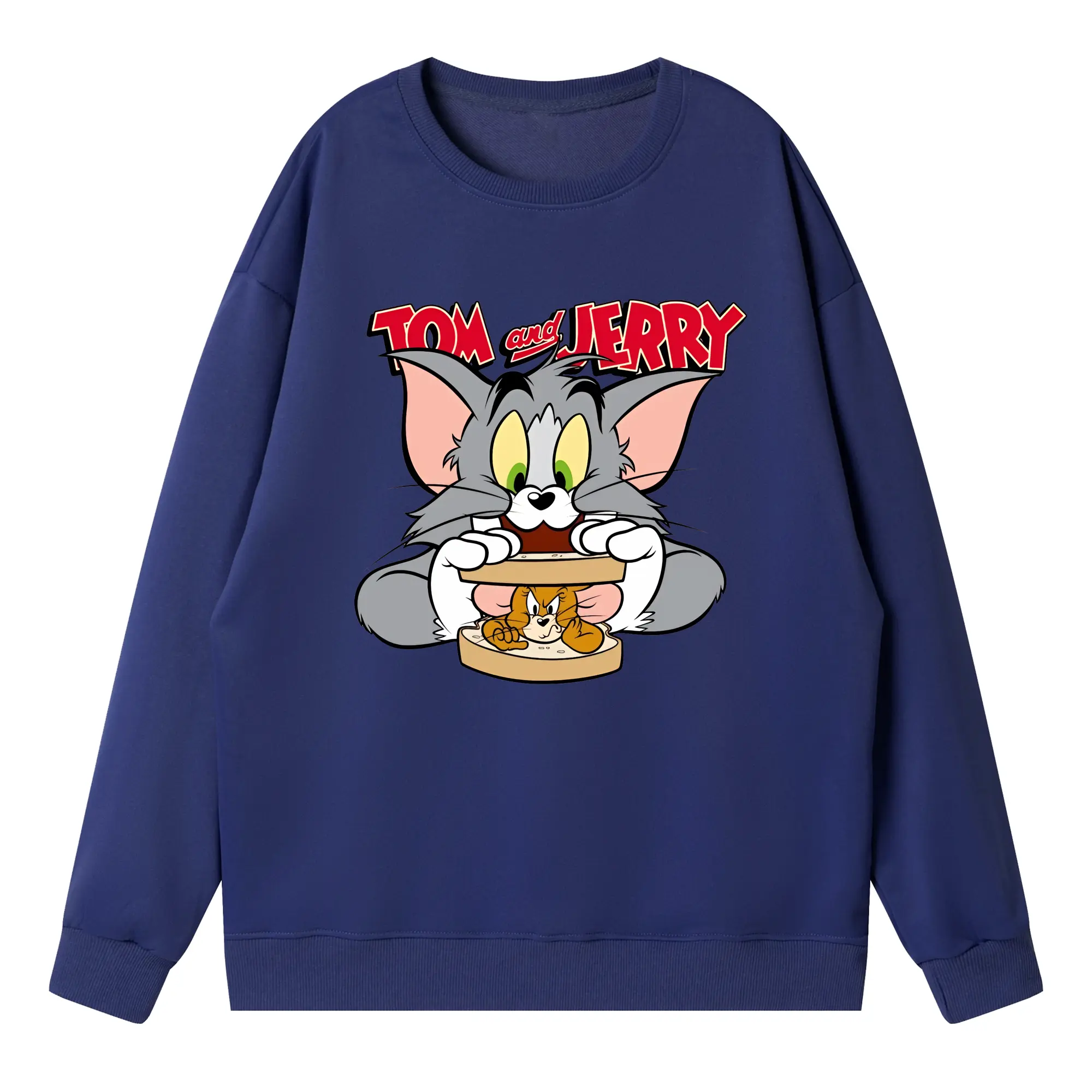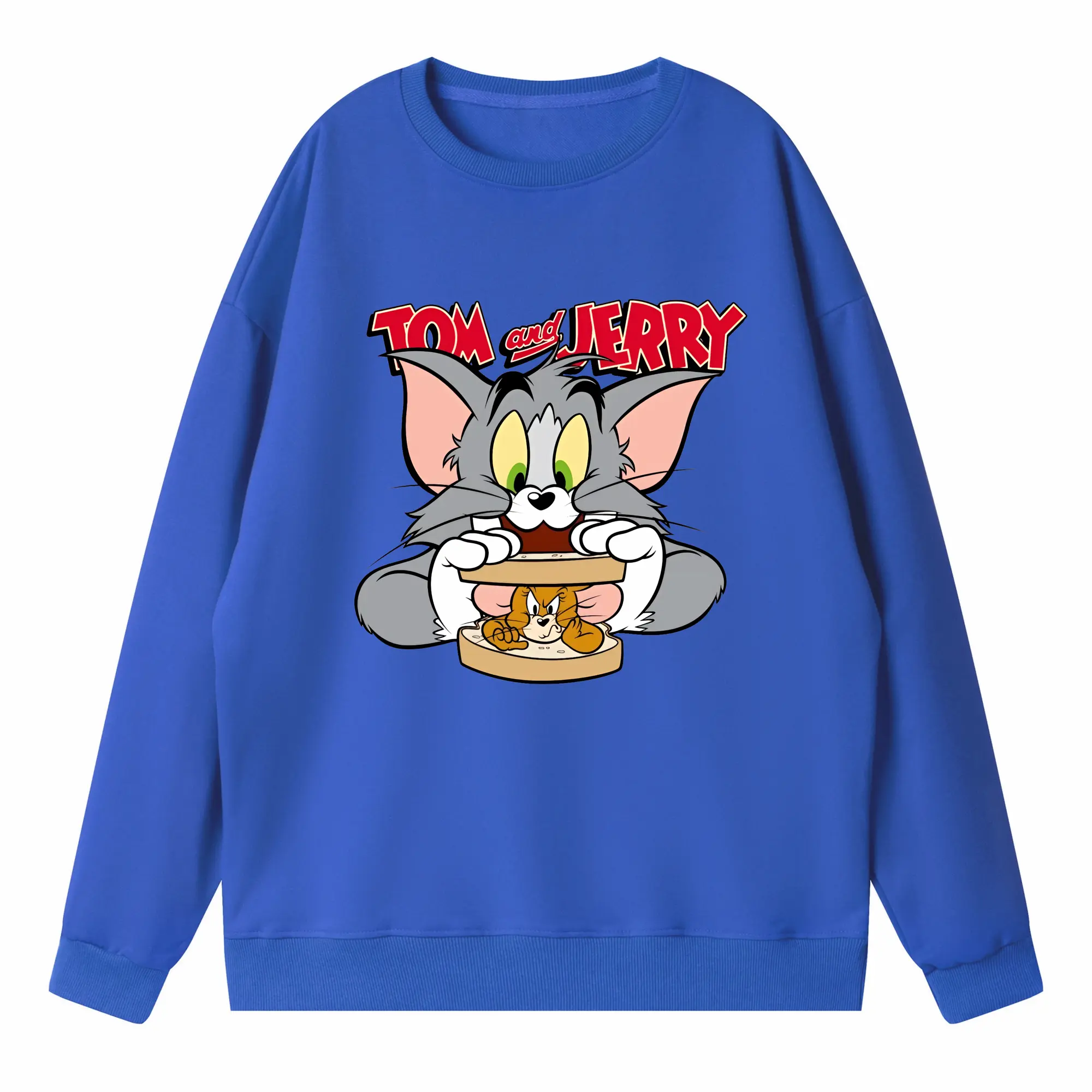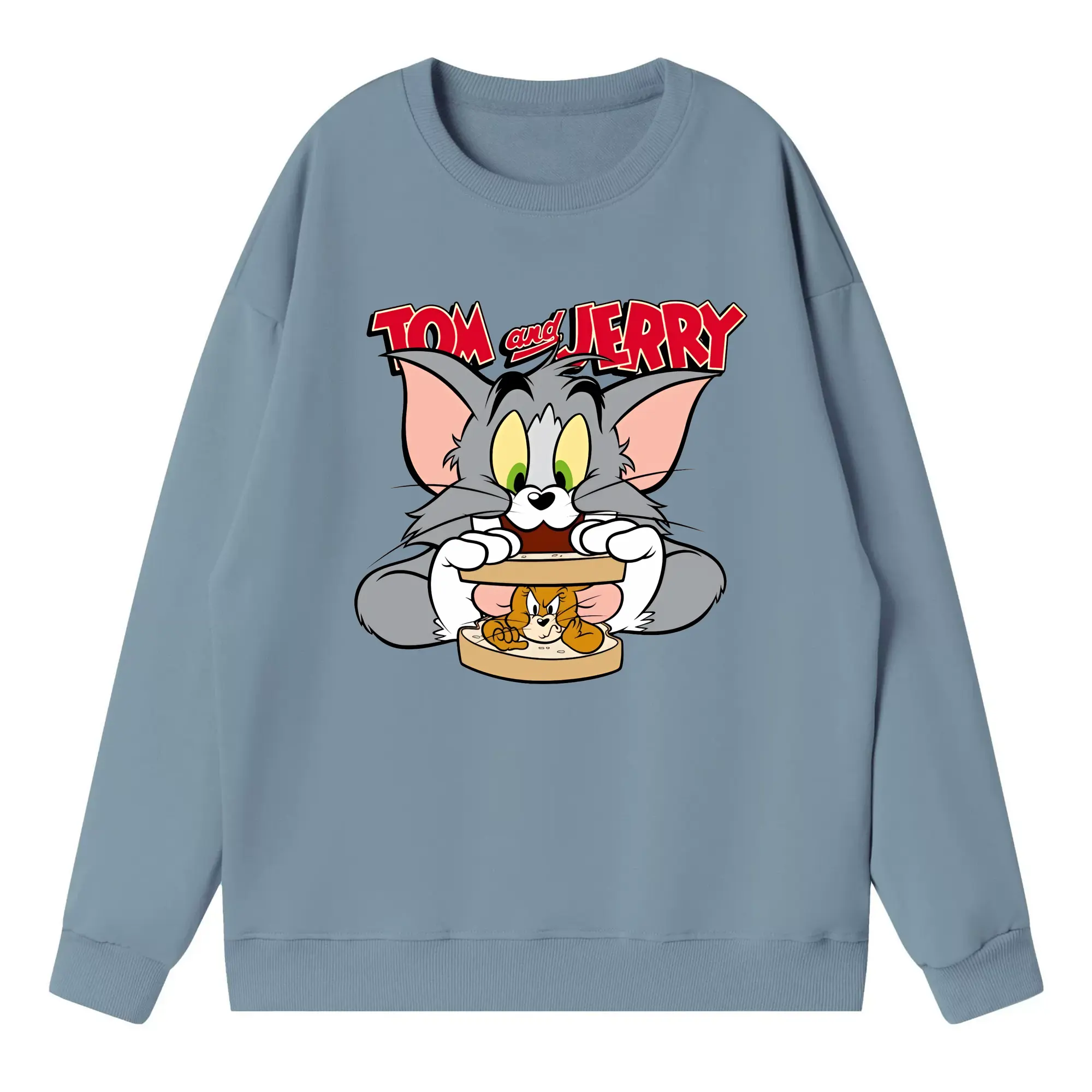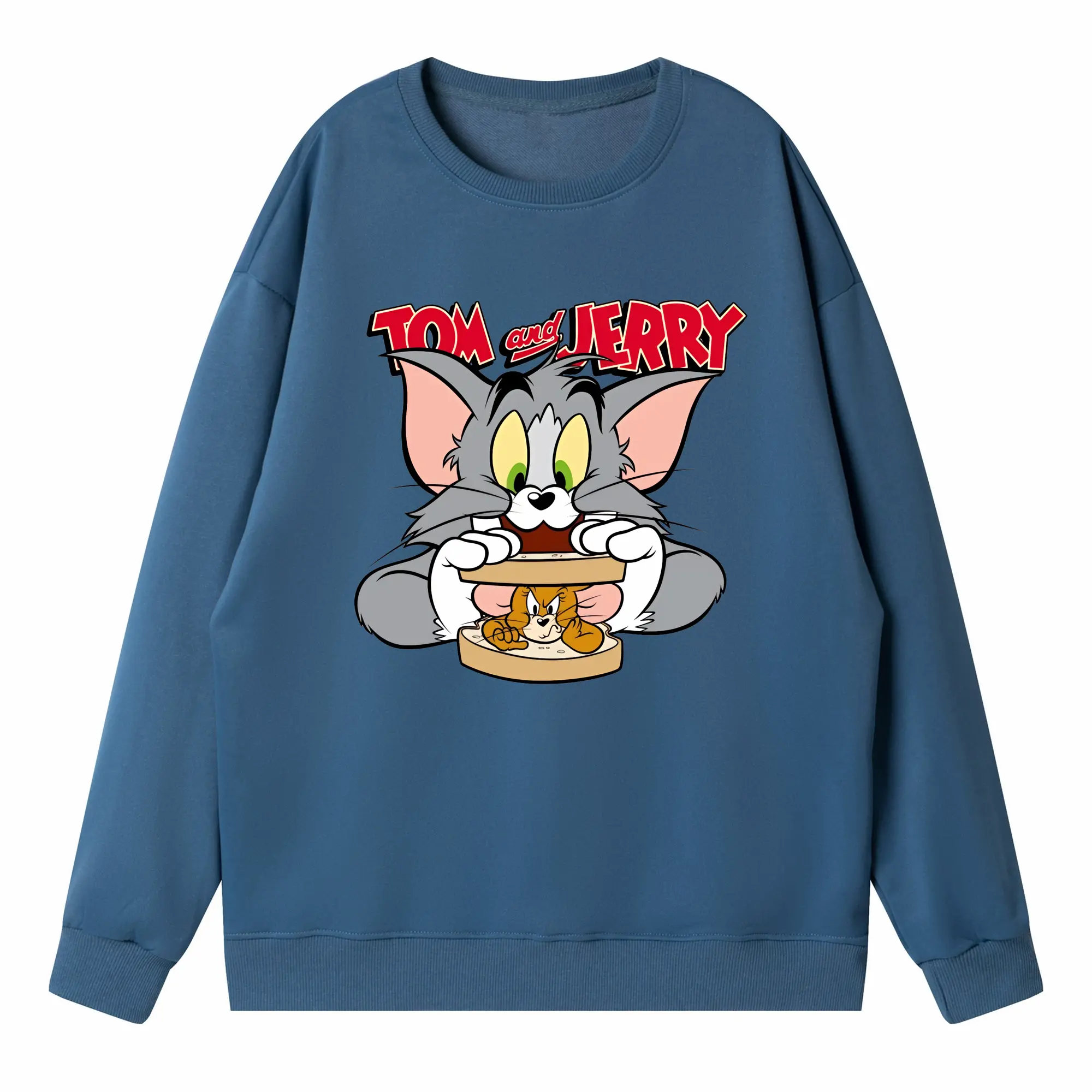 トムとジェリー グッズ トム - 高品質 クルーネック スウェット ・ コットン59% ポリエステル41% ・ ユニセックス 長袖 トレーナー ・ カジュアル デイリー スポーツ 散歩用