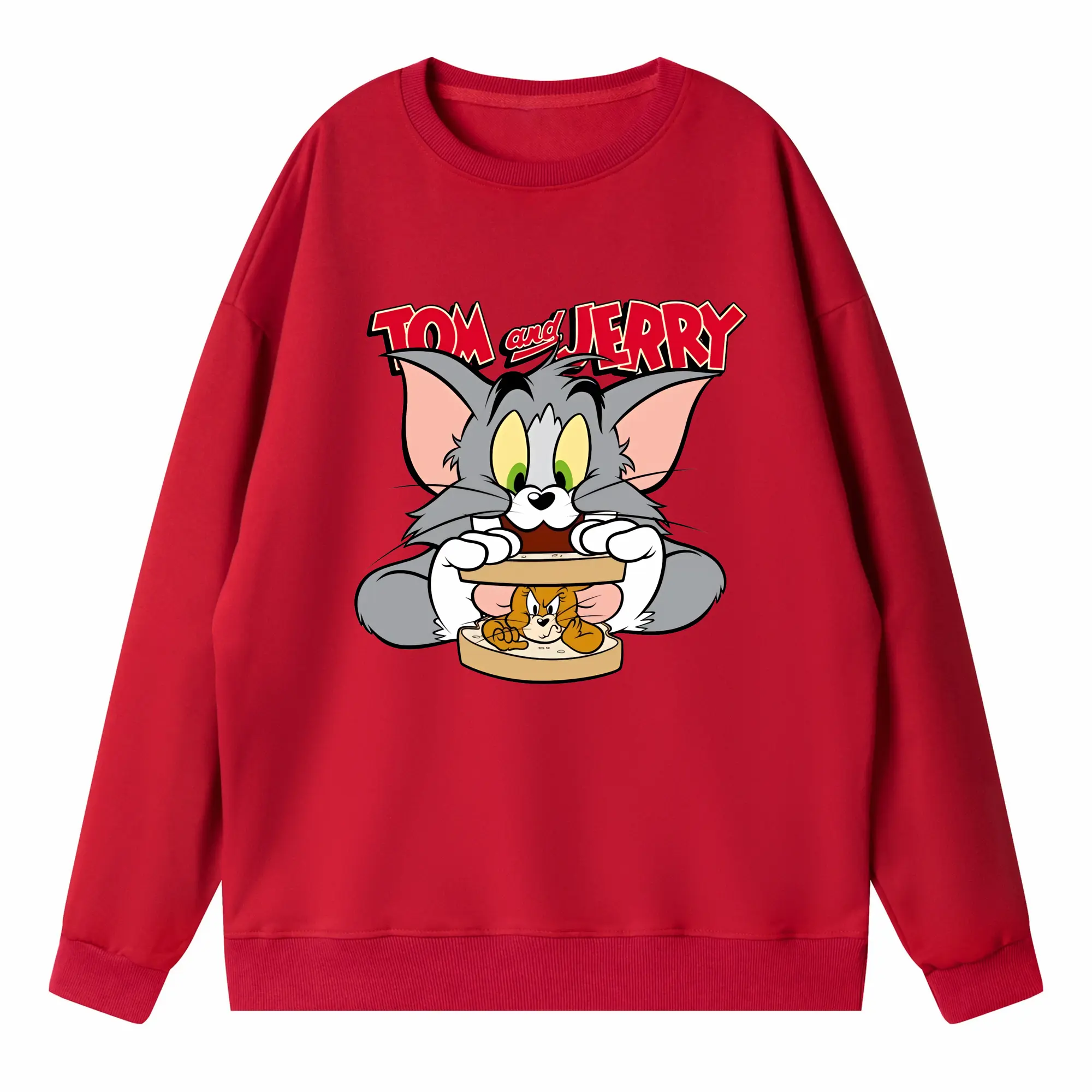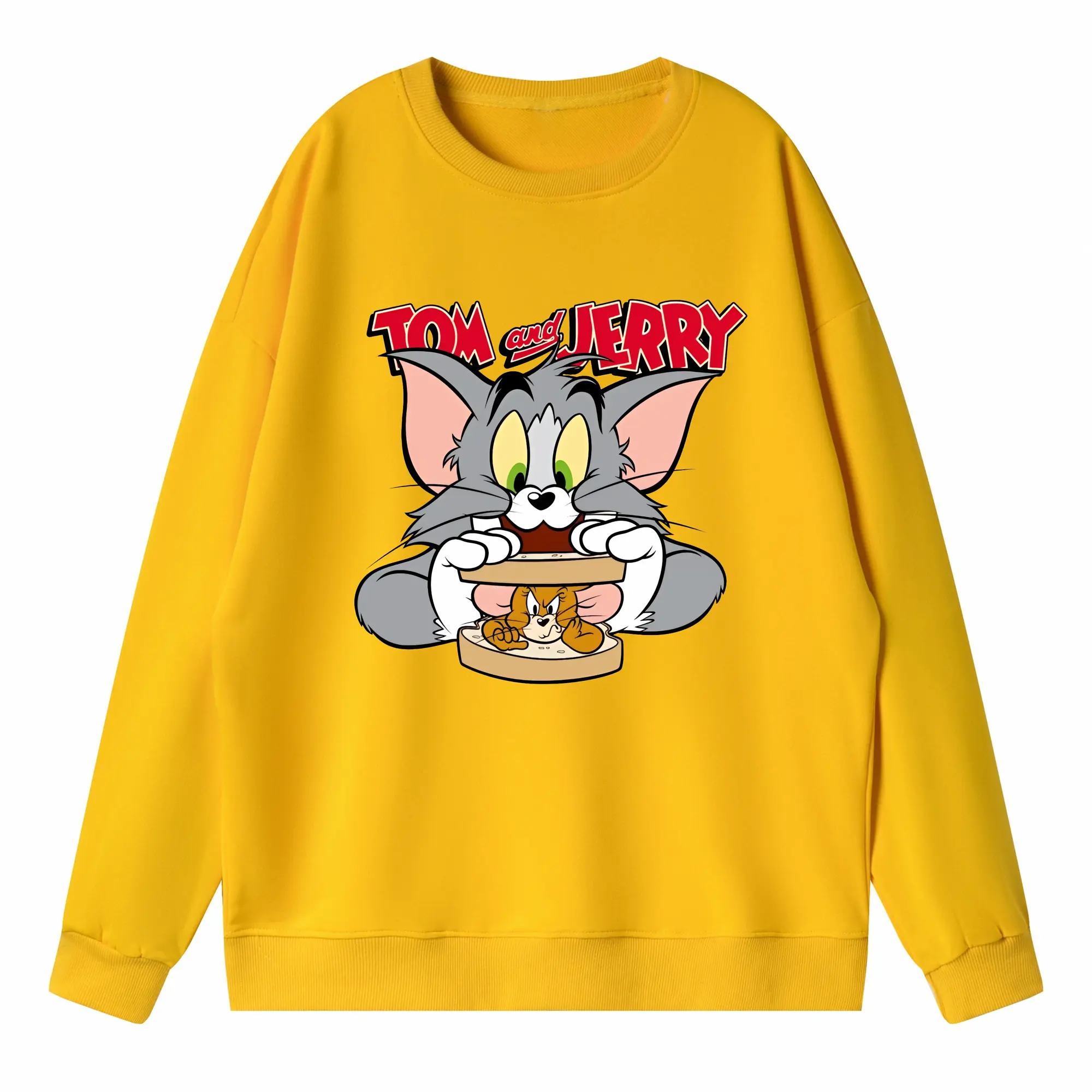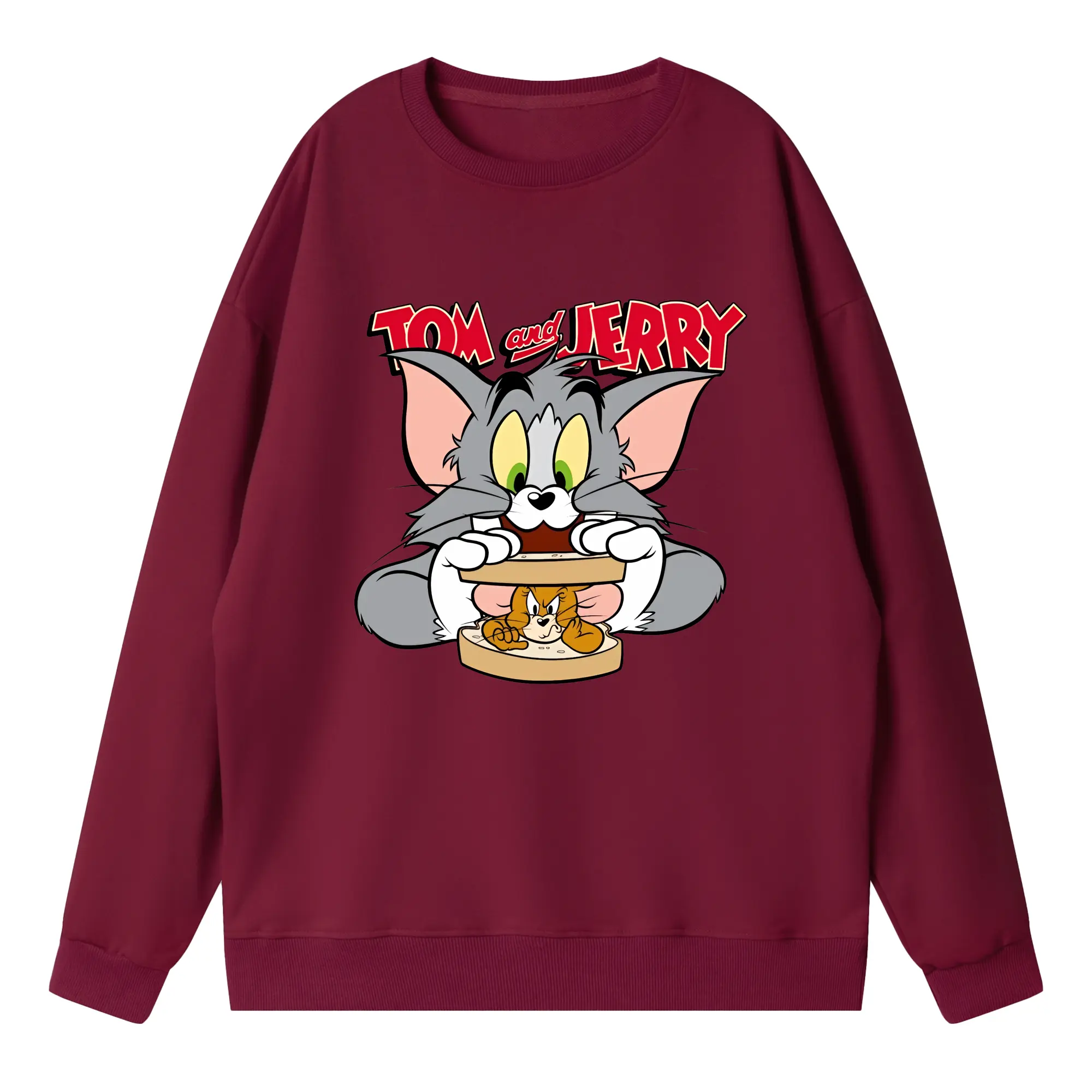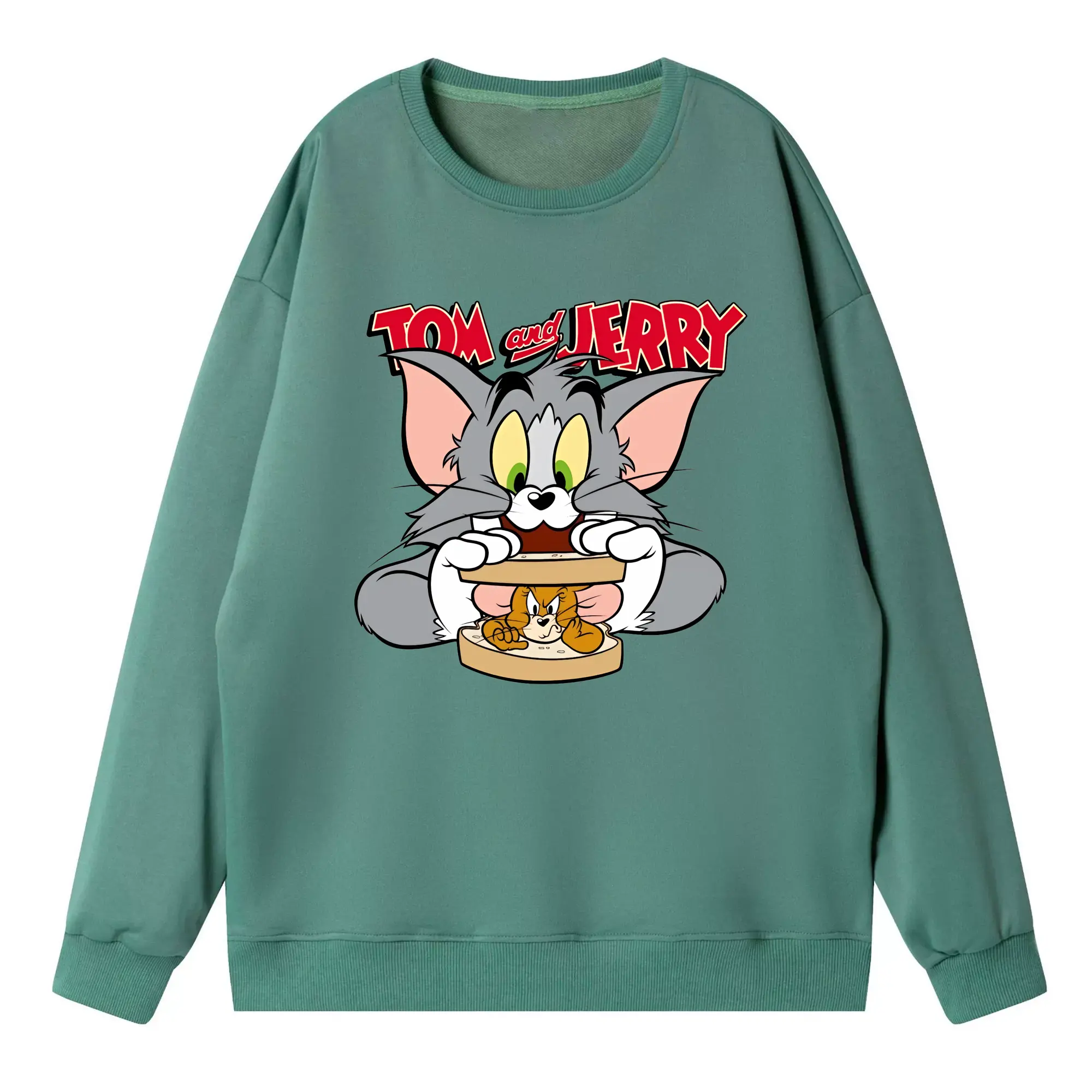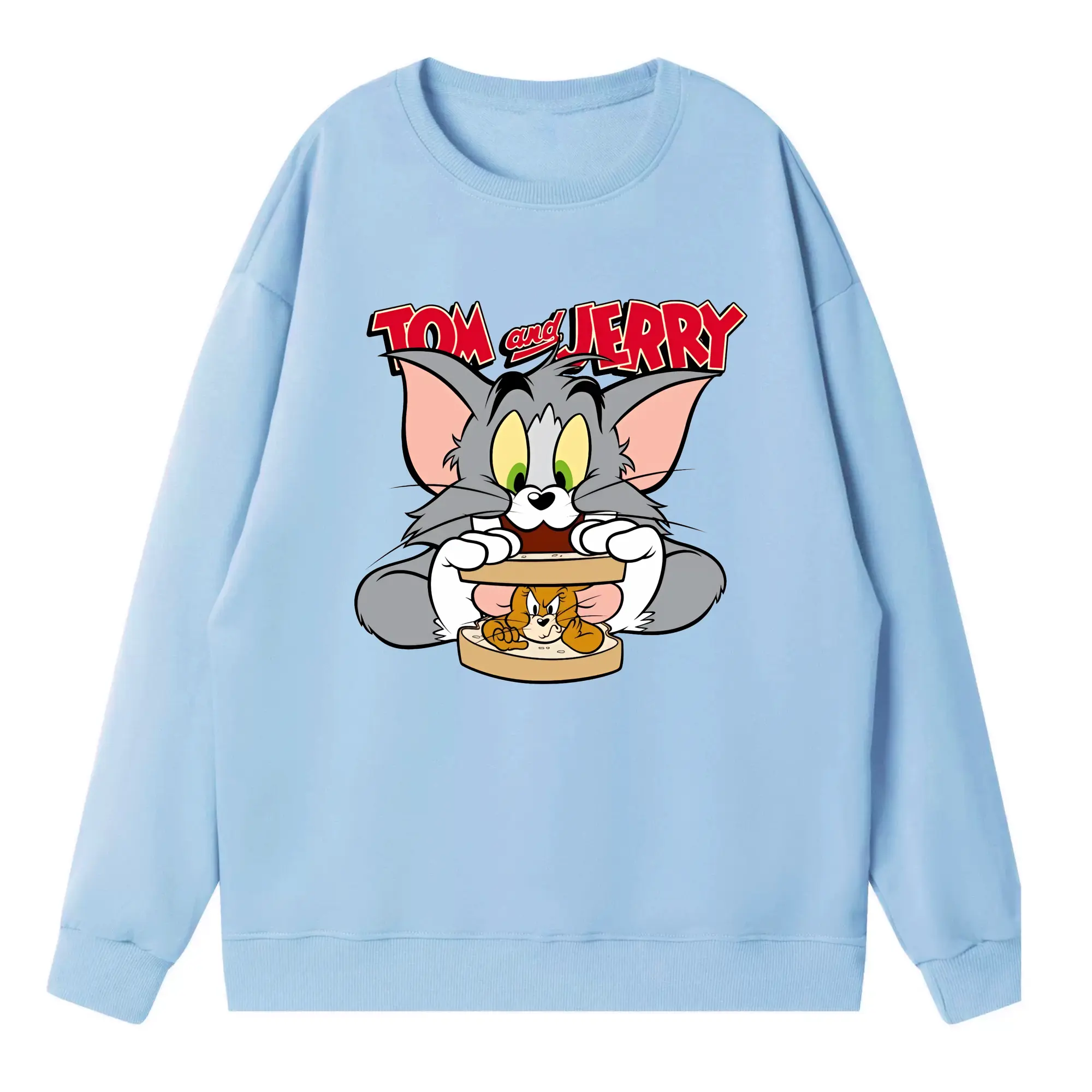 トムとジェリー グッズ トム - 高品質 クルーネック スウェット ・ コットン59% ポリエステル41% ・ ユニセックス 長袖 トレーナー ・ カジュアル デイリー スポーツ 散歩用