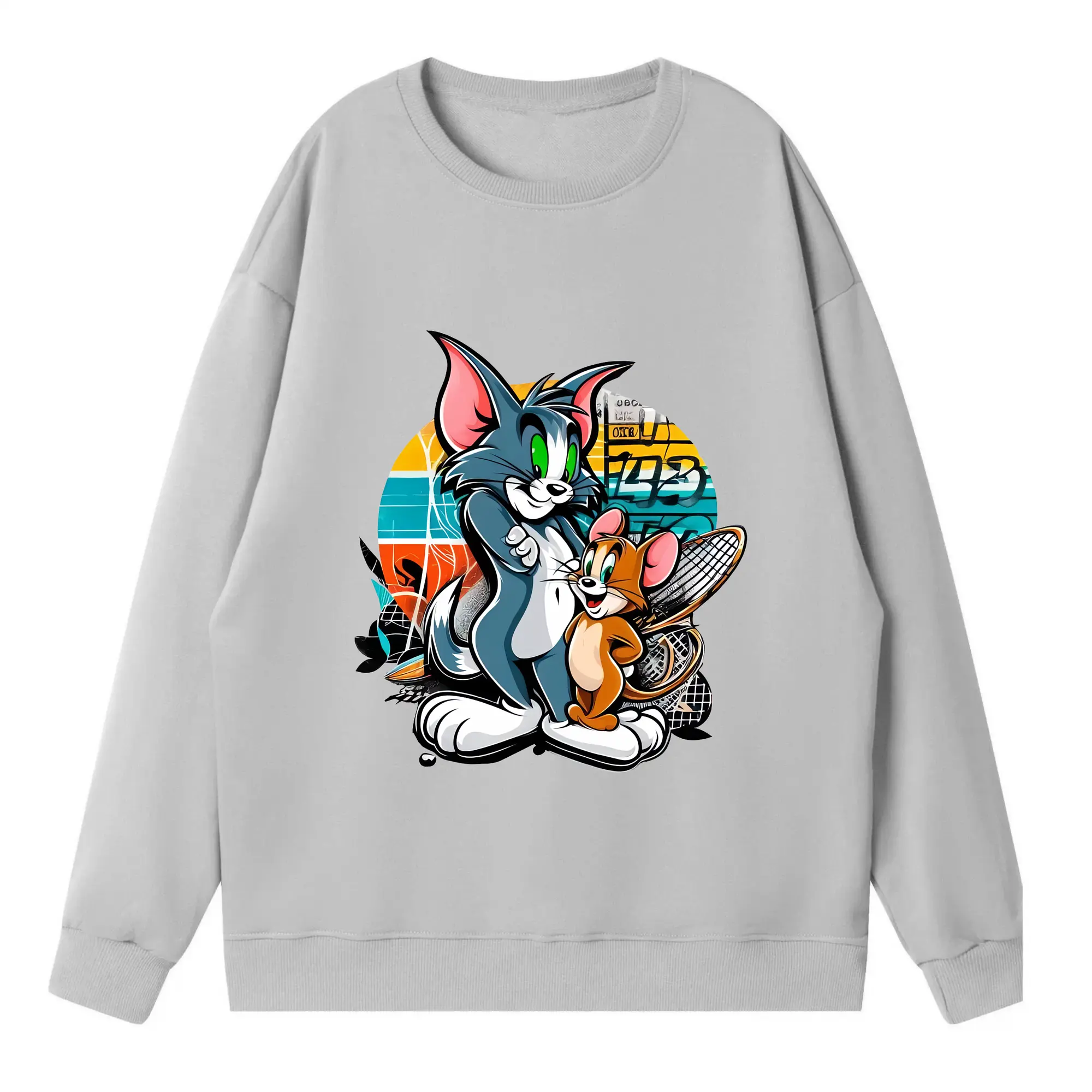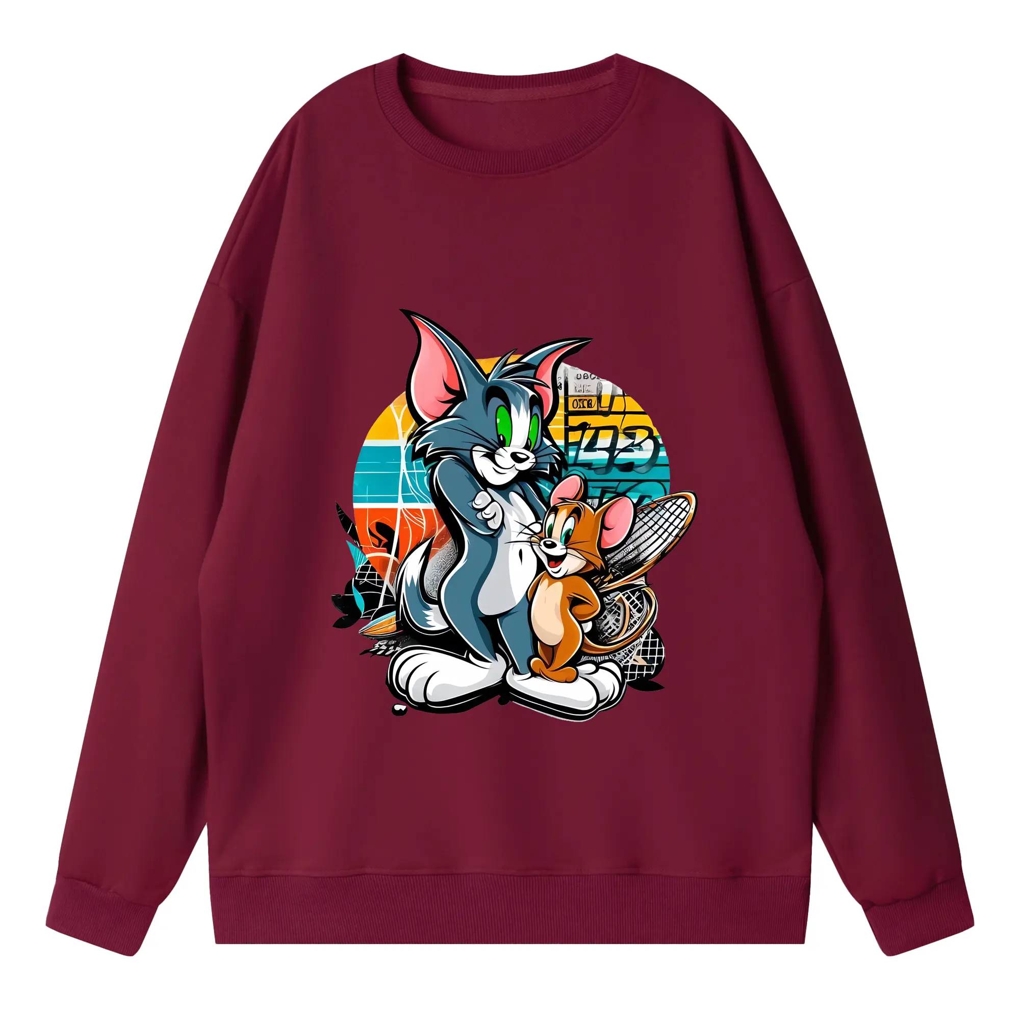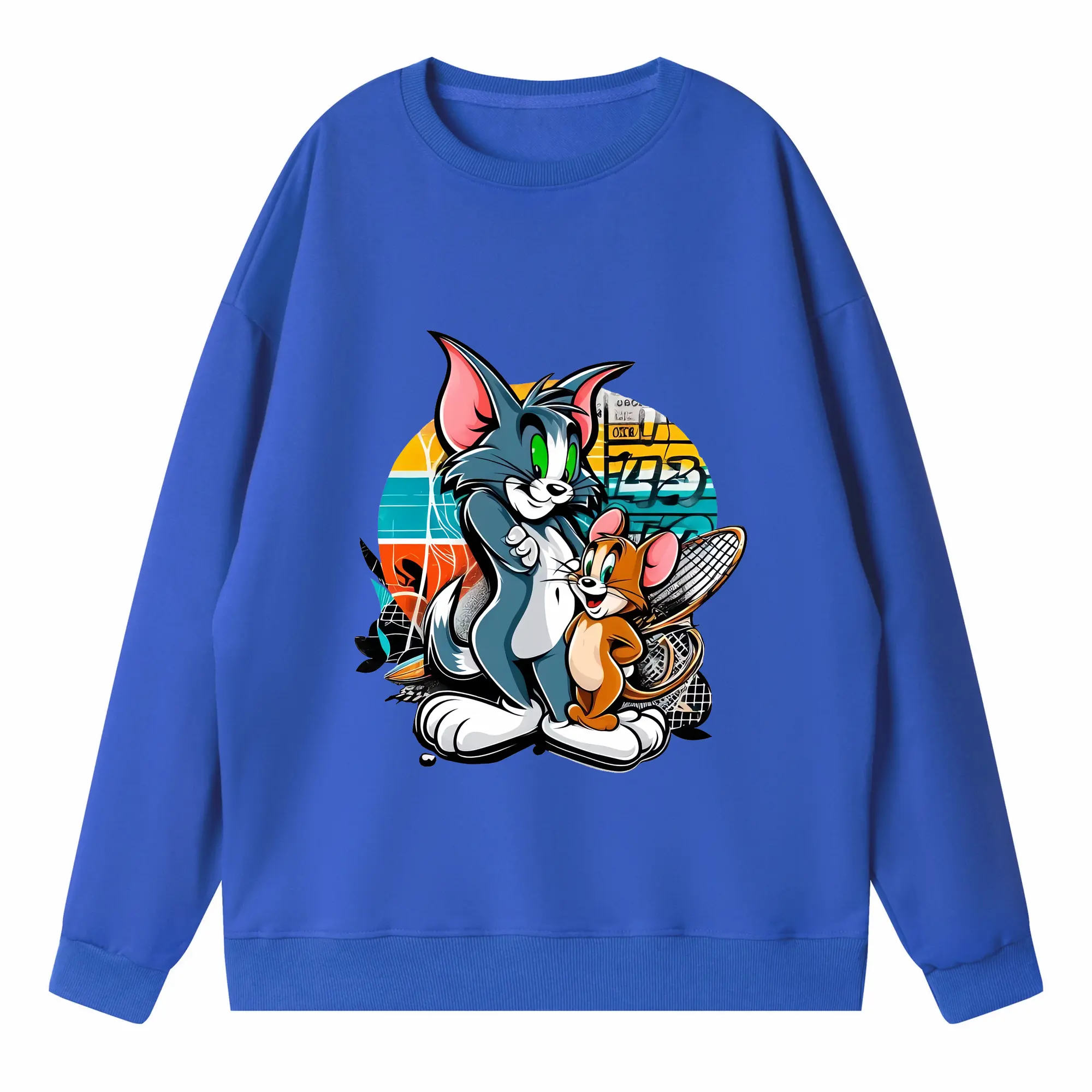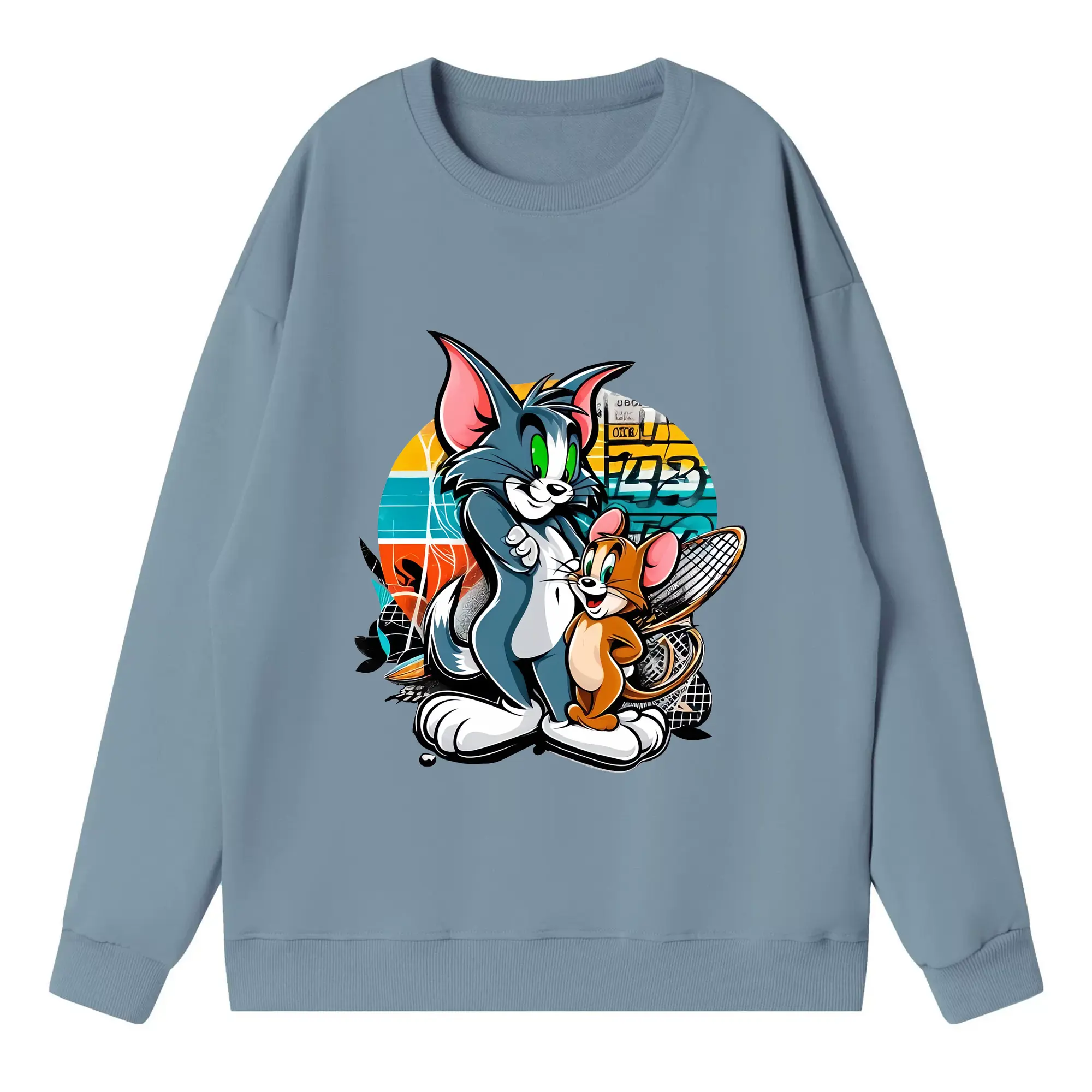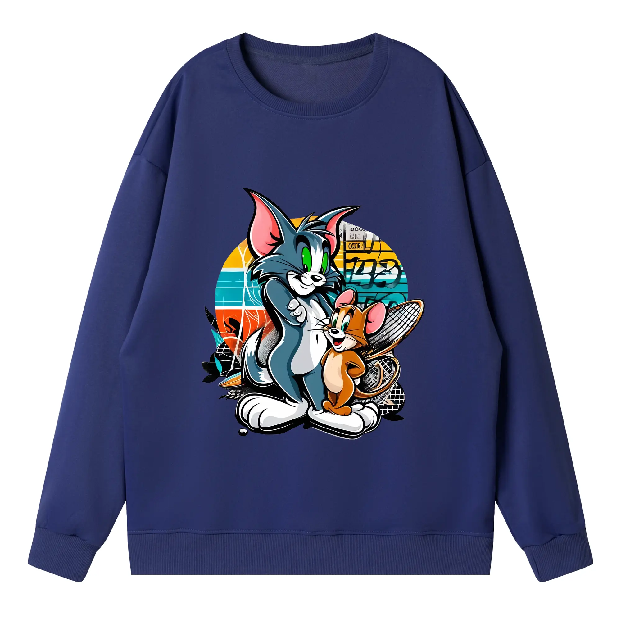 トムとジェリー グッズ トム - 高品質 クルーネック スウェット ・ コットン59% ポリエステル41% ・ ユニセックス 長袖 トレーナー ・ カジュアル デイリー スポーツ 散歩用