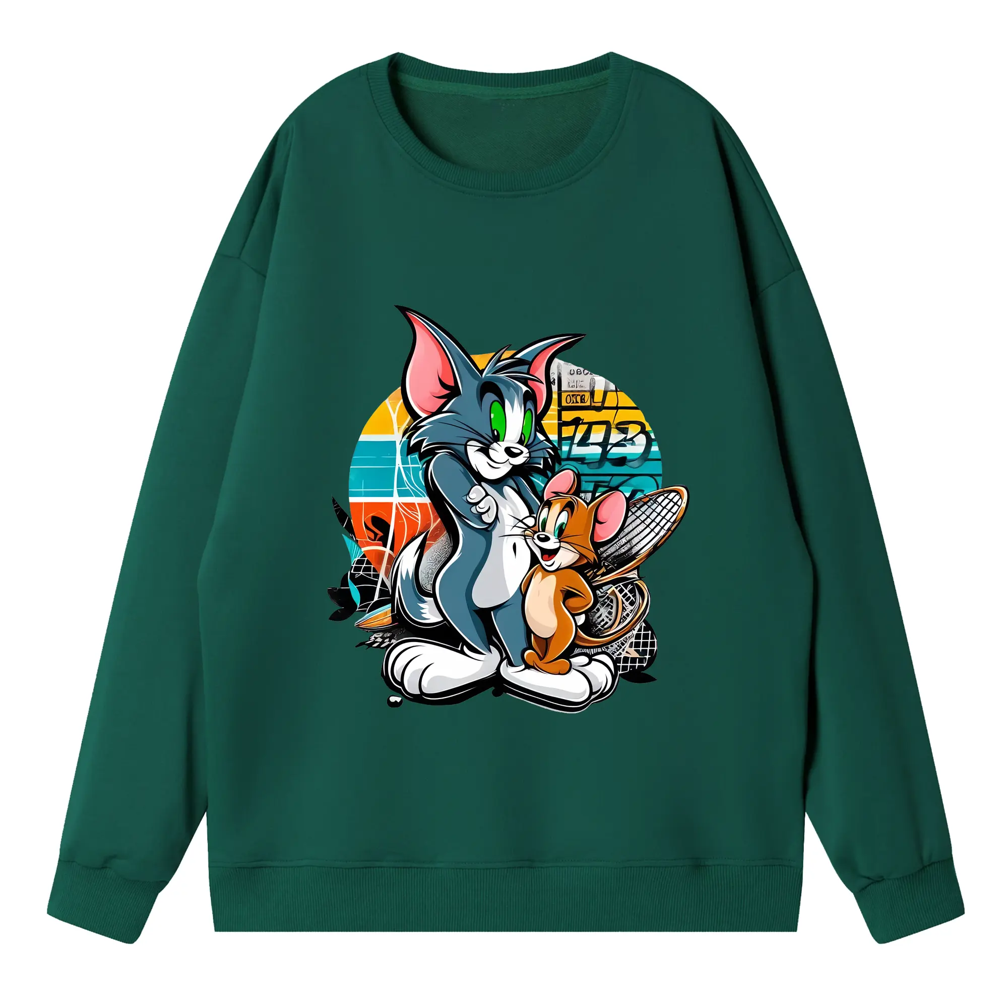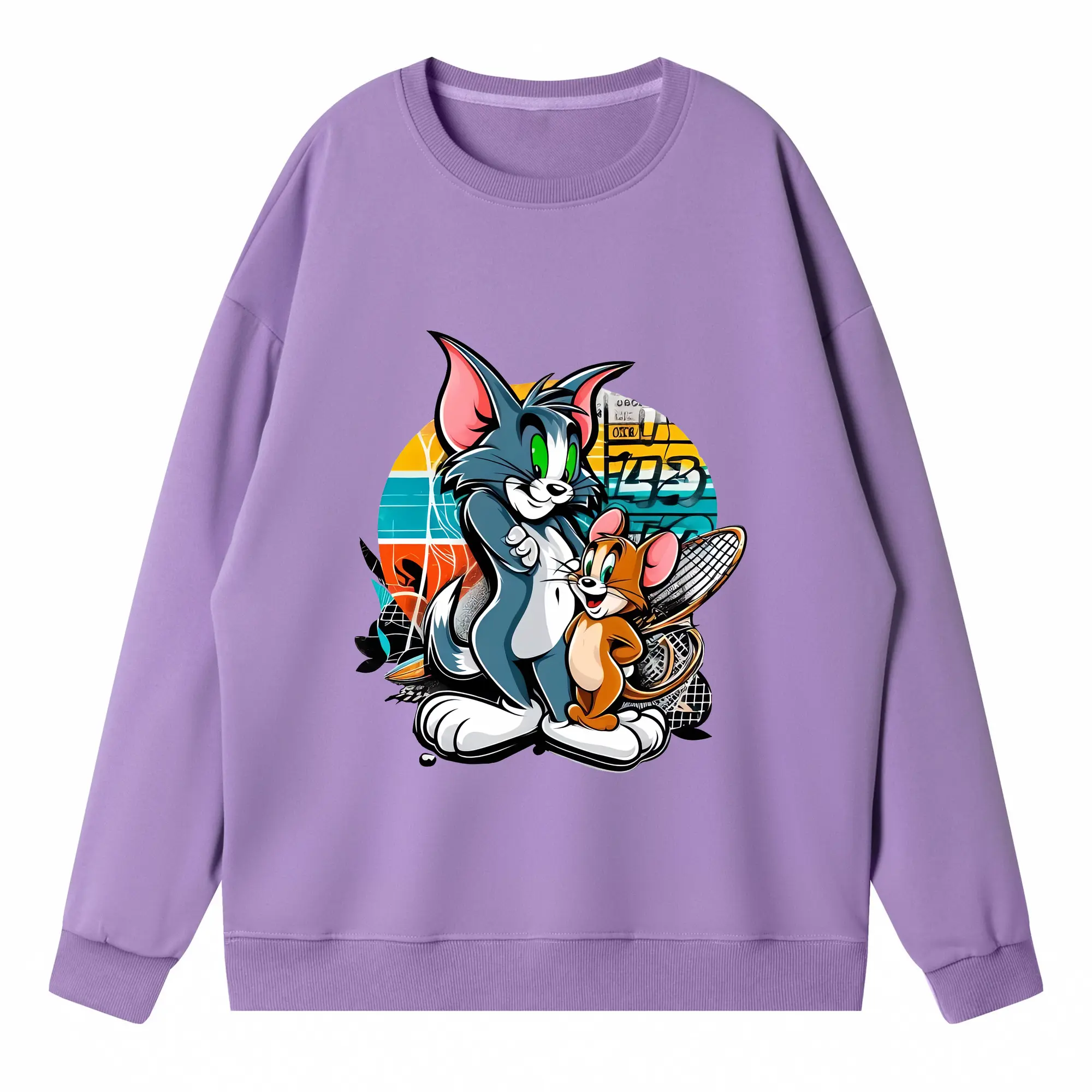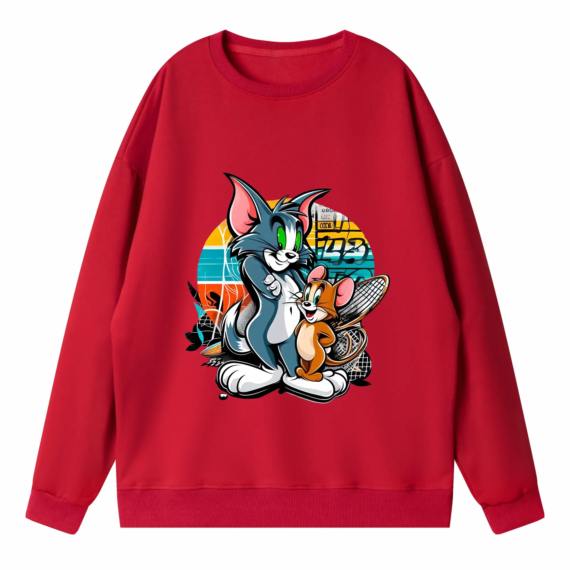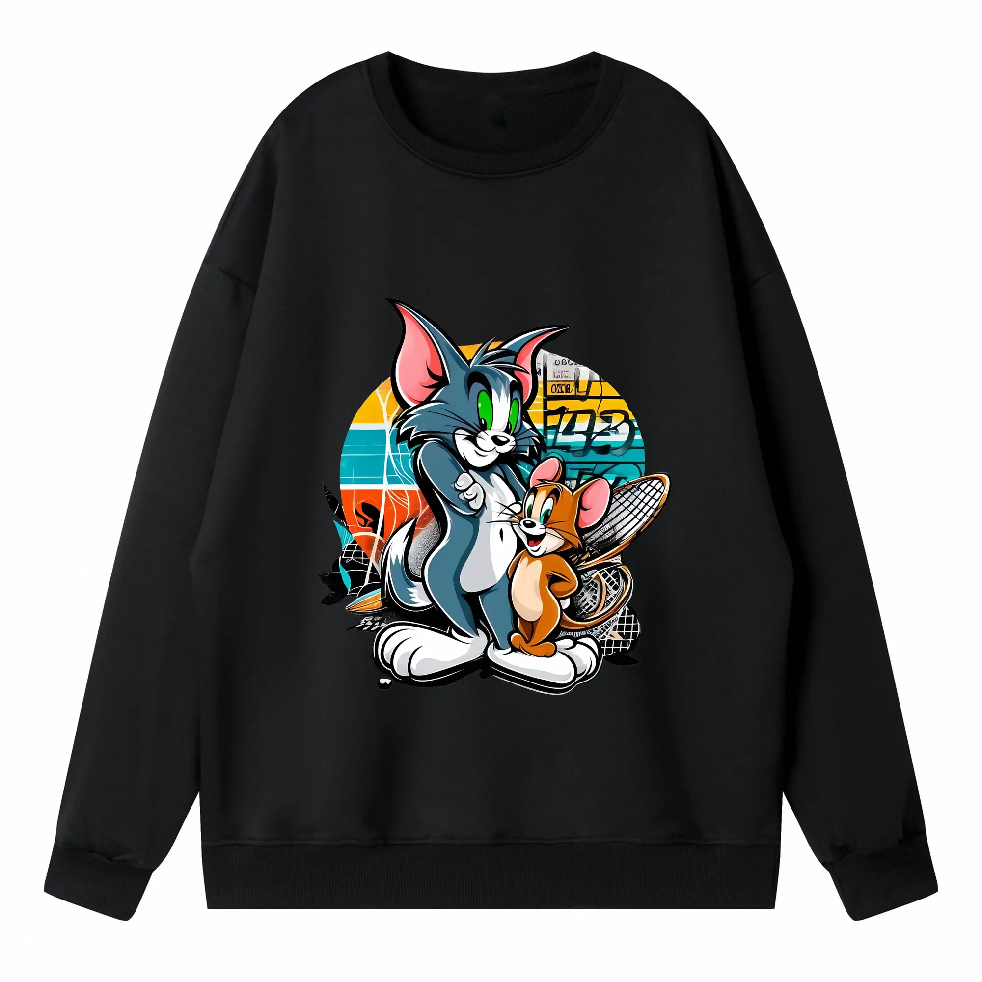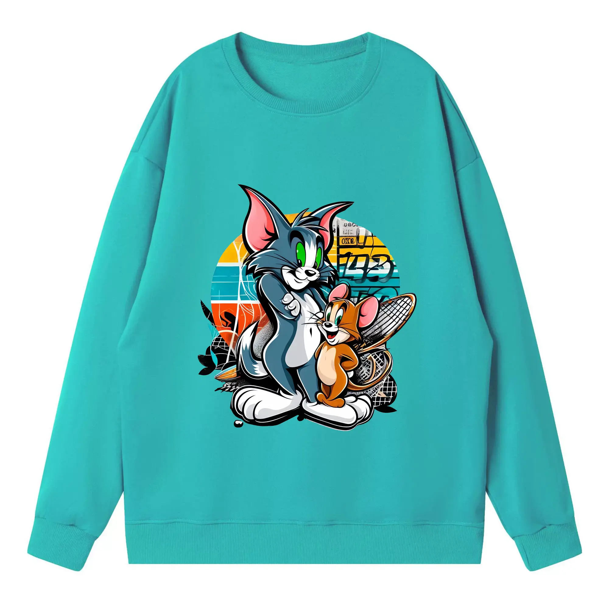 トムとジェリー グッズ トム - 高品質 クルーネック スウェット ・ コットン59% ポリエステル41% ・ ユニセックス 長袖 トレーナー ・ カジュアル デイリー スポーツ 散歩用