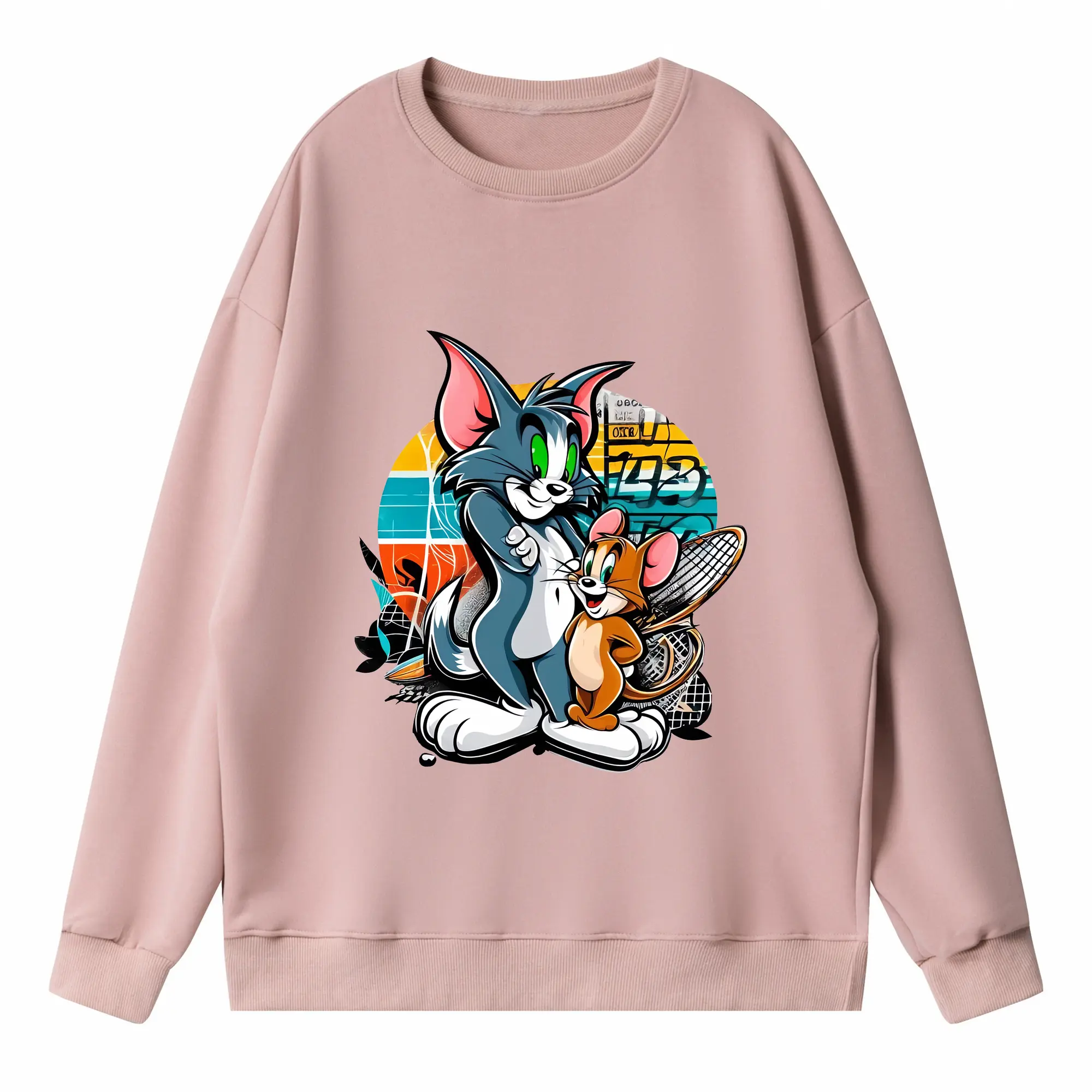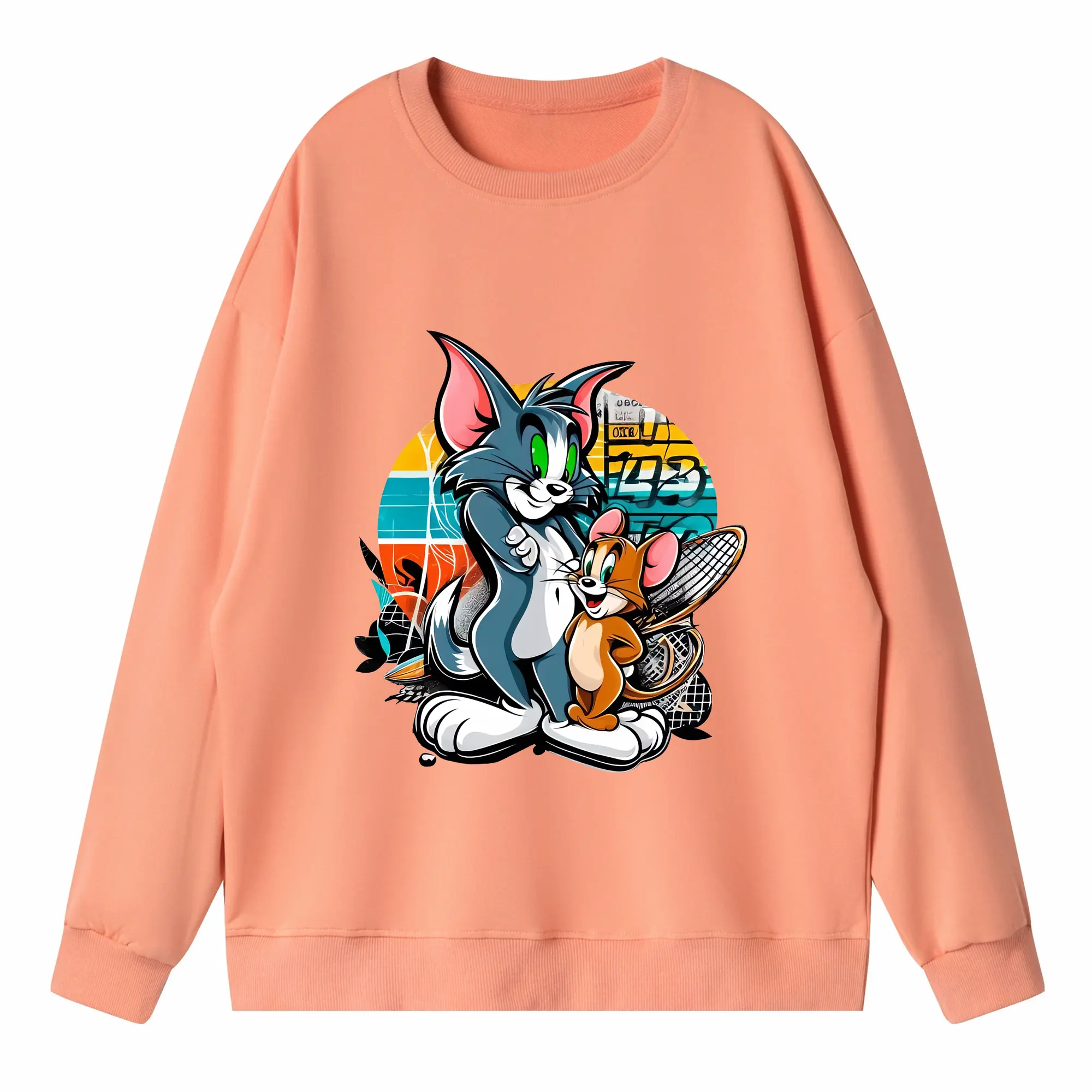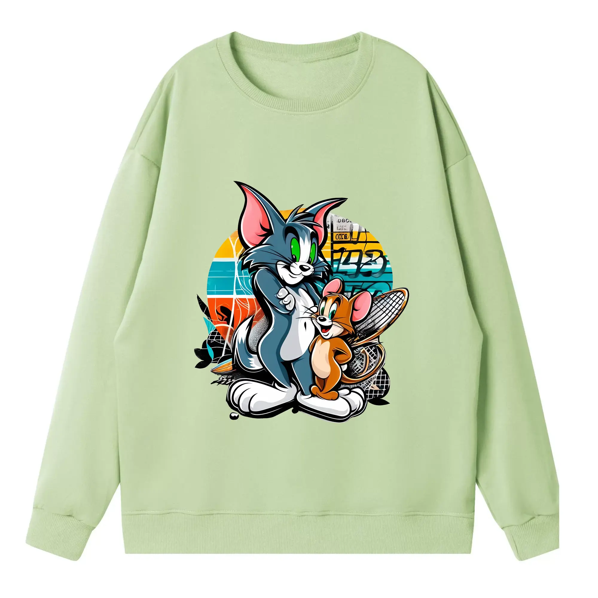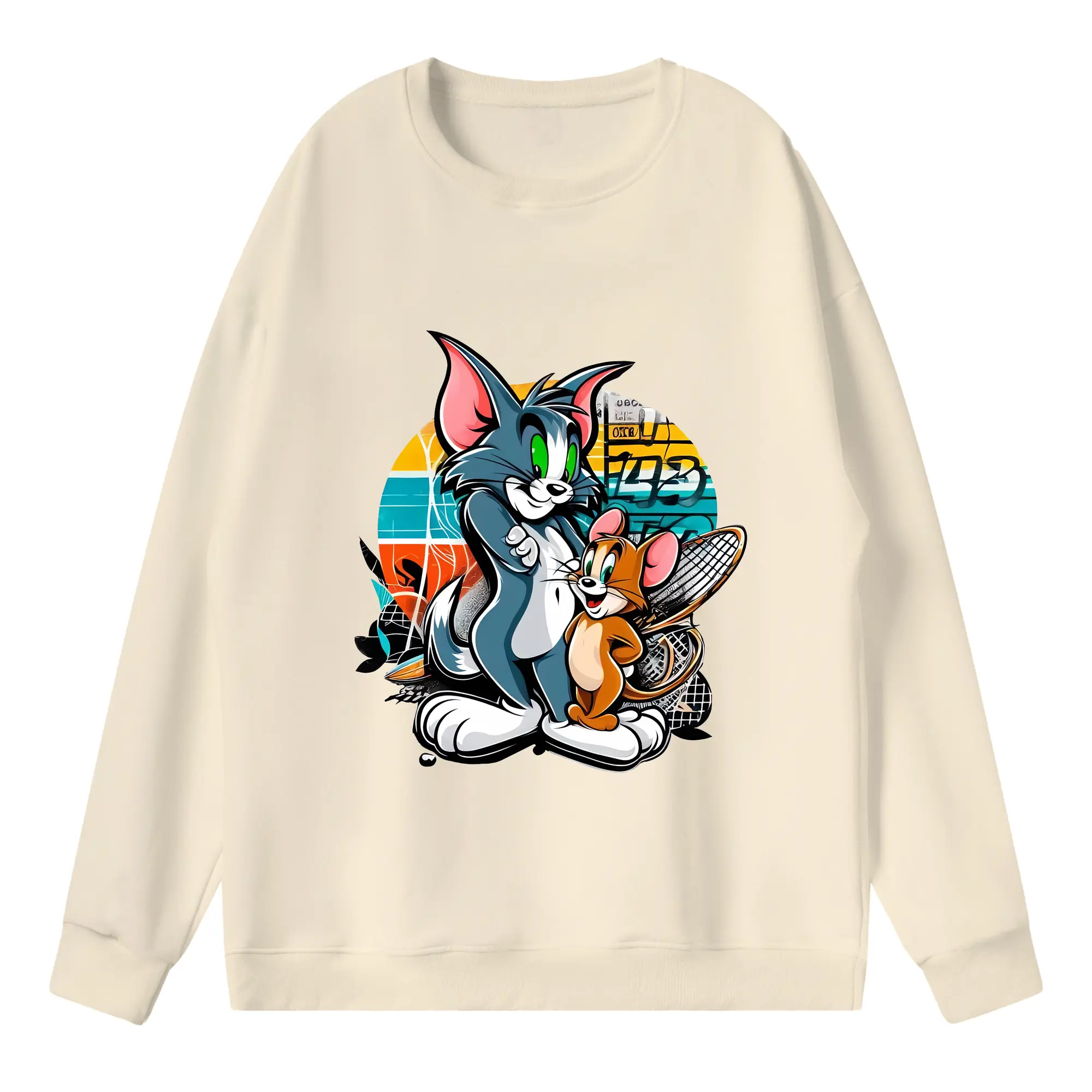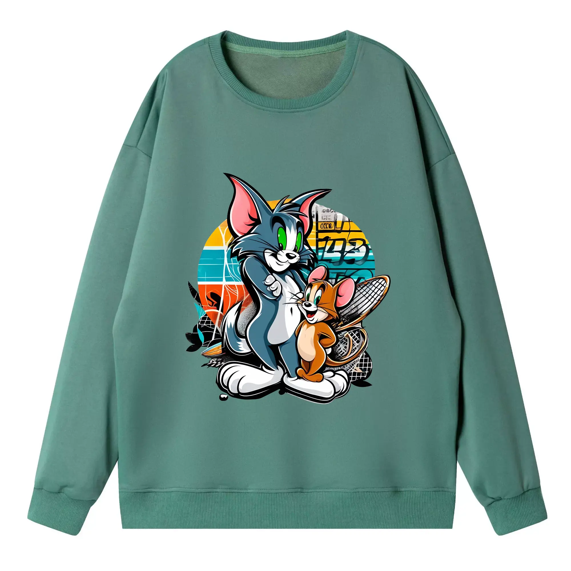 トムとジェリー グッズ トム - 高品質 クルーネック スウェット ・ コットン59% ポリエステル41% ・ ユニセックス 長袖 トレーナー ・ カジュアル デイリー スポーツ 散歩用